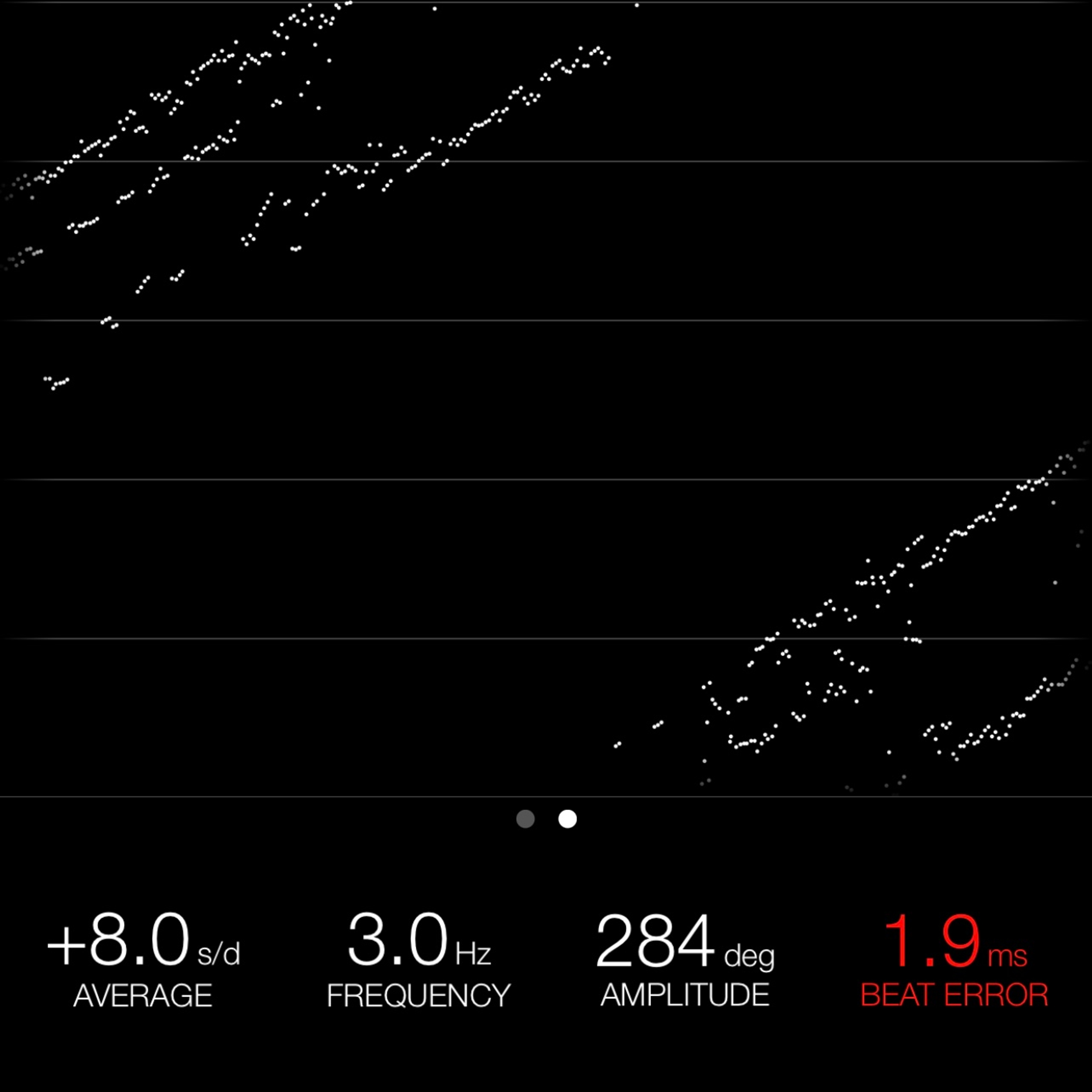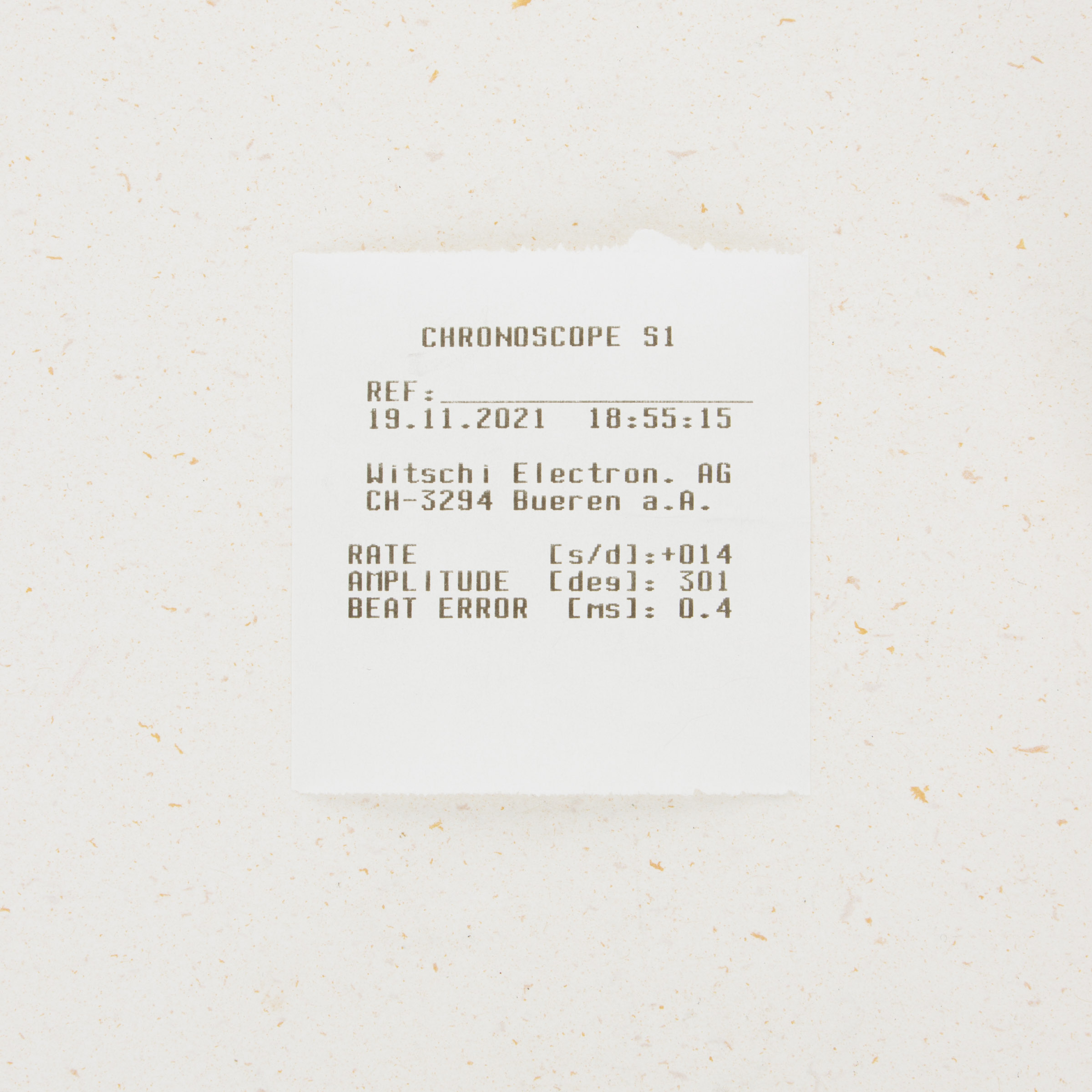 This reading was taken (crown down) with a ONEOF Accuracy Boutique Edition timing machine at time of cataloging. It is provided as a courtesy only, and shall not be construed as a warranty or guarantee of any kind. Please refer to our terms and conditions of sale for more information.