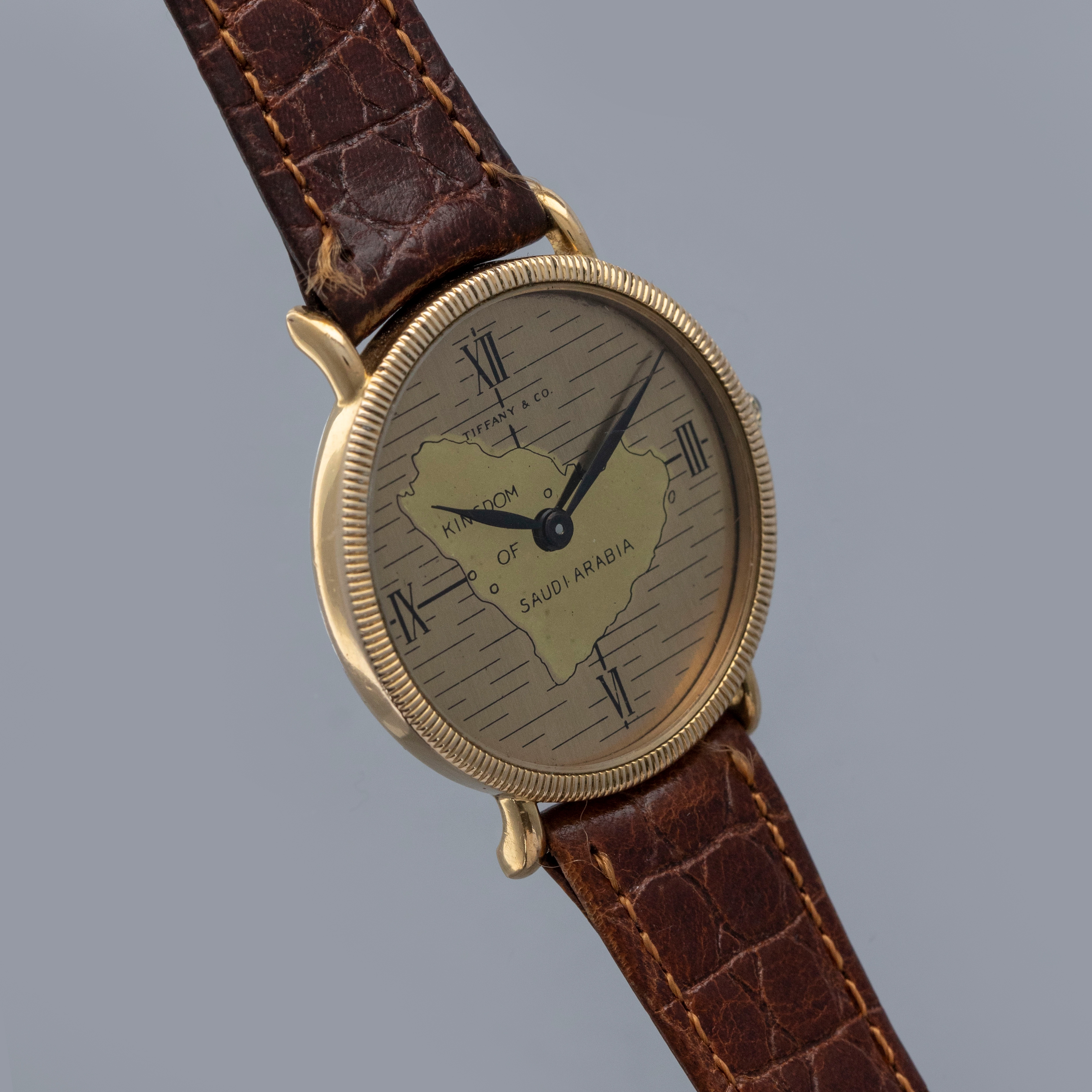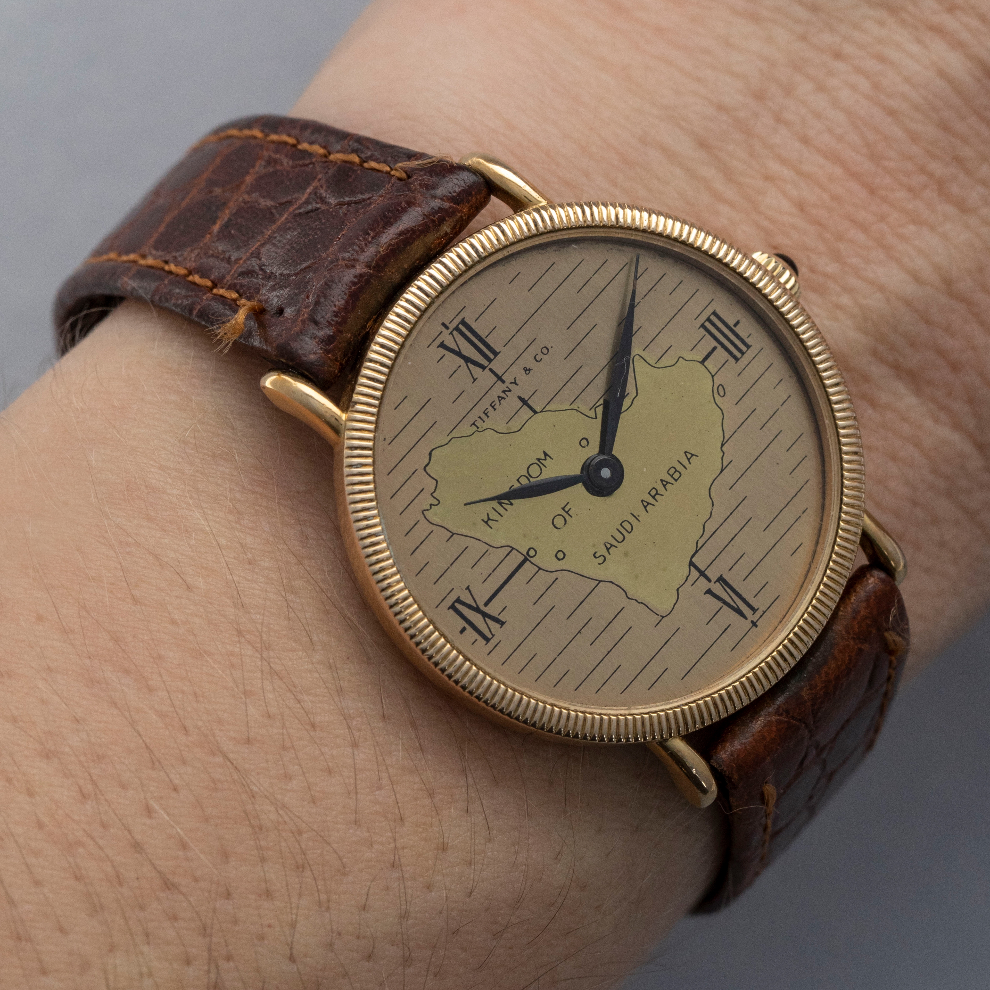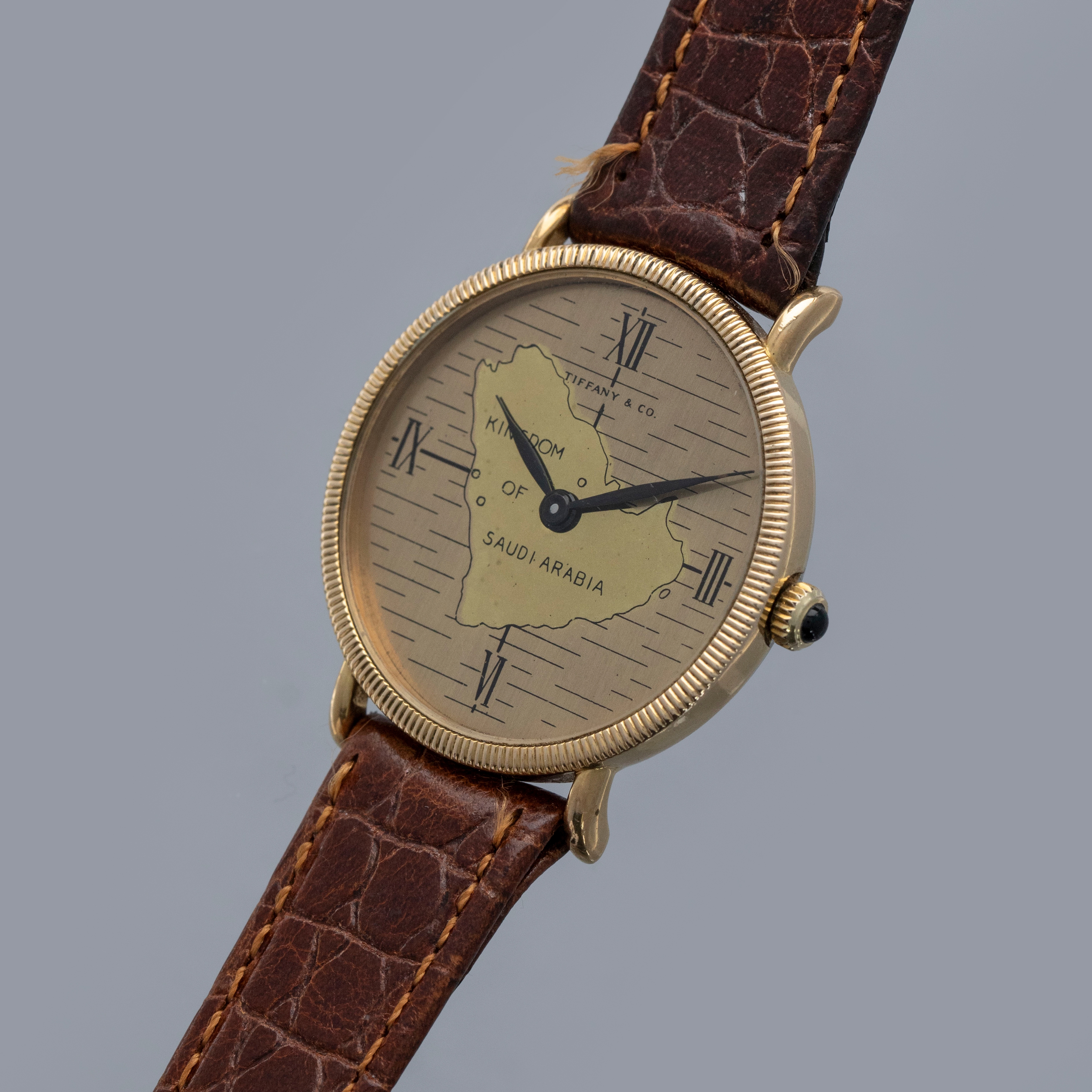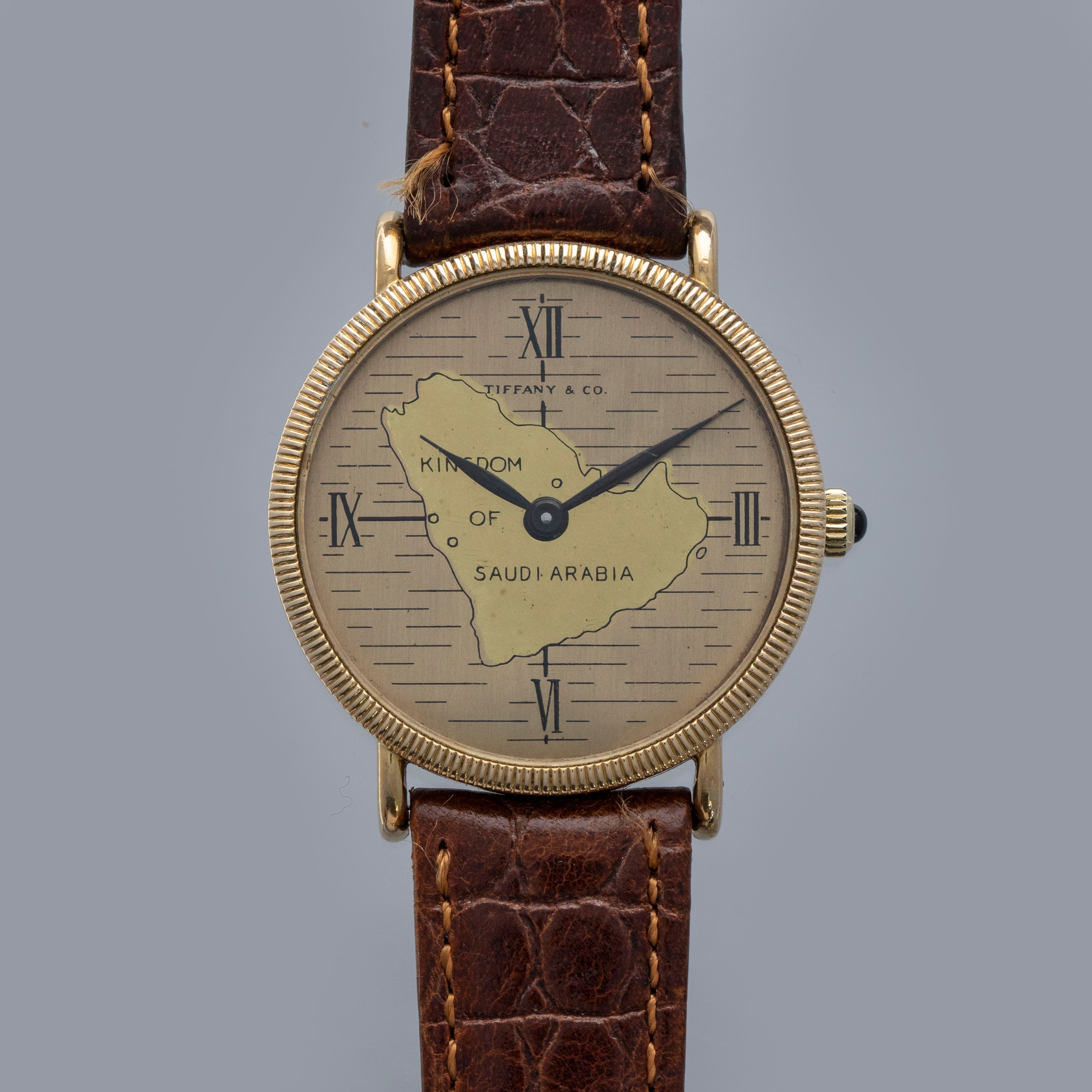 Boasting a mid-century depiction of the Kingdom of Saudi Arabia, this timepiece's dial is a wonderful symbol of Saudi Arabia's history, and legacy within watchmaking given Tiffany & Co's desire to have the watch produced by Baume & Mercier.