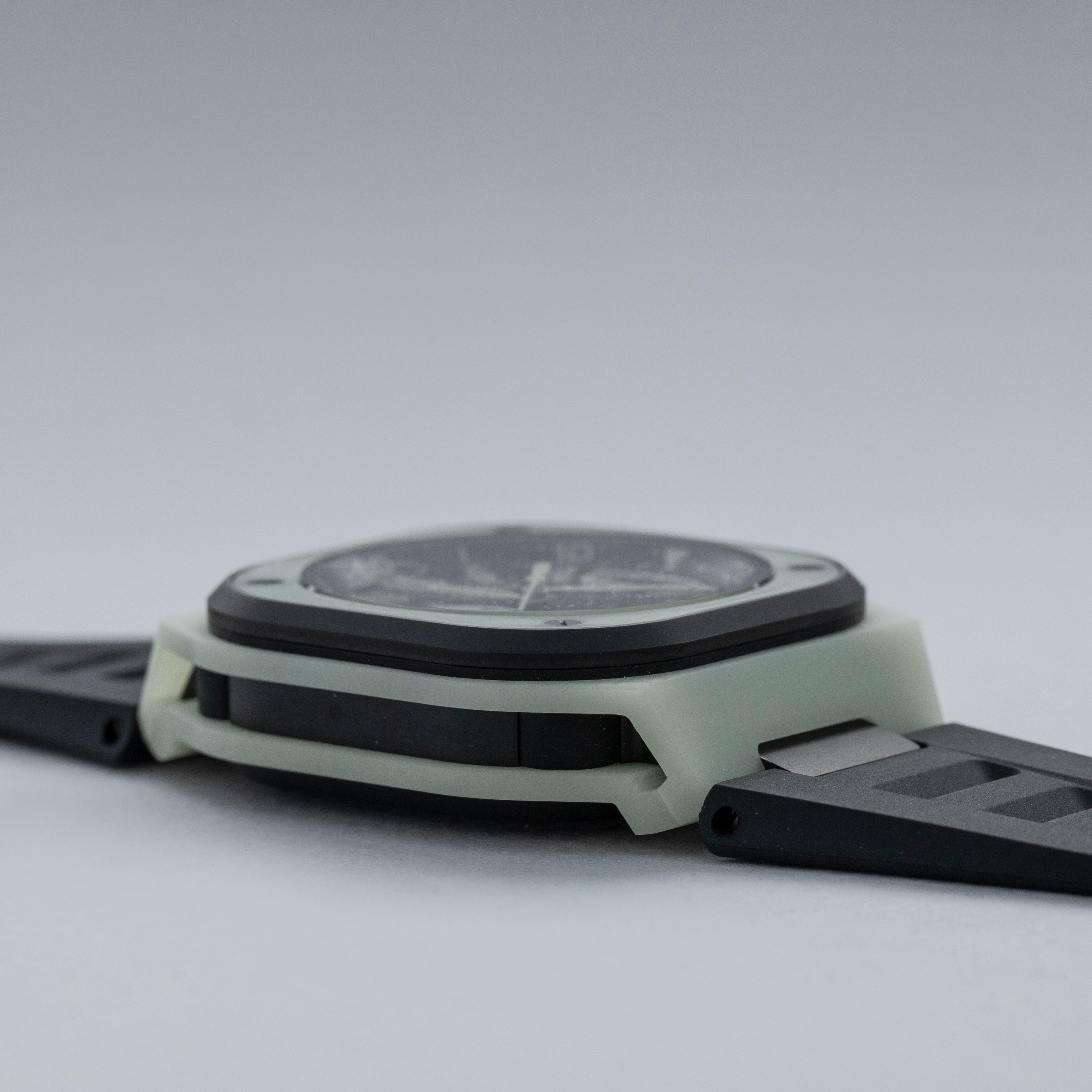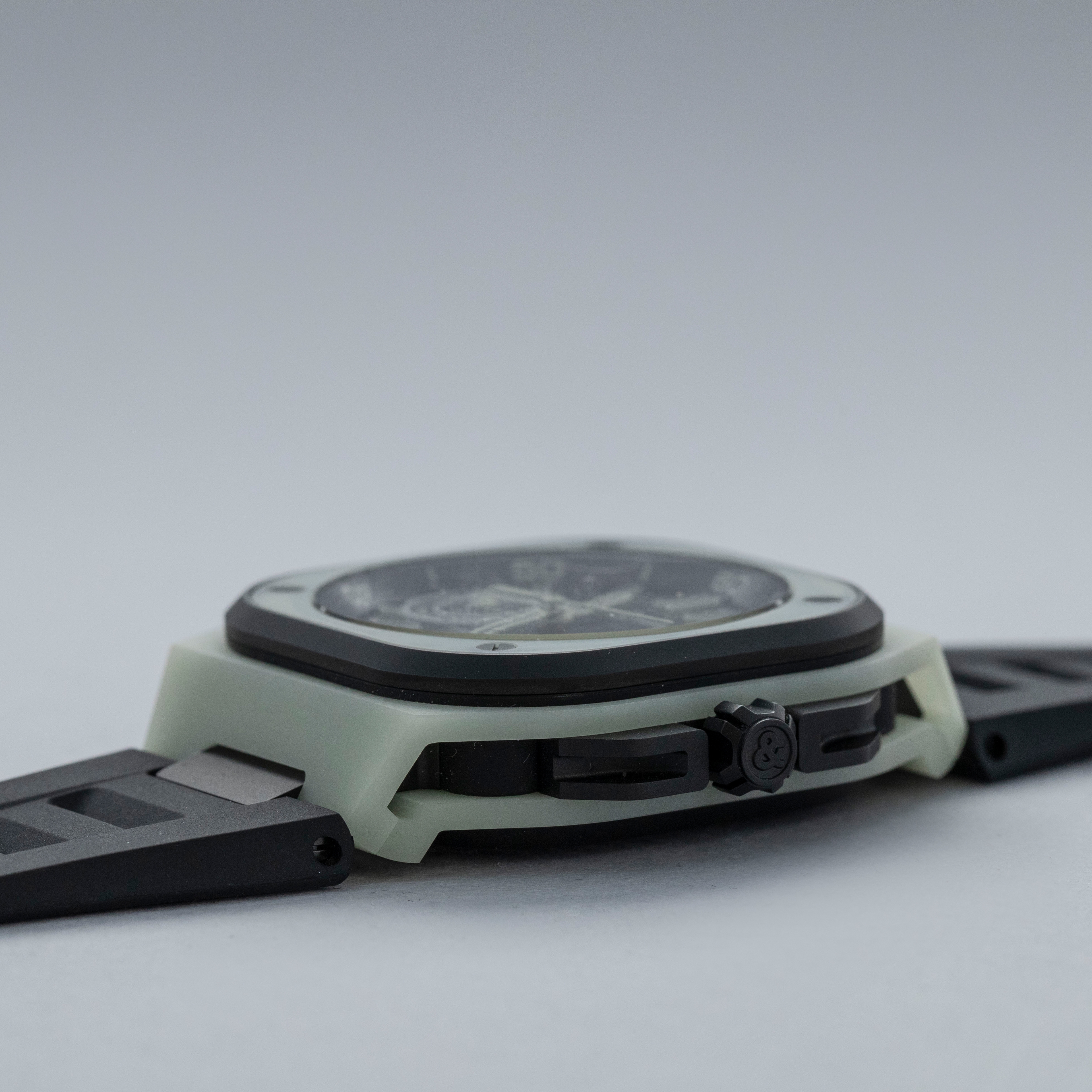 Featuring a futuristic and avant-garde design language that is unparalleled within the industry, especially at this price bracket, the BR-X5 offers a distinctive aesthetic that feeds off of Bell & Ross' drive to create a lightweight fully luminous material, their LM3D.