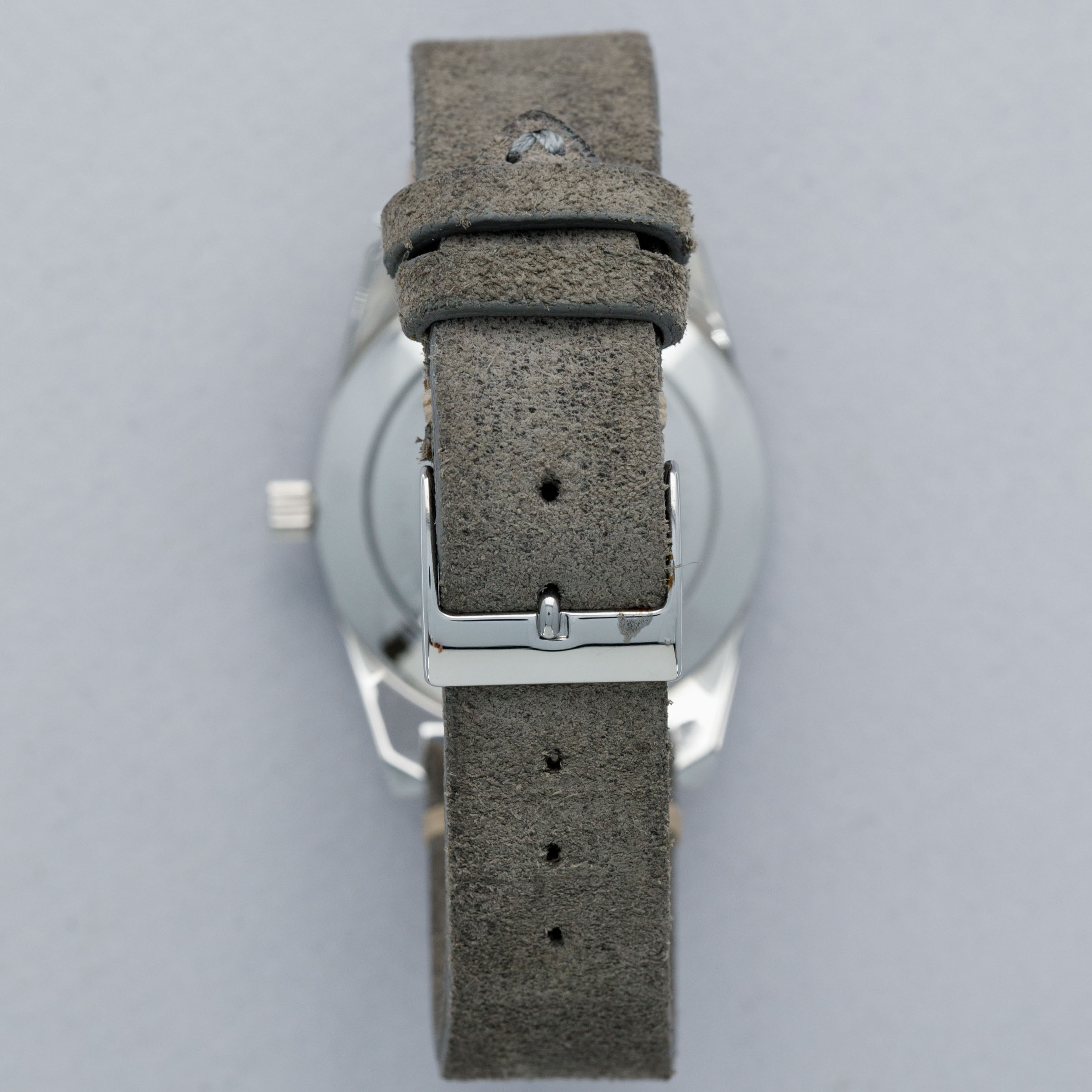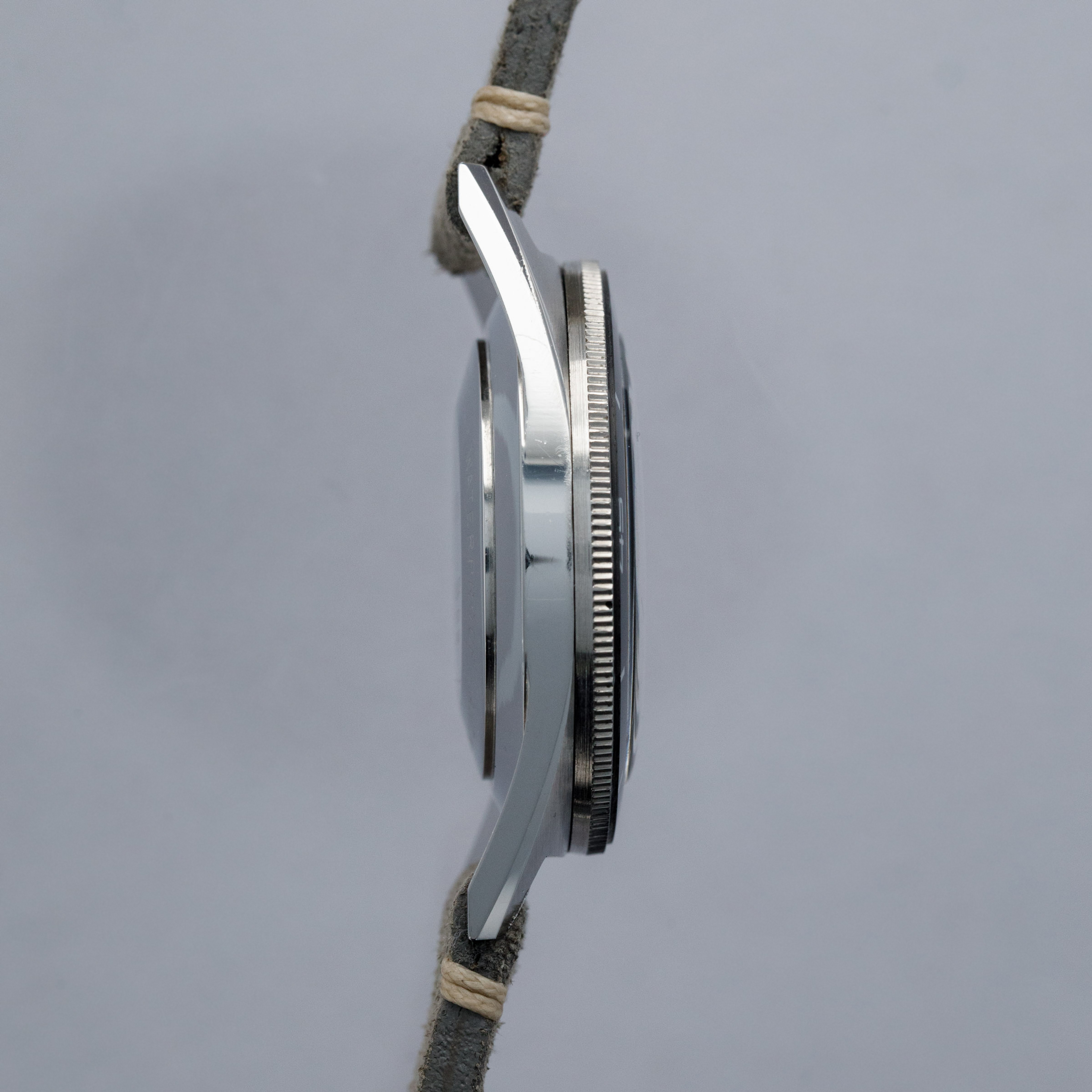 The watch is in near-mint vintage condition. The steel case shows some light surface wear but is razor sharp and the lugs are well defined. The case back retains some of the original enamel within the engravings, which remain fully legible. The bezel is very well defined, and the insert is clean, with minor spotting in the lume triangle at 12. The dial is in near-mint condition, featuring clean lume on the hour markers. The hands show some discoloration in the lume. The watch is fitted with a JPM leather strap and steel buckle, both in excellent condition.
