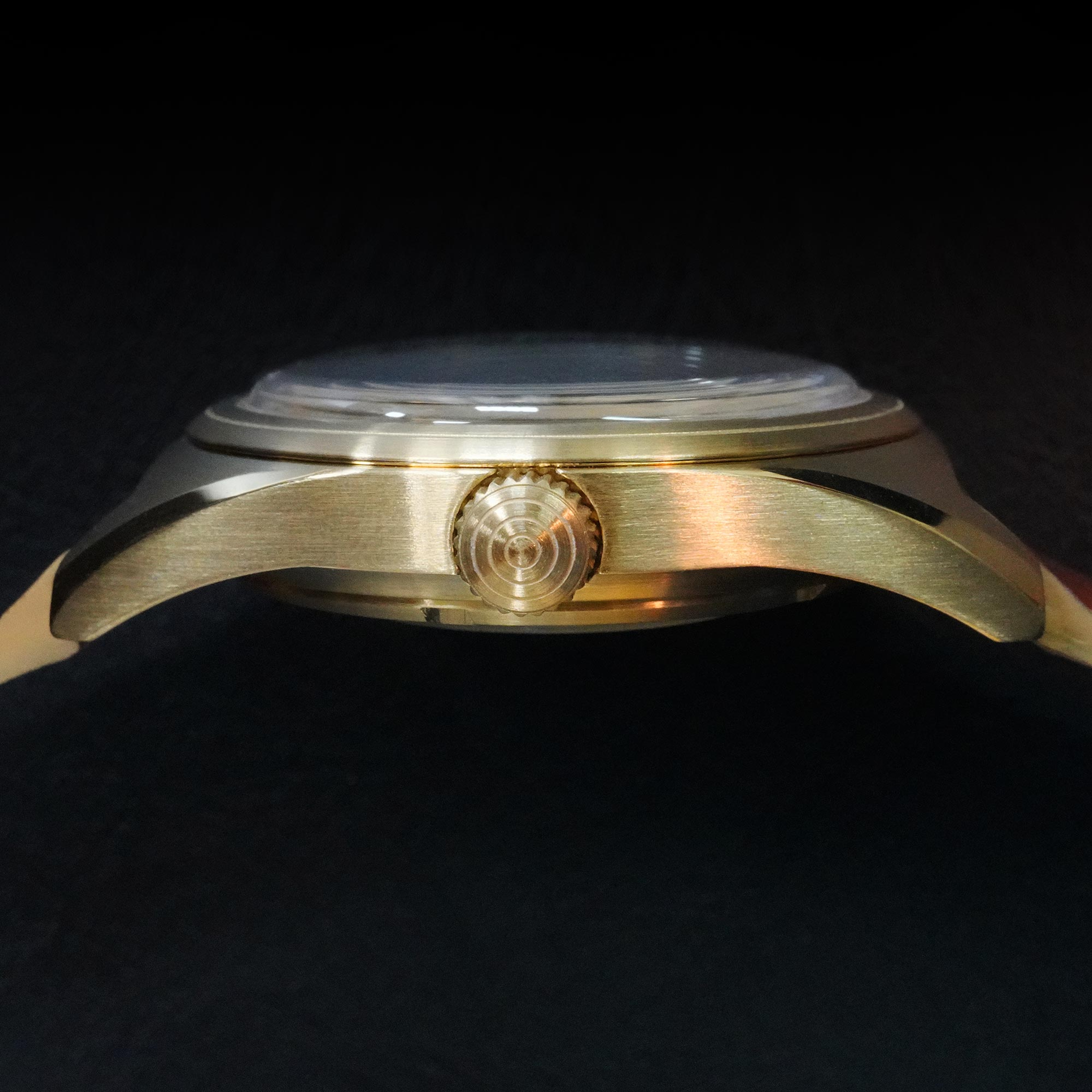 Hand-finished Gold Alloy dial w/patinated & engraved surface