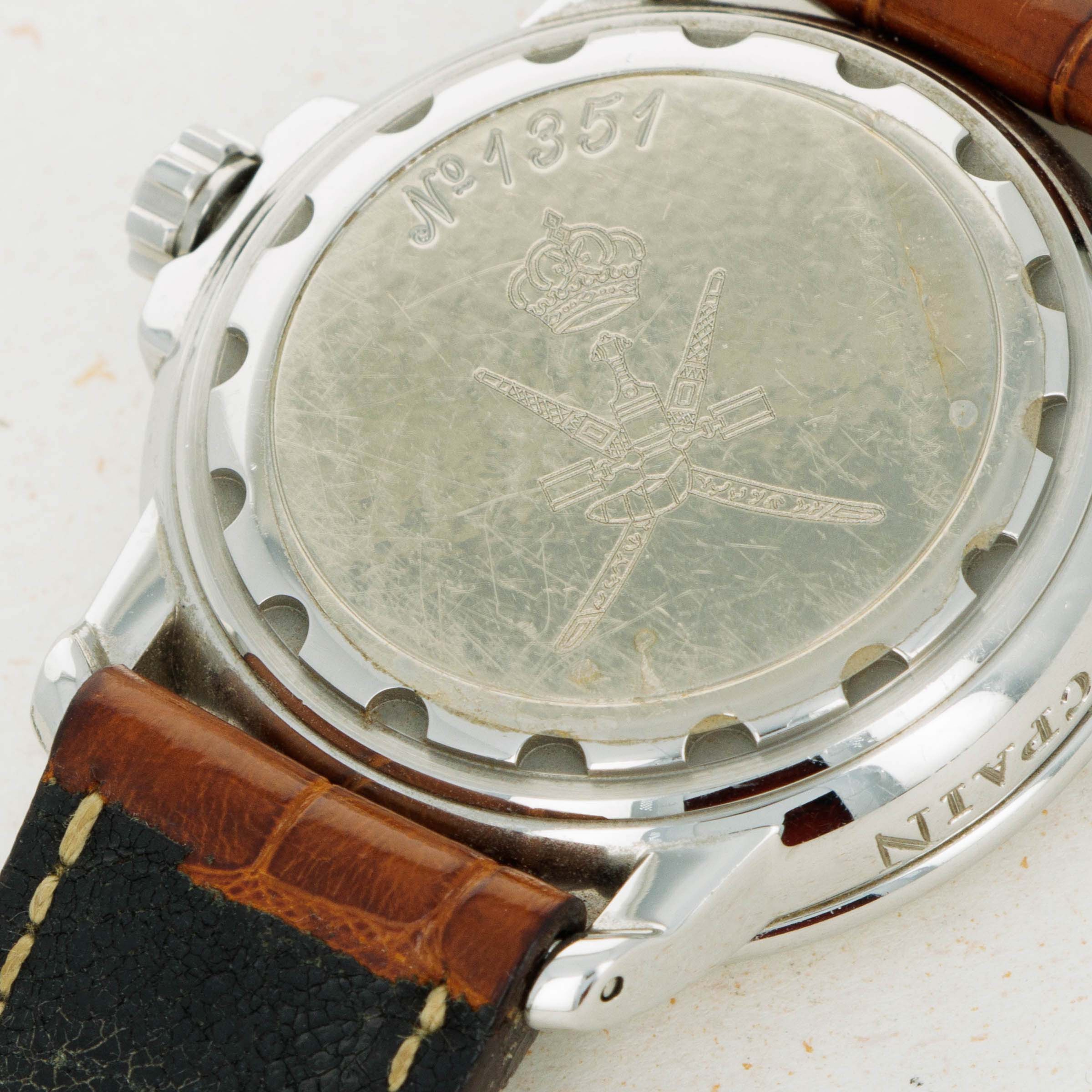 Watch is in very good overall condition. Case exhibits typical wear for a watch of this age with slightly soft edges and superficial scratches as shown. The Khanjar engraving on the caseback is protected by clear plastic and appears sharp and crisp.