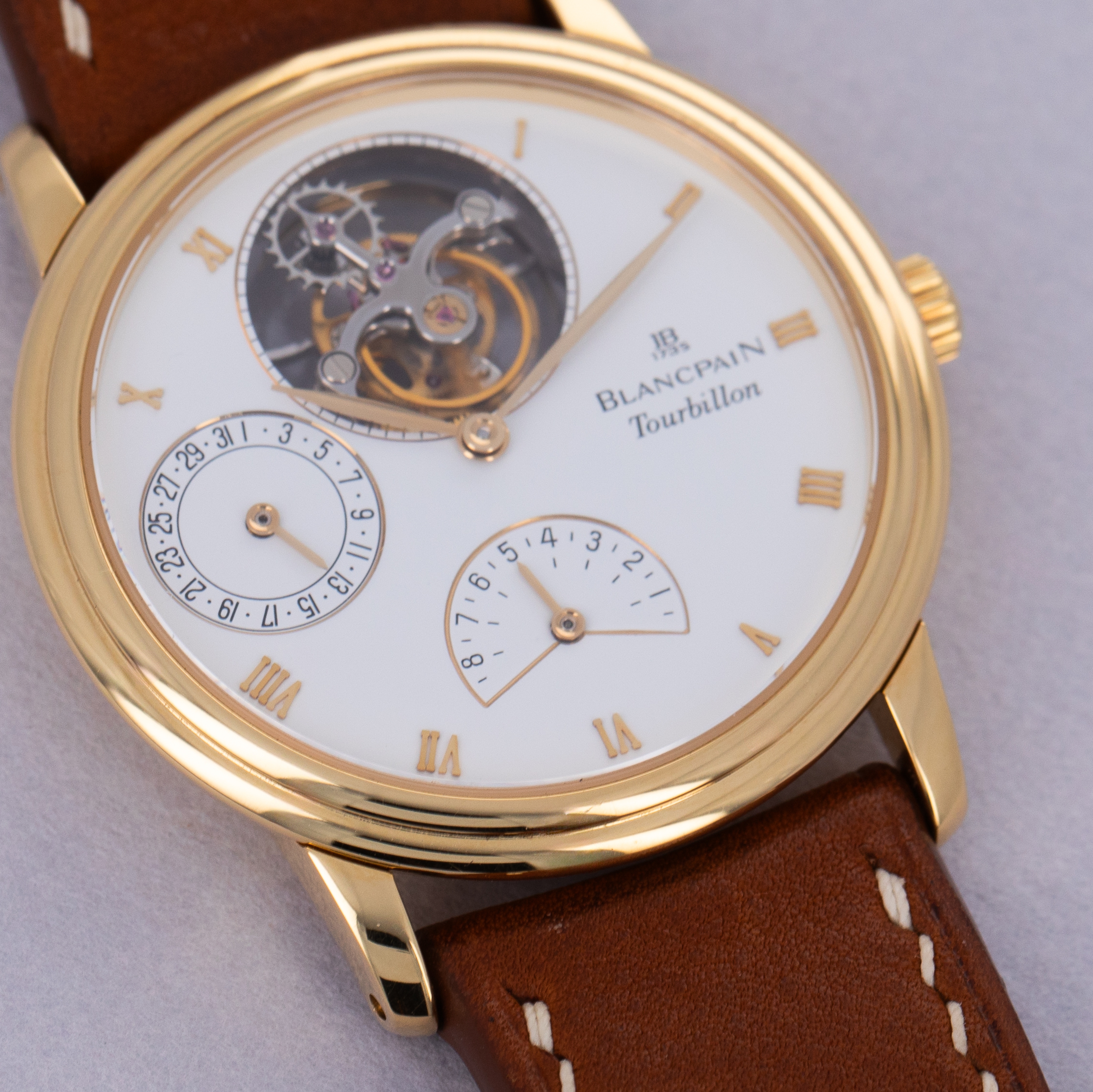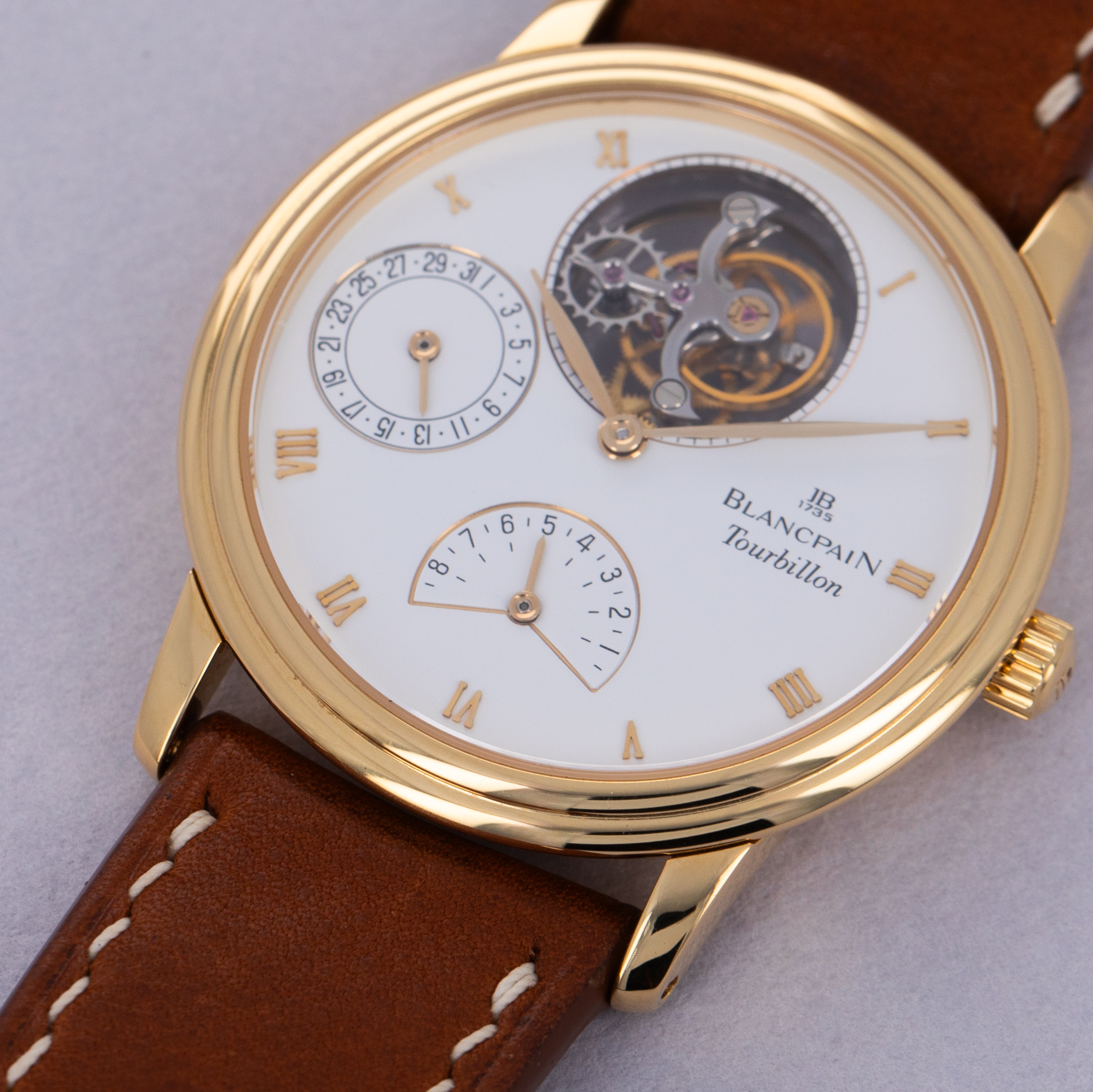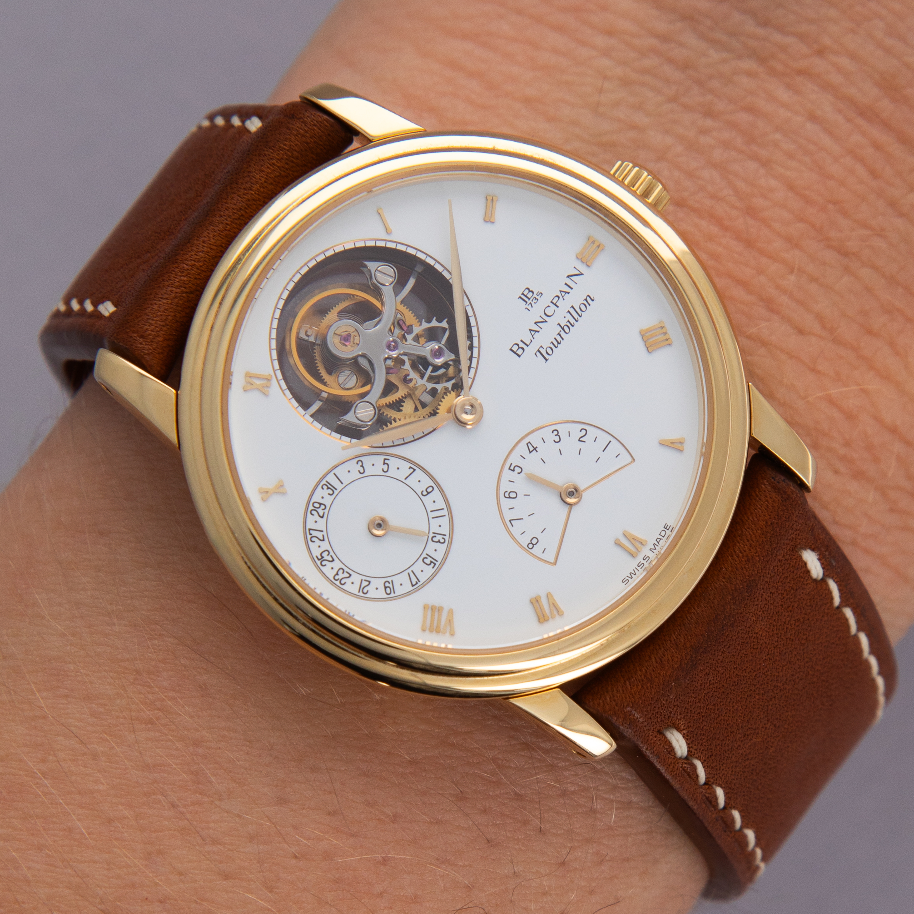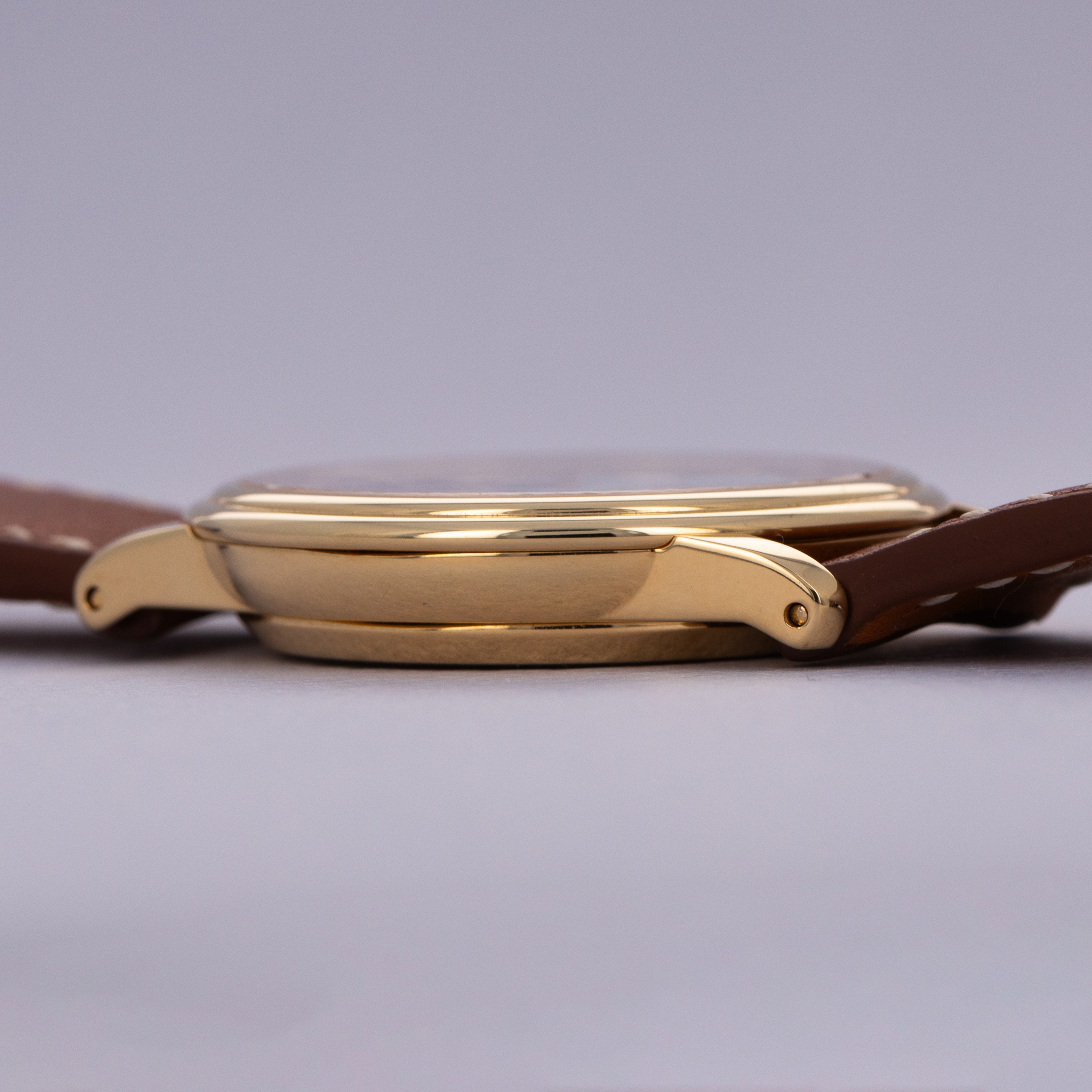Offered in an impressively compact 34mm x 7.4mm 18kt yellow gold case, the ref. 0023-1418-55 packs an incredible amount of horological engineering within its rather svelte construction.