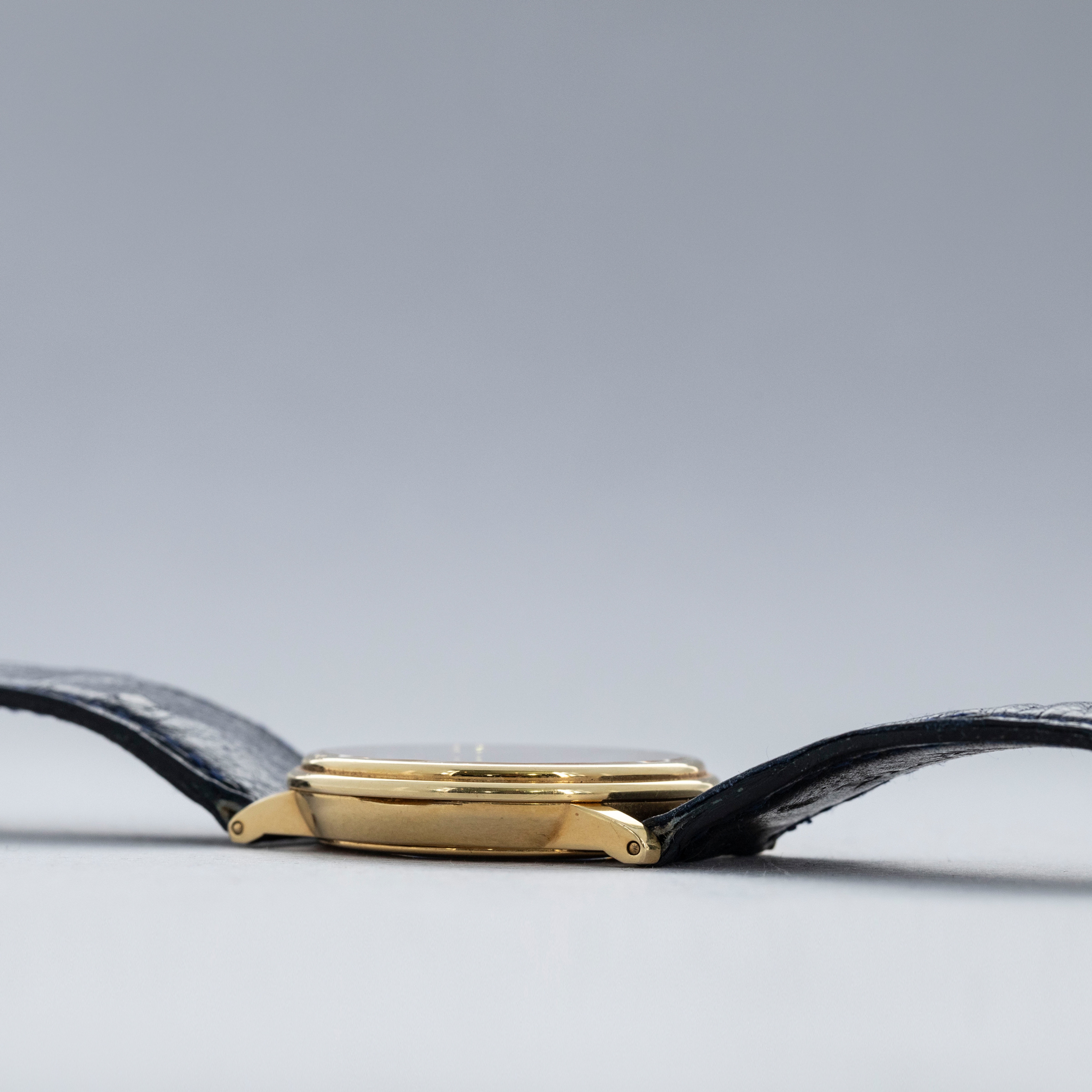Famed as horology’s oldest watchmakers, Blancpain’s reputation is that of unbridled craftsmanship, quality and luxury. With an eye for impeccable design, their timepieces have sat on the wrists of some of history’s most influential people. Standing as a marker of the brand’s success over the centuries, the Villeret collection pays homage to Blancpain’s heritage as it is named after the brand’s birthplace. Offered here, we have the Villeret Ultra-Thin ref. 4795 in 18kt yellow gold. The watch boasts a white dial with applied Roman numerals in case-matching 18kt yellow gold throughout the dial’s periphery. Leaning into the mechanical excellence that Blancpain are known for, the Villeret collection is famed its classical constructions and typically complicated movements, of which the example that we have here features, but only subtly with a sunken pointer date subdial at 6 o’clock hinting at Blancpain’s mechanical craftsmanship. With stepped bezel; the Villeret’s overall aesthetic is of refined luxury as the watch leans on Blancpain’s heritage in abundance and champions it to great effect while utilizing a luxurious construction that draws immediate comparisons to the craftsmanship that we expect from a watchmaker like Blancpain. Measuring 34mm in diameter and only 7.5mm tall, this dress watch is intensely elegant on the wrist, exactly how Blancpain’s timepieces are meant to be.