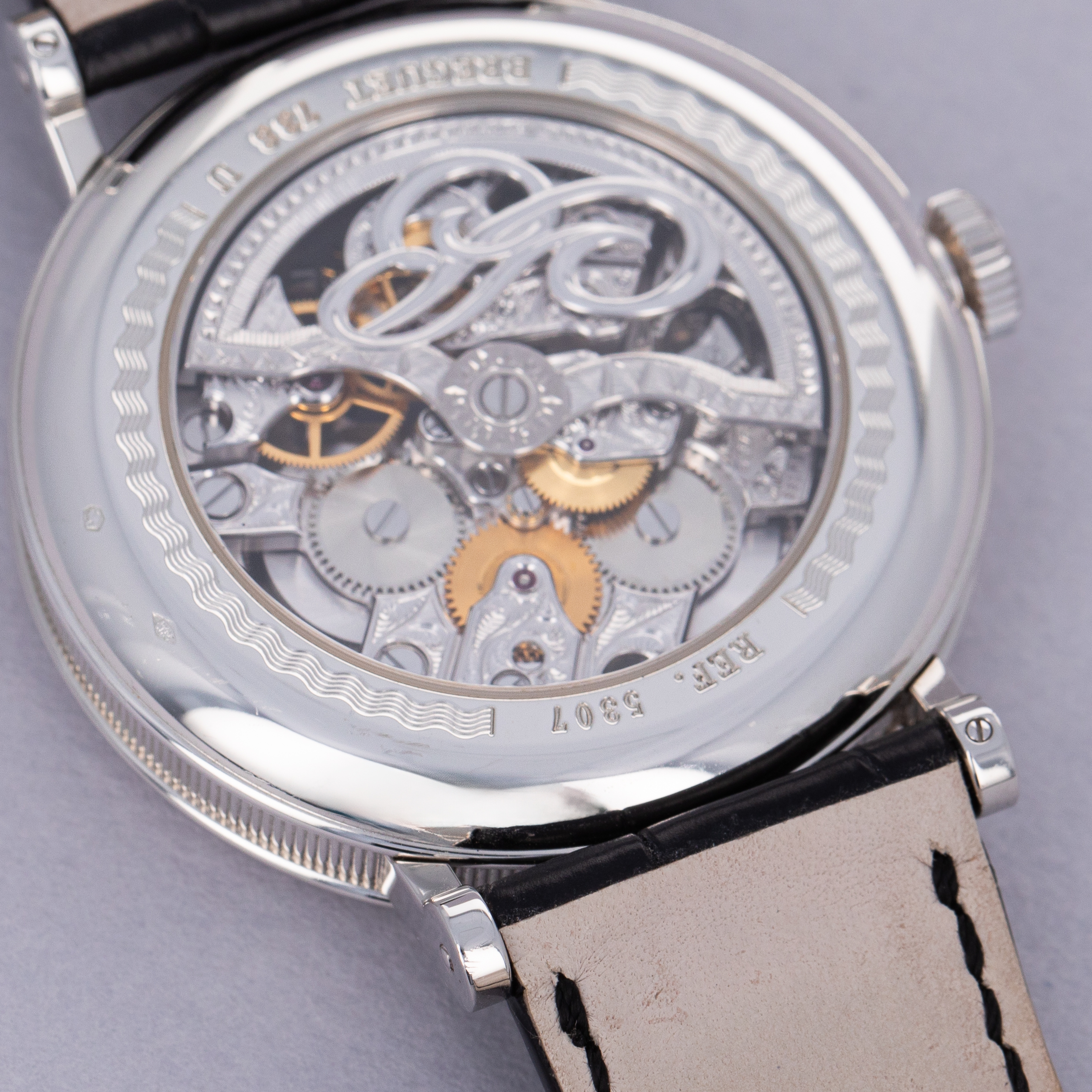 Unmistakable in its design, the Classique Regulator Tourbillon features a slew of Breguet's design landmarks with its Breguet hands, array of stunningly well-executed guilloche patterns and large tourbillon aperture at 6 o'clock.