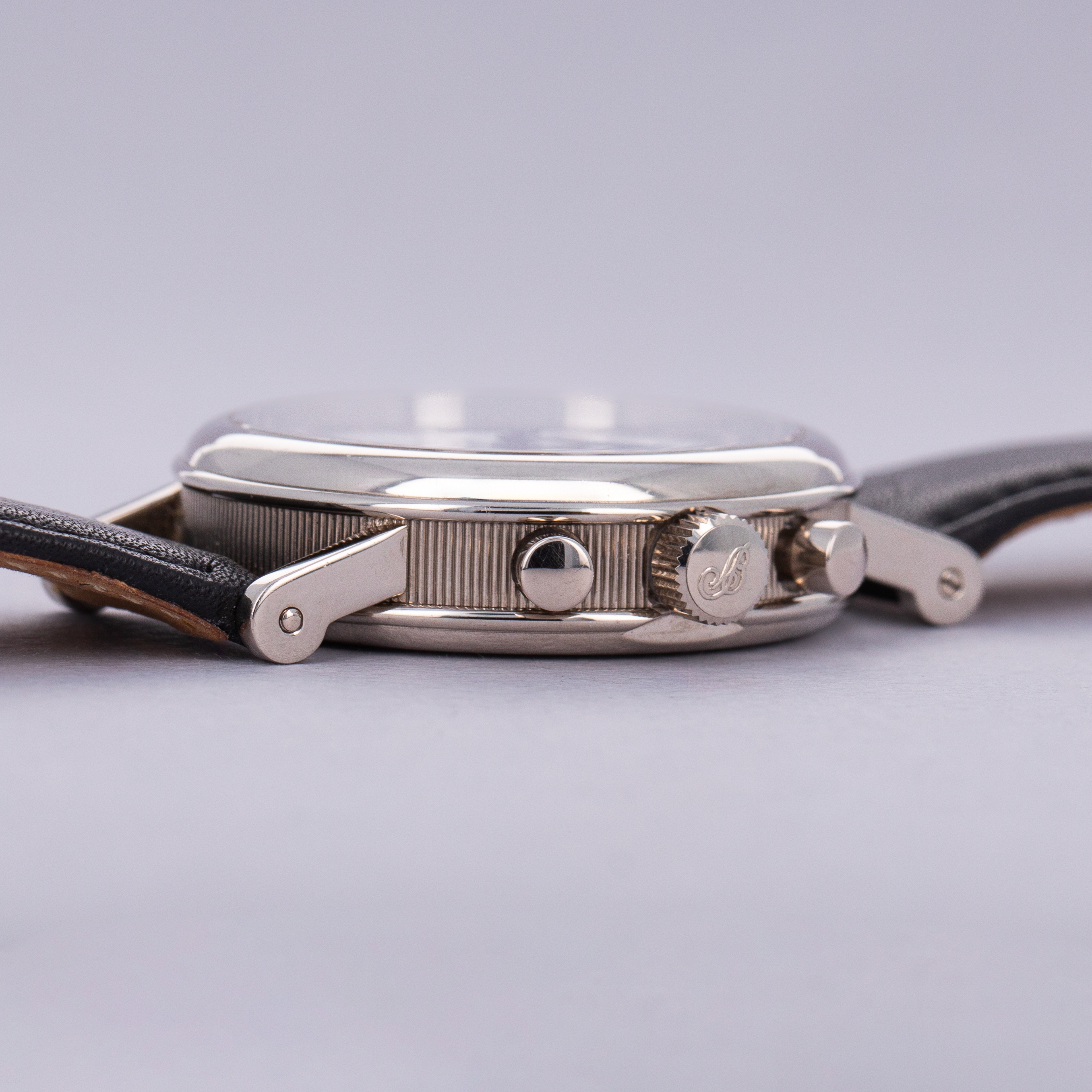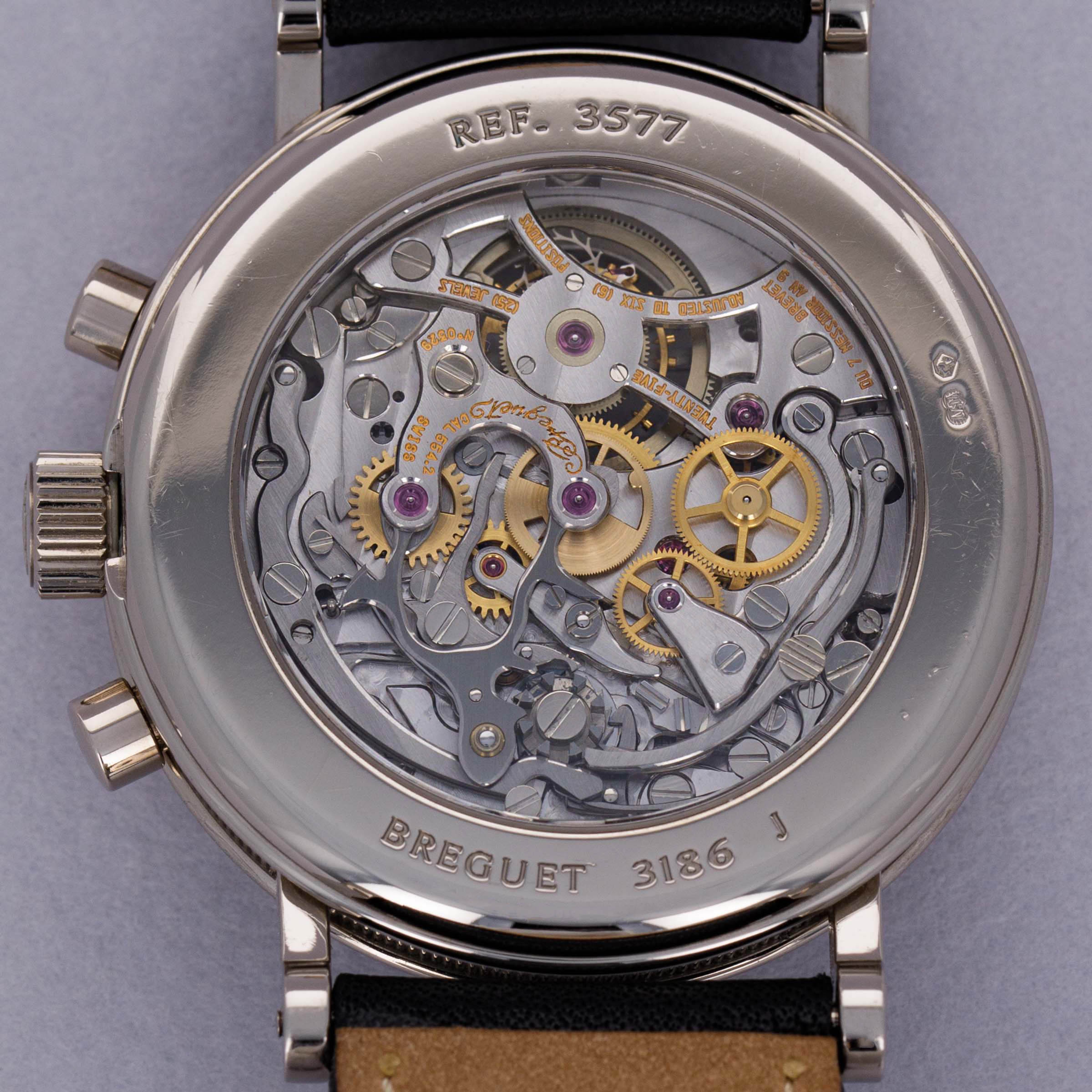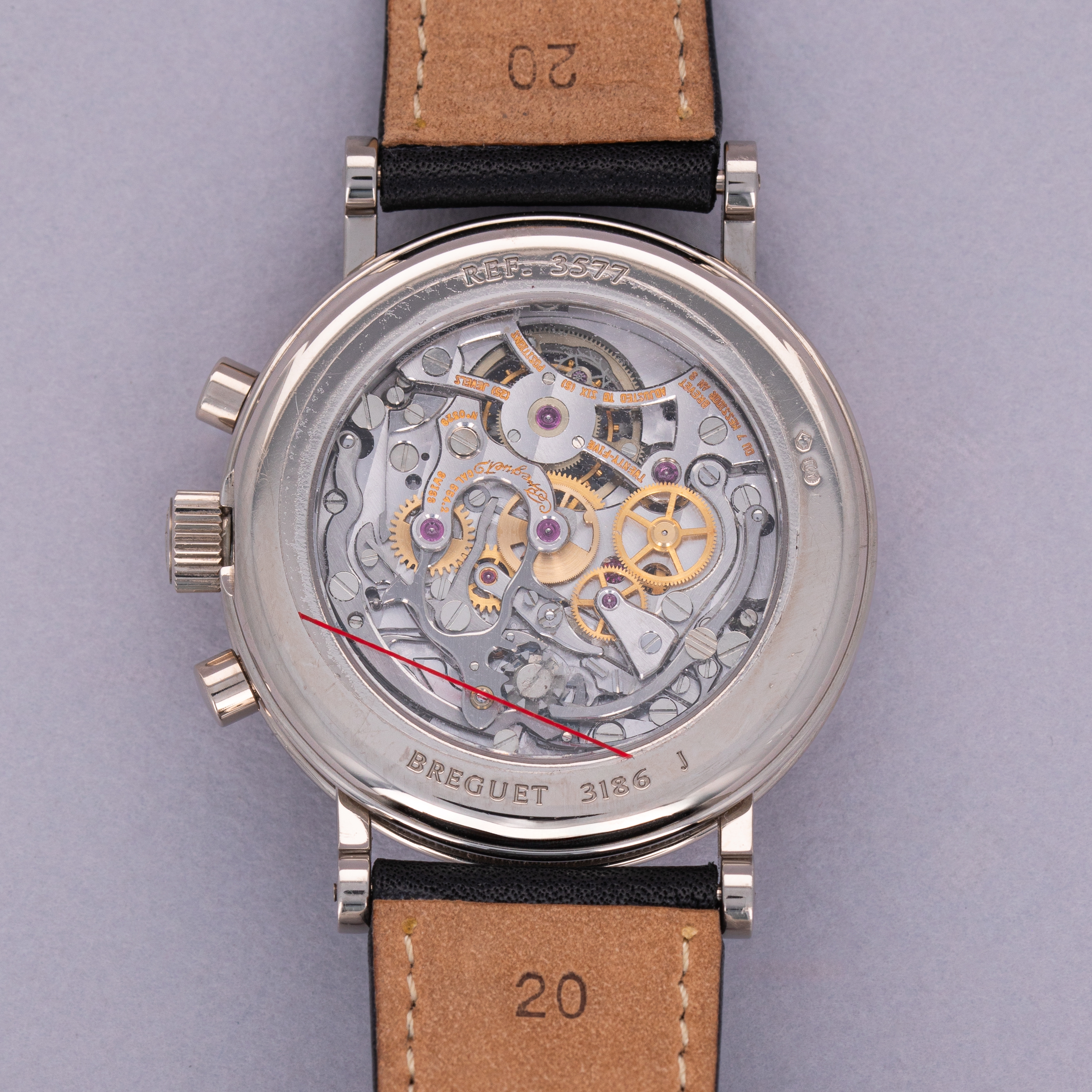 Founded by Abraham-Louis Breguet, one of horology’s most famed watchmakers, Breguet is a brand rooted in classical horological excellence. With such innovations as the tourbillon, the Breguet overcoil and their eponymous ‘Breguet’ hands and even numerals among their impressive list of accolades, Breguet are widely renowned as one of the most influential and important watchmakers in the industry. With a truly remarkable history, Breguet’s timepieces often hark back to the classical period of watchmaking through a traditional aesthetic, and this Classique Tourbillon Chronograph ref. 3577, as its name suggests, is no different. Measuring a wonderfully modern 38.5mm, its perfectly round 18kt white gold case features a polished domed bezel that swoops down to the midcase where it overhangs a coin-edge texture. Matching this level of exuberant detail, the ref. 3577’s stunning silver dial also features a beautiful blend of textures with a clous de paris engraving in its center, concentrically-brushed chapter rings, a basketweave pattern within its 12-hour chronograph subdial at 6 o’clock and a wavy pattern in its 30-minute chronograph subdial at 3 o’clock. Mirroring these subdials are a cartouche holding Breguet’s name at 9 o’clock and a large aperture at 12 o’clock that provides a view of the ref. 3577’s eponymous tourbillon and bridge which combine to leave no ambiguity as to the craftsmanship that has gone into this timepiece, as is also showcased through its exhibition caseback where the ref. 3577’s elaborately engraved movement is on show. An elegantly styled timepiece with an incredible amount of work gone into it, the Classique Tourbillon Chronograph is undoubtedly Breguet at their finest.