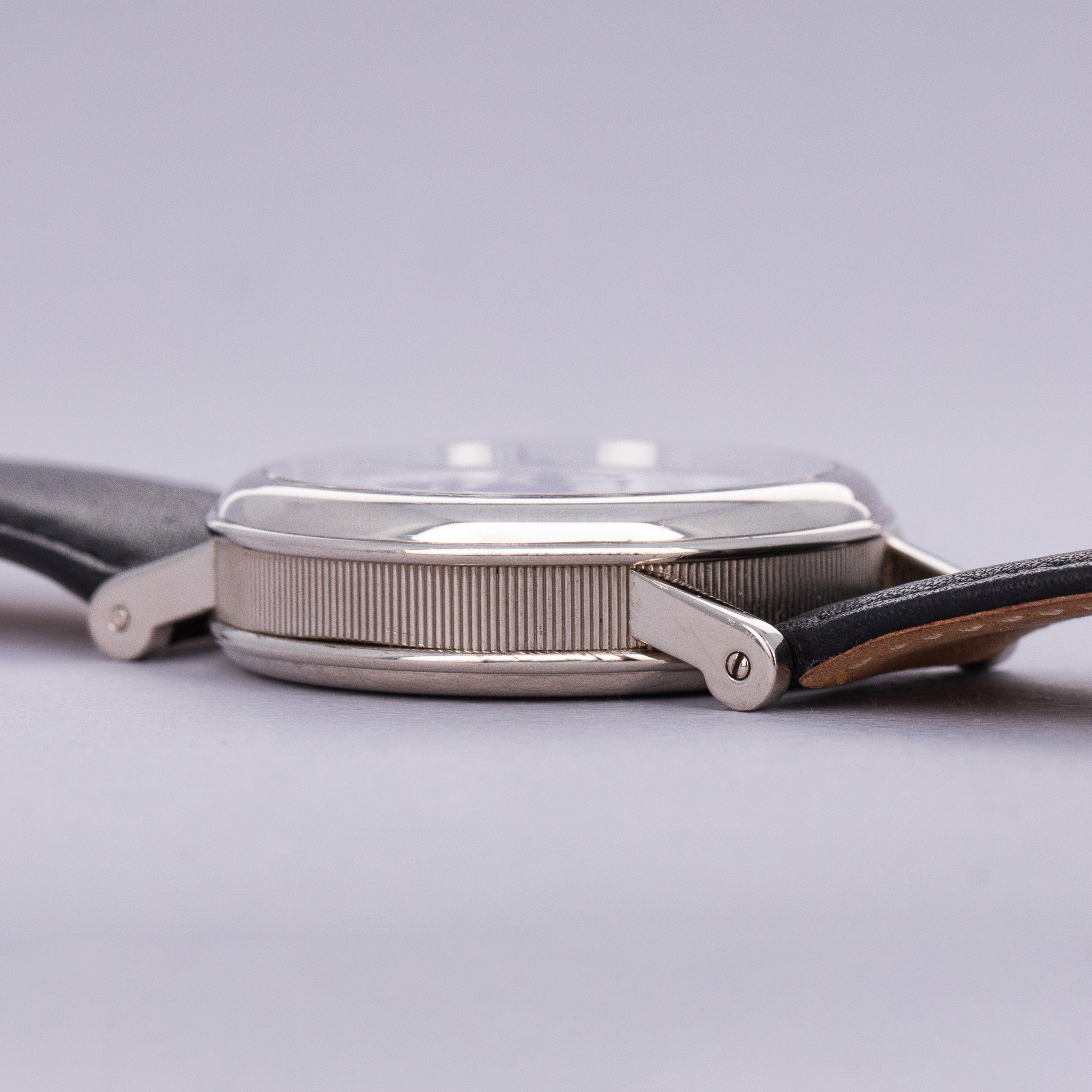 Perfectly sized by today's standards at 38.5mm, the Classique Tourbillon Chronograph remains classical in its construction, with an 18kt white gold case that takes direct inspiration from mid-century dress watches via its coin-edge textured midcase, straight lugs and pump pushers.
