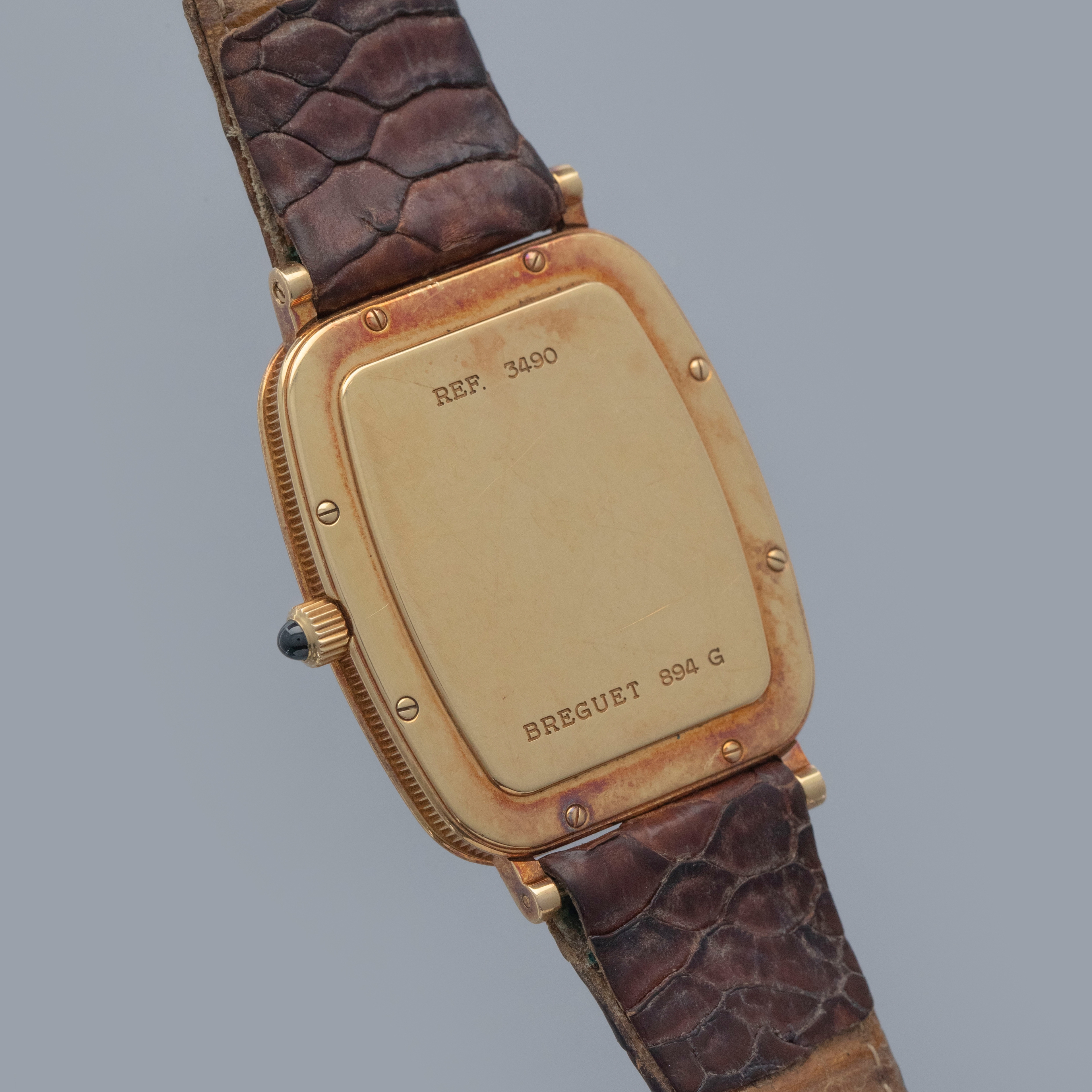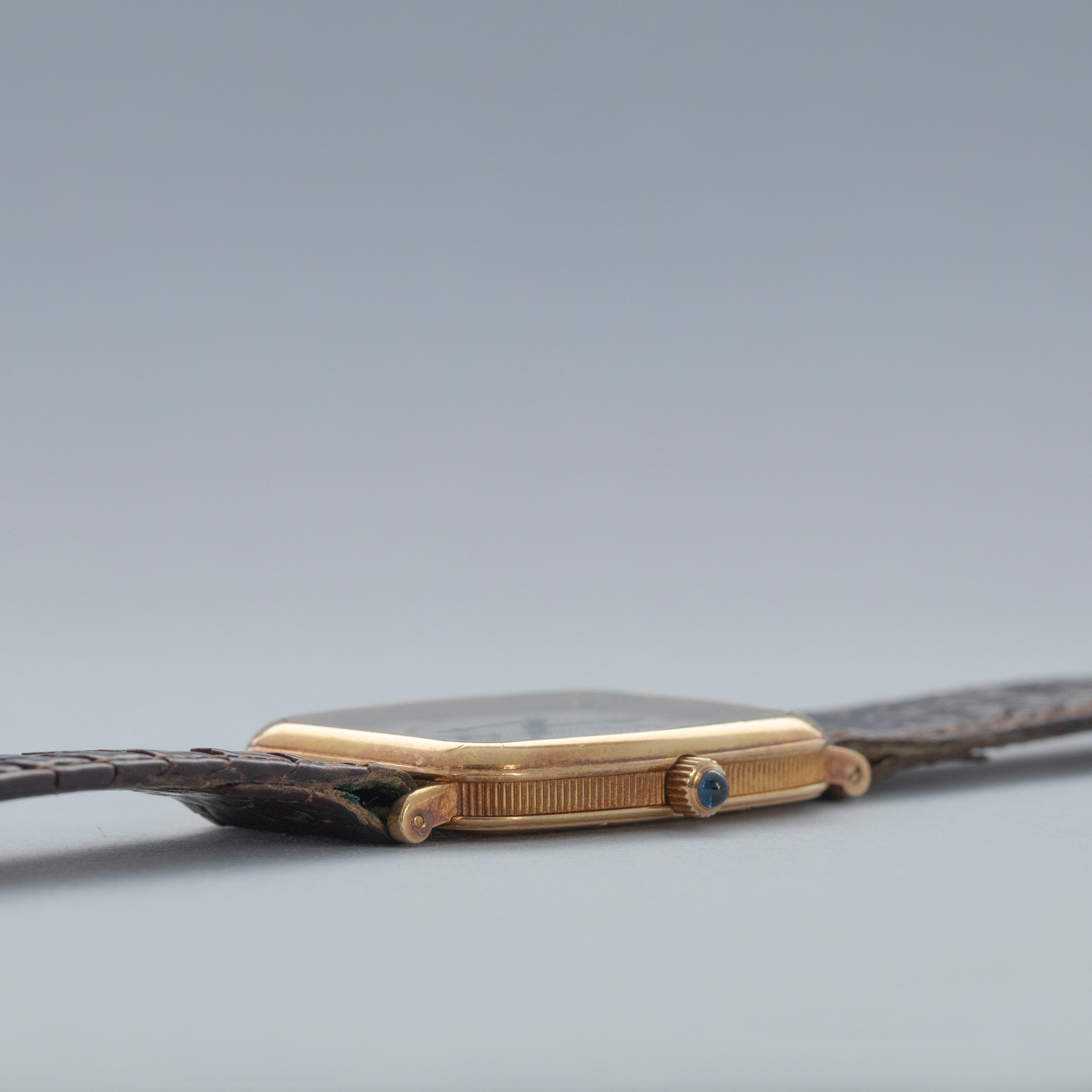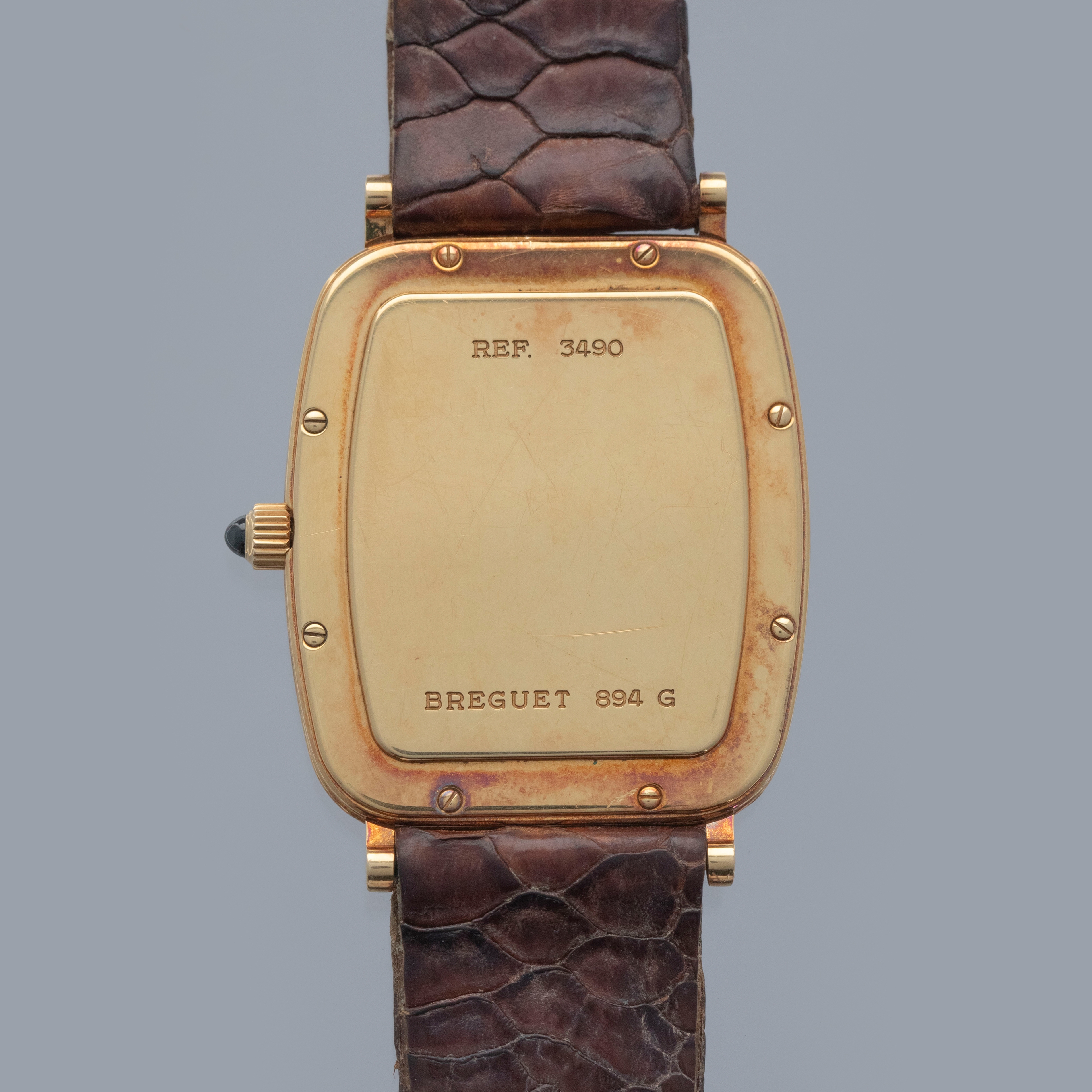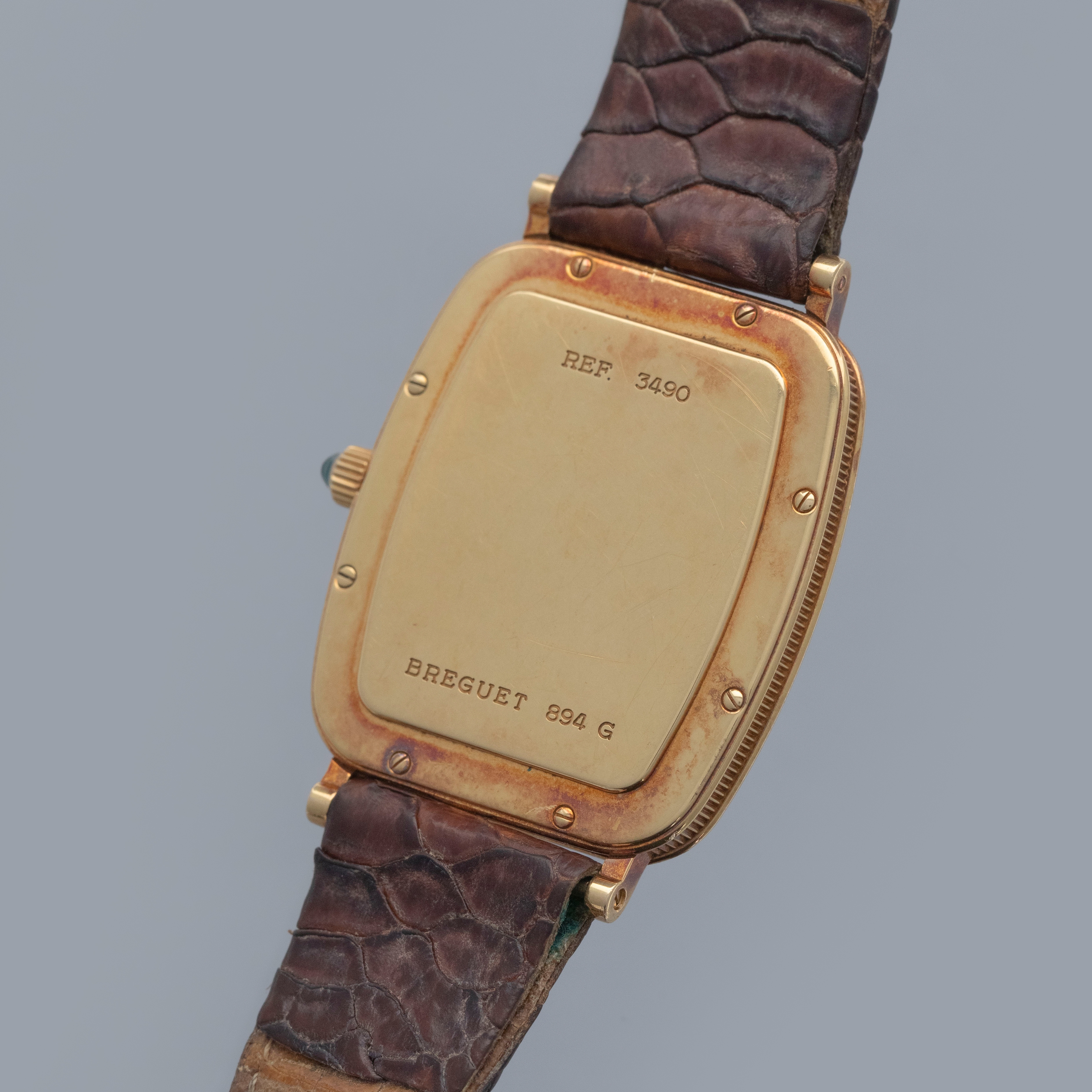 Watch is in overall excellent condition. The yellow gold case remains well defined, with surface scratches and small nicks, and has developed a pleasing patina. The case back shows surface scratches and retains crisp stamps. The dial remains excellent, with a couple of light surface marks, while the blued Breguet hands remain very clean. It is fitted with a brown crocodile strap in good condition and an excellent Breguet yellow gold buckle.