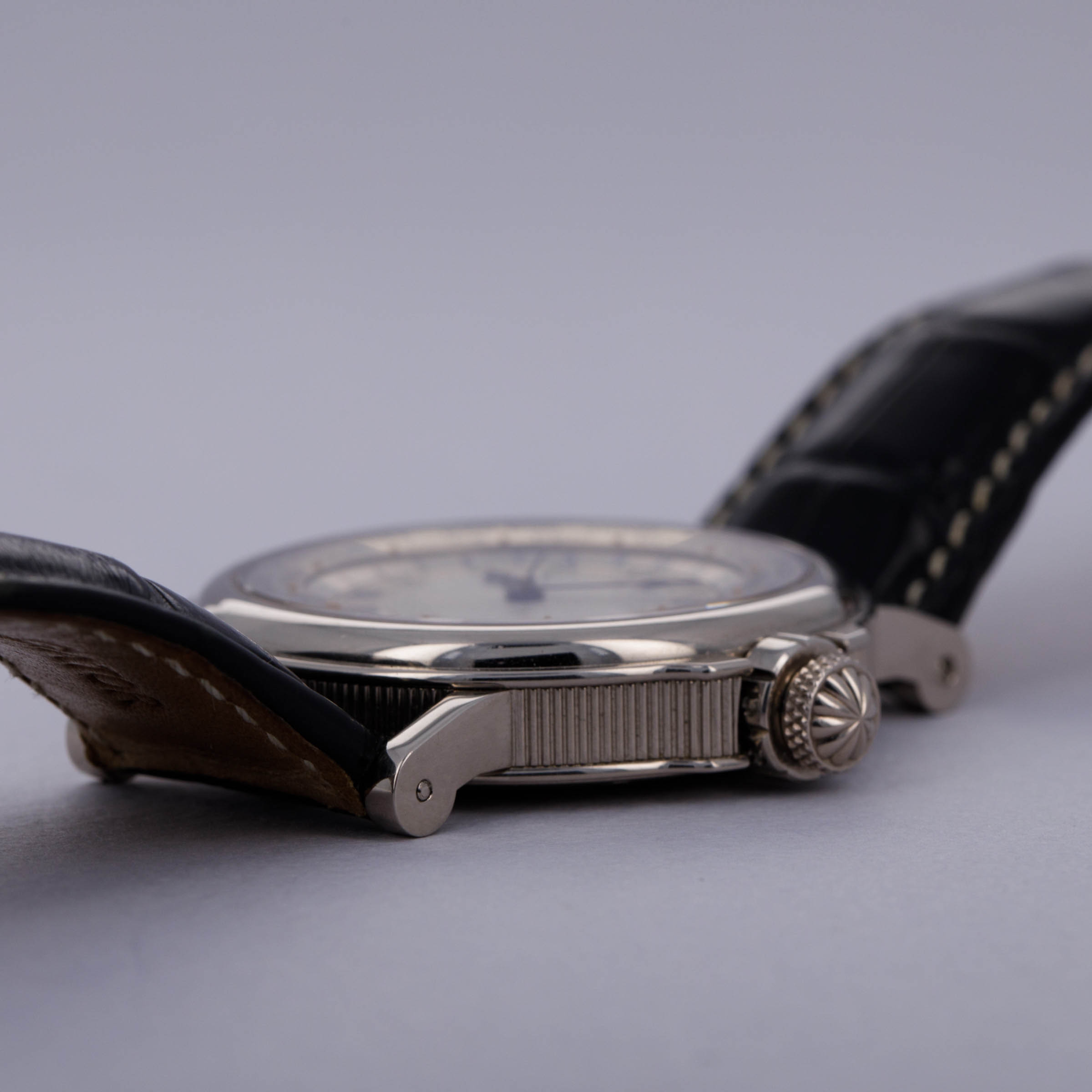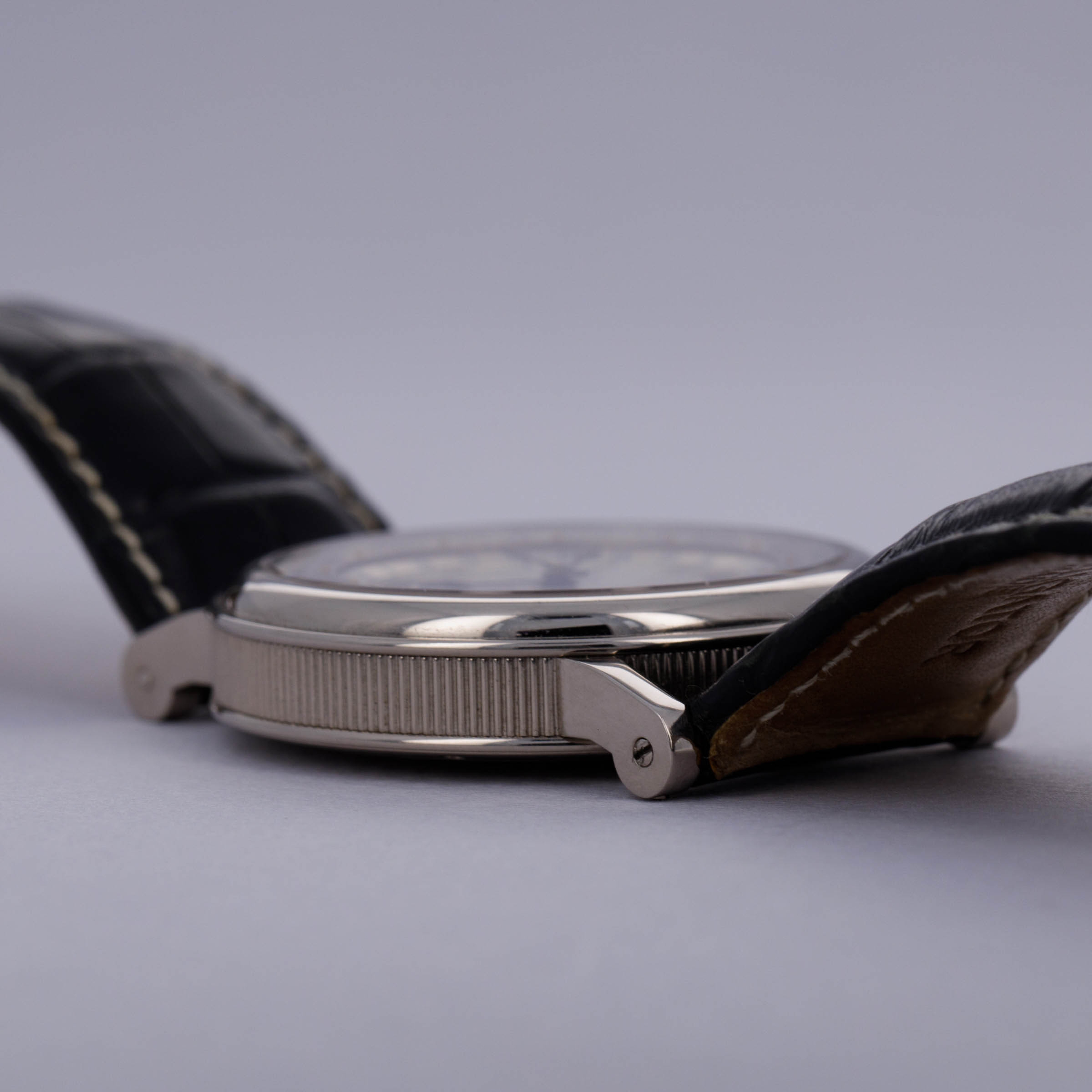 Watch is in excellent overall condition. Case exhibits minor signs of surface wear, with no significant scratches or marks. The guilloche dial in near-mint condition, with no defects or aging visible to the naked eye. The watch comes on a worn original strap and 18k wg deployment buckle. Watch comes with its undated but guarantee certificate, a manual as well as the original hang tag.