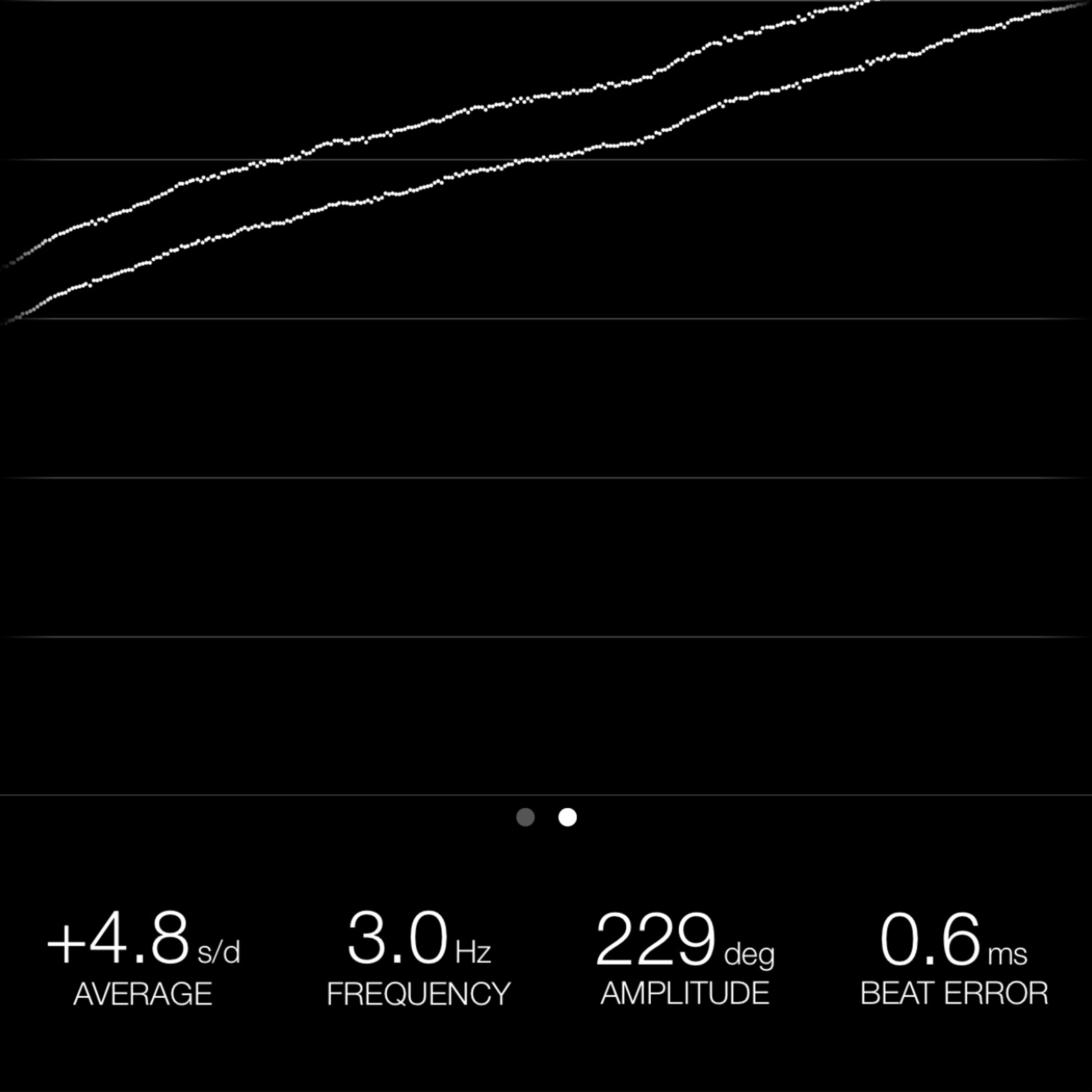 This reading was taken (crown down) with a ONEOF Accuracy Boutique Edition timing machine at time of cataloging. It is provided as a courtesy only, and shall not be construed as a warranty or guarantee of any kind. Please refer to our terms and conditions of sale for more information.