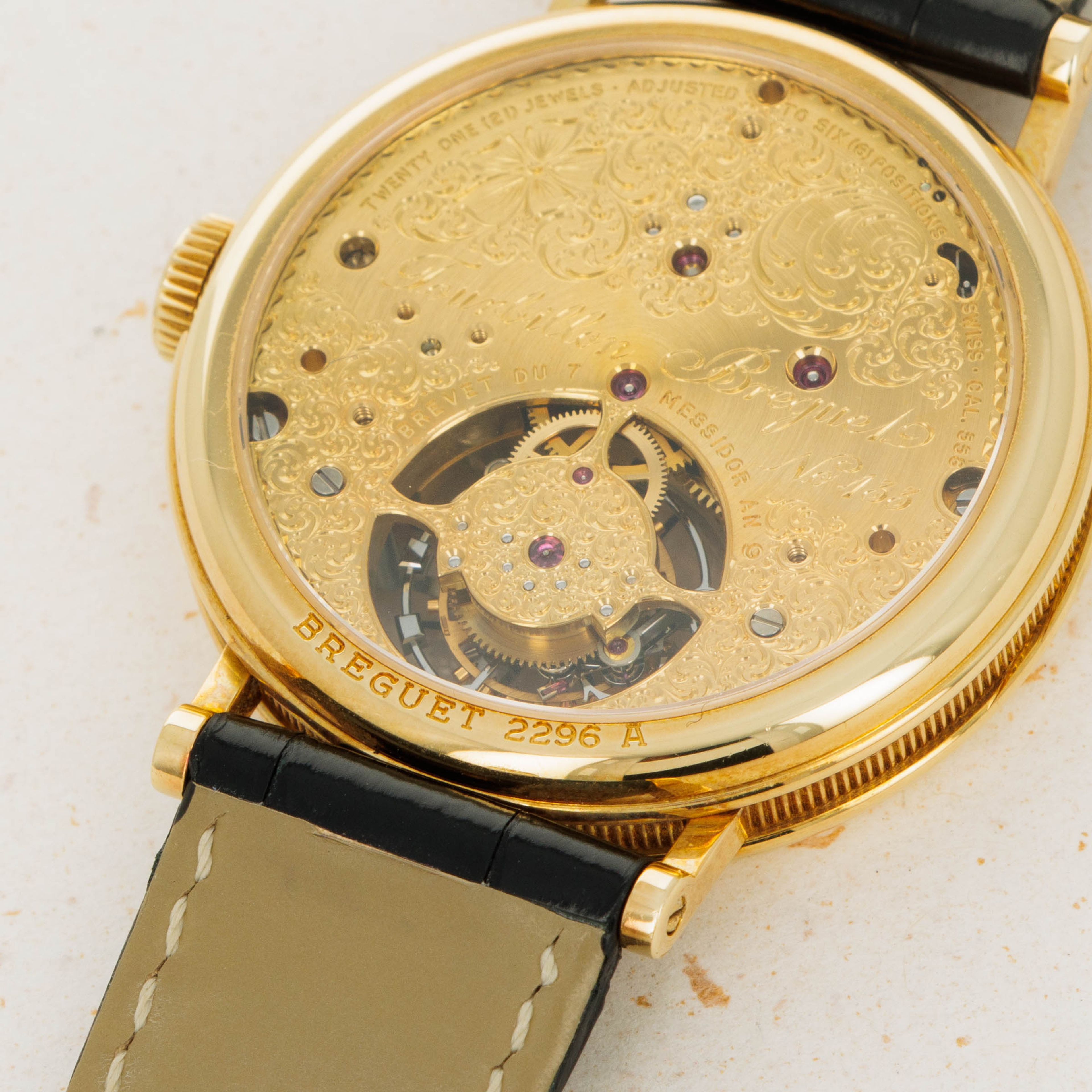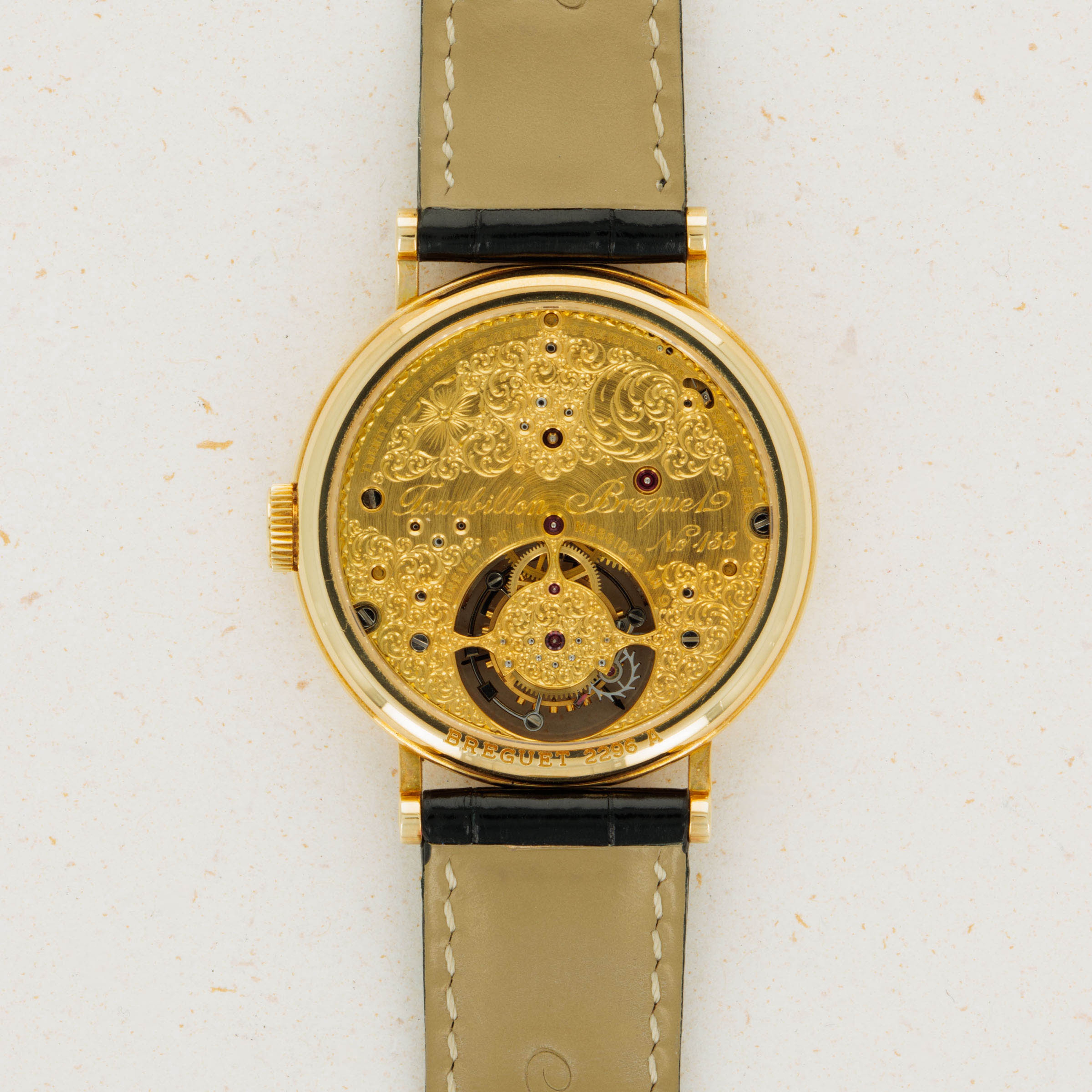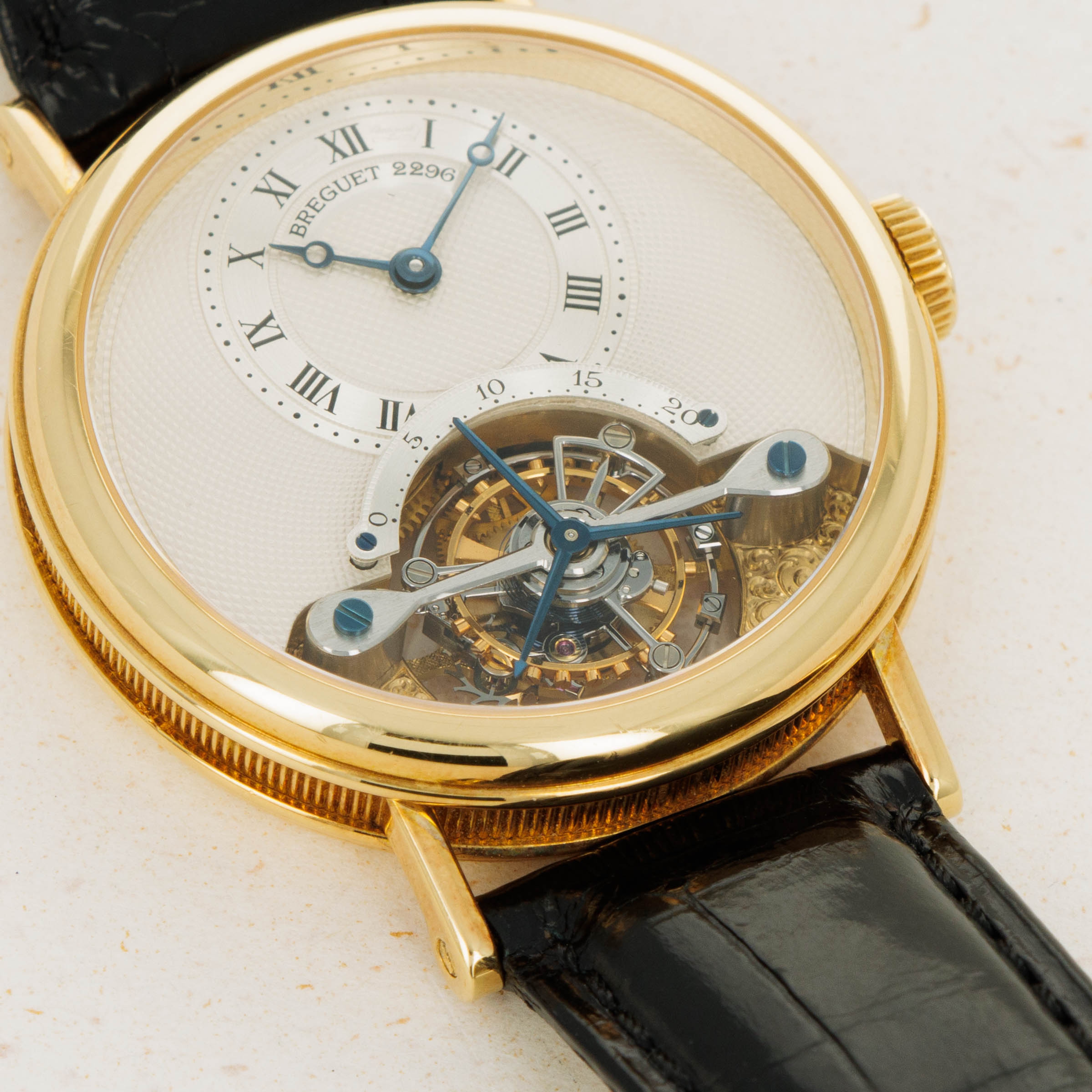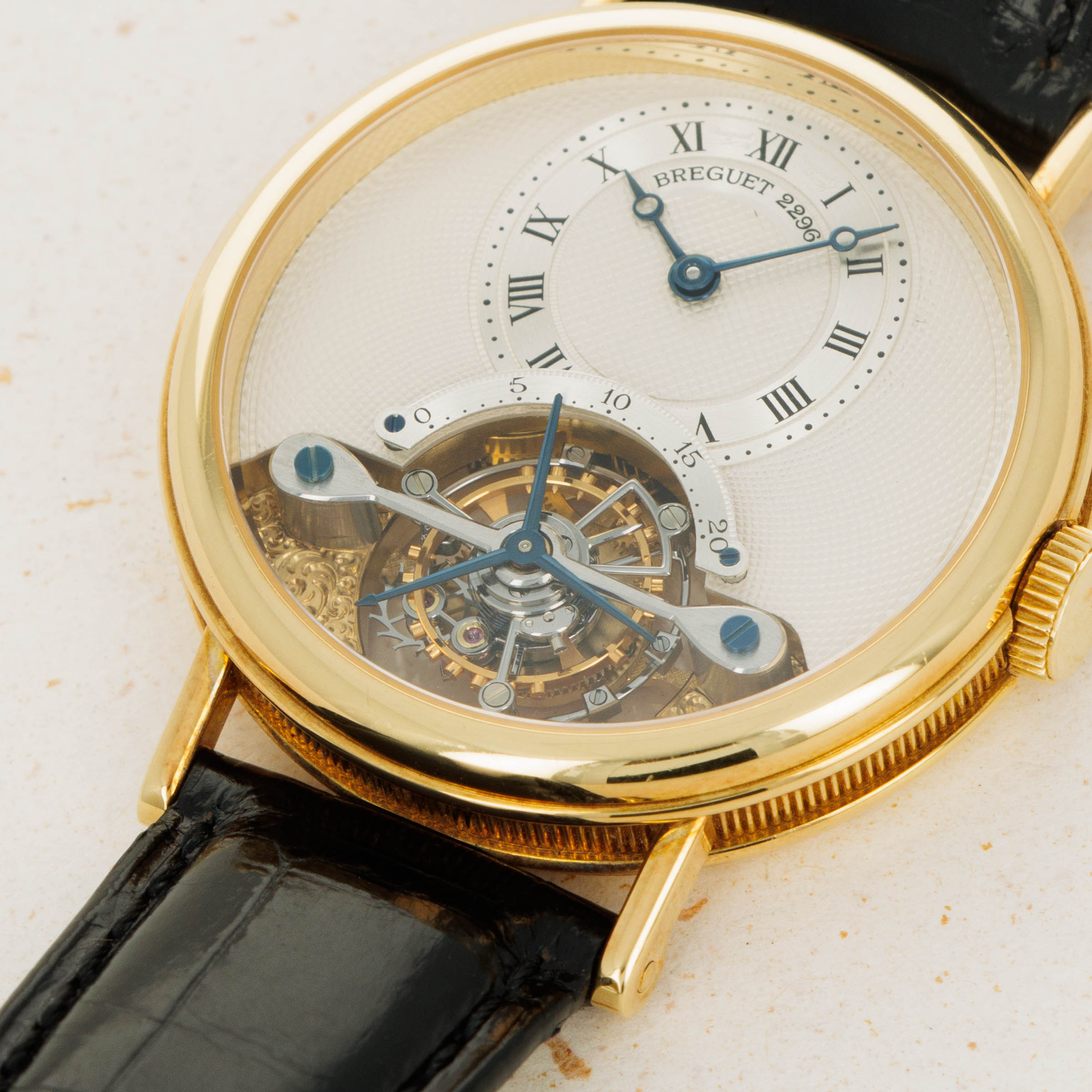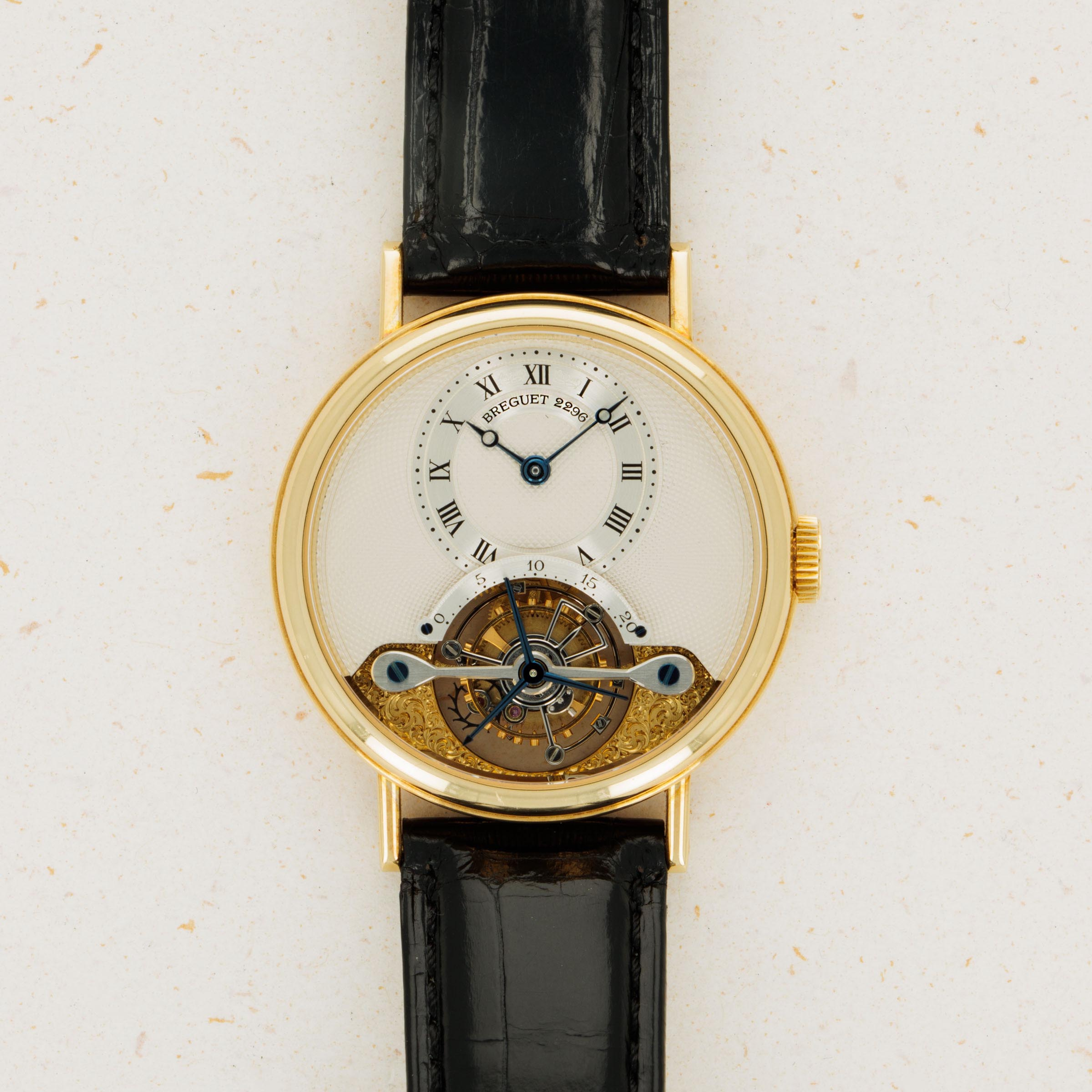 Designed under the guidance of Daniel Roth to capture the Breguet aesthetic in wristwatch form, the ref. 3350 combines its coin-edge, Breguet hands, engine-turned guilloche dial and tourbillon to epitomise everything Bregeut has given modern watchmaking.