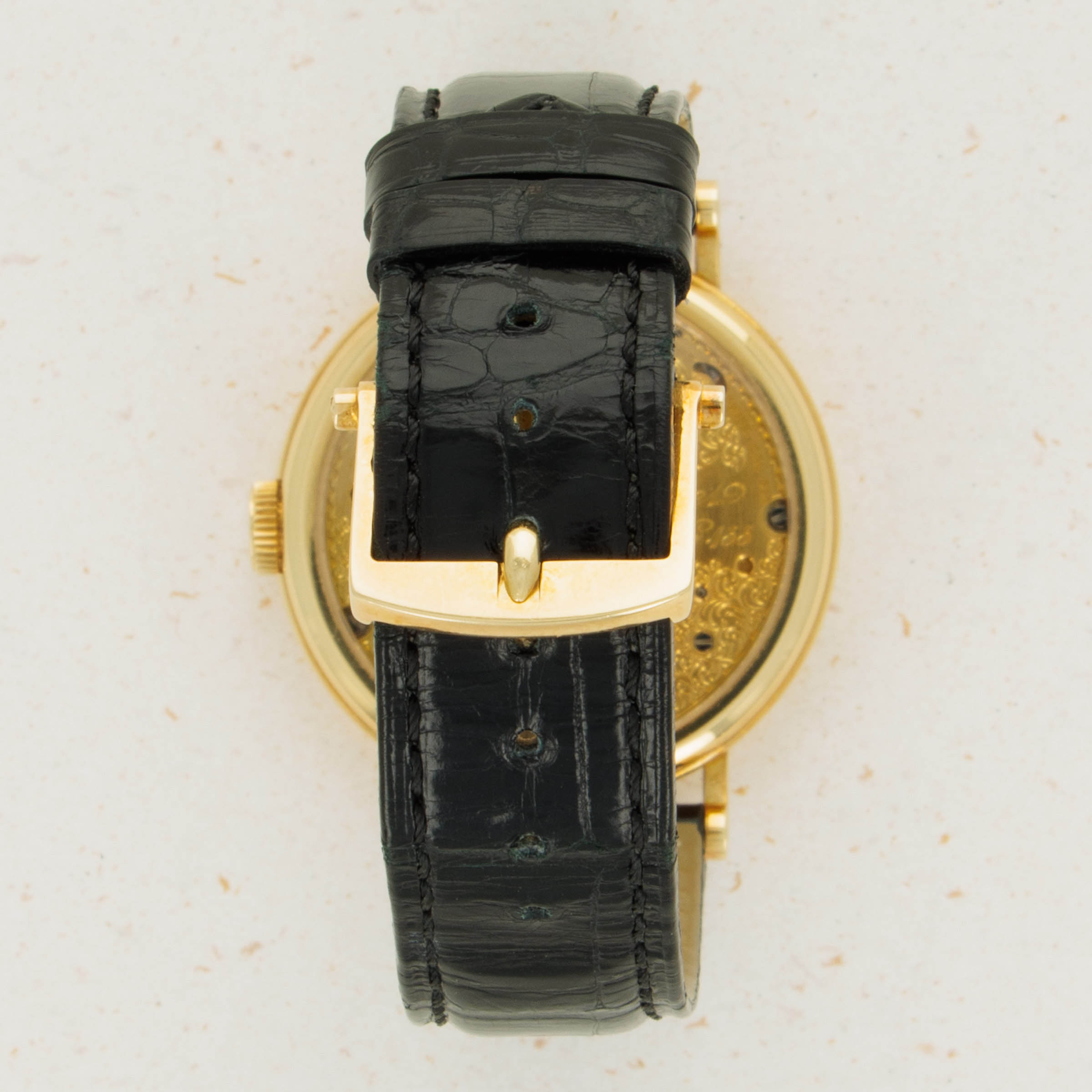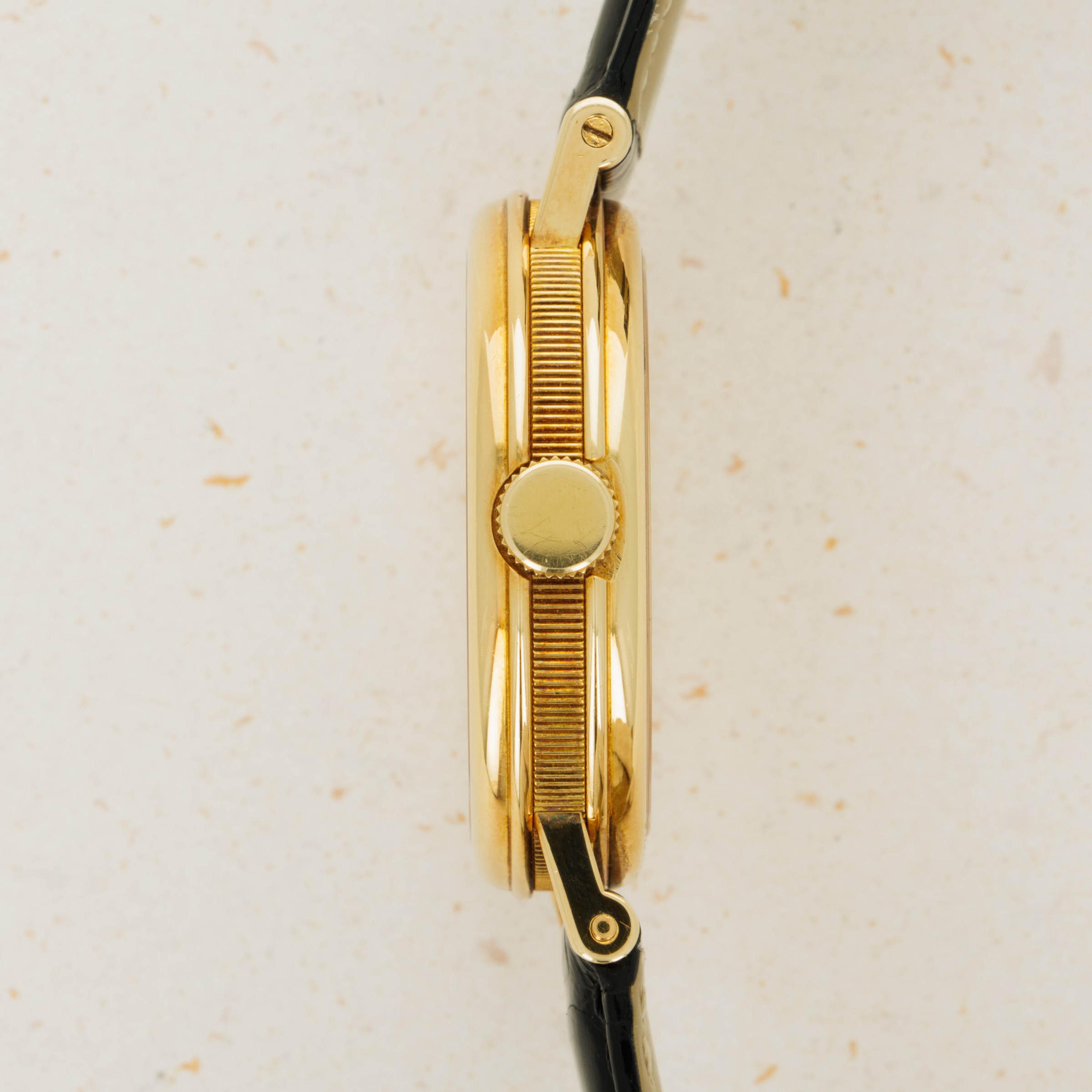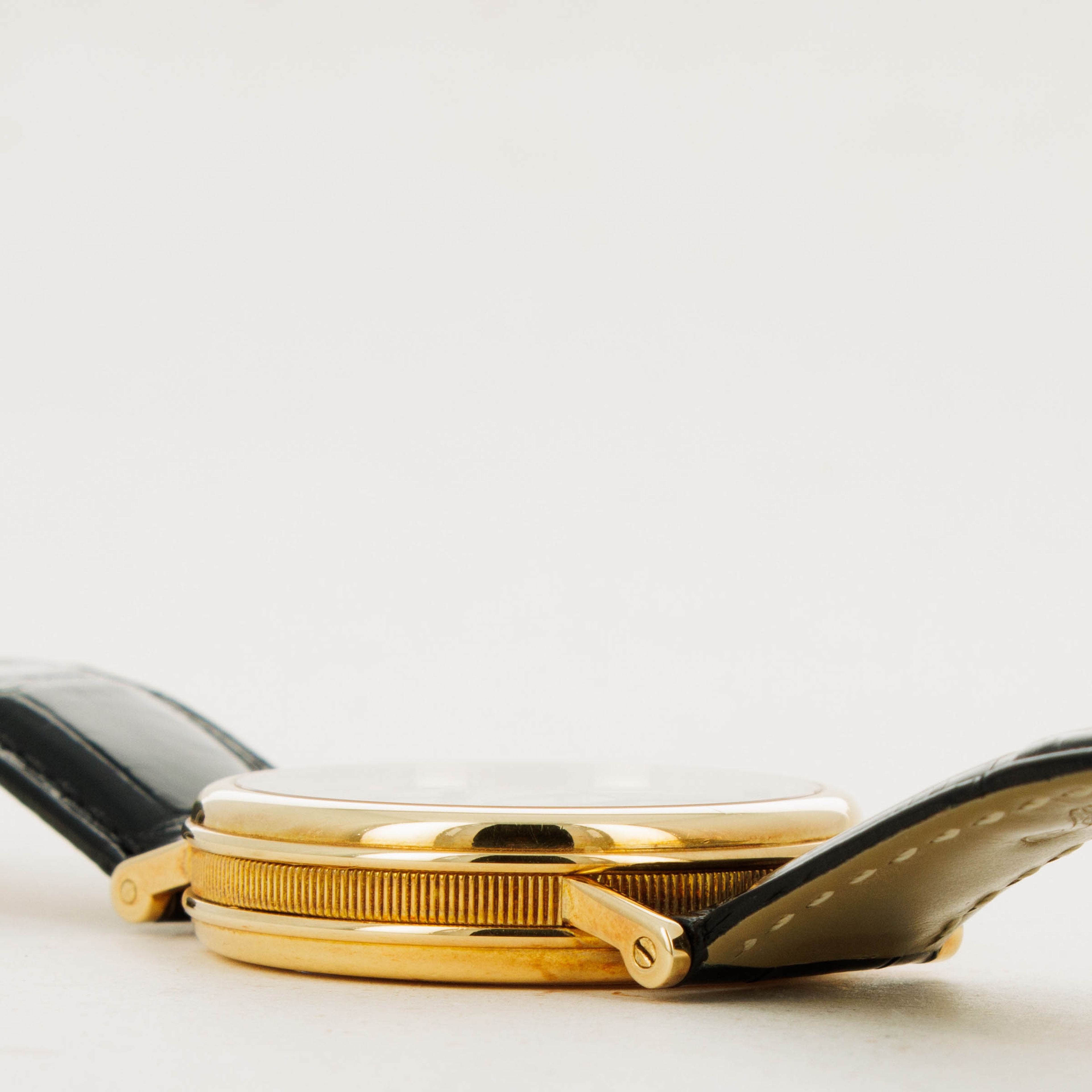 Watch is in excellent overall condition. Case exhibits superficial wear, primarily visible along the polished bezel. Guilloche dial in near-mint condition.