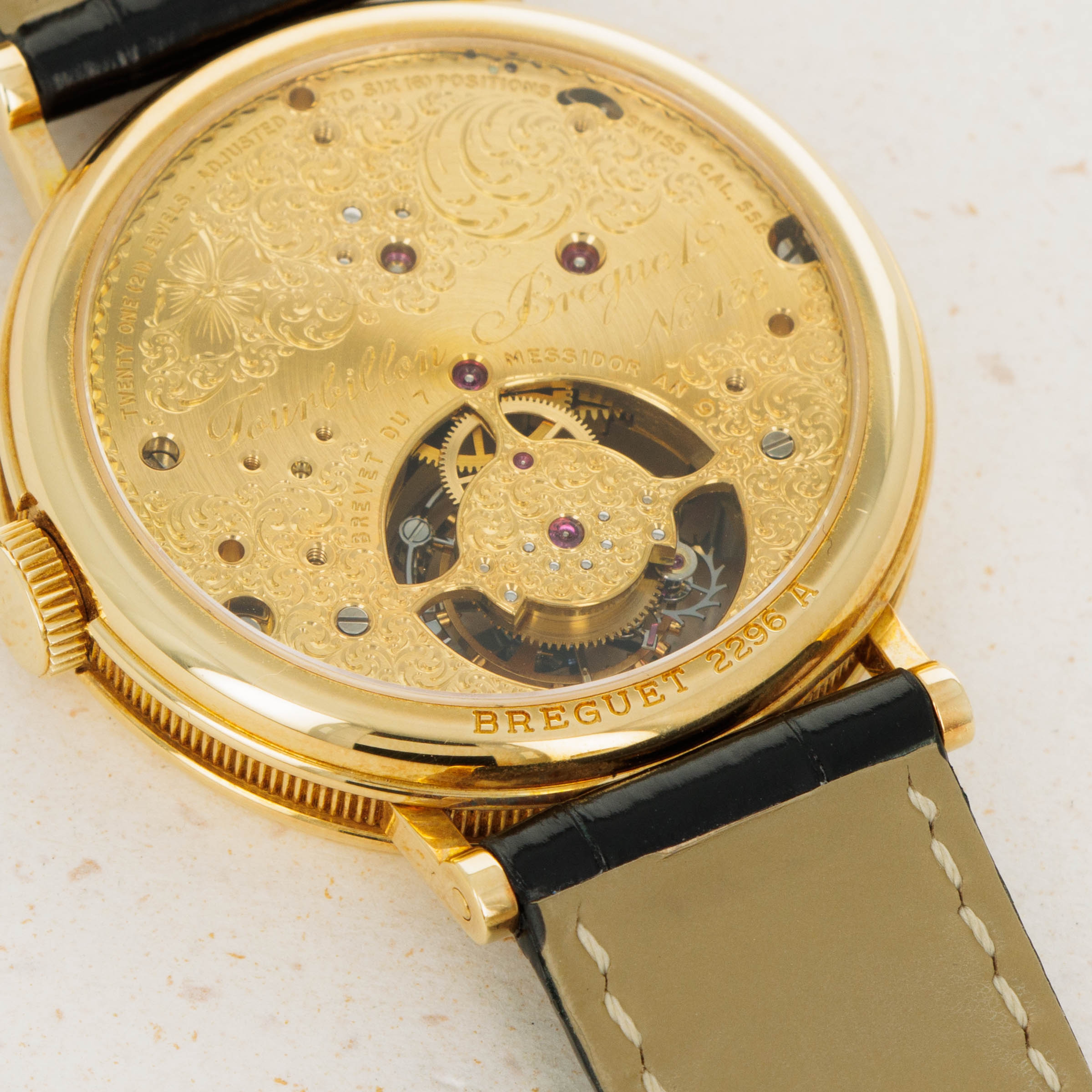 Typically Breguet in its construction, the ref. 3350 features a 36mm 18kt yellow gold case that takes direct inspiration from mid-century dress watches via its sizing and coin-edge textured midcase - all of which are signatures of Bregeut's aesthetic.