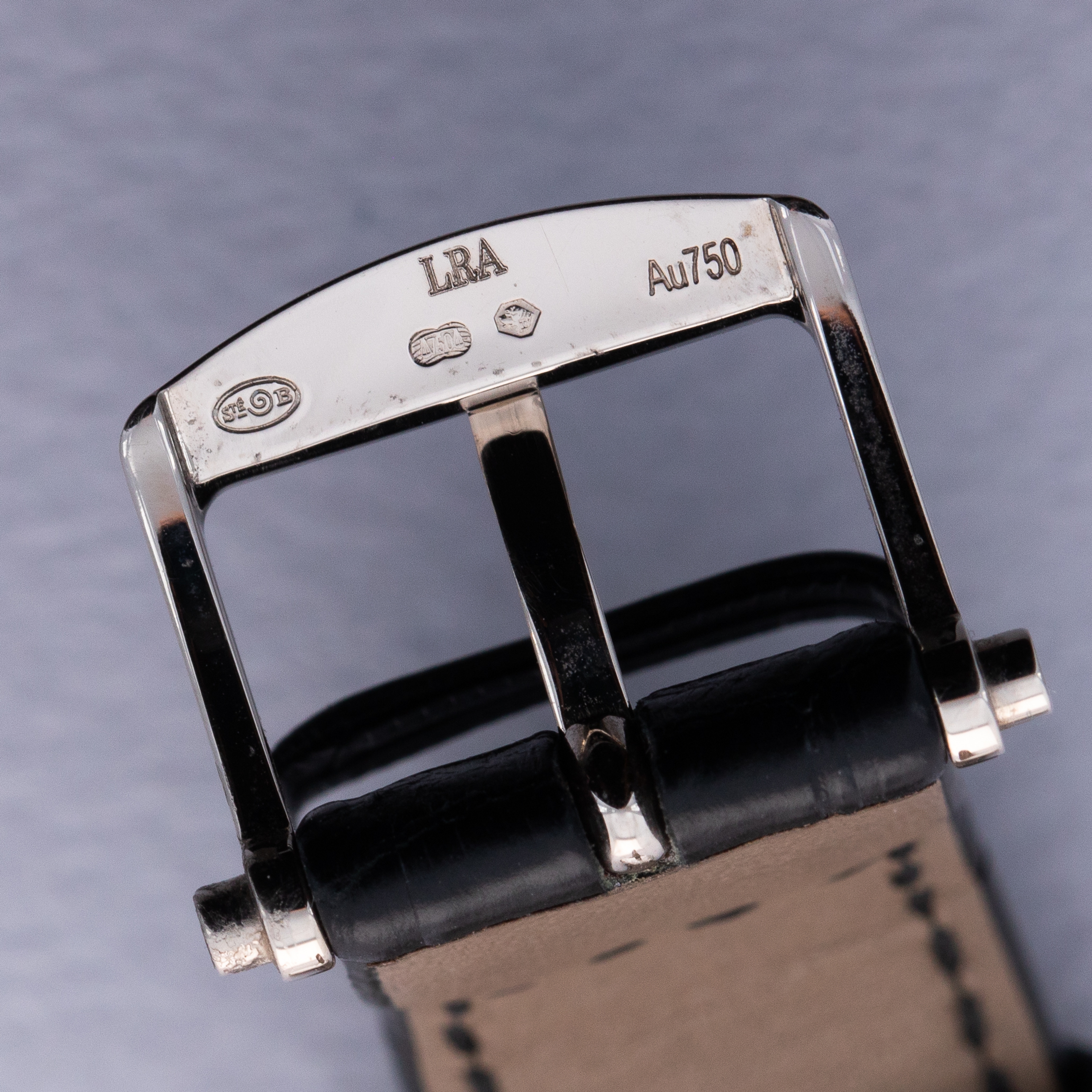 Providing an unencumbered view of its anthracite movement, the La Tradition features a small engine turned black dial at 12 o'clock, with a power reserve indicator just off it at 10 o'clock set on the movement itself.