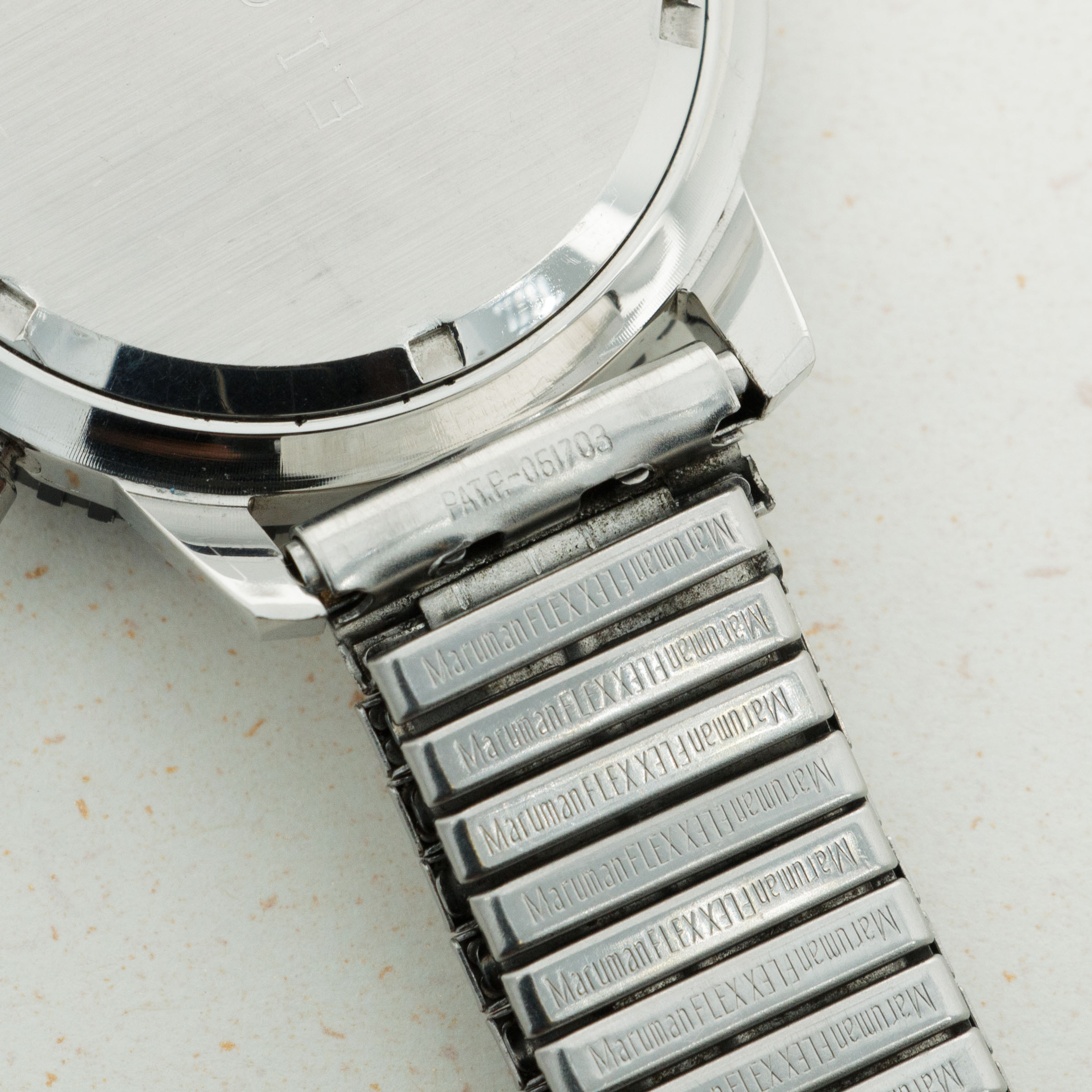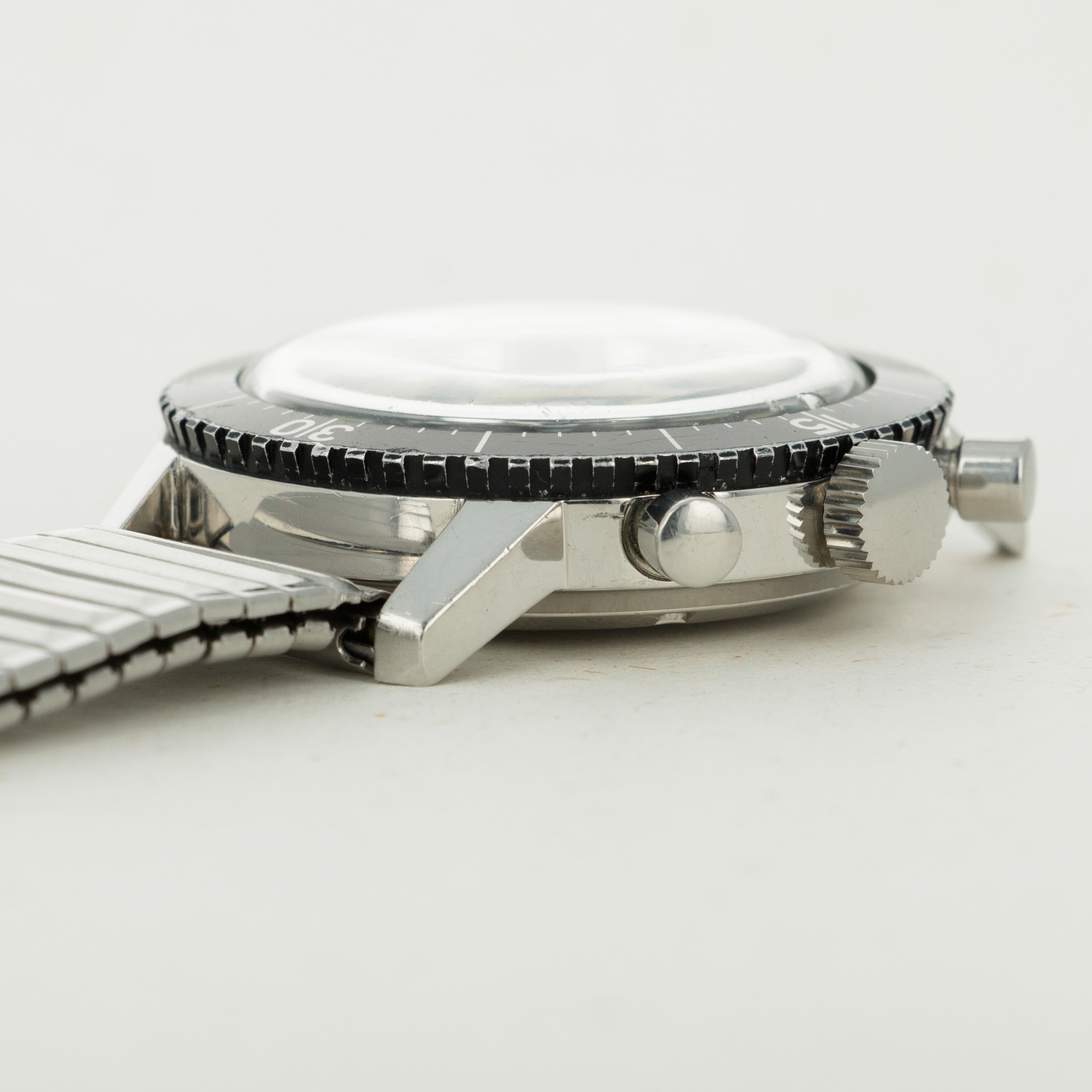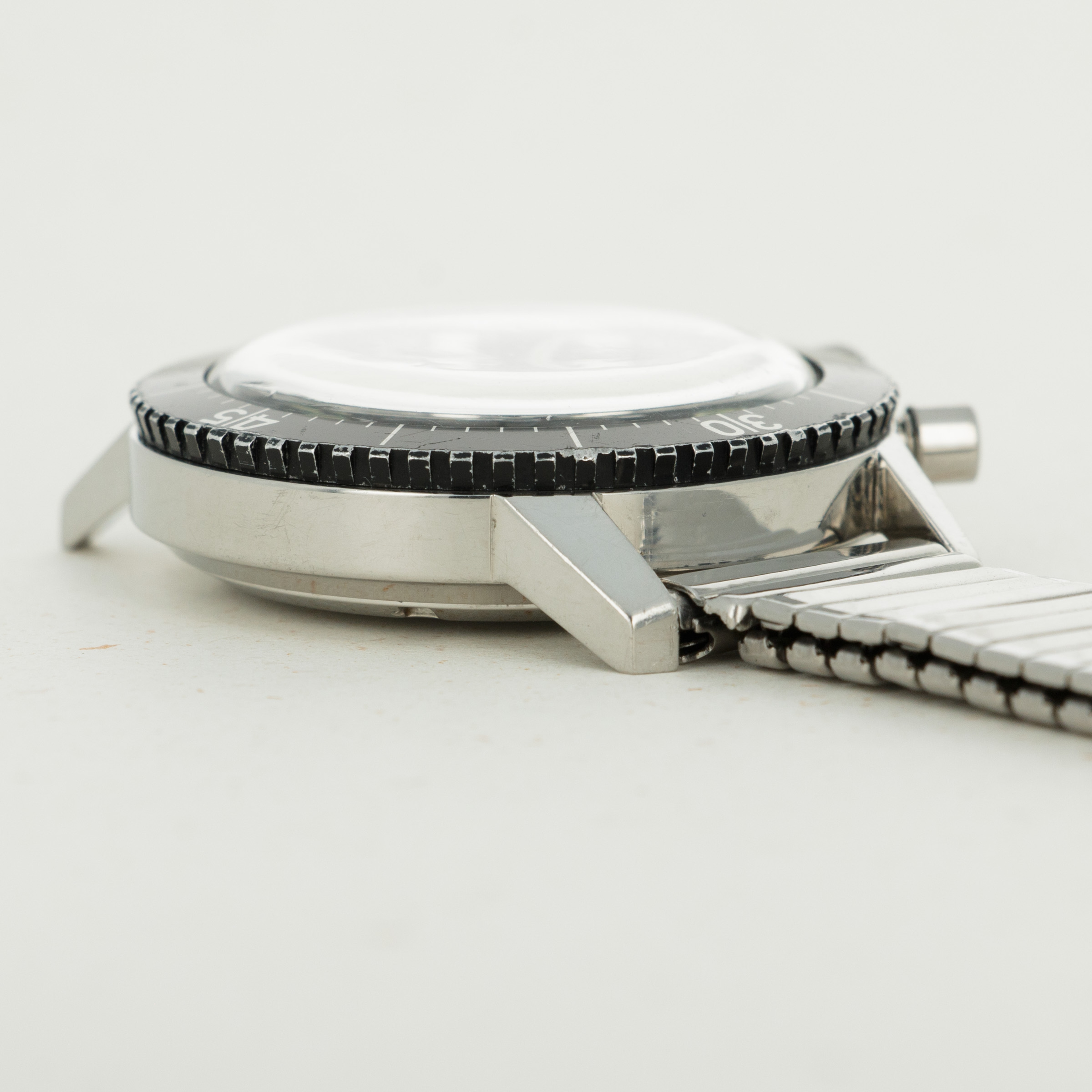 The overall condition is excellent. Dial appears to be untouched, and is in mint condition. Minute hand has a small crack through the luminous. Bezel has surface abrasions throughout. Case is in mint condition with sharp edges. Caseback still has the number clearly visible. Stretch band fits a 7+ inch wrist comfortably.