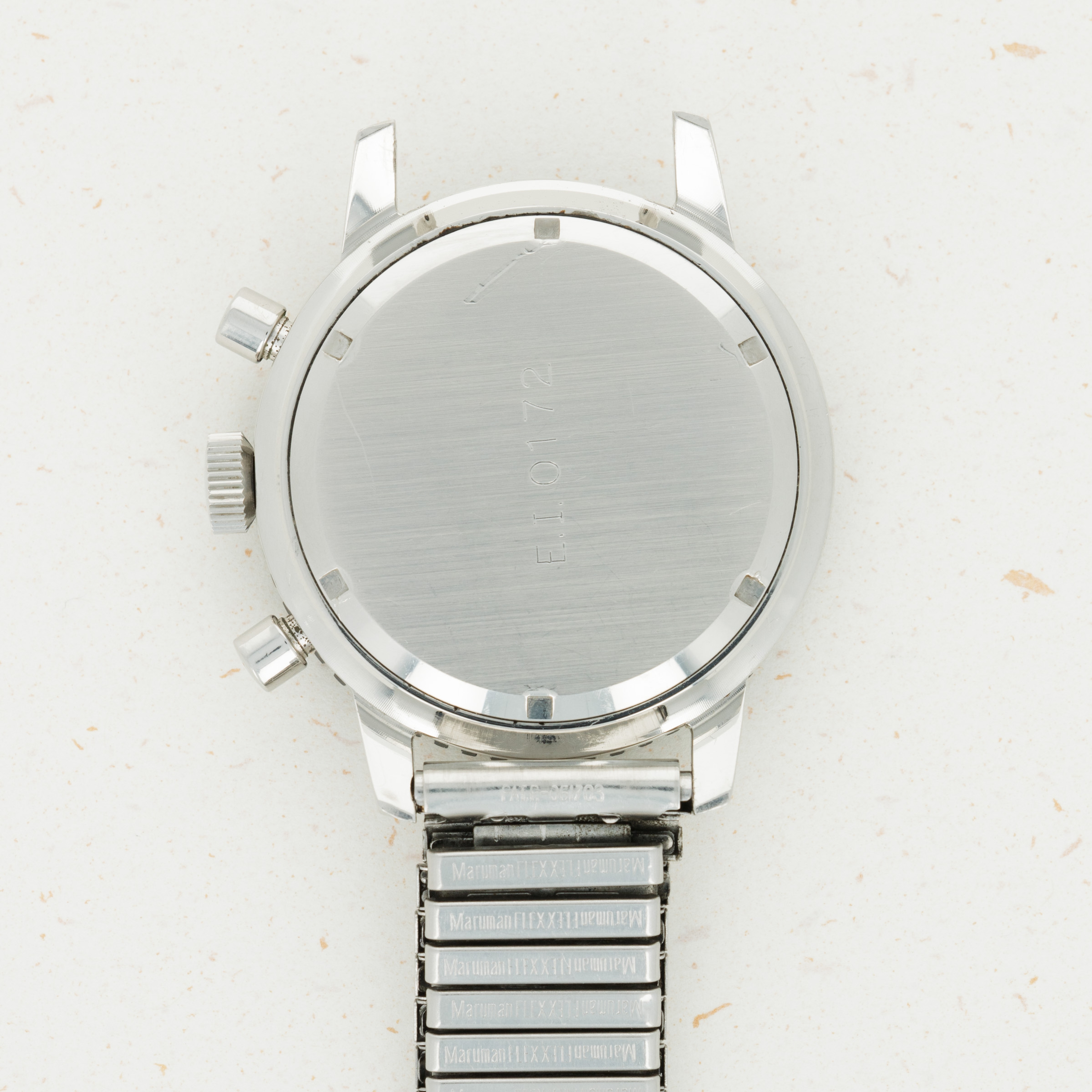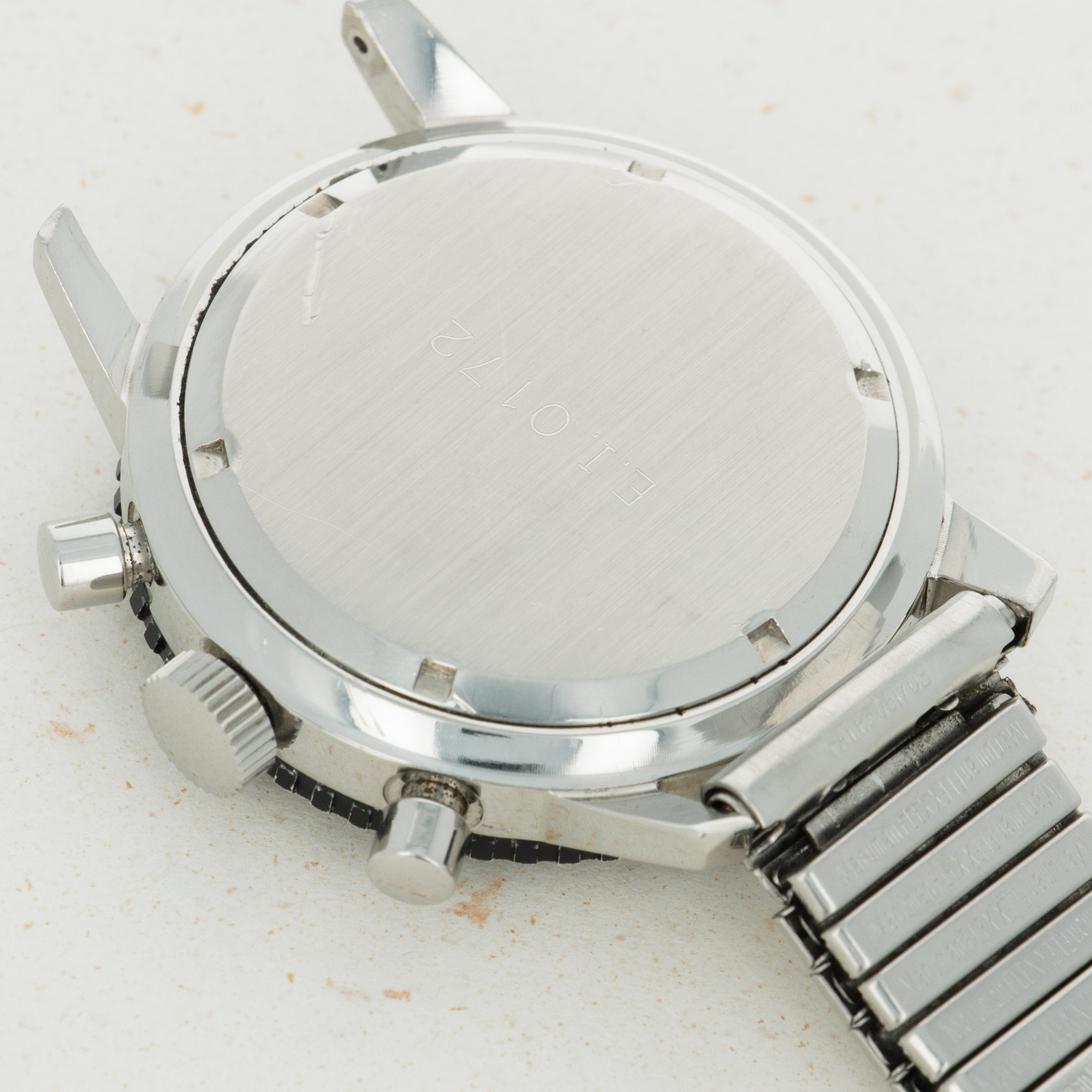 While very faint due to wear, the ref. 817's screw-down caseback contains its military engraving. It reads “E.I” (Esercito Italiano, or "Italian Army" in English) along with its military stock number.