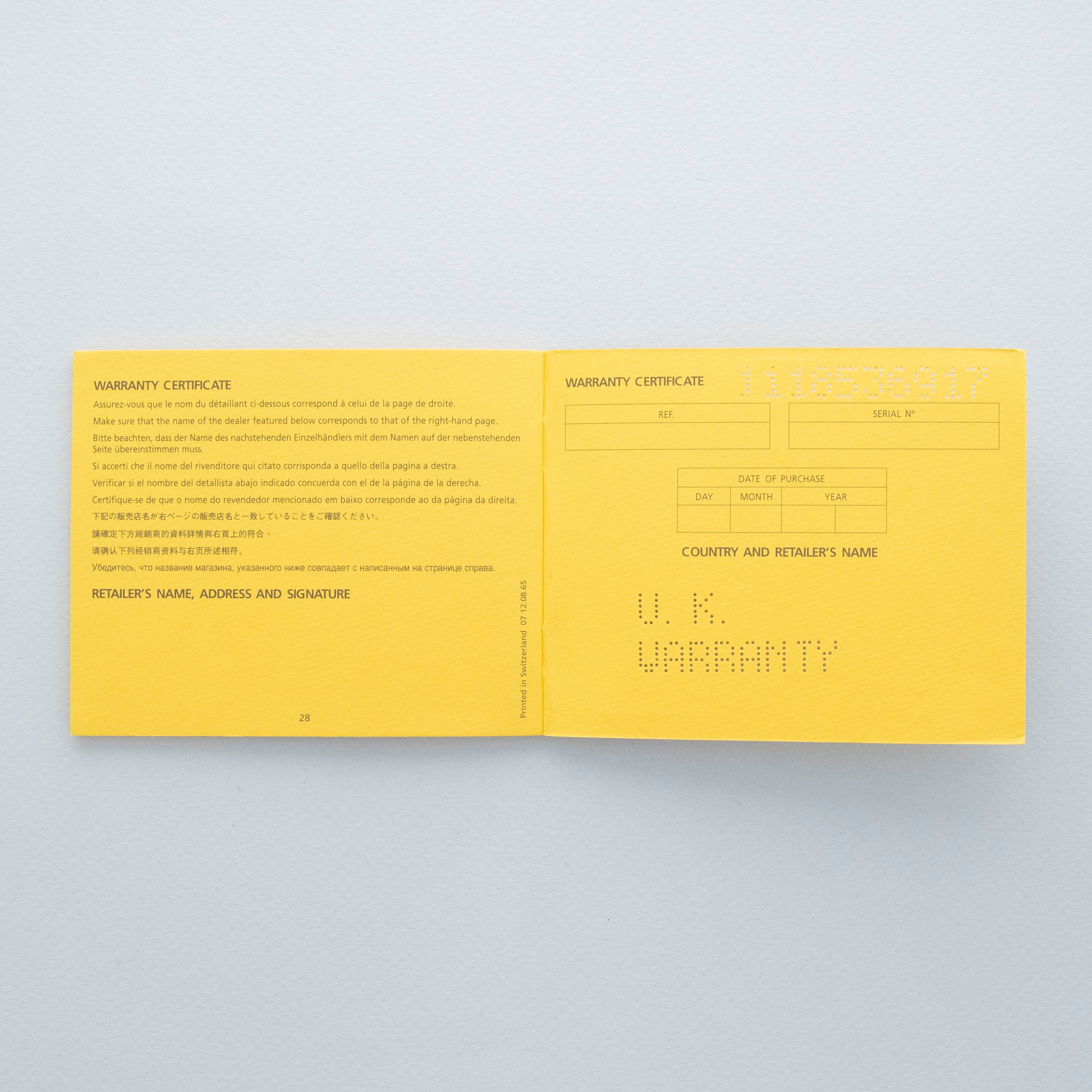 Watch, Box and Blank Guarantee Papers, Hang Tag