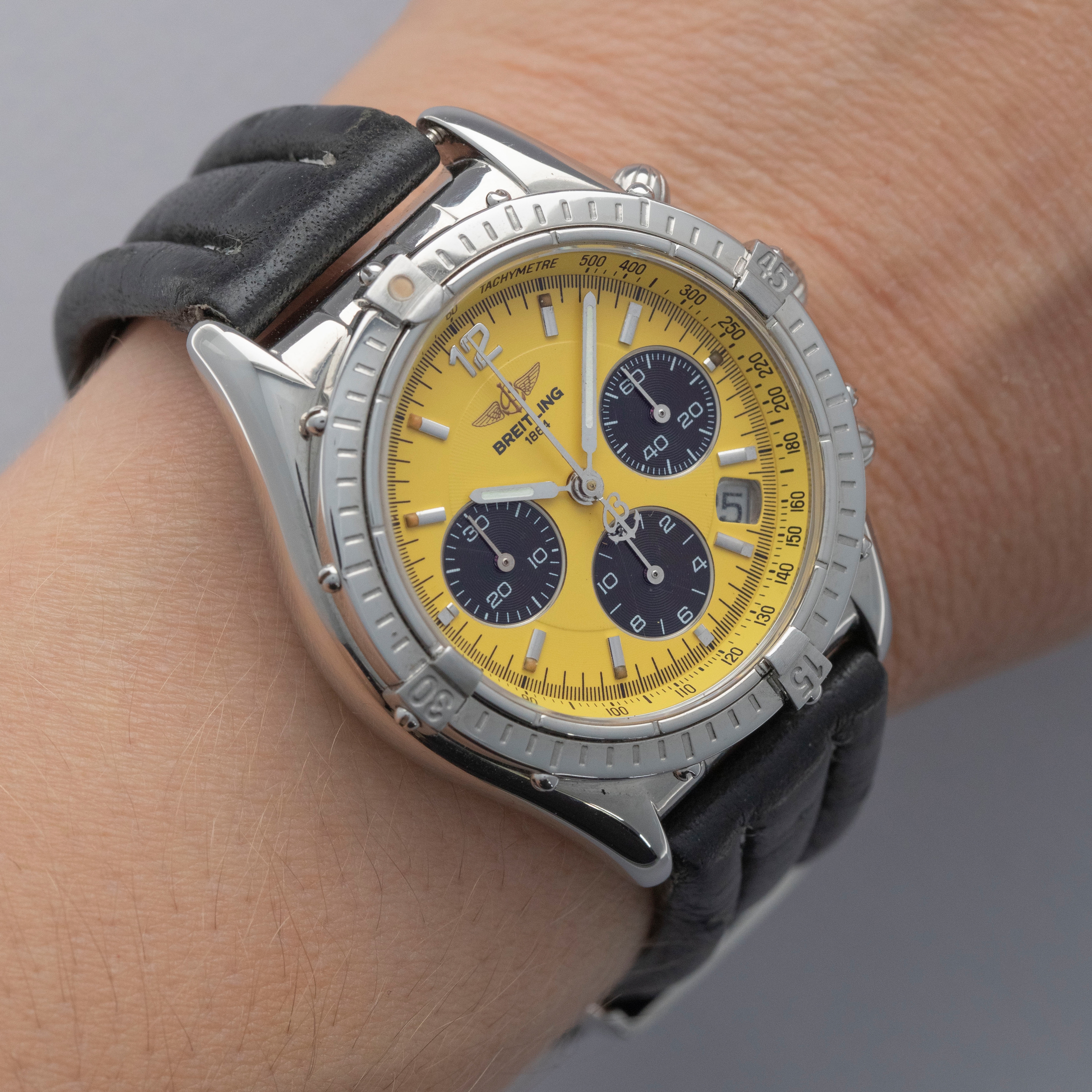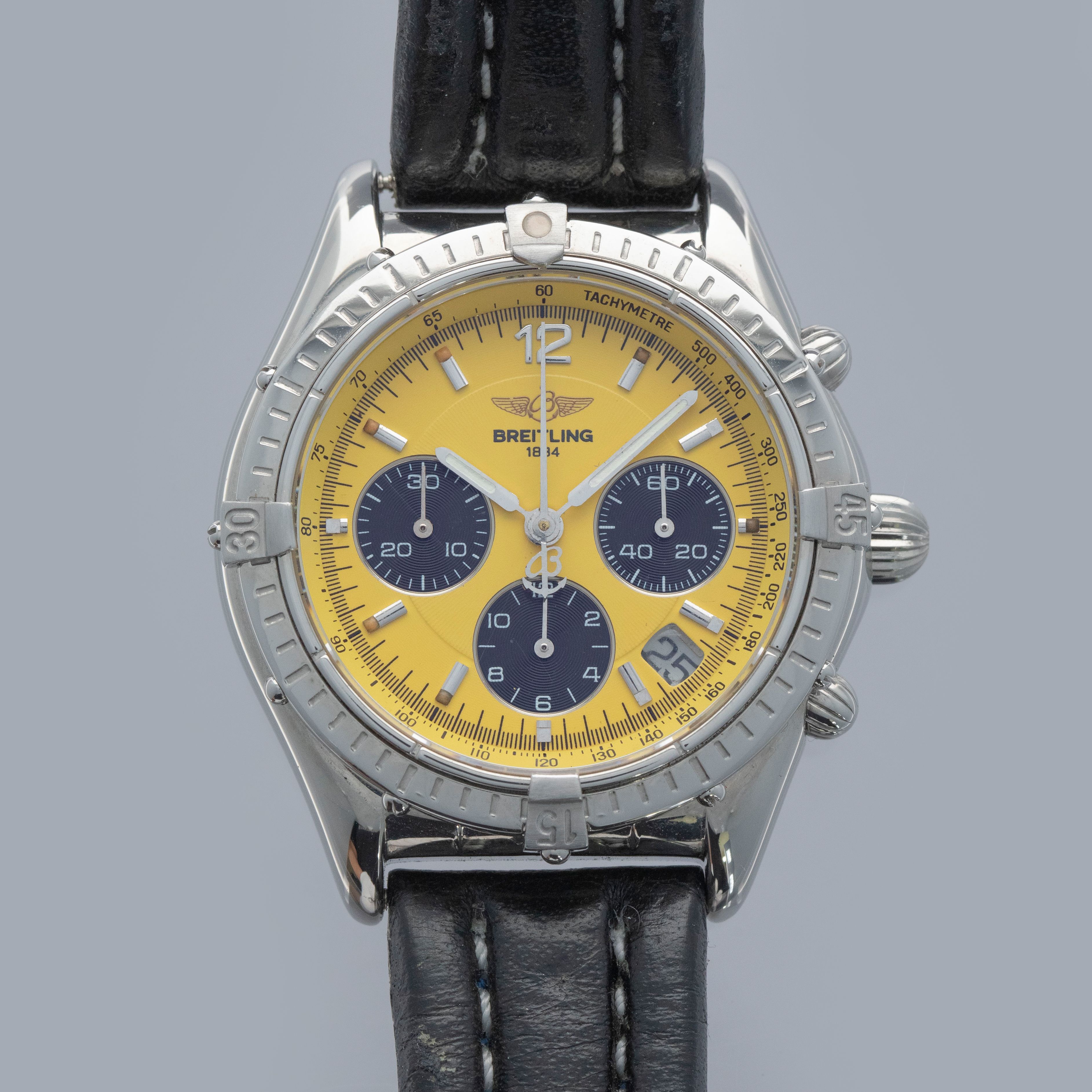 Rich with Breitling's design details but unique thanks to its bright yellow dial and smaller case size, the A30012 is regarded by many to be the peak of Breitling's neo-vintage design language.