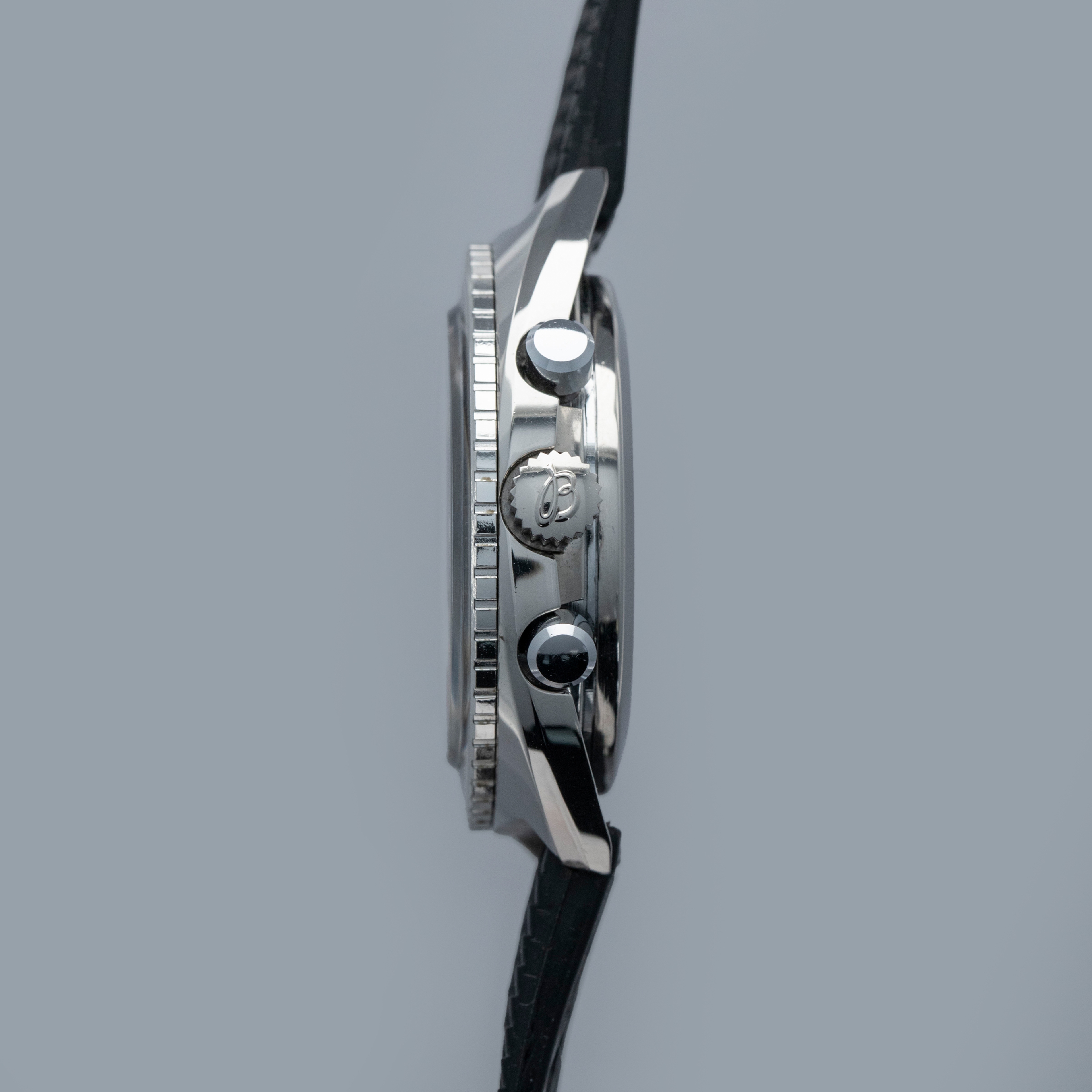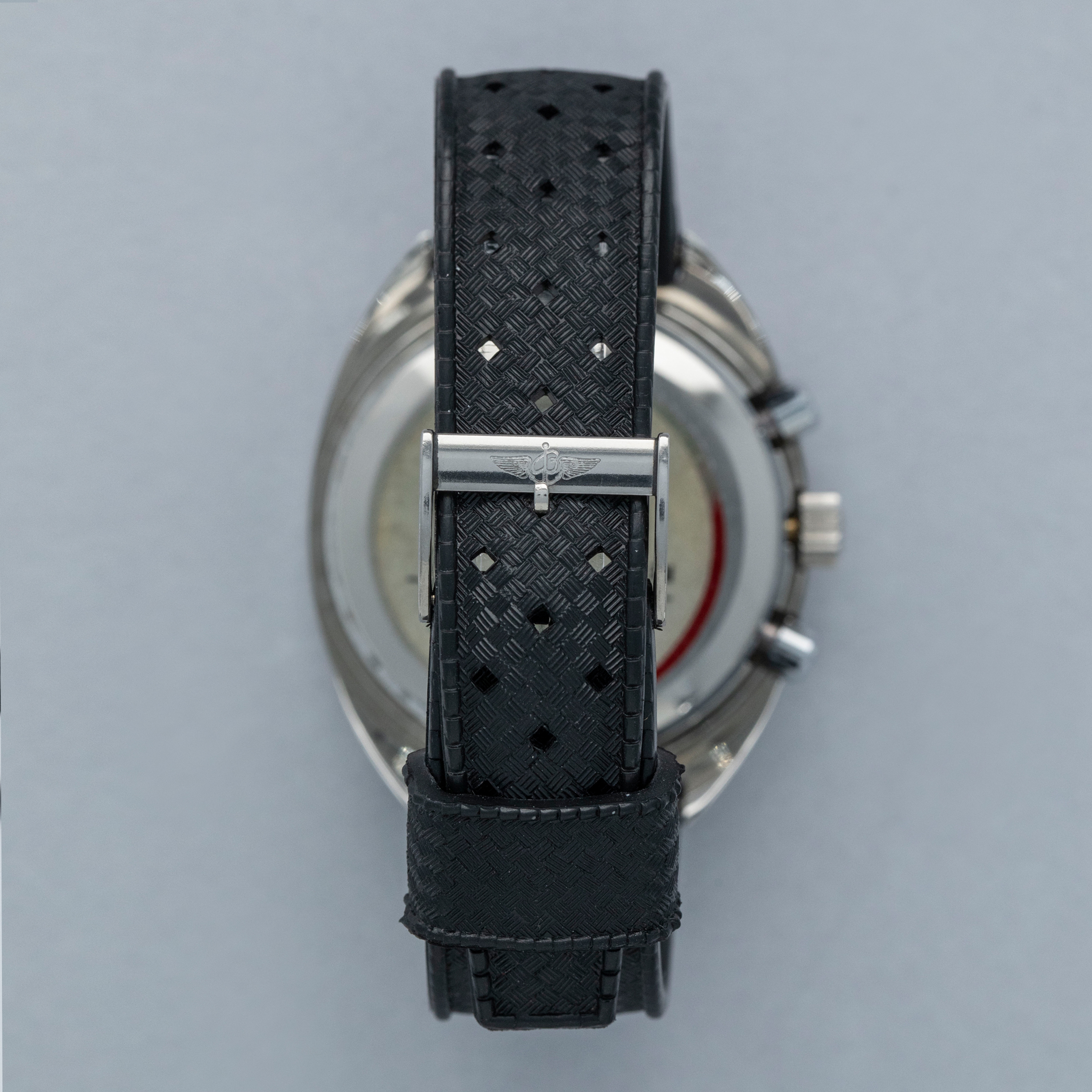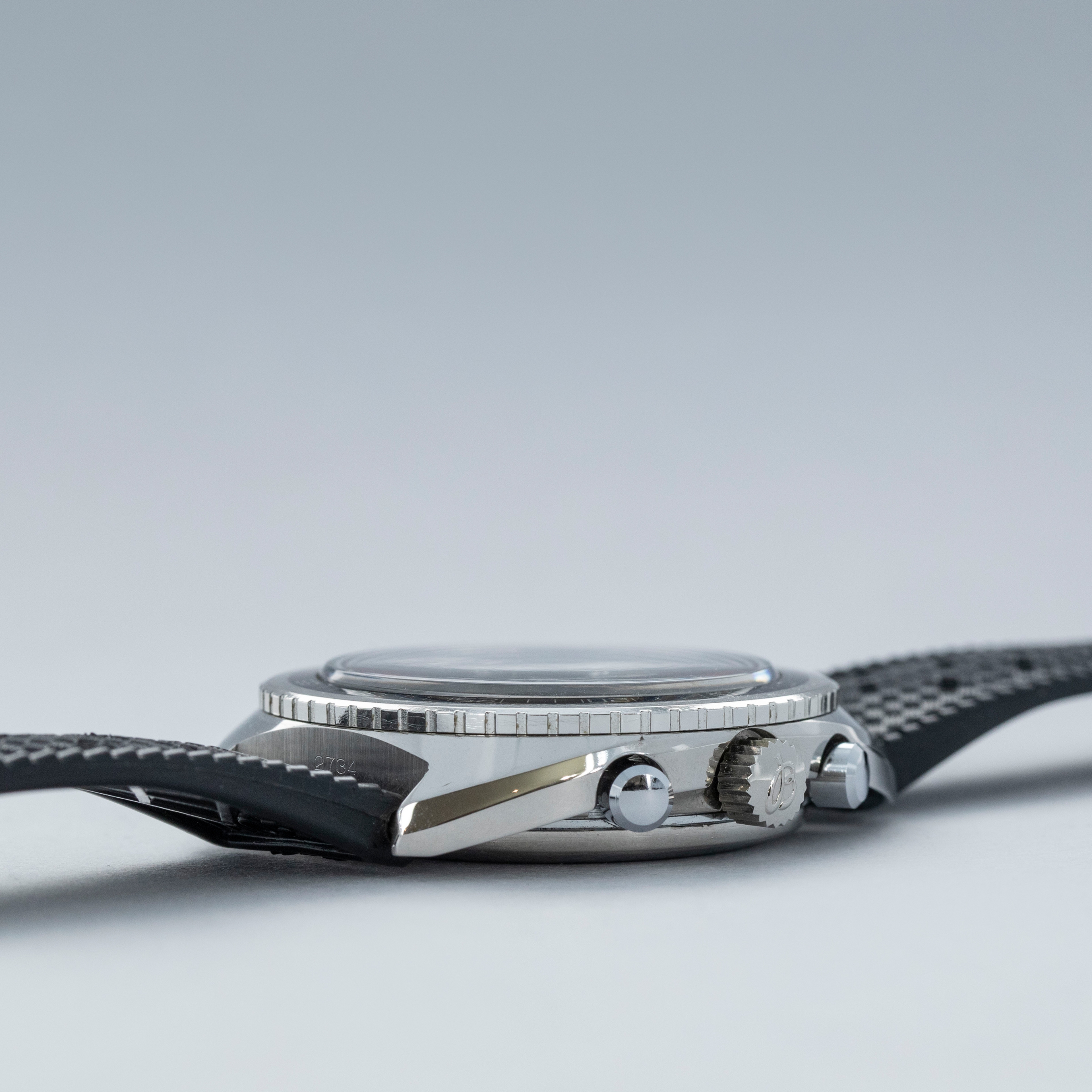 The watch is in overall near-mint condition. The stainless steel case is exceptionally clean for its age, with only a few small nicks and scratches from light wear or handling over the years. The case back retains its original sticker. The bezel is well defined and virtually unmarked. The dial is near mint with some aging to the lume markers, while the hands are clean with some discolouration to the lume. The watch is fitted with a Tropic rubber strap and a Breitling steel buckle in like-new condition.