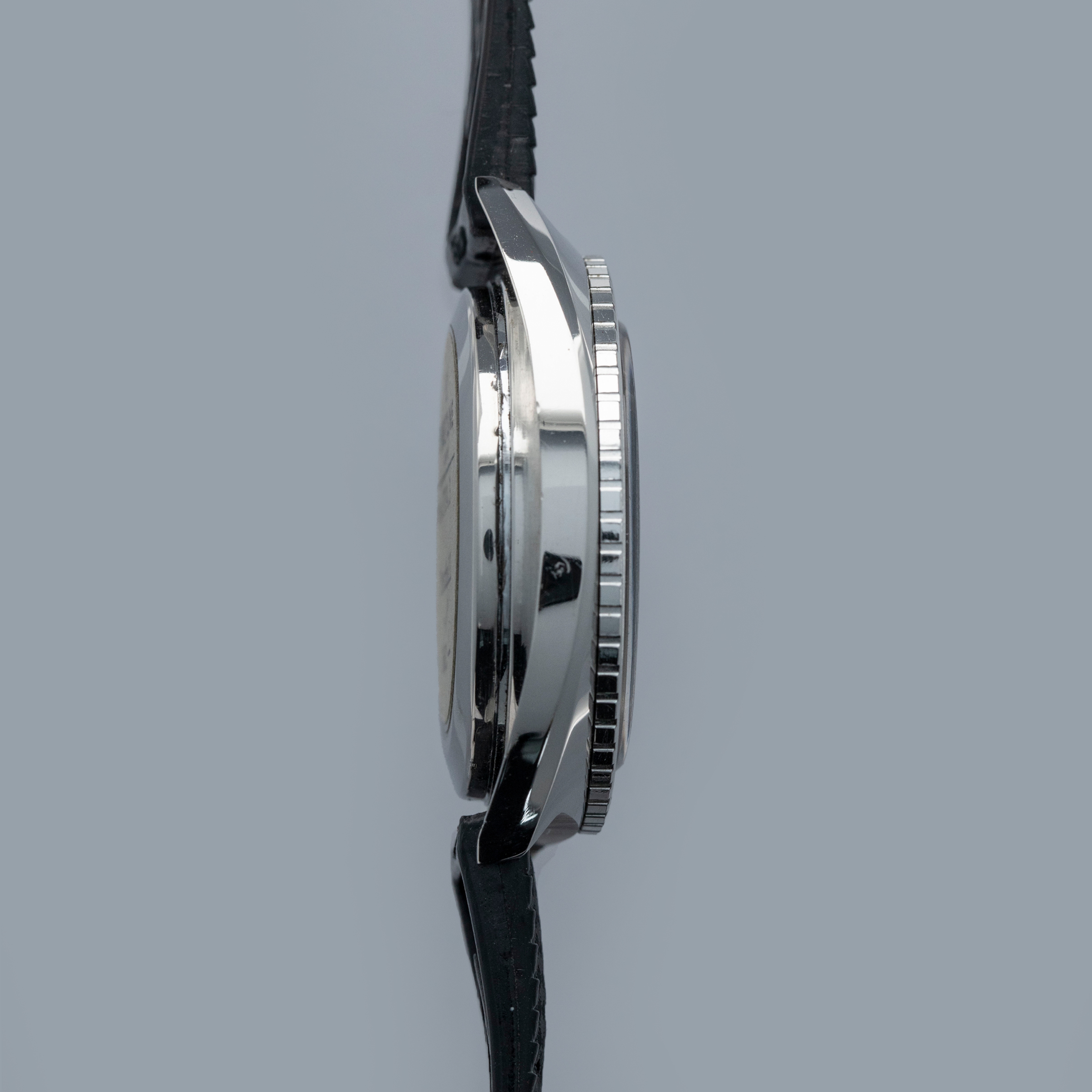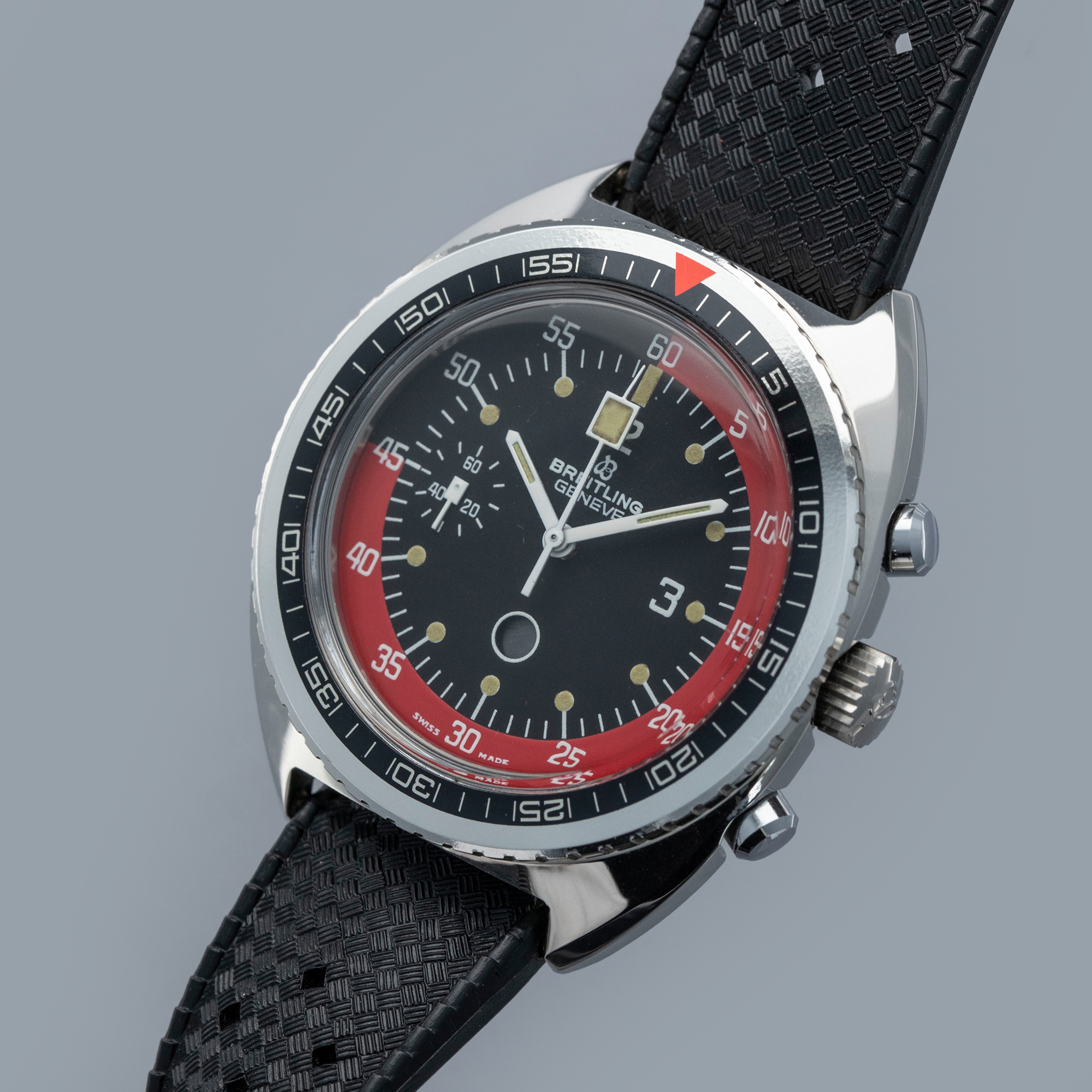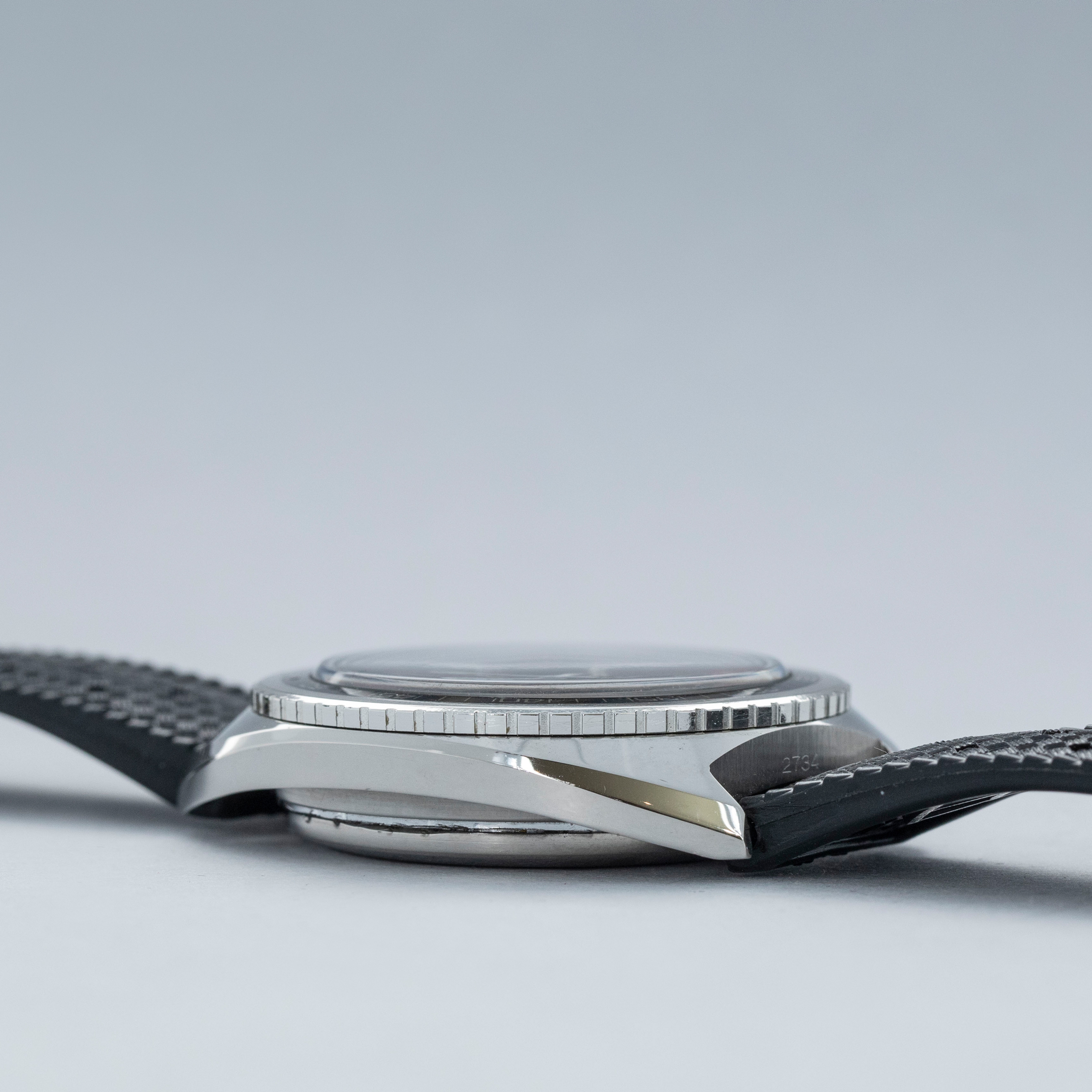 The watch is in overall near-mint condition. The stainless steel case is exceptionally clean for its age, with only a few small nicks and scratches from light wear or handling over the years. The case back retains its original sticker. The bezel is well defined and virtually unmarked. The dial is near mint with some aging to the lume markers, while the hands are clean with some discolouration to the lume. The watch is fitted with a Tropic rubber strap and a Breitling steel buckle in like-new condition.