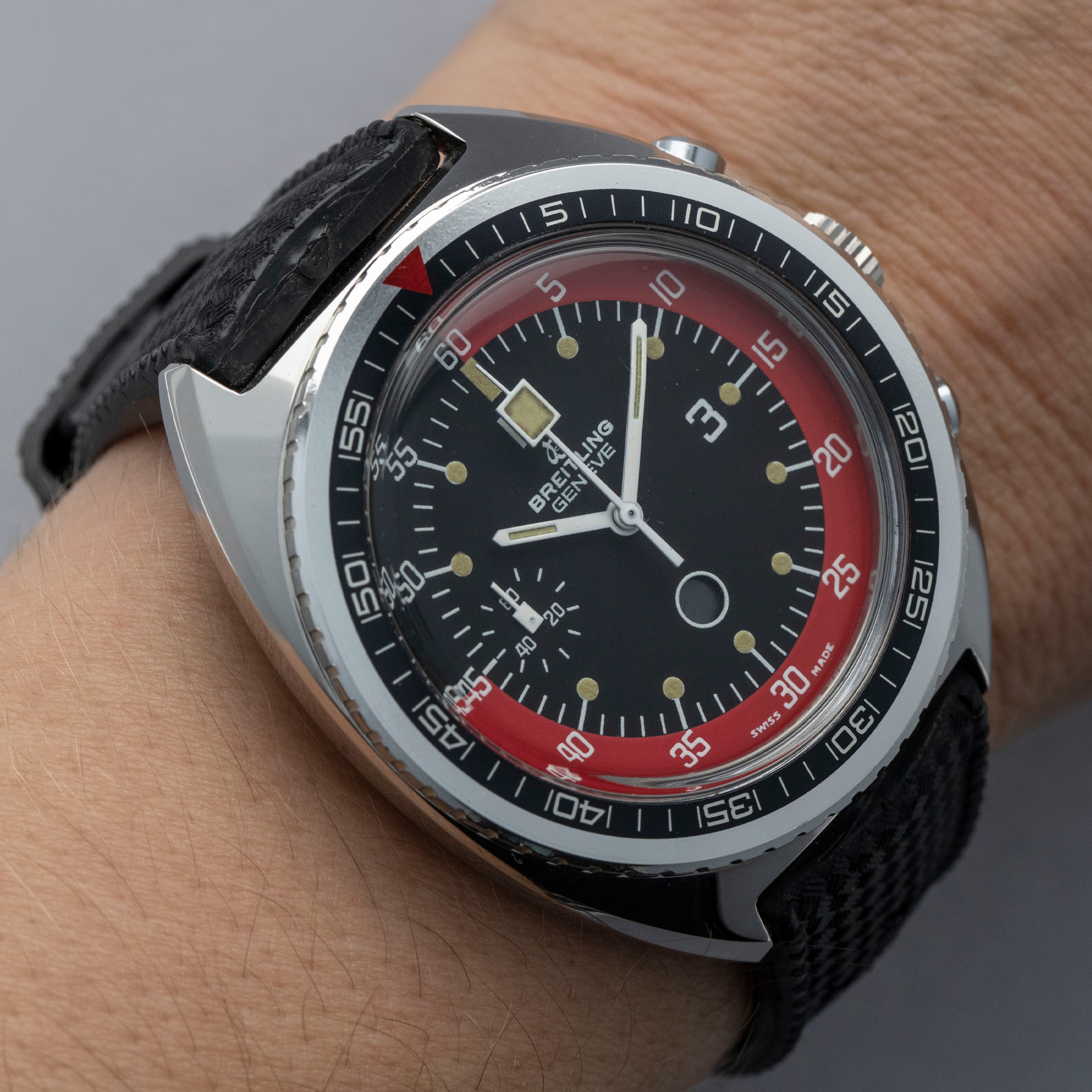 While they might be best known for pilot’s chronographs and dive watches, the particular chronograph that we have here is the Breitling Football Timer chronograph from the early 1970s. Offered in a 40mm entirely-polished C-type case, the Football Timer was a large watch for its time, which has inevitably made it a fantastically wearable watch for us these days. A beautiful watch with an intriguing history free from Breitling’s typical hype and fanfare, the Football Timer is a peculiar watch for the collector who wants a watch a little of the beaten track and unique. Indeed, it was designed to time halves of a football (soccer) game, with its black dial boasting a ¾ red track around its dial periphery to time the 45 minutes of a half of a game. In addition, it also boasts an indicator at 6 o’clock that indicates at a quick glance if the chronograph is running to make the referee’s life that bit easier when the game stops.