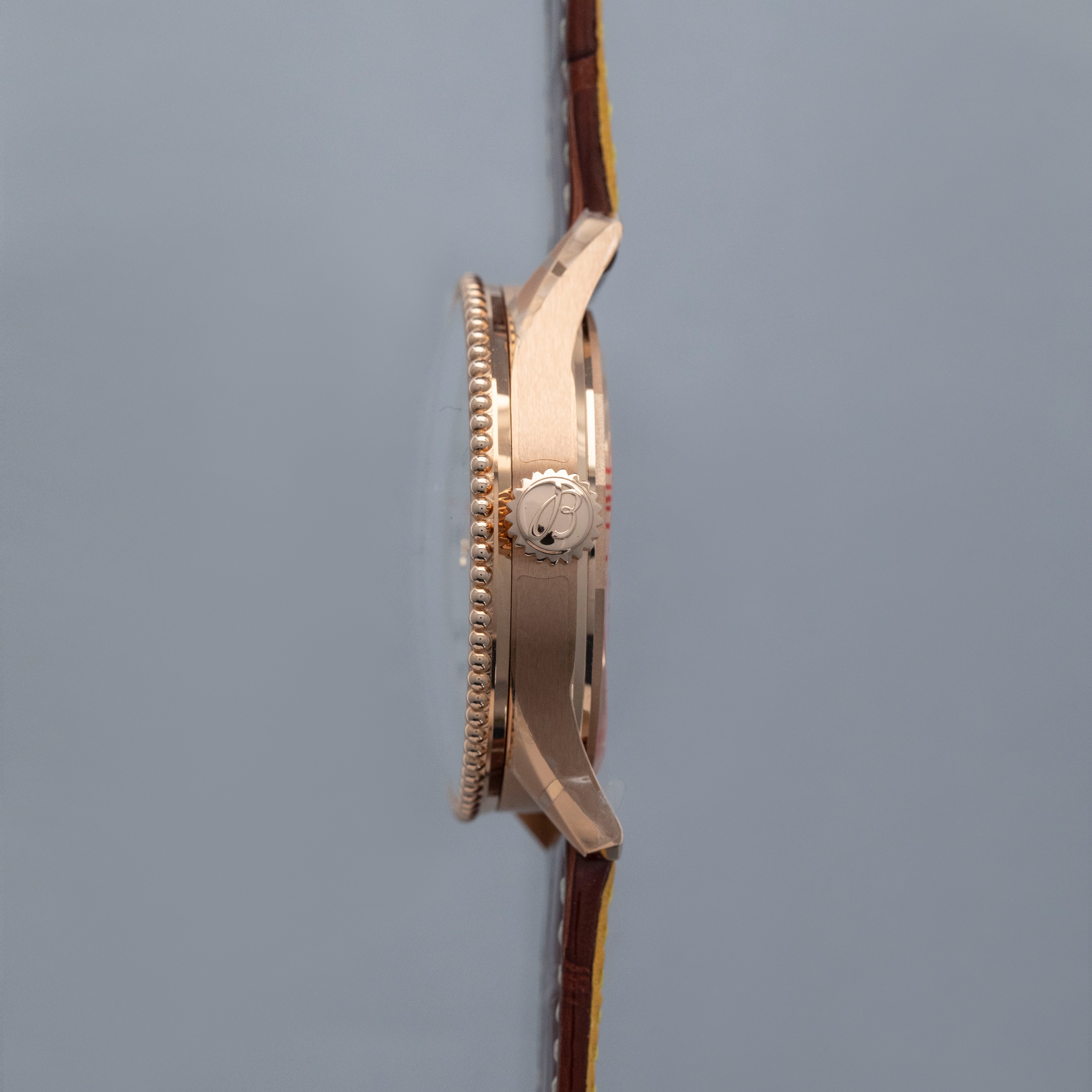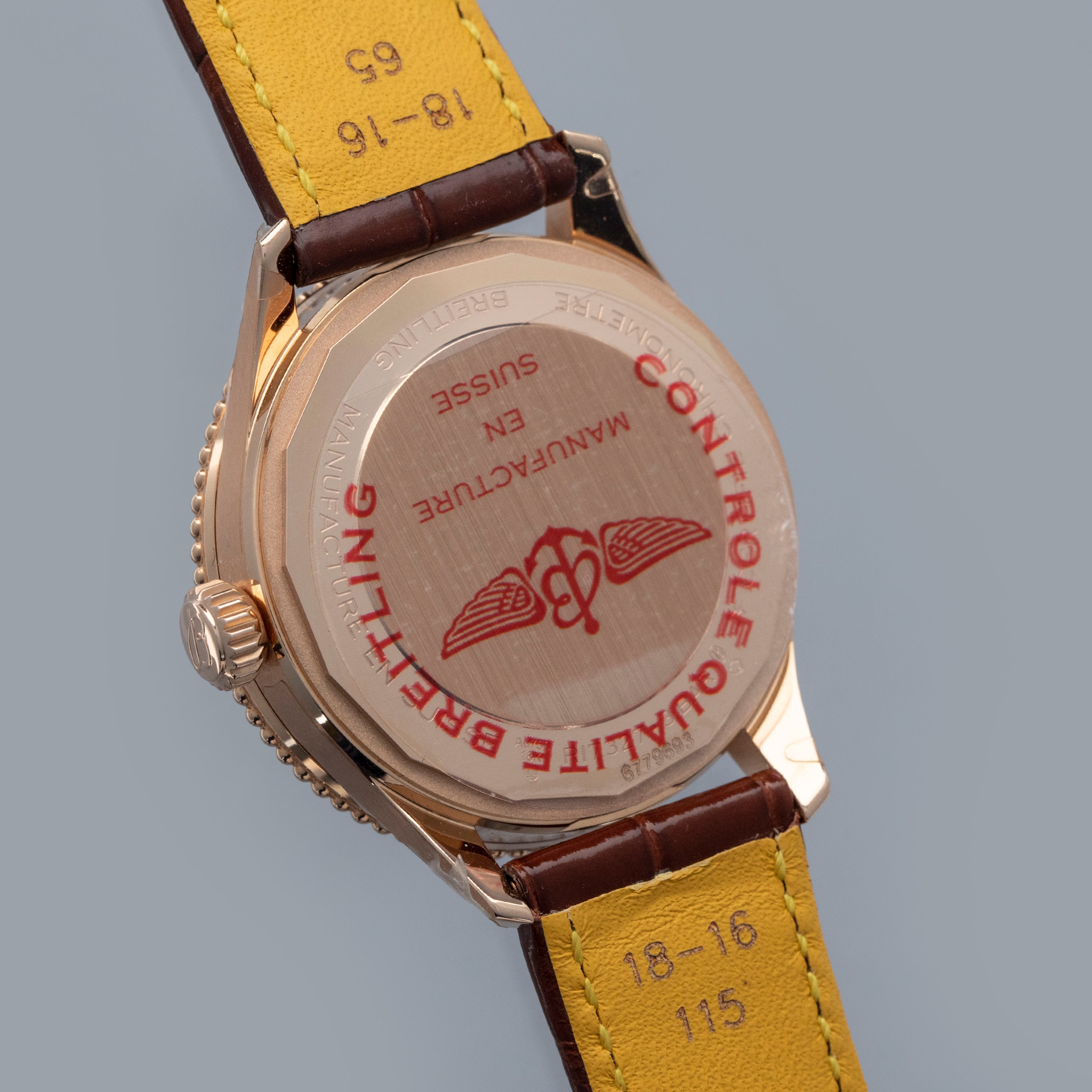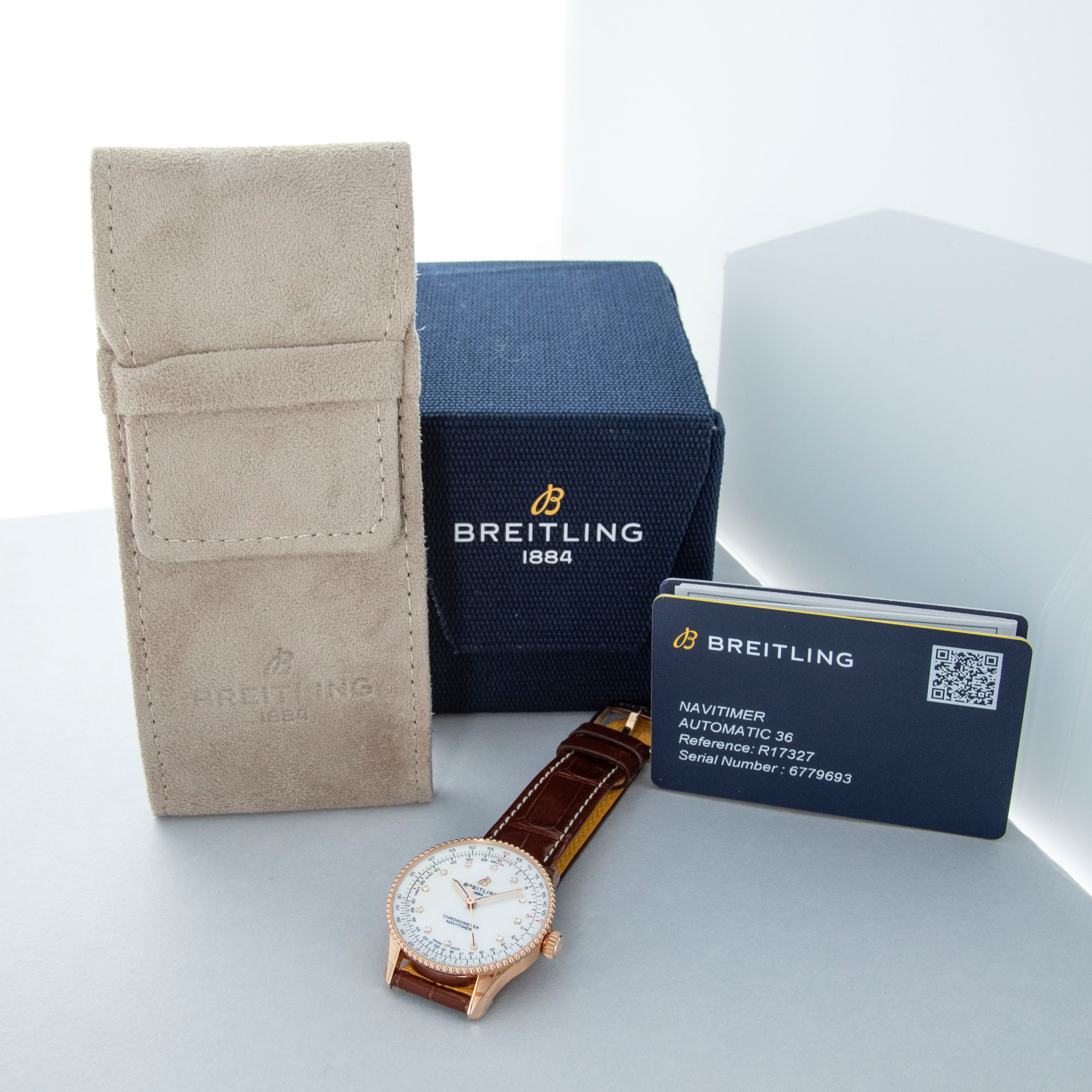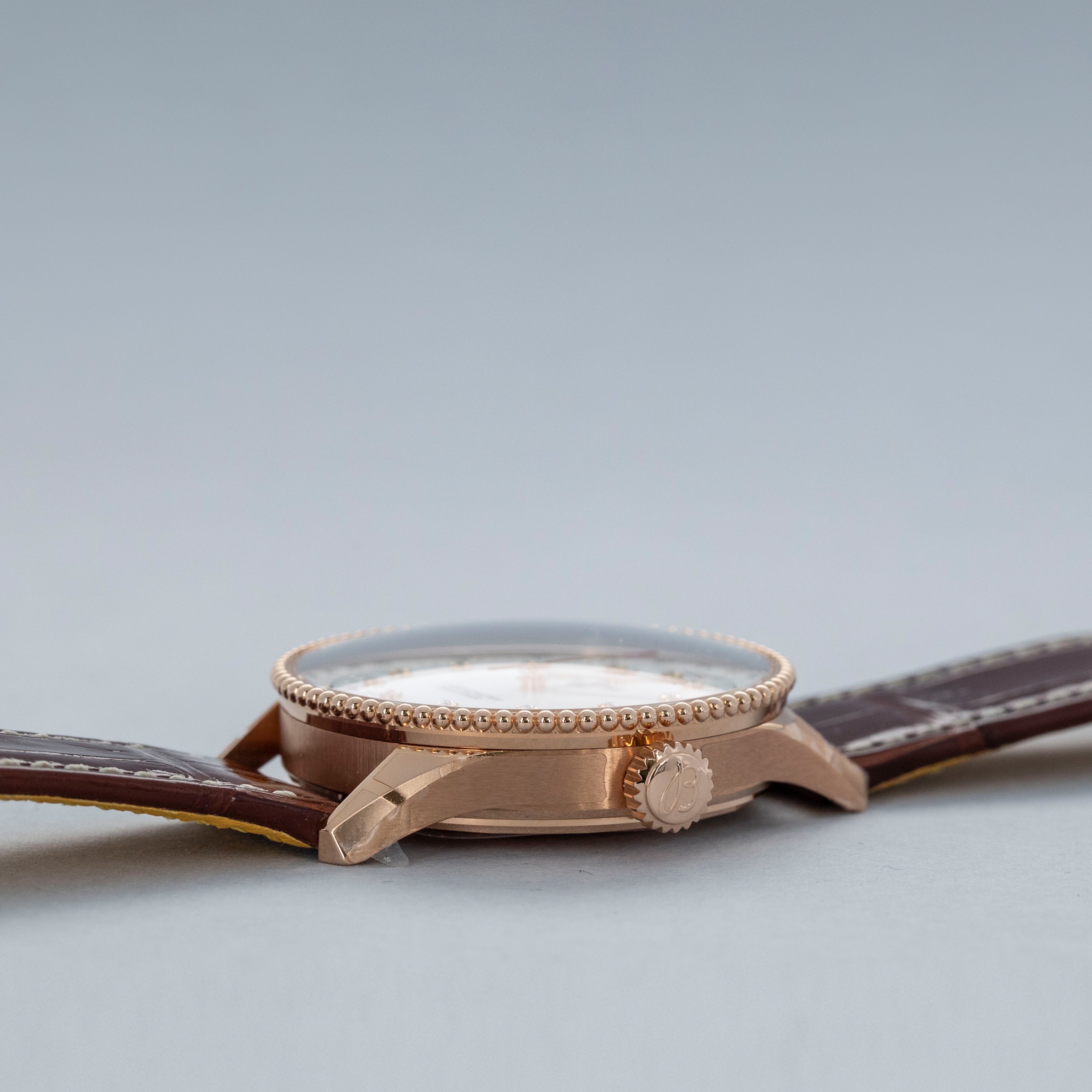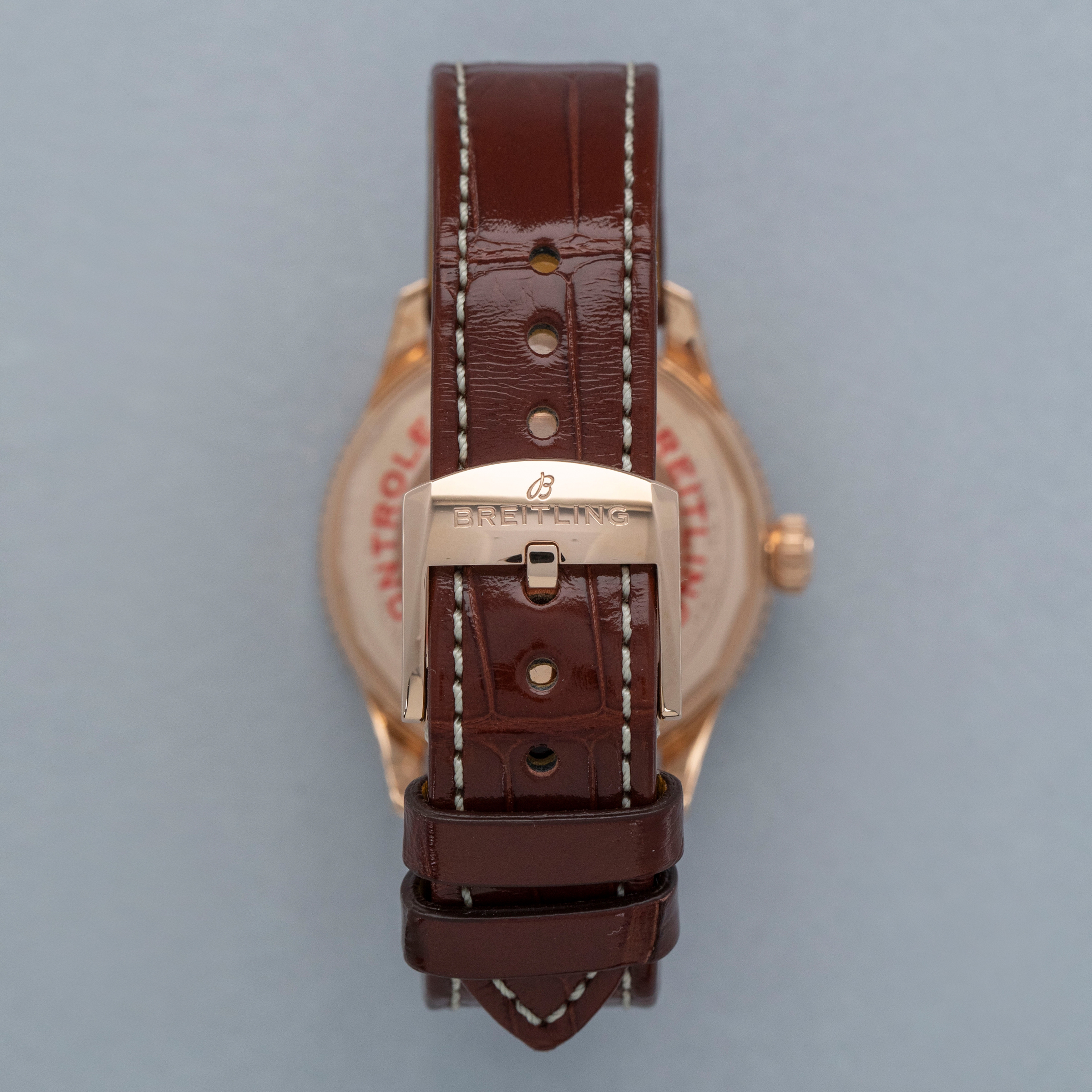 First released in 1952 and based on Breitling’s 1942 Chronomat, the Breitling Navitimer was the pilot’s watch to end all pilot’s watches. Following Breitling’s collaboration with the AOPA (Aircraft Owners and Pilots Association) to make the slide rule of its Chronomat even more relevant to pilots, the Navitimer was born as the ultimate pilot’s watch. Basically a hand-held computer, the Navitimer enabled pilots to quickly figure out fuel consumption rates, average speeds, convert between various scales, and much more. Offered here as a variation of that iconic pilot’s watch, we have the Ladies Navitimer ref. R17327. Boasting a 36mm 18kt rose gold case, it features the Navitimer’s iconic slide rule bezel, but instead of the collection’s typical chronograph display, it features a time-only mother-of-pearl dial with diamond-set hour markers, as it merges the Navitimer’s historical design with luxury and aesthetic nuance.