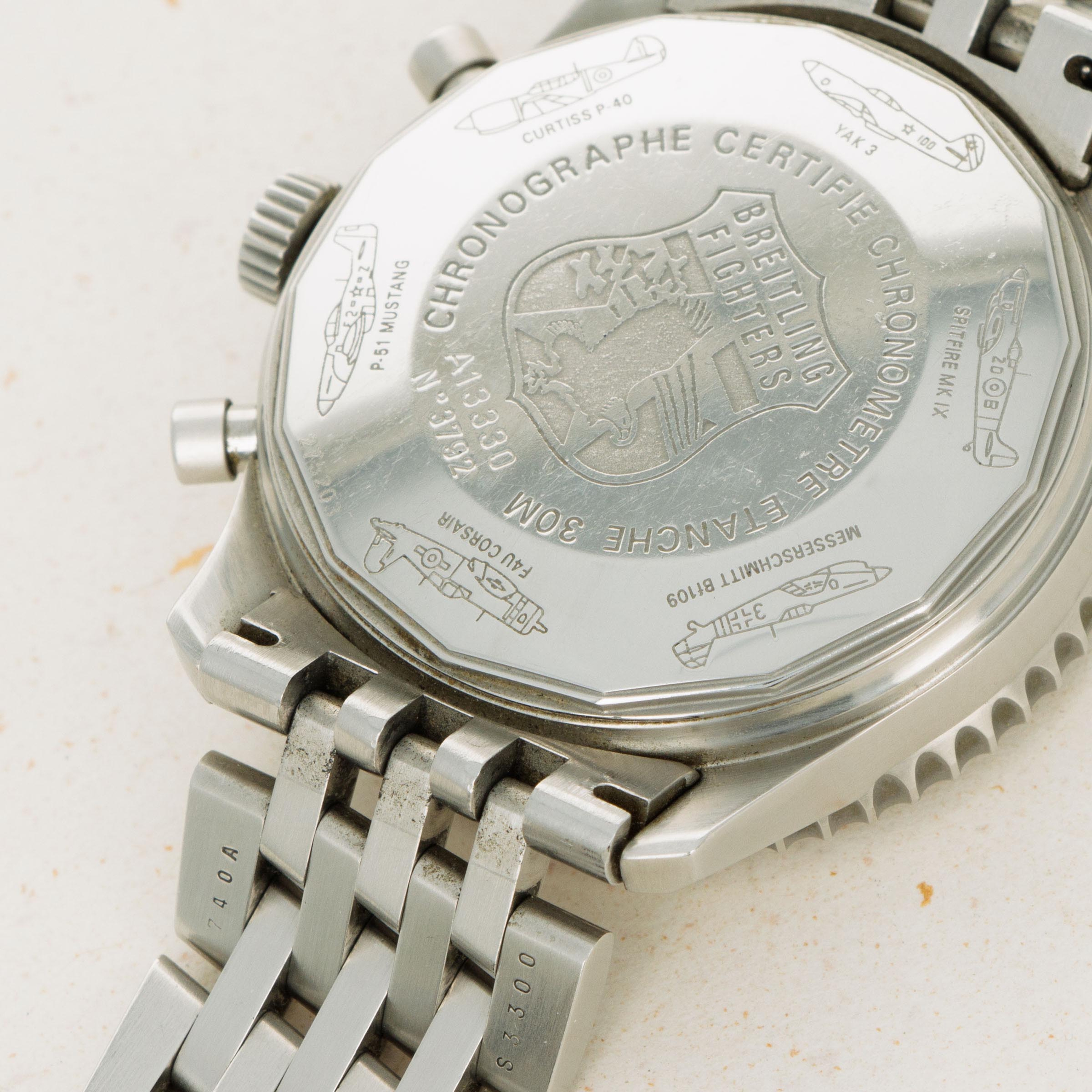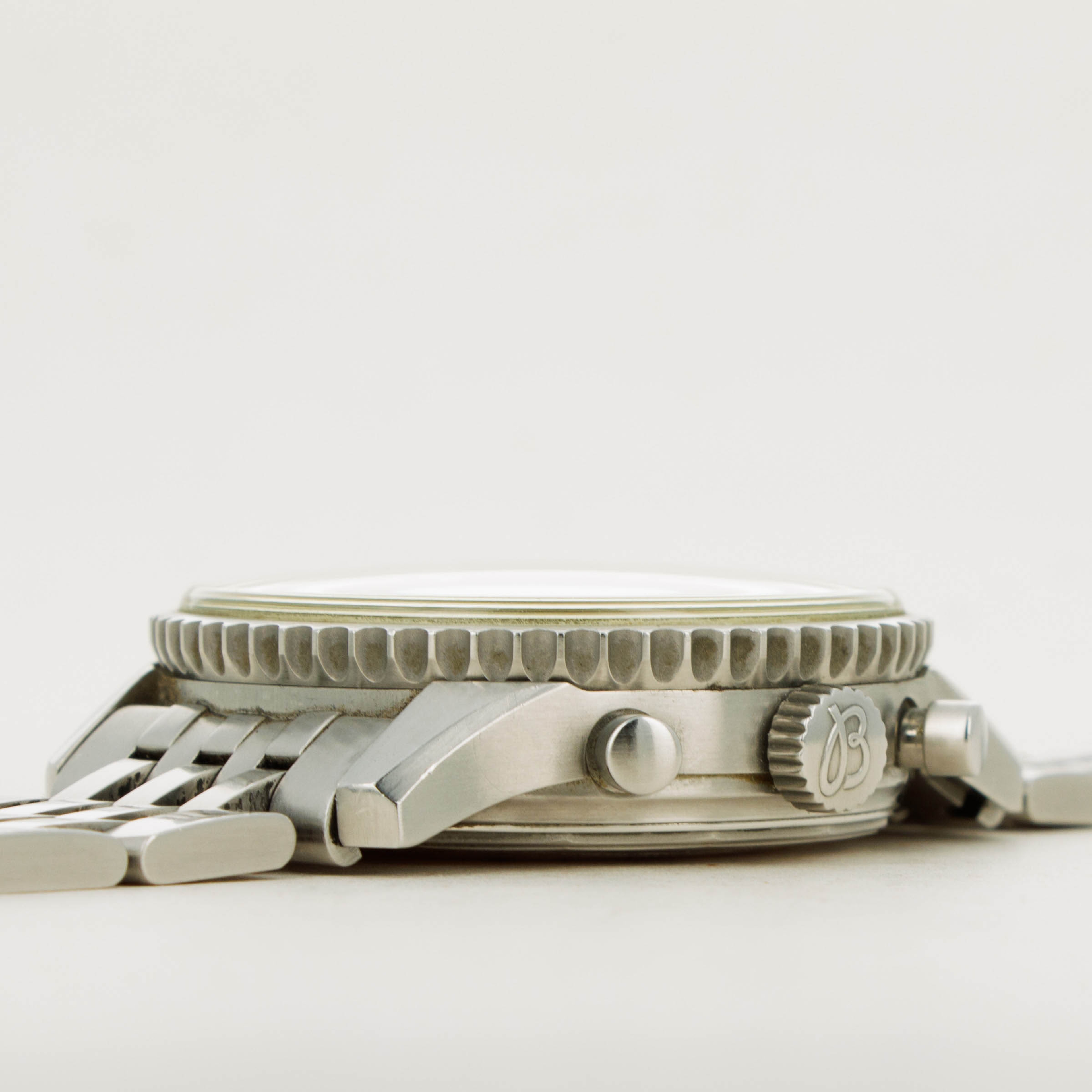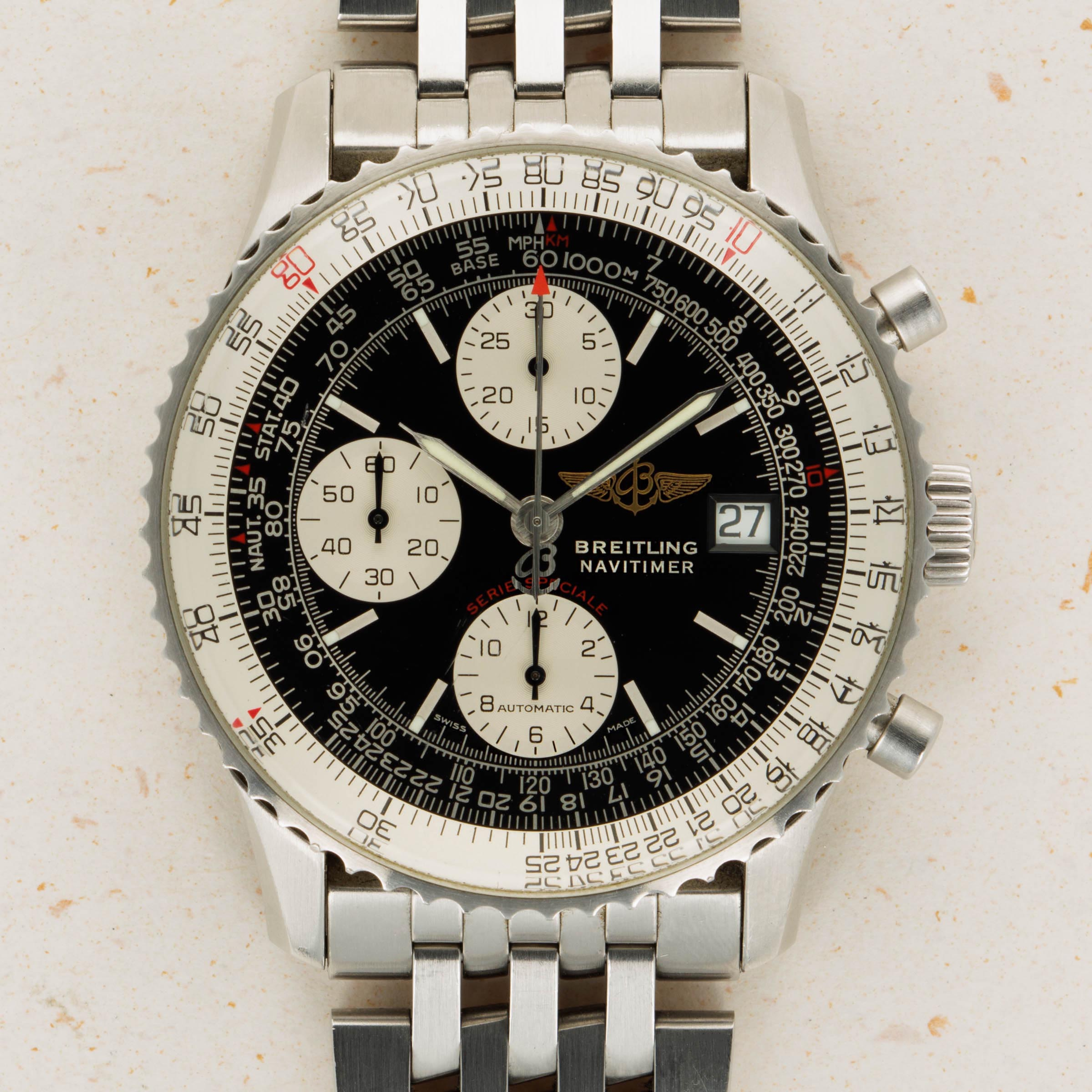 First released in 1952 and based on Breitling’s 1942 Chronomat, the Breitling Navitimer was the pilot’s watch to end all pilot’s watches. Following Breitling’s collaboration with the AOPA (Aircraft Owners and Pilots Association) to make the slide rule of its Chronomat even more relevant to pilots, the Navitimer was born as the ultimate pilot’s watch. Basically a hand-held computer, the Navitimer enabled pilots to quickly figure out fuel consumption rates, average speeds, convert between various scales, and much more. Offered here we have the Navitimer Fighters ref. A13330 hailing from the early 2000s. Made of stainless steel and measuring 41.5mm in diameter and 15.4mm tall, it wears with a distinctly modern wrist presence, something that Breitling’s timepieces have been known and loved for over the decades. Boasting a true-to-the-original black dial with a tri-compax design with three matching white subdials at 12, 6 and 9 o’clock, the A13330 features a white chapter ring for its slide rule bezel and punchy red accents that highlight the complexity of the Navitimer’s information-dense dial. A Navitimer variant that merges the collection’s historical aesthetic with Breitling’s modern build quality and attention to detail, the A13330 has helped power Breitling's ascension to the peak of sports watchmaking that they currently occupy in a manner that Breitling fans can only appreciate.