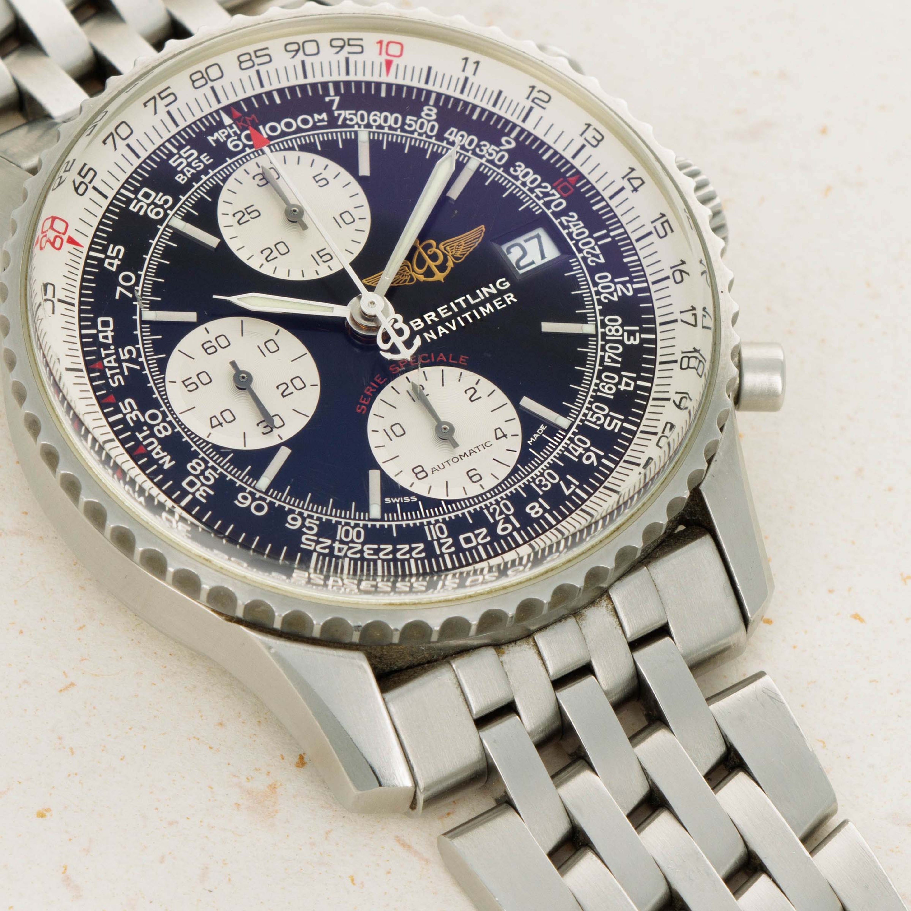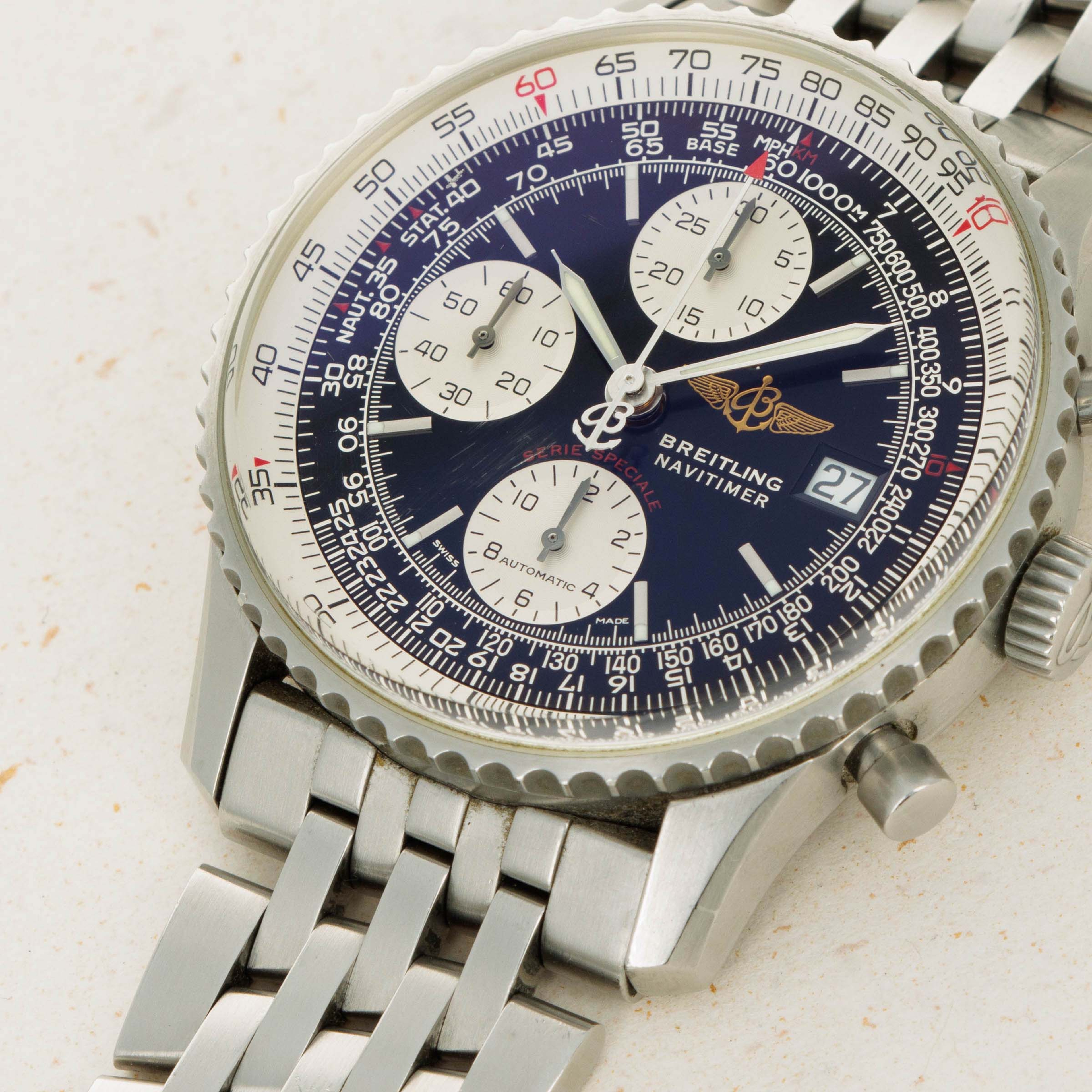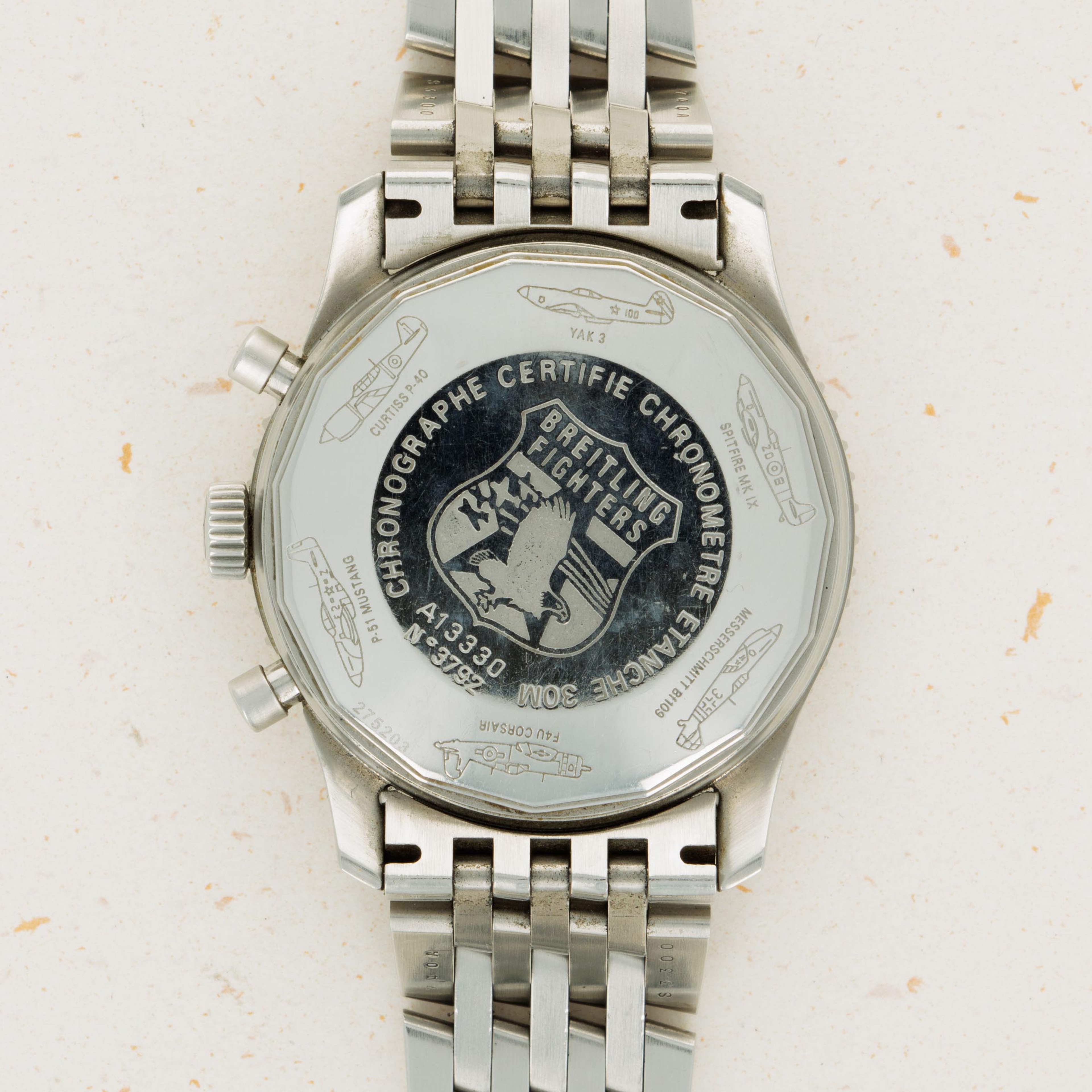 First released in 1952 and based on Breitling’s 1942 Chronomat, the Breitling Navitimer was the pilot’s watch to end all pilot’s watches. Following Breitling’s collaboration with the AOPA (Aircraft Owners and Pilots Association) to make the slide rule of its Chronomat even more relevant to pilots, the Navitimer was born as the ultimate pilot’s watch. Basically a hand-held computer, the Navitimer enabled pilots to quickly figure out fuel consumption rates, average speeds, convert between various scales, and much more. Offered here we have the Navitimer Fighters ref. A13330 hailing from the early 2000s. Made of stainless steel and measuring 41.5mm in diameter and 15.4mm tall, it wears with a distinctly modern wrist presence, something that Breitling’s timepieces have been known and loved for over the decades. Boasting a true-to-the-original black dial with a tri-compax design with three matching white subdials at 12, 6 and 9 o’clock, the A13330 features a white chapter ring for its slide rule bezel and punchy red accents that highlight the complexity of the Navitimer’s information-dense dial. A Navitimer variant that merges the collection’s historical aesthetic with Breitling’s modern build quality and attention to detail, the A13330 has helped power Breitling's ascension to the peak of sports watchmaking that they currently occupy in a manner that Breitling fans can only appreciate.