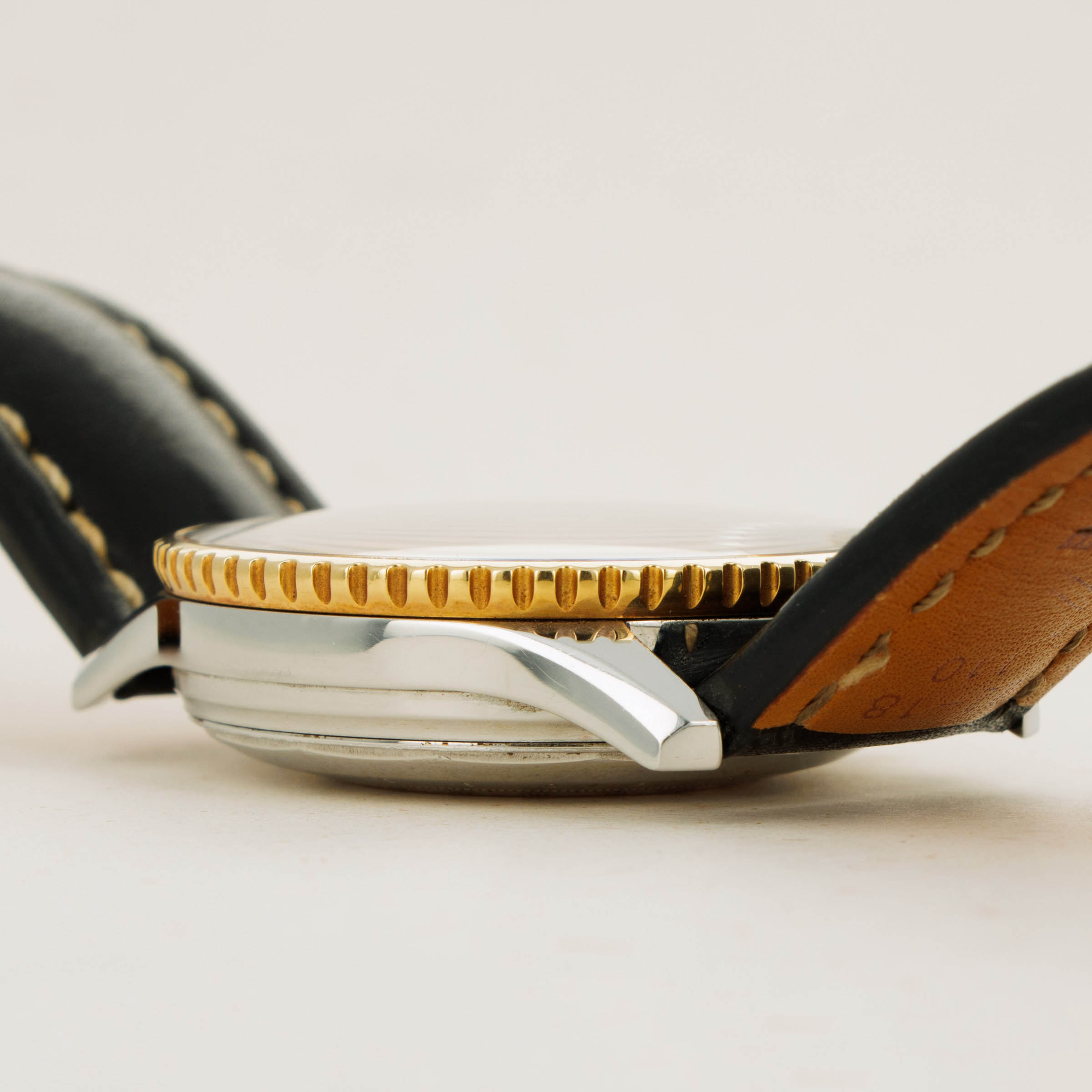 Released in 1952 and based on Breitling’s 1942 Chronomat, the Breitling Navitimer was the pilot’s watch to end all pilot’s watches. Following Breitling’s collaboration with the AOPA (Aircraft Owners and Pilots Association) to make the slide rule of its Chronomat even more relevant to pilots, the Navitimer was born as the ultimate pilot’s watch. Basically, a hand-held computer, the Navitimer enabled pilots to quickly figure out fuel consumption rates, average speeds, convert between various scales, and much more. Offered here we have the Navitimer ref. D13022 hailing from the mid-1990s. Featuring a two-tone construction with stainless steel and 18kt yellow gold, it measures 41mm in diameter and 14mm tall and wears with Breitling’s signature wrist presence that they and their iconic chronographs are known for, particularly their models from the 1990s or 2000s such as this one. Featuring a bright silver tri-compax dial sporting 3 golden subdials and a date aperture at 3 o’clock the Navitimer ref. D13022 is a unique variant of the Navitimer that retains its utilitarian pilot’s watch spirit but with a unique burst of luxury and style that is elegantly timeless, much like the Navitimer’s overall design.