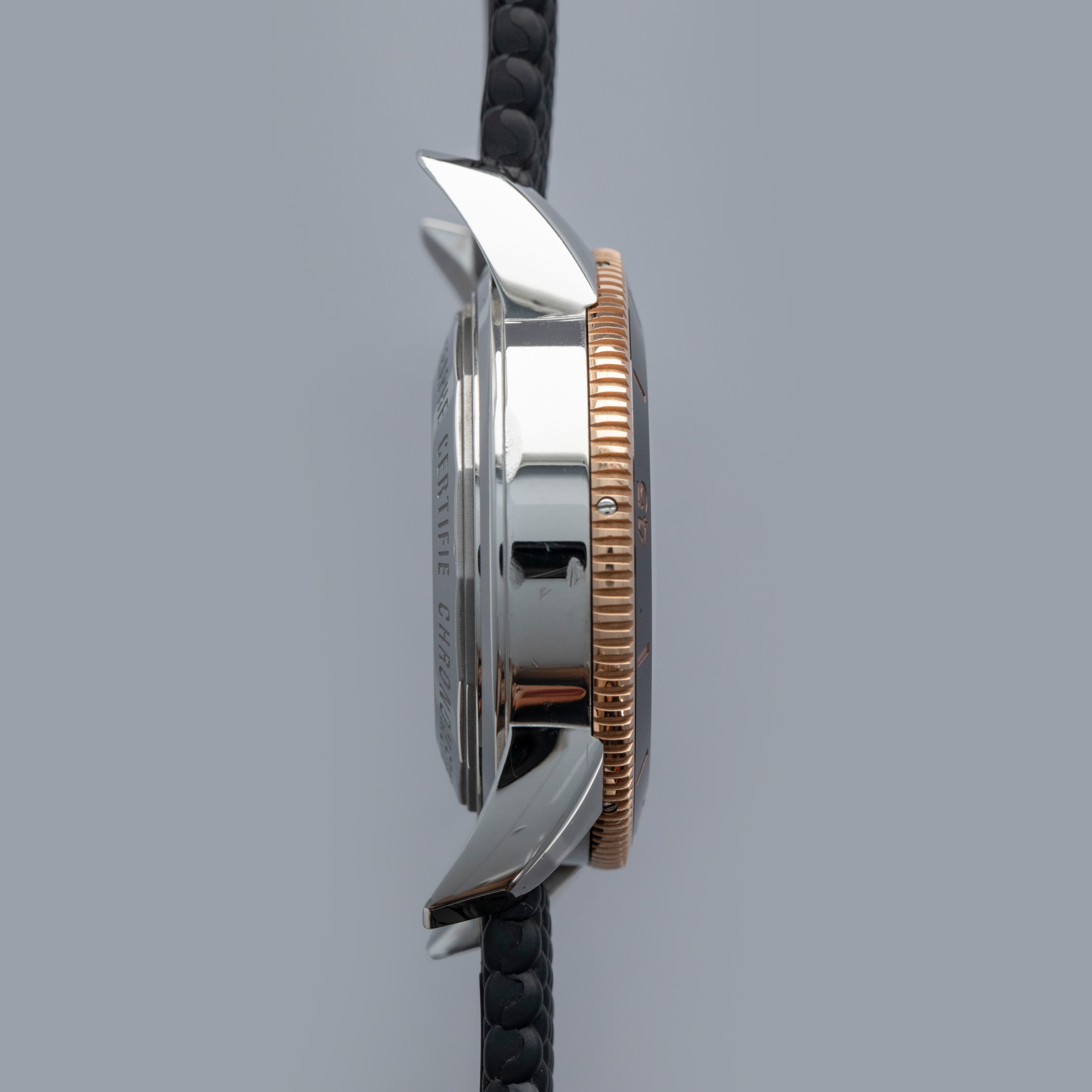 First launched in 1957, the SuperOcean was Breitling’s response to the increasing demand for dive watches and their answer to watches like the Rolex Submariner, Blancpain Fifty Fathoms and Omega Seamaster that were released just a few years prior. Making the SuperOcean waterproof to an unprecedented 200 meters, Breitling made the SuperOcean one of the most heavy-duty dive watches available at the time. However, after seven years, the SuperOceans Breitling had produced were beginning to run stale, and so in 1964 they released the ref. 2005, which is now nicknamed the “Slow Counter,” which was powered by a heavily modified version of the Venus cal. 188 which was renamed the Valjoux cal. 7731 after Valjoux’s take-over of Venus in 1966. This gave the Superocean some heritage within the arena of chronographs, and so today we have Superocean Chronograph models that are rooted in that utilitarian history, much like the Superocean Heritage Chronograph ref. U13313 that we have here. Boasting a regular chronograph function with a trio of subdials, this modern 44mm model is a two-tone stainless steel and rose gold variant from the Superocean family that comes complete with a black dial and ceramic bezel combo and is offered on a rubber strap, which suits its functionality as a dive watch with 200m of water resistance.