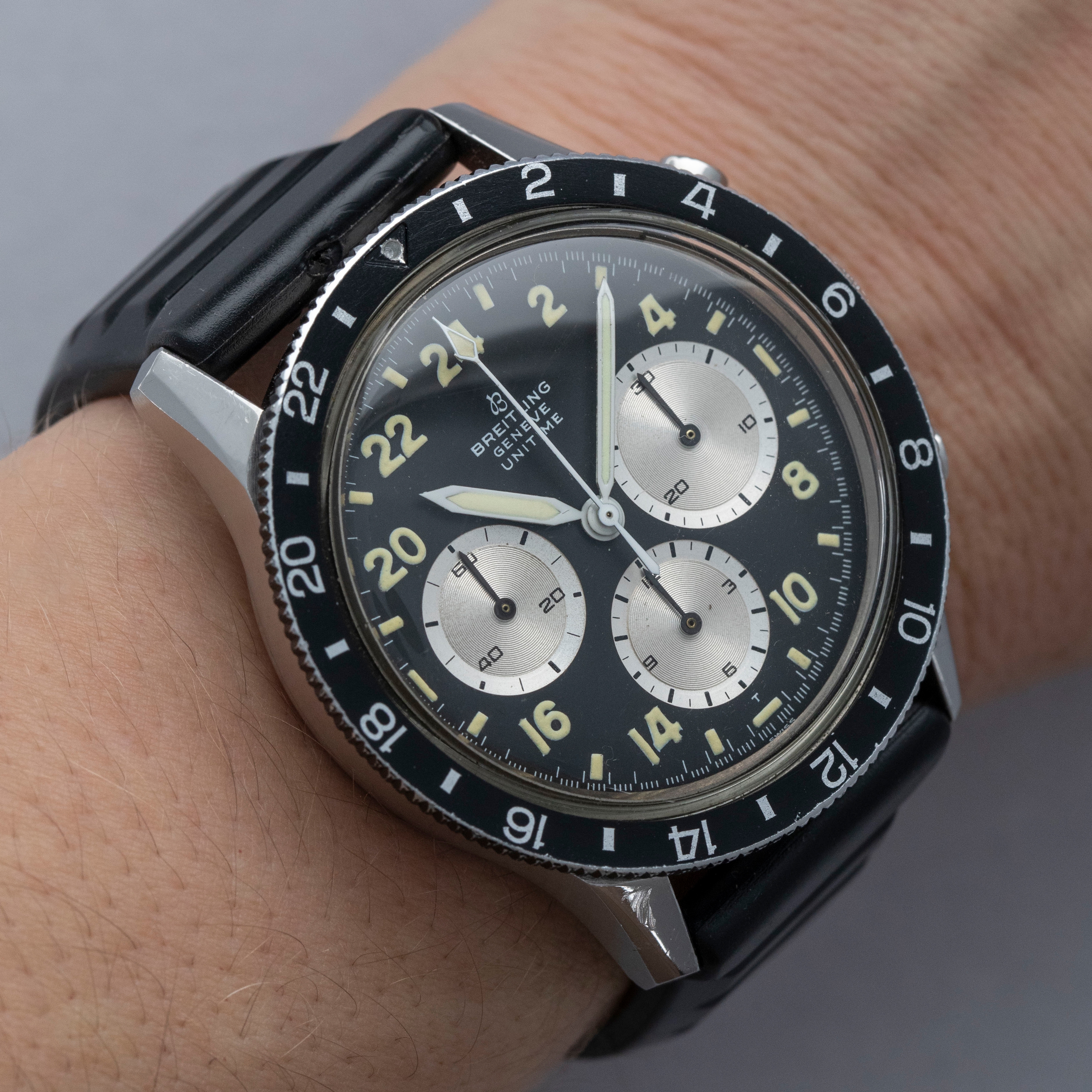 Massive at the time of its release in the 1960s, the Unitime's imposing 41mm diameter case made sure that it was incredibly legible for the pilots who it was designed for and wore it.