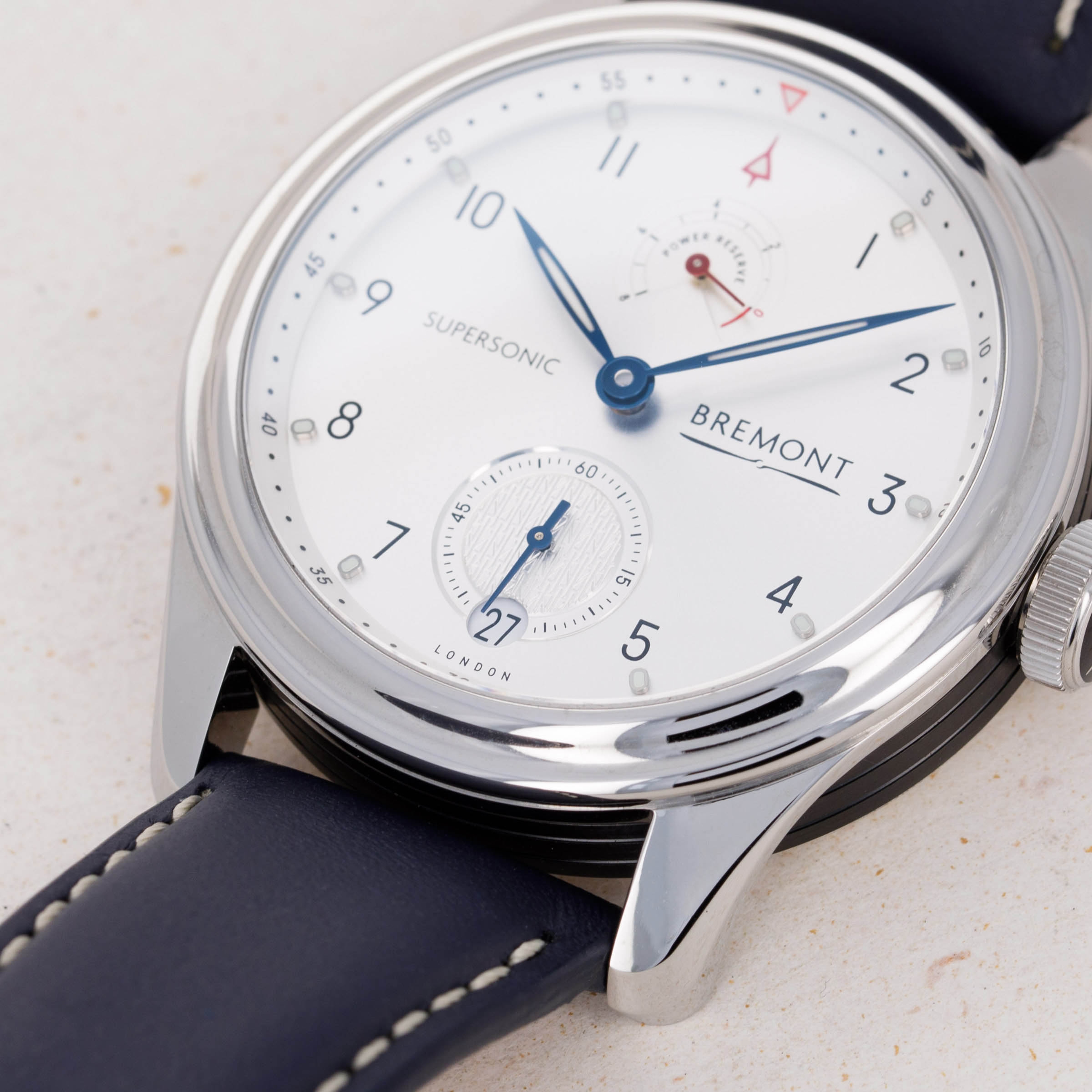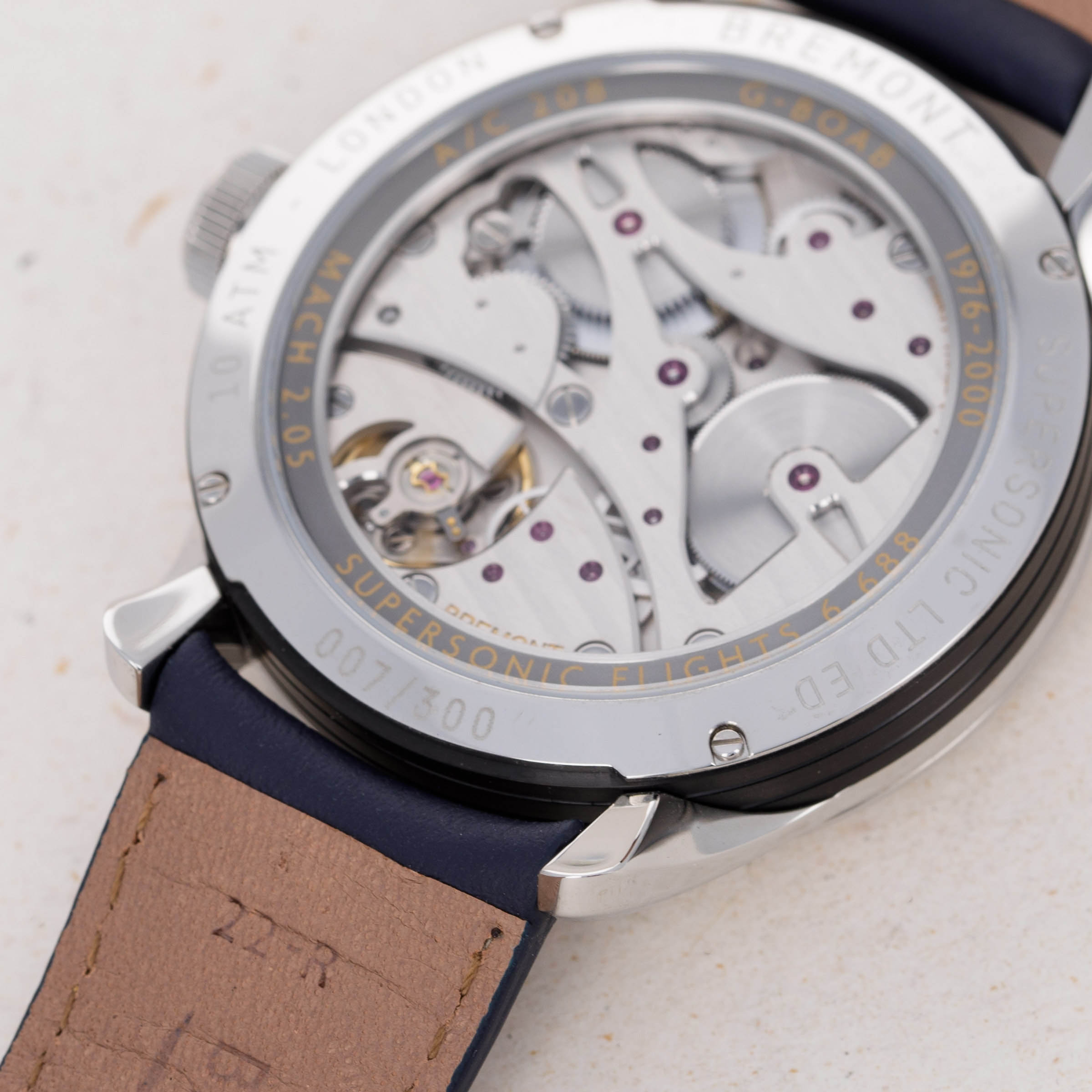 Founded in 2002, Bremont began when two brothers, Nick and Giles English, were inspired to create an aviation-themed watch company after their father Euan died in an accident while flying a vintage WWII Harvard aircraft. Having gained experience with mechanical technologies such as clock-assembly, aeroplane and yacht-construction from Euan, it was obvious to the brothers what sort of company would commemorate him best. Afraid to use their surname knowing that it would sound cliché given the brothers are in fact from England, they searched for a name to use. This name came to them when a flight they were on had to land in a farm due to a storm. The farmers name? Antoine Bremont. Due to their rich familial connection to aviation it was only natural that Bremont would focus on creating watches that would speak to their RAF heritage. Thus, the brothers sought to make their watches capable of withstanding the harsh punishments dealt during military flight. Following five years of R&D, Bremont finally launched their first watch in 2007 and ever since then the brand has grown from strength to strength with a whole host of impressive offerings; one of which being this Supersonic limited edition. Limited to 300 pieces and boasting a 43mm stainless steel case, the Supersonic is a rare and intensely capable timepiece inside and out. Powered by Bremont’s first manual-wind movement and launched to celebrate the iconic Concorde passenger jet travelled twice the speed of sound’s 50th anniversary, the Supersonic infuses Bremont’s love of aviation with British Airways’ iconic use of the Concorde to create a special timepiece. With its entirely polished case emulating the Concorde’s reflective surface, and containing a ring of aluminium from Alpha Bravo, Heathrow’s last remaining Concorde, the Supersonic celebrates a bygone era of passenger aviation that we have yet to revist, and can only look back on with fondness, nostalgia and perhaps jealousy for those of us who weren’t lucky enough to take the 2.5 hour trip from London to New York in British Airway’s flagship route.