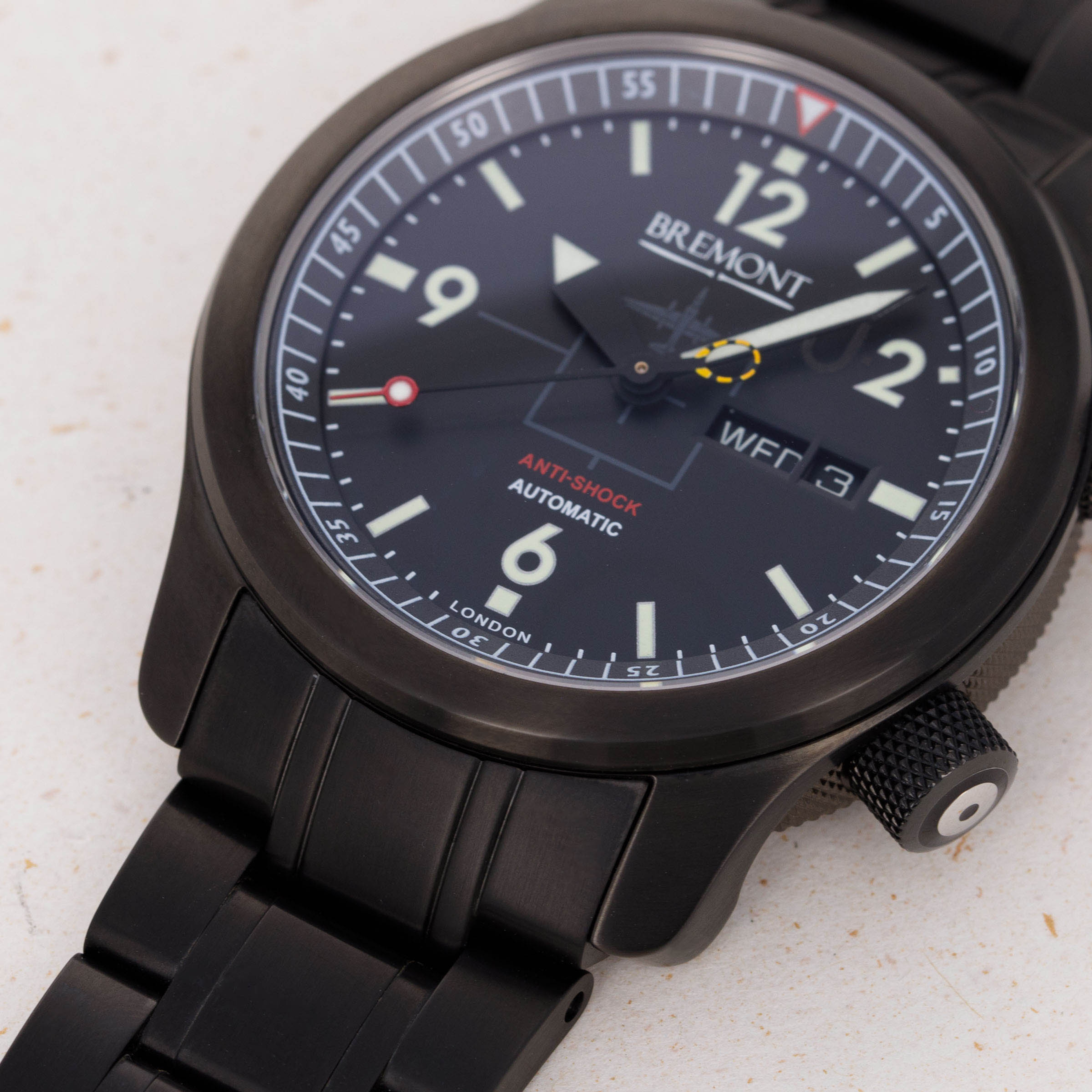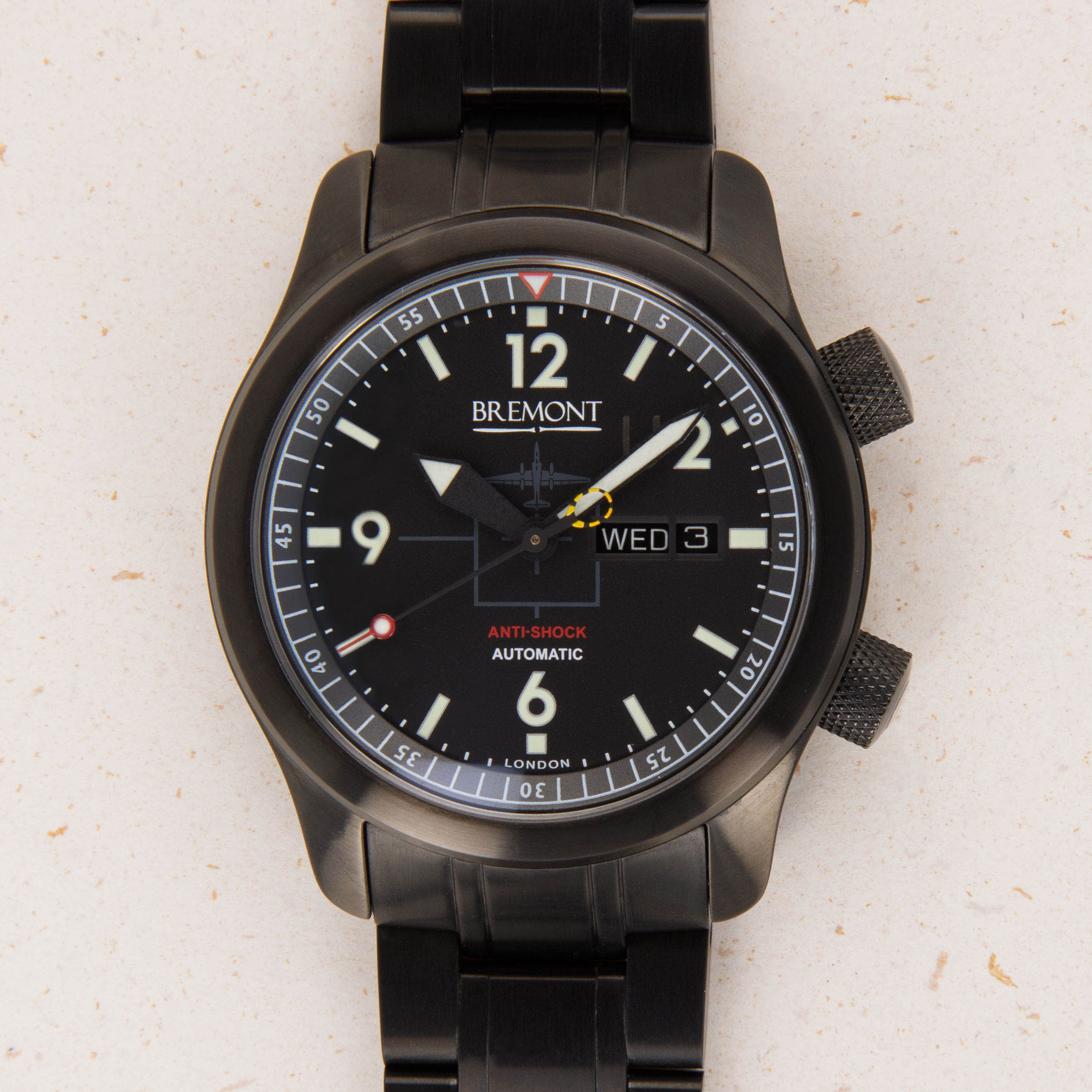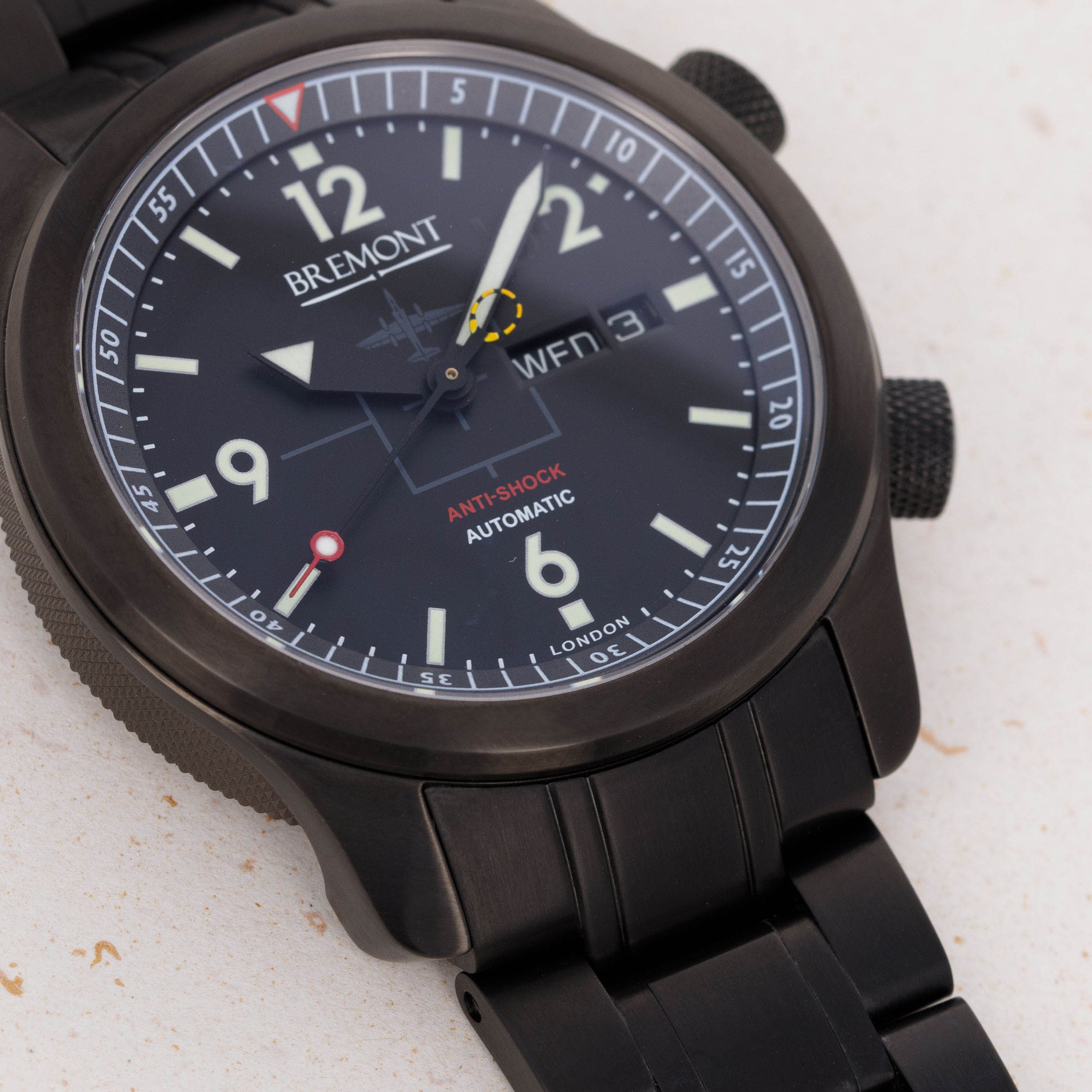 Founded in 2002, Bremont began when two brothers, Nick and Giles English, were inspired to create an aviation-themed watch company after their father Euan died in an accident while flying a vintage WWII Harvard aircraft. Having gained experience with mechanical technologies such as clock-assembly, aeroplane and yacht-construction from Euan, it was obvious to the brothers what sort of company would commemorate him best. Afraid to use their surname knowing that it would sound cliché given the brothers are in fact from England, they searched for a name to use. This name came to them when a flight they were on had to land in a farm due to a storm. The farmers name? Antoine Bremont. Due to their rich familial connection to aviation it was only natural that Bremont would focus on creating watches that would speak to their RAF heritage. Thus, the brothers sought to make their watches capable of withstanding the harsh punishments dealt during military flight. Following five years of R&D, Bremont finally launched their first watch in 2007 and ever since then the brand has grown from strength to strength with a whole host of impressive offerings; one of which being this U-2 Limited Edition. Boasting a blacked-out 43mm stainless steel DLC case and a matching bracelet, this U-2 is an intensely capable timepiece inside and out. Featuring an anti-shock rubberised movement mount designed to withstand the Martin-Baker ejection seat program and featuring the silhouette of a plane on its black dial, this timepiece embodies Bremont’s aeronautical spirit in its totality.