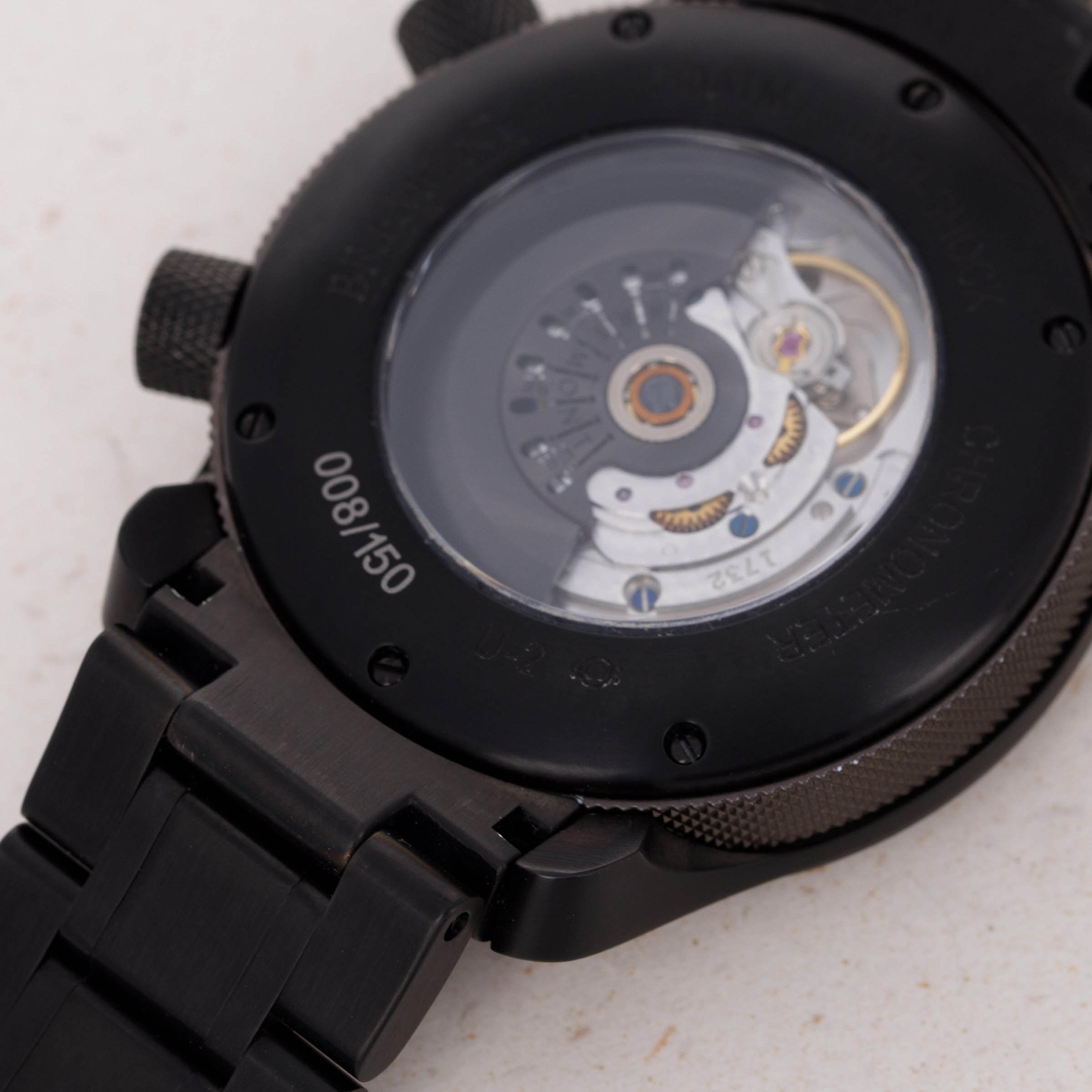 Featuring a blacked-out construction, the U-2's stainless steel case and bracelet feature a complete DLC finish that has resulted in its monochromatic aesthetic.
