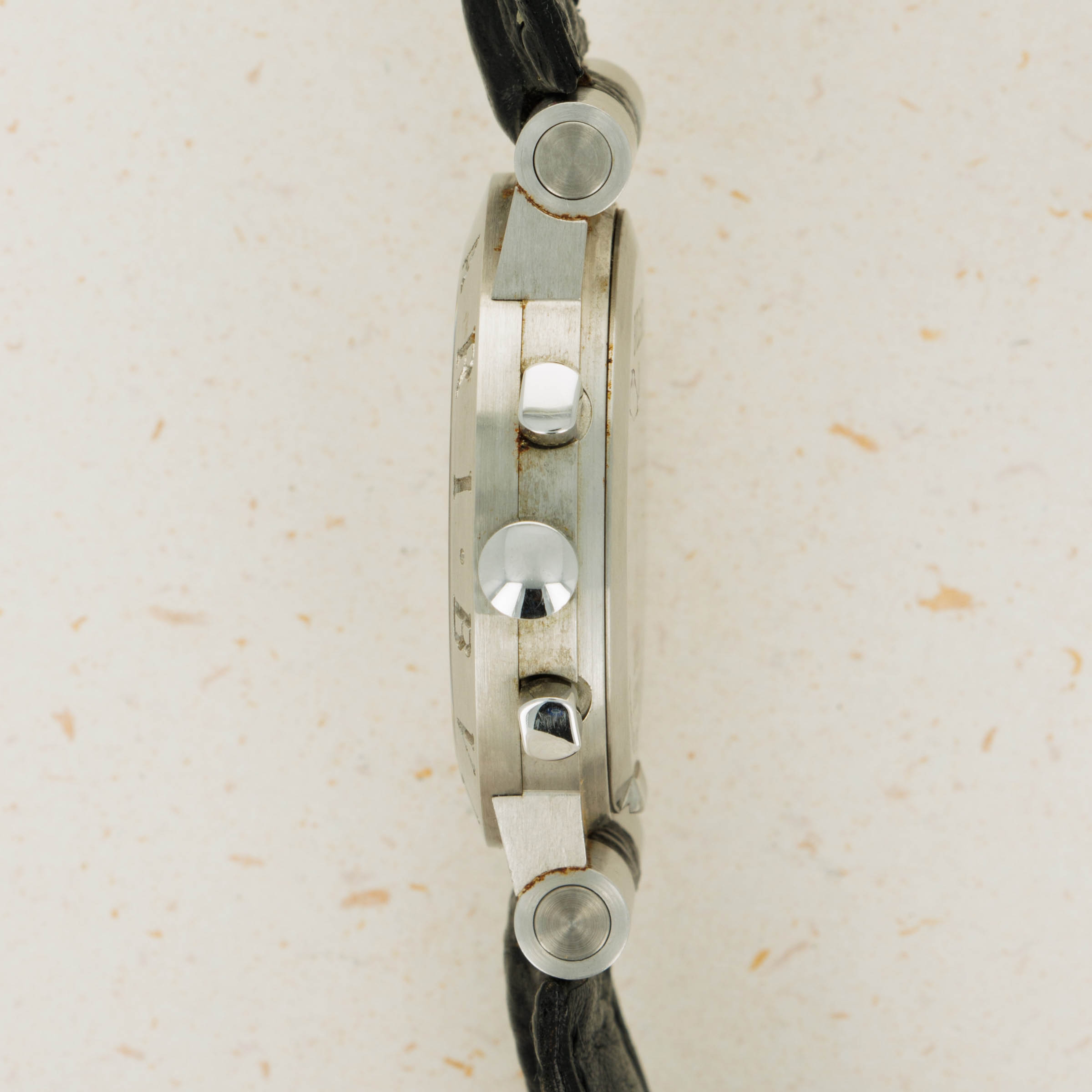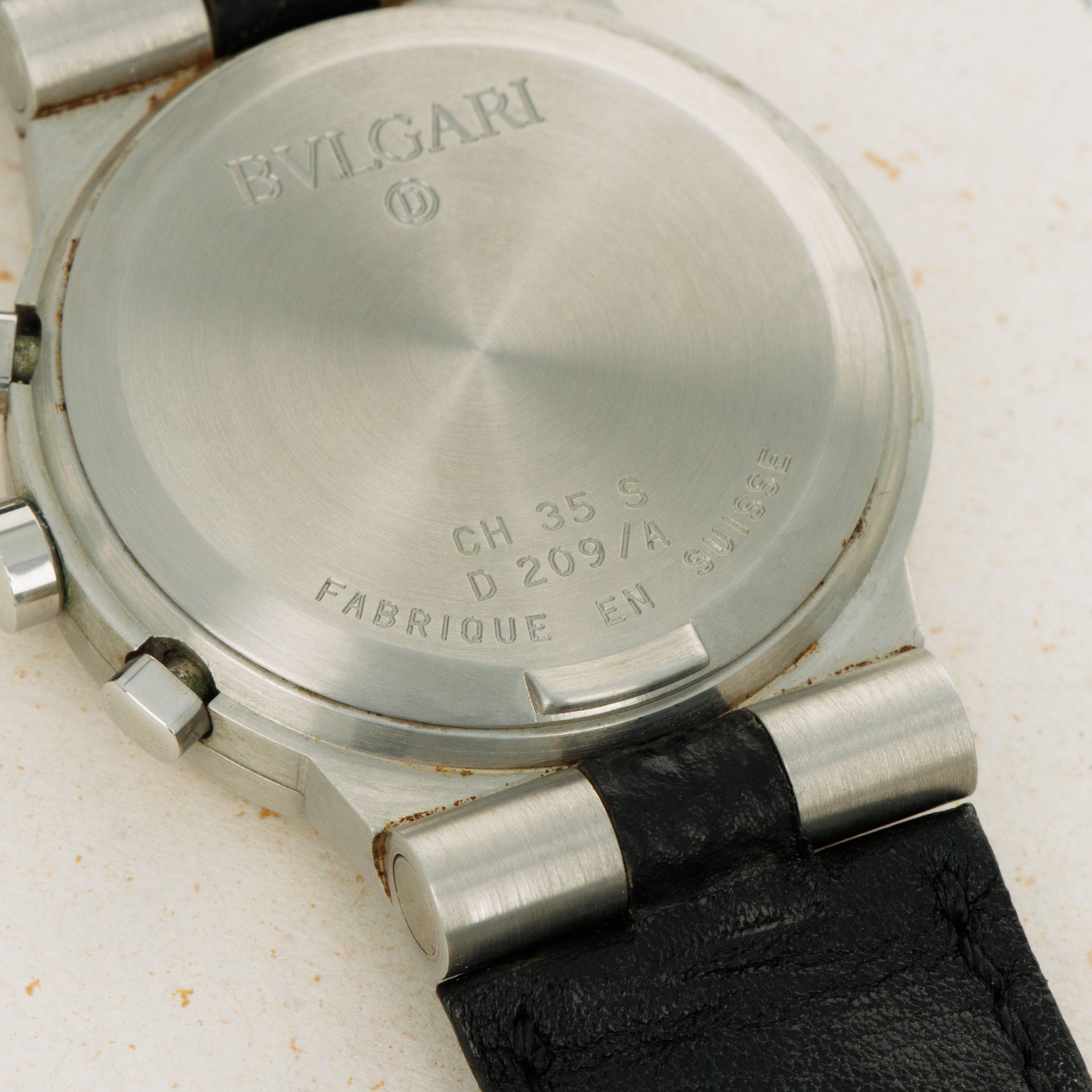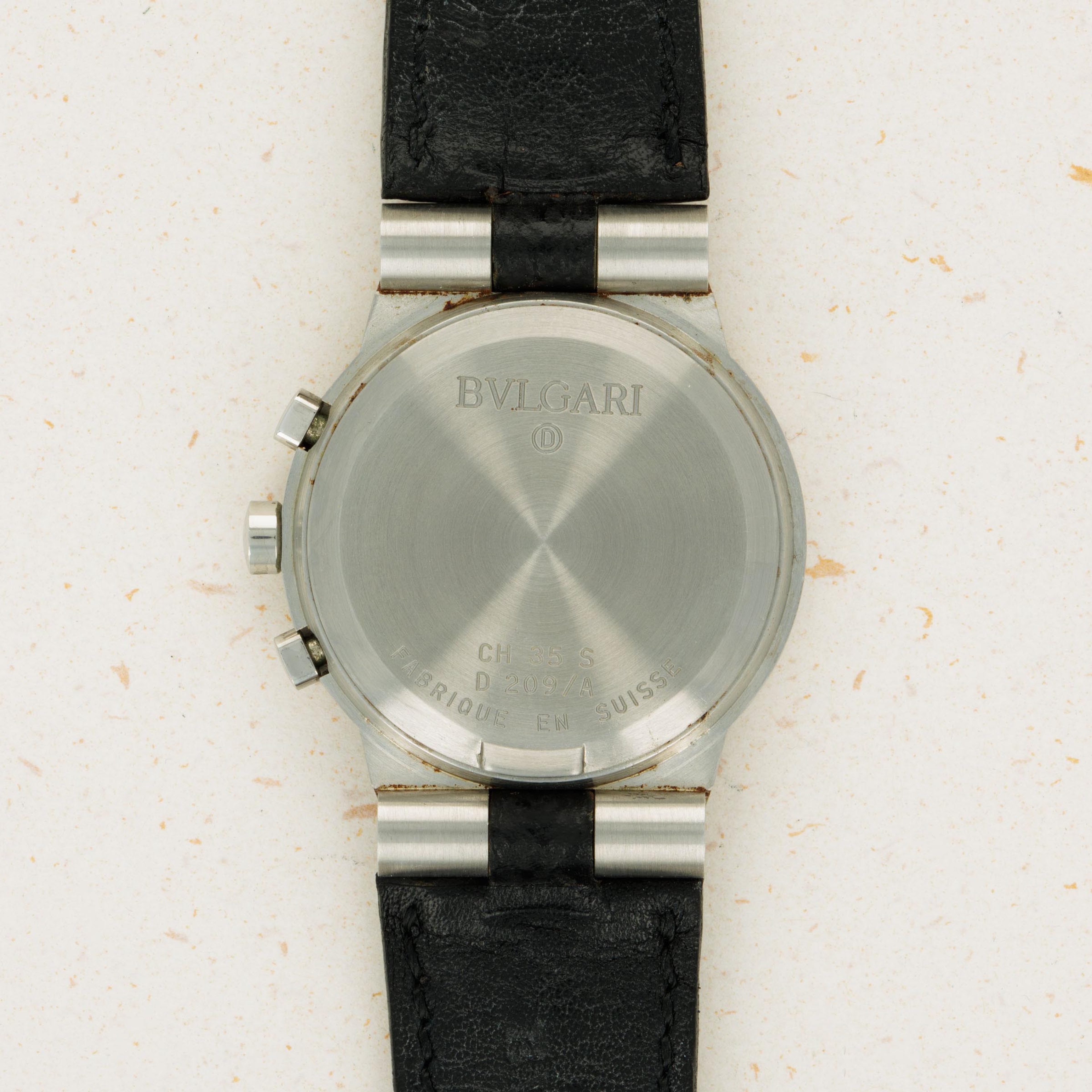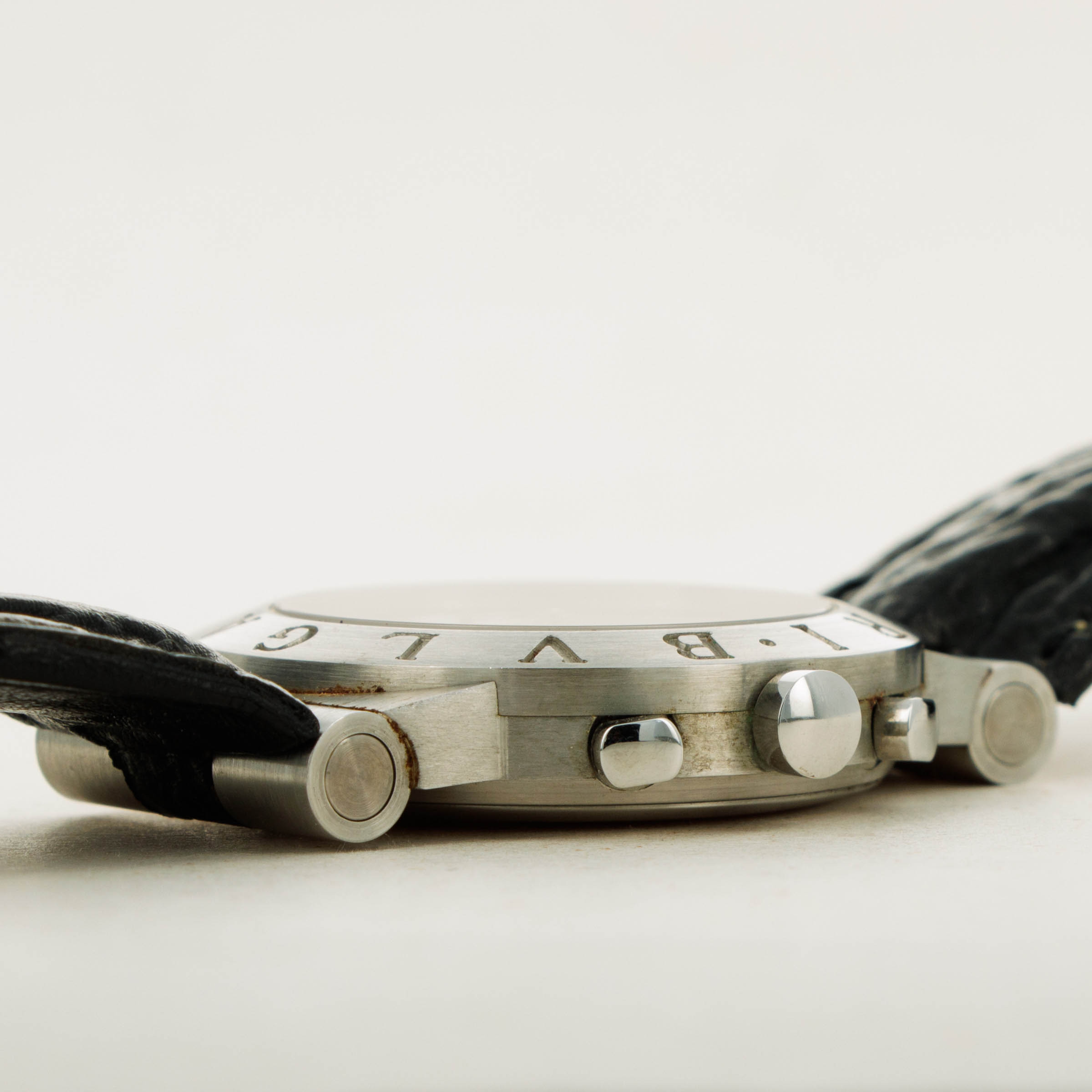 A timepiece that seamlessly blends history with contemporary design, the Bulgari Diagono embodies the essence of luxury and precision. First introduced in 1988, the Diagono marked Bulgari's first step into the world of high-end sports watches. Its name, "Diagono," pays homage to the ancient Greek word "agon," which signifies competition and performance, a testament to its sporting heritage. A harmonious fusion of classic elegance and modern aesthetics, the Diagono speaks to Bulgari’s unique aesthetic with its signature architectural case design, characterized by its unique lug system and circular bezel that features Bulgari’s name engraved deep into its surface. Over the years, the Bulgari Diagono has evolved, incorporating cutting-edge technology and innovative complications, but the example we have here is a bit more reserved, with a quartz movement and a simple black dial that lacks any script whatsoever besides “SWISS MADE” at 6 o’clock. Featuring white chronograph subdials and a date aperture, the Diagono maintains complete legibility while also retaining its signature aesthetic and unique feel on the wrist.