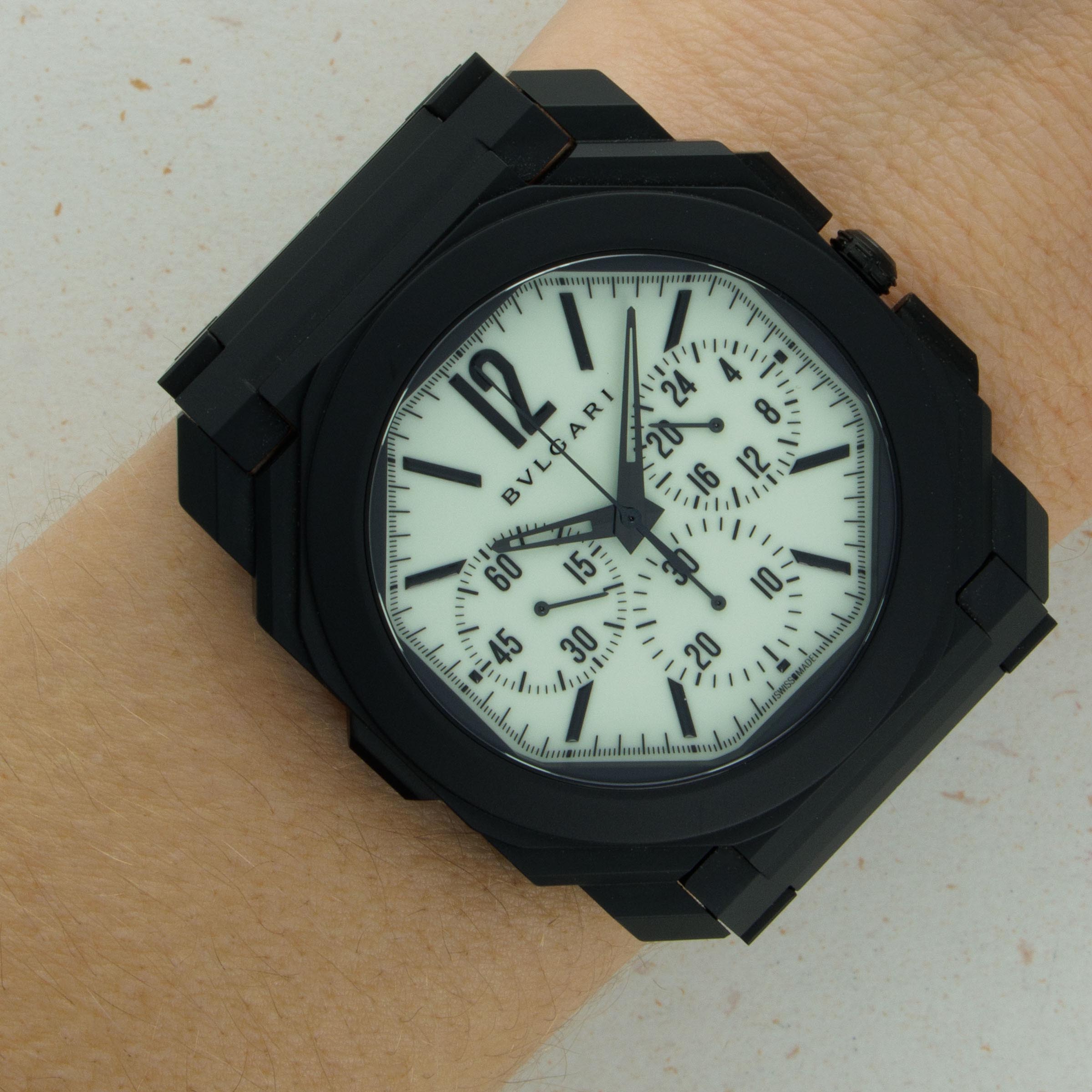 Incredibly unique thanks to the Octo's impressively thin design and light on the wrist thanks to its ceramic construction, the Octo Finissimo Chronograph GMT "Nuclear Option" is a truly fun watch to wear, a fact only compounded by its transformative dial that comes alive in the dark like nothing else on the market.