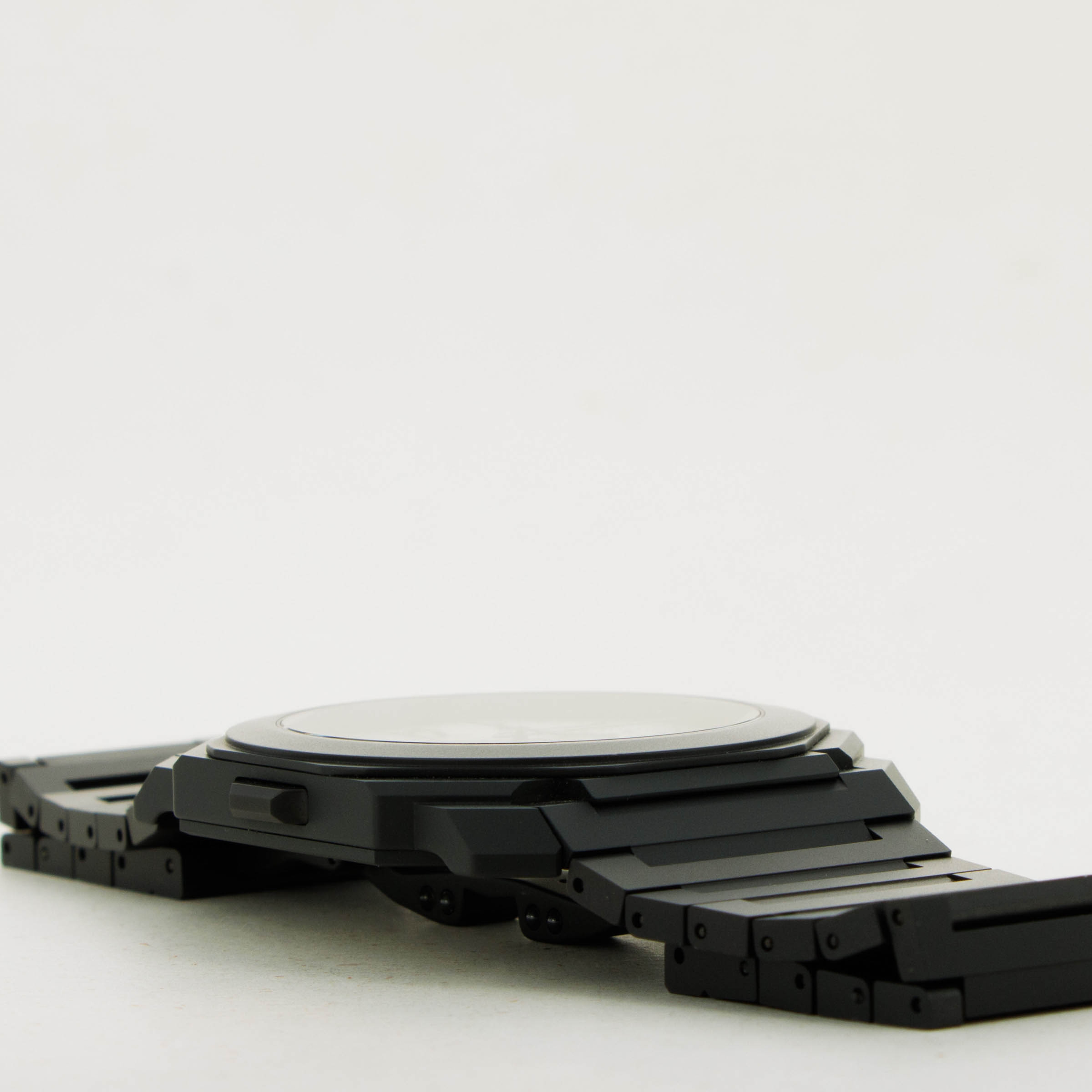 Launched in 2021 as a collaborative project between Bvlgari and The Rake and Revolution, the Octo Finissimo Nuclear Option is a distinguished timepiece that grabs attention no matter what. Made of ceramic for the very first time and featuring a 43mm-wide construction that highlights the Octo’s unique bracelet and case design, the Nuclear Option's sandblasted exterior offers a matte finish that draws attention to the real party piece, its dial. Boasting a chronograph and GMT function, the Nuclear Option's dial houses three subdials dedicated to its two eponymous functions. However, the dial's true genius comes from its almost white pale green surface. Painted entirely with Super-LumiNova, the Nuclear Option's dial glows a bright shade of green in the darkness that illuminates its functions and black dial furniture like the backlight on a phone. A genuinely striking effect, the Nuclear Option deserves its nickname and stands proud as an unusual watch within a collection that is famed for its already-unique design. Powered by the 3.3mm thin automatic cal. BVL318, the Nuclear Option sports 55 hours of power reserve and a wealth of fine finishing that remains entirely visible behind a sapphire crystal caseback. Not ones to hide their hard work, the Nuclear Option is indeed a two-sided beauty with its dial and movement both combining to create a wonderful viewing experience no matter which side of the watch you would like to appreciate.