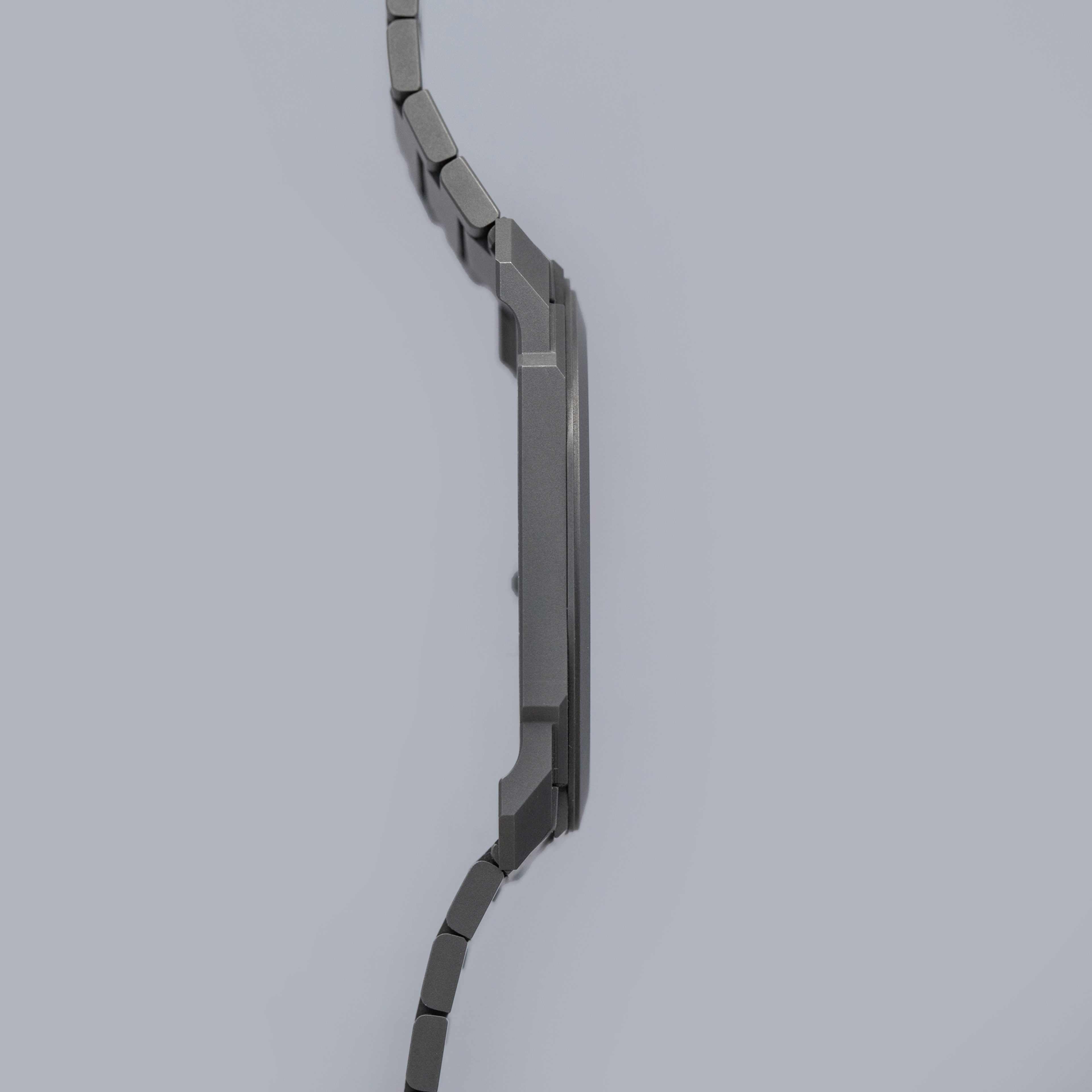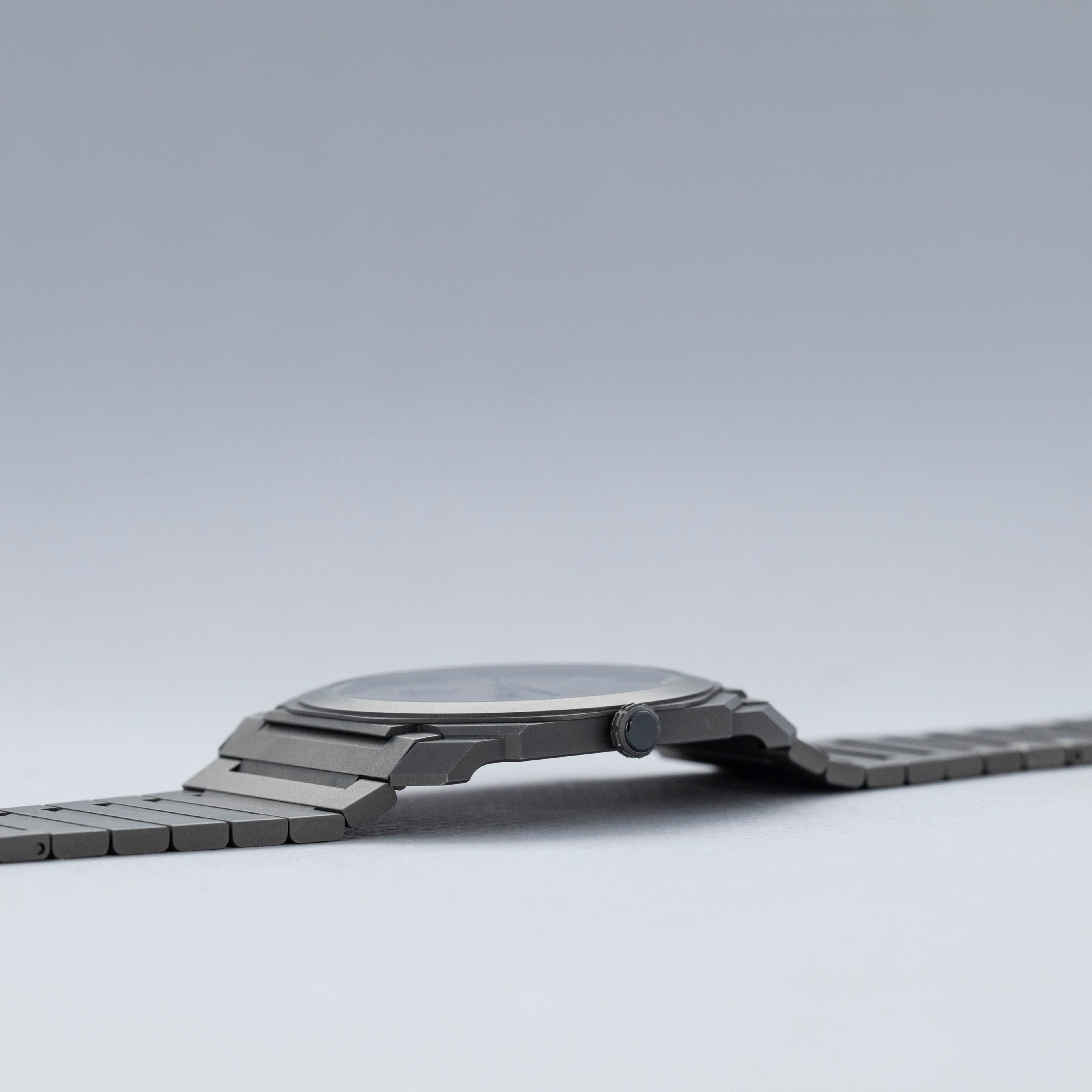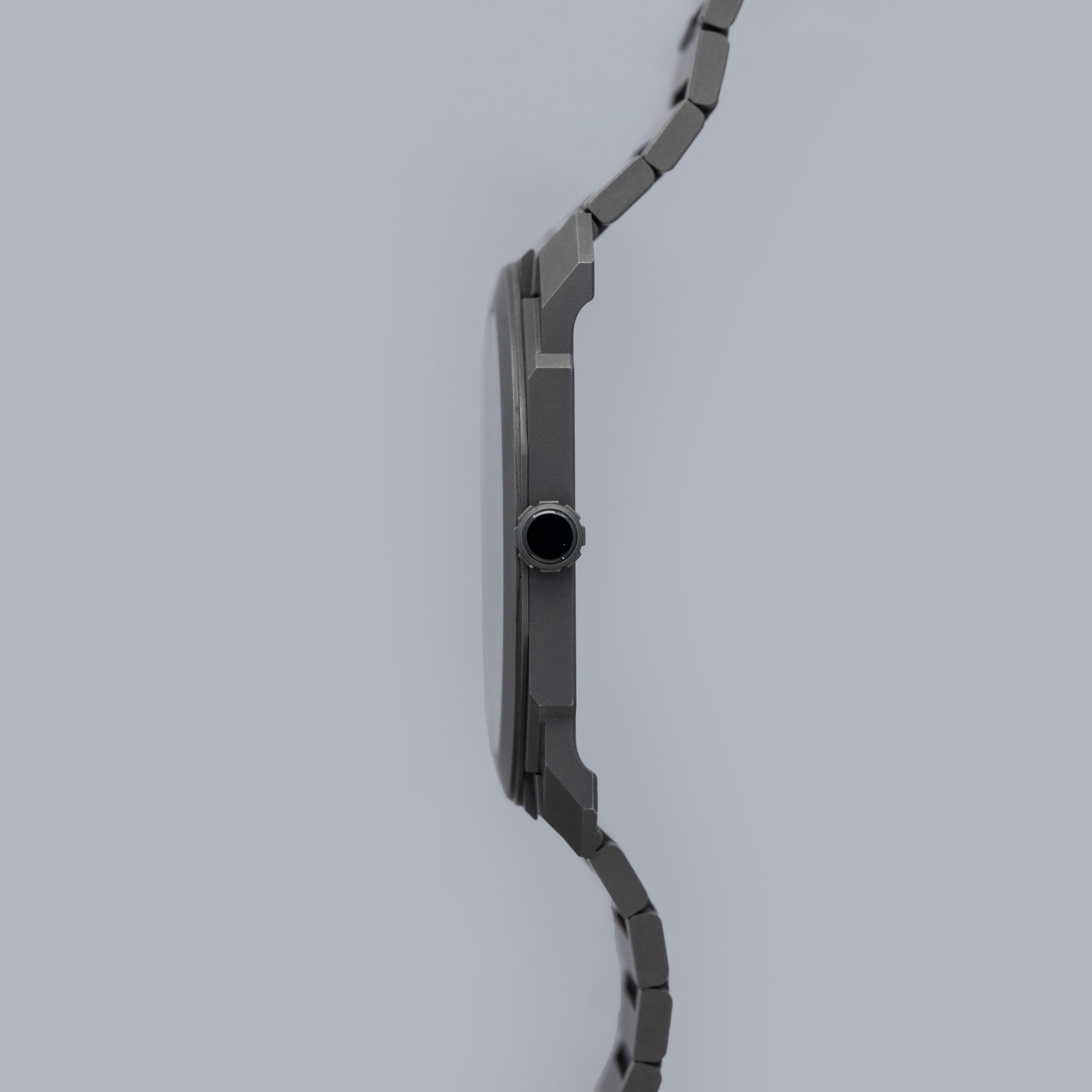 Featuring a truly monochromatic dial, the Octo's black hands, hour markers, and subdial, all blend in with its grey dial that then perfectly matches its grey titanium case and bracelet for a stealthy monochromatic experience on the wrist.