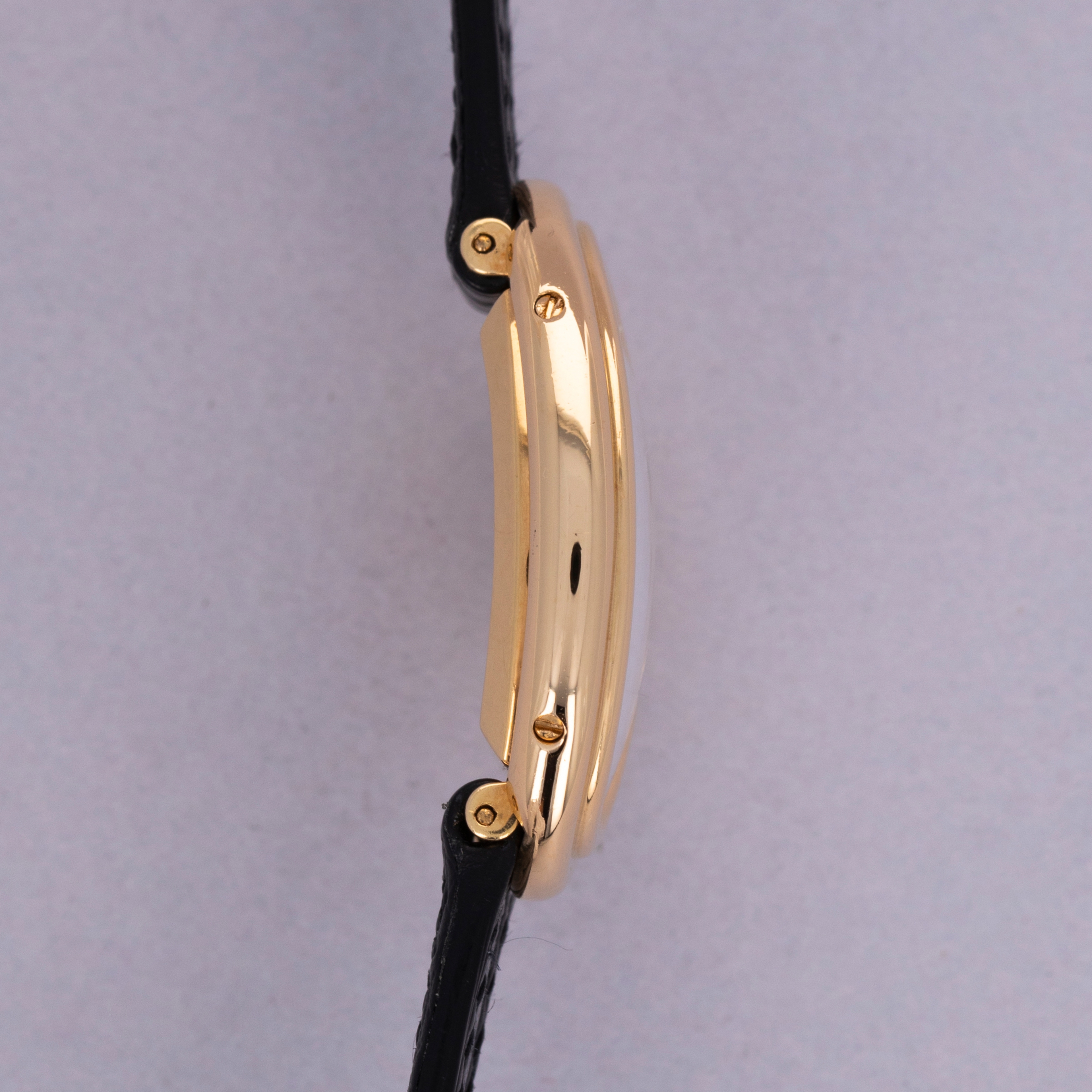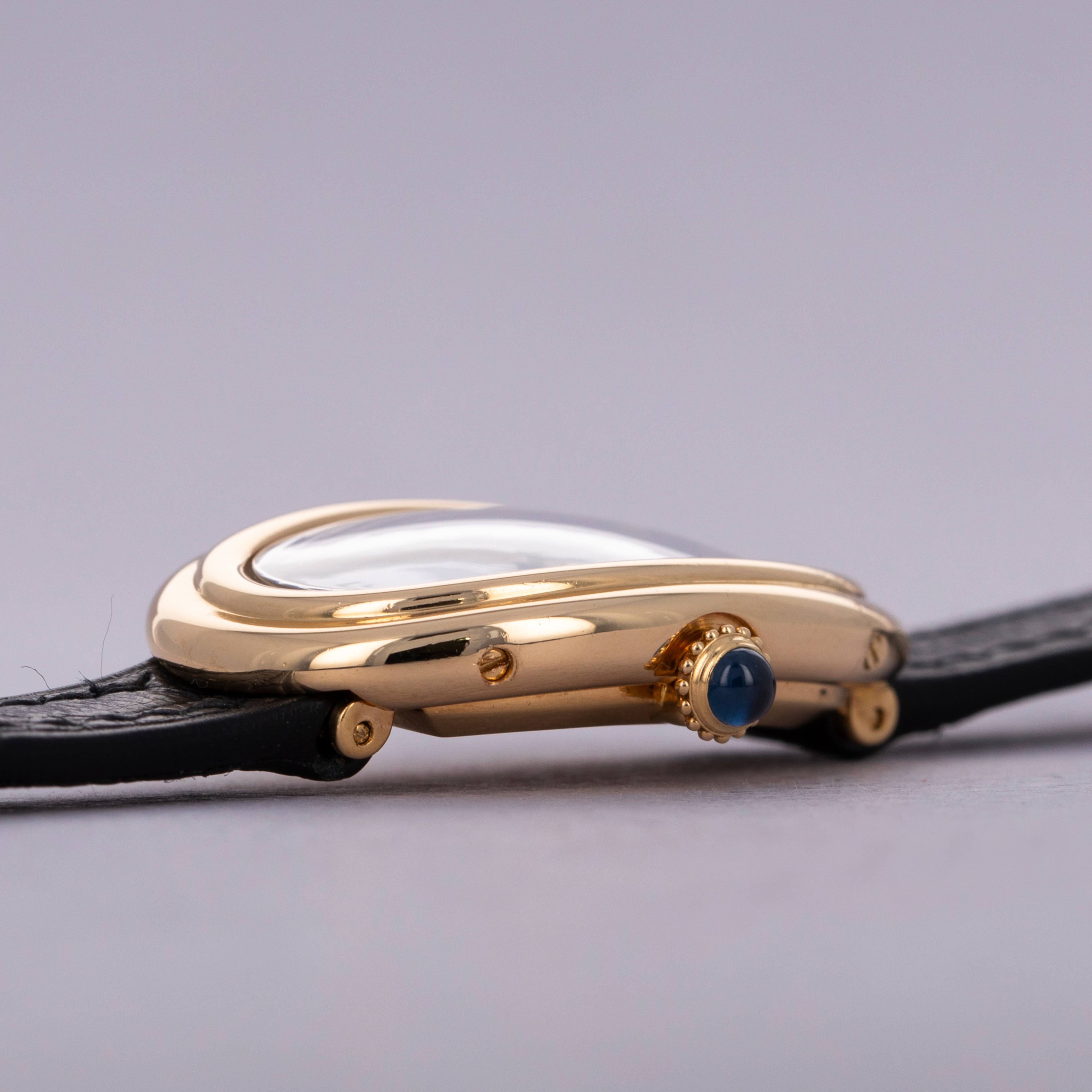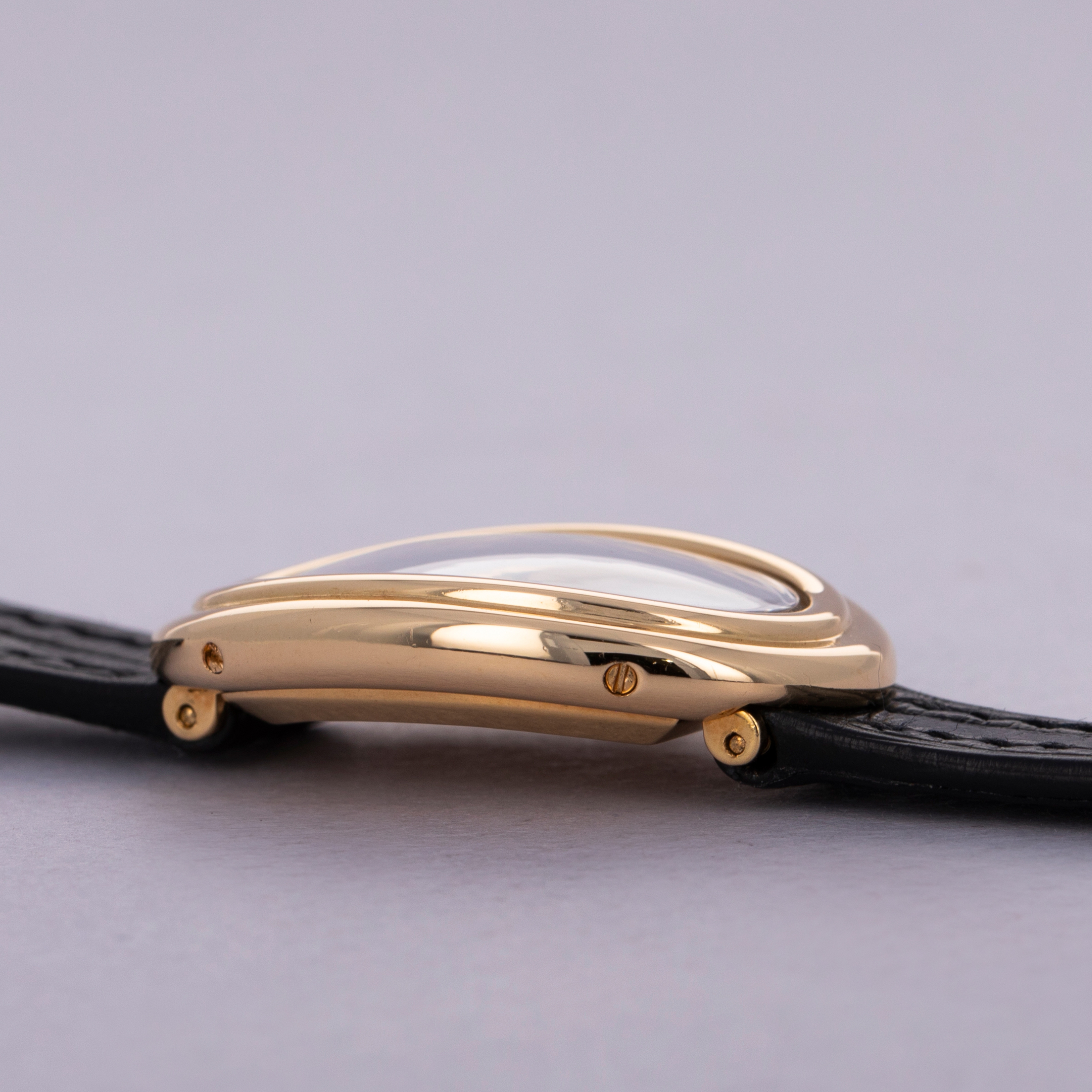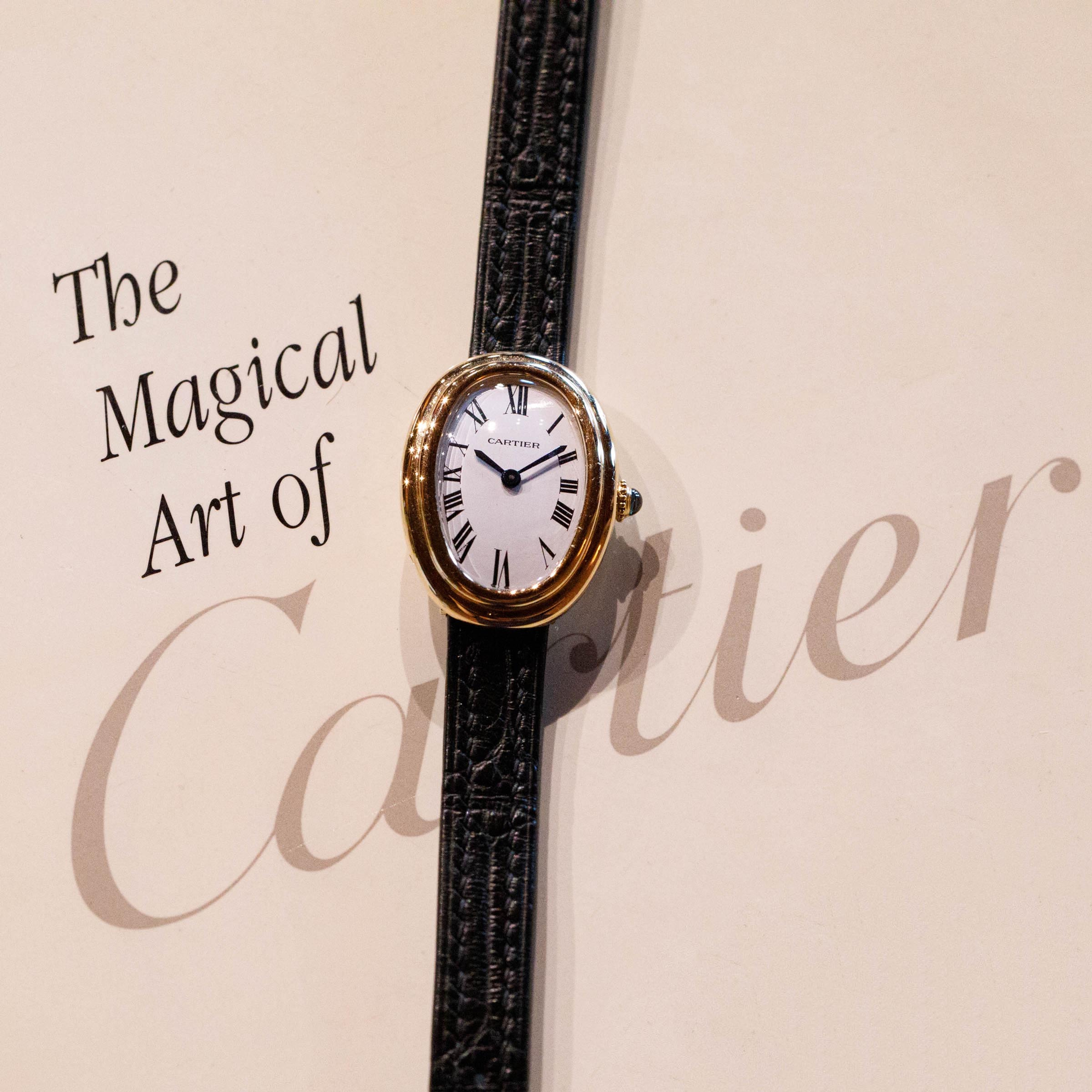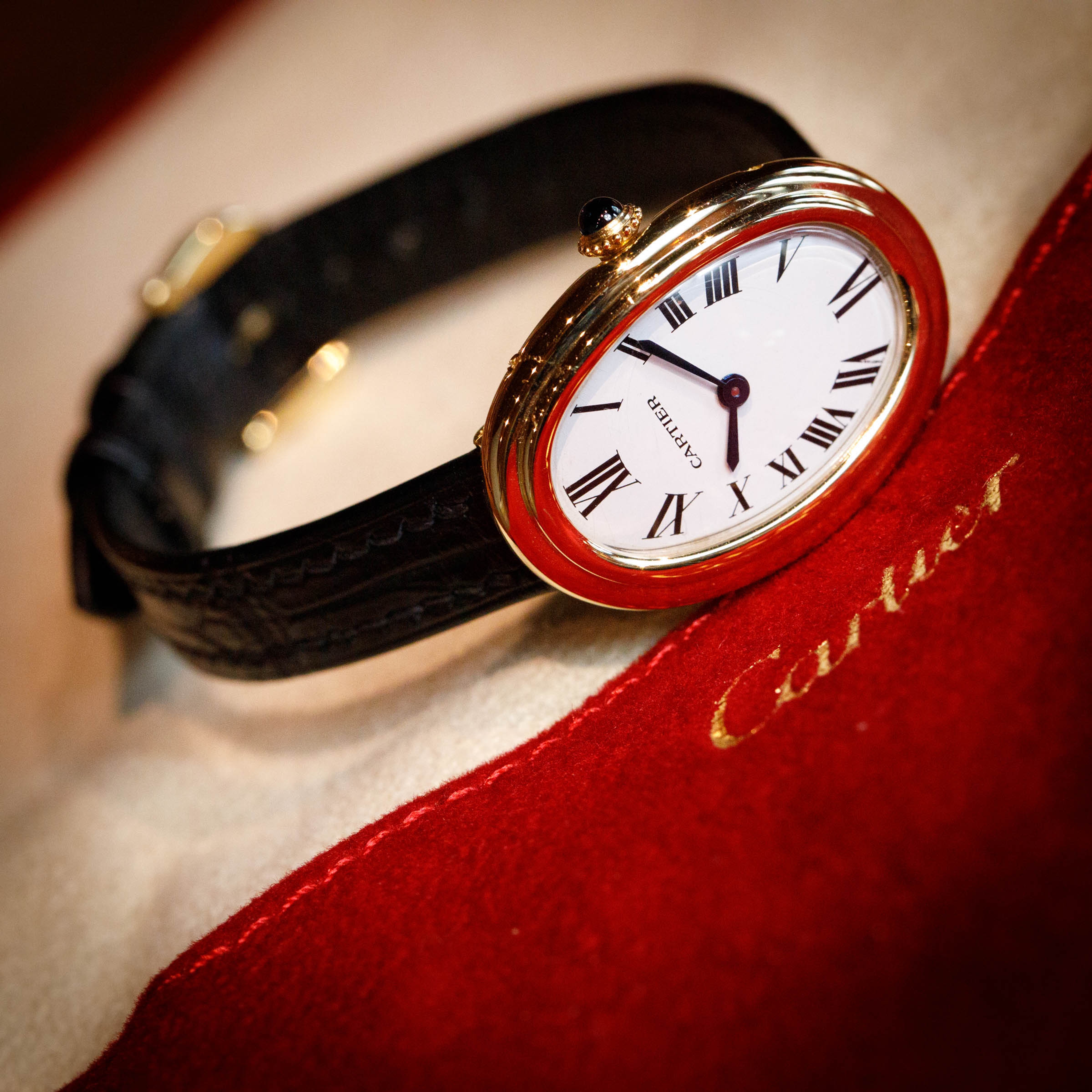 Famously named the Baignoire after its bathtub-like shape, the Baignoire's oval case bends ever so slightly, making it the perfect fit as it drapes across the wrist.