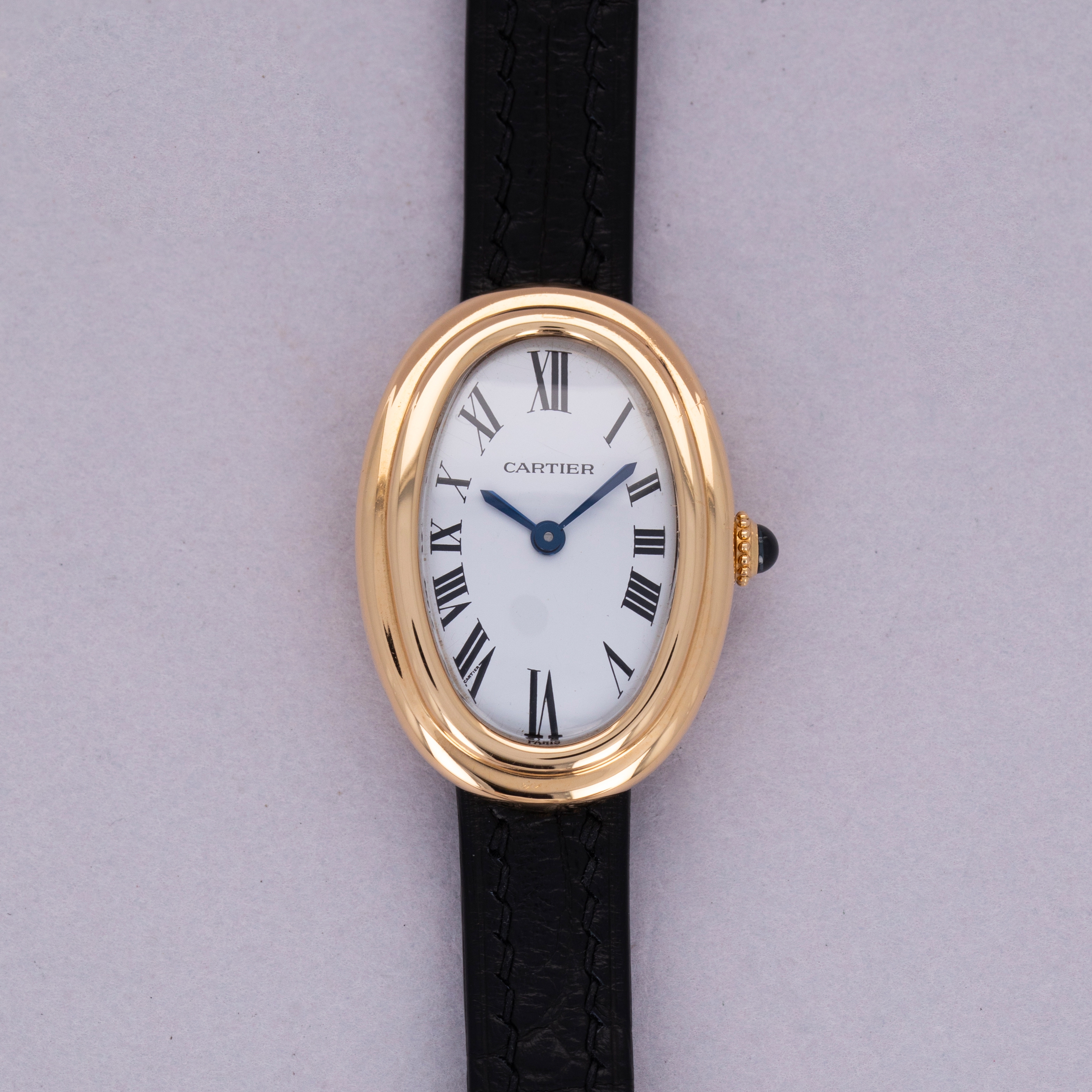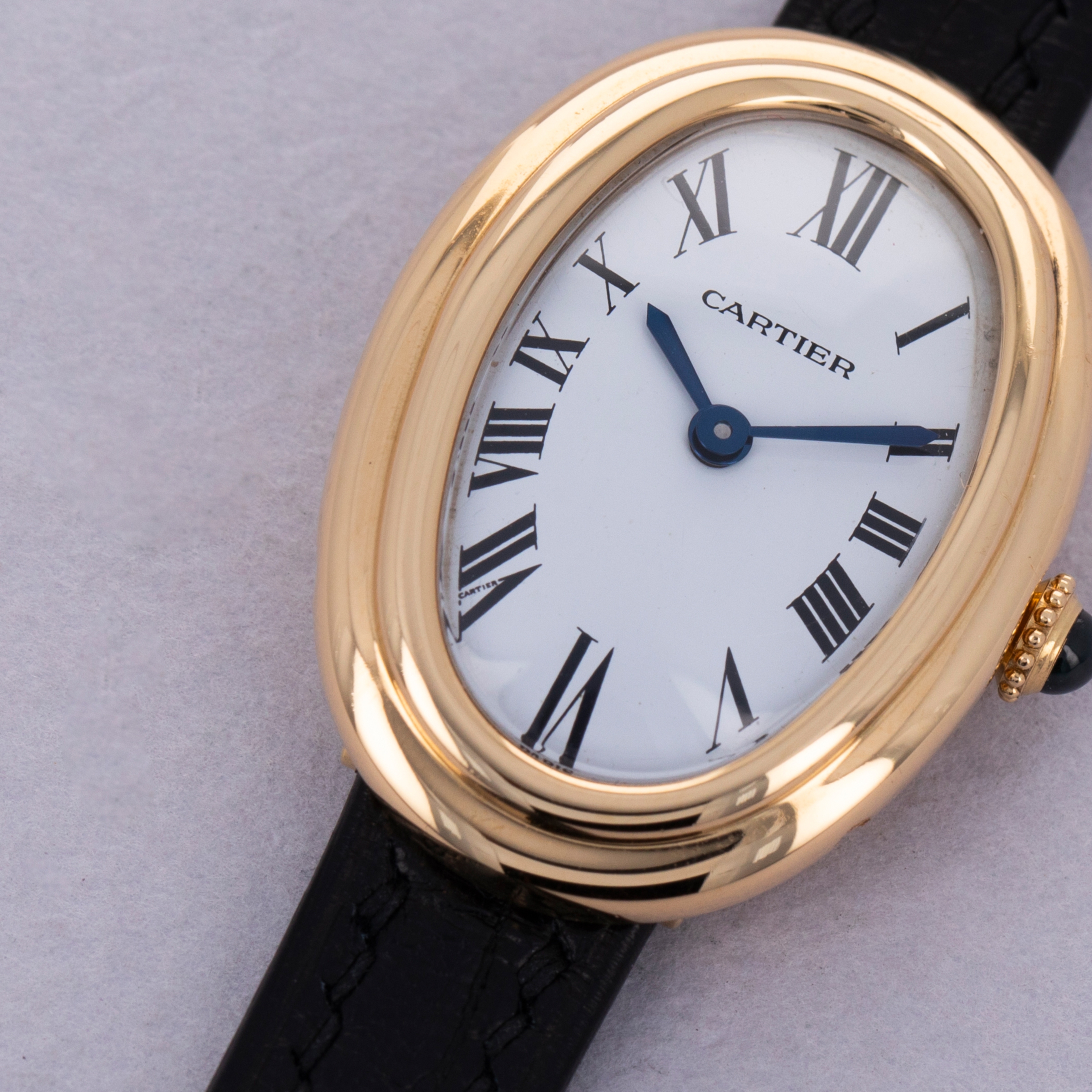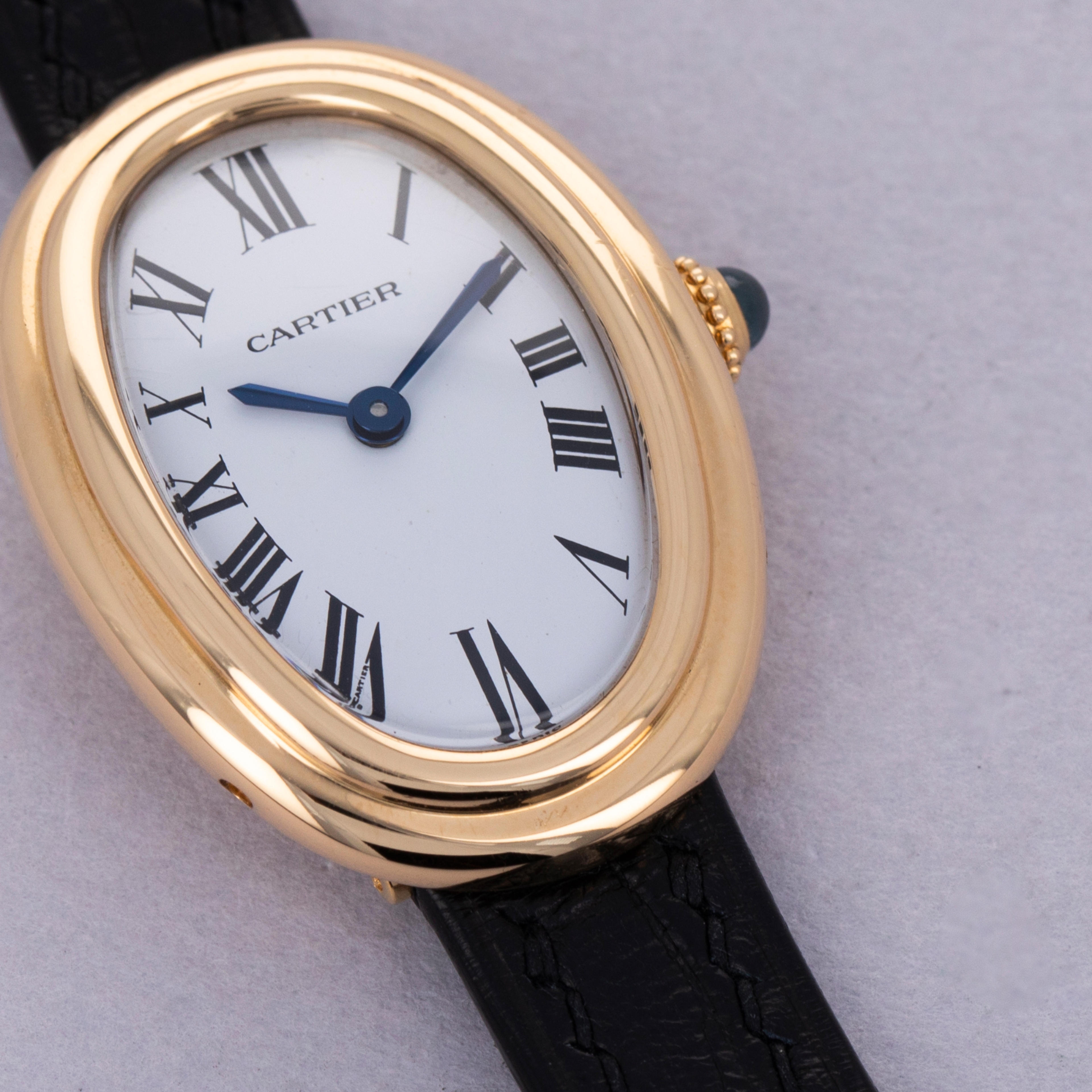 Holding a storied history that spans over a century, the Cartier Baignoire watch is a true icon in the world of luxury timepieces. Designed by Louis Cartier in 1912 specifically for the Grand Duchess Maria Pavlovna of Russia, it was the iconic brand’s first oval-shaped watch. Boasting an elliptical case design that was a departure from the traditional round and rectangular shapes of watches at the time, the Baignoire (named after the French word for “bathtub” due to its shape), or “oval-shaped watch” as it was known at the time, showcased Cartier's pioneering spirit and innovative approach to watchmaking, and watchmaking design. Initially designed as a bespoke piece for the select few, the Baignoire quickly garnered attention for its distinctive shape and refined aesthetics and finally entered regular production in 1957. Throughout the decades, Cartier has revisited and refined the Baignoire, releasing various interpretations that highlight different facets of its design. From minimalist interpretations with sleek, curved cases to opulent versions adorned with diamonds and intricate guilloché patterns, each Baignoire model reflects Cartier's commitment to craftsmanship and artistic expression. Offered here we have a Baignoire ref. 78094 from the 1980s. Powered by a manual-wind movement within its 31.5mm x 22.5mm 18kt yellow gold case, this Baignoire combines the model’s vintage design with Cartier’s timeless aesthetics to create a watch that is truly exceptional.