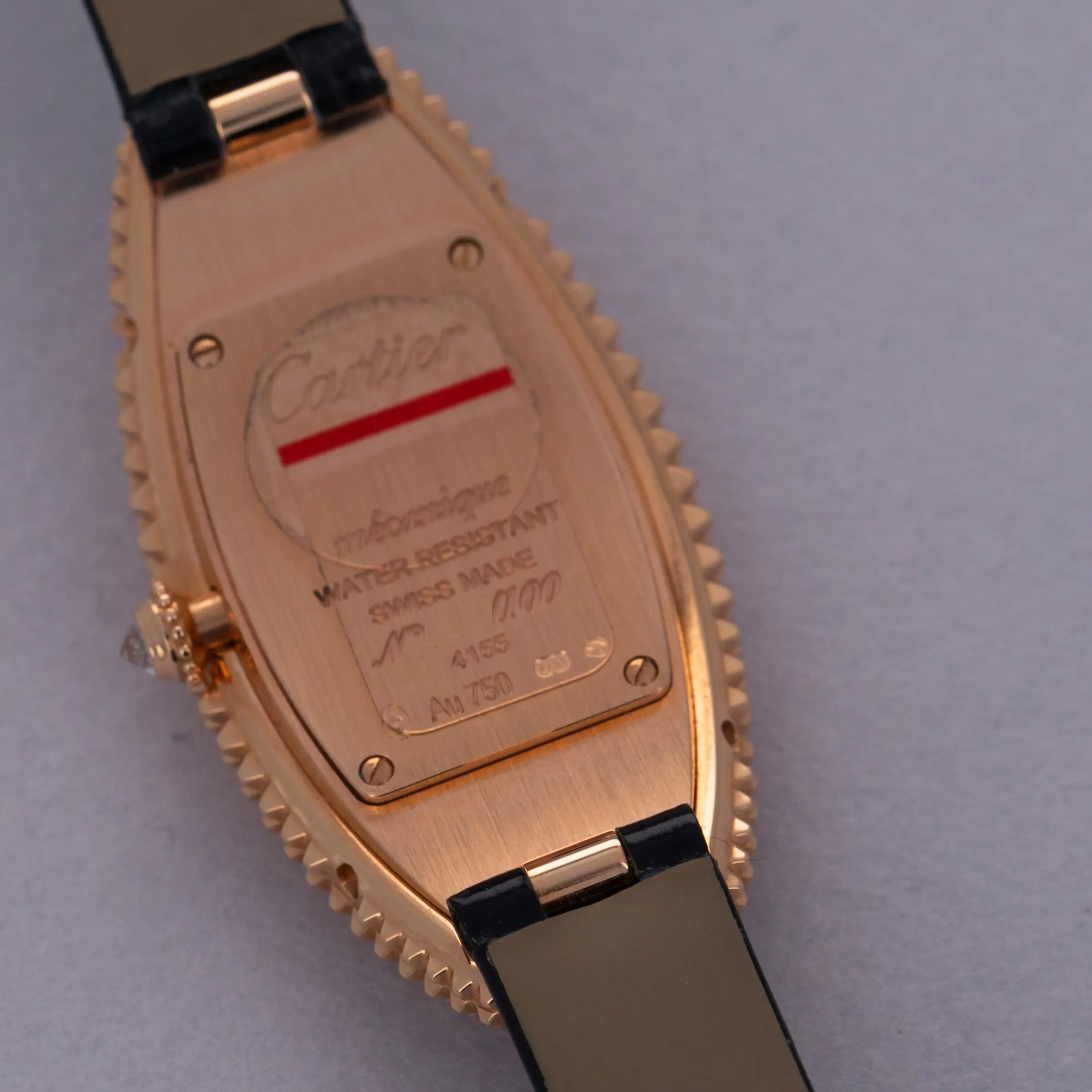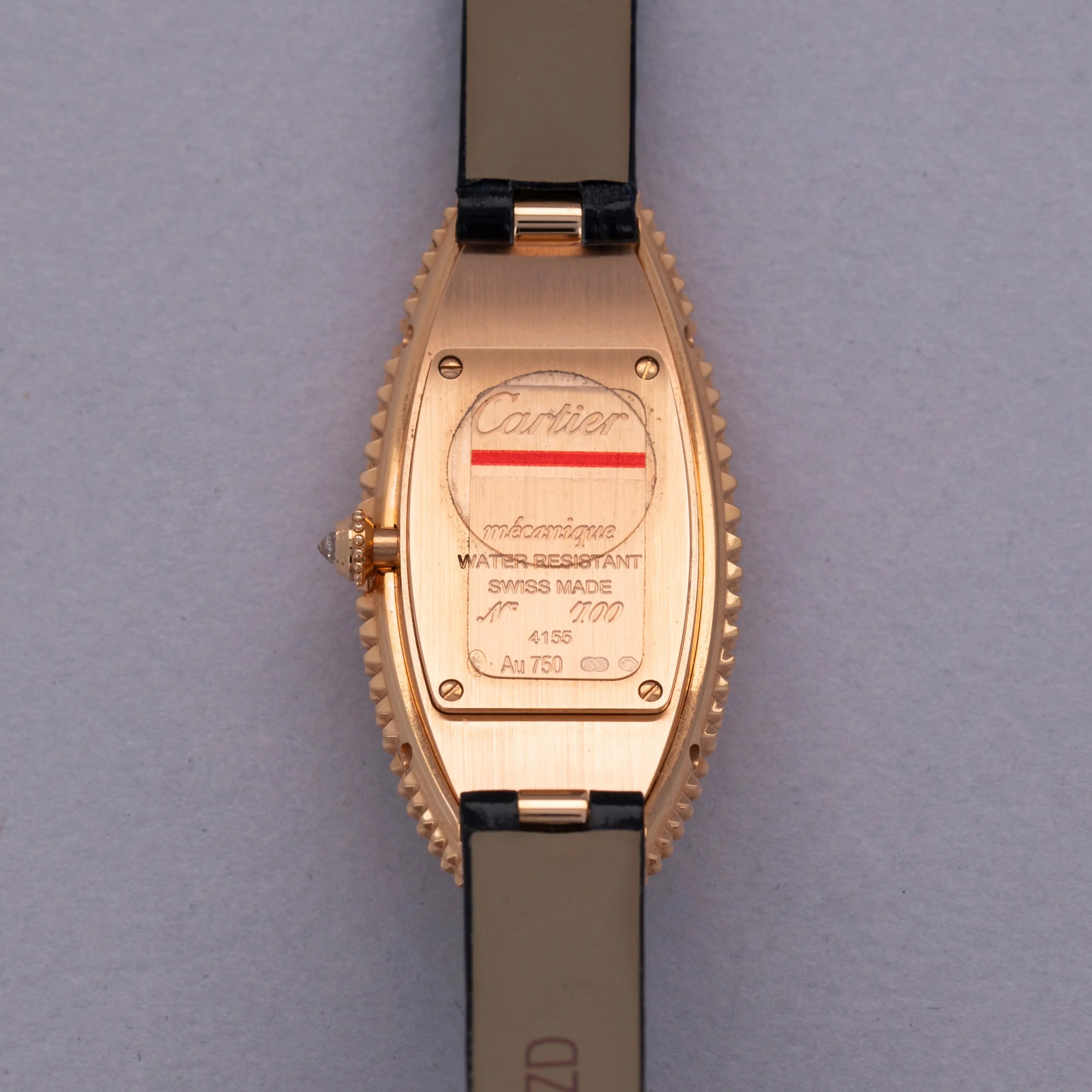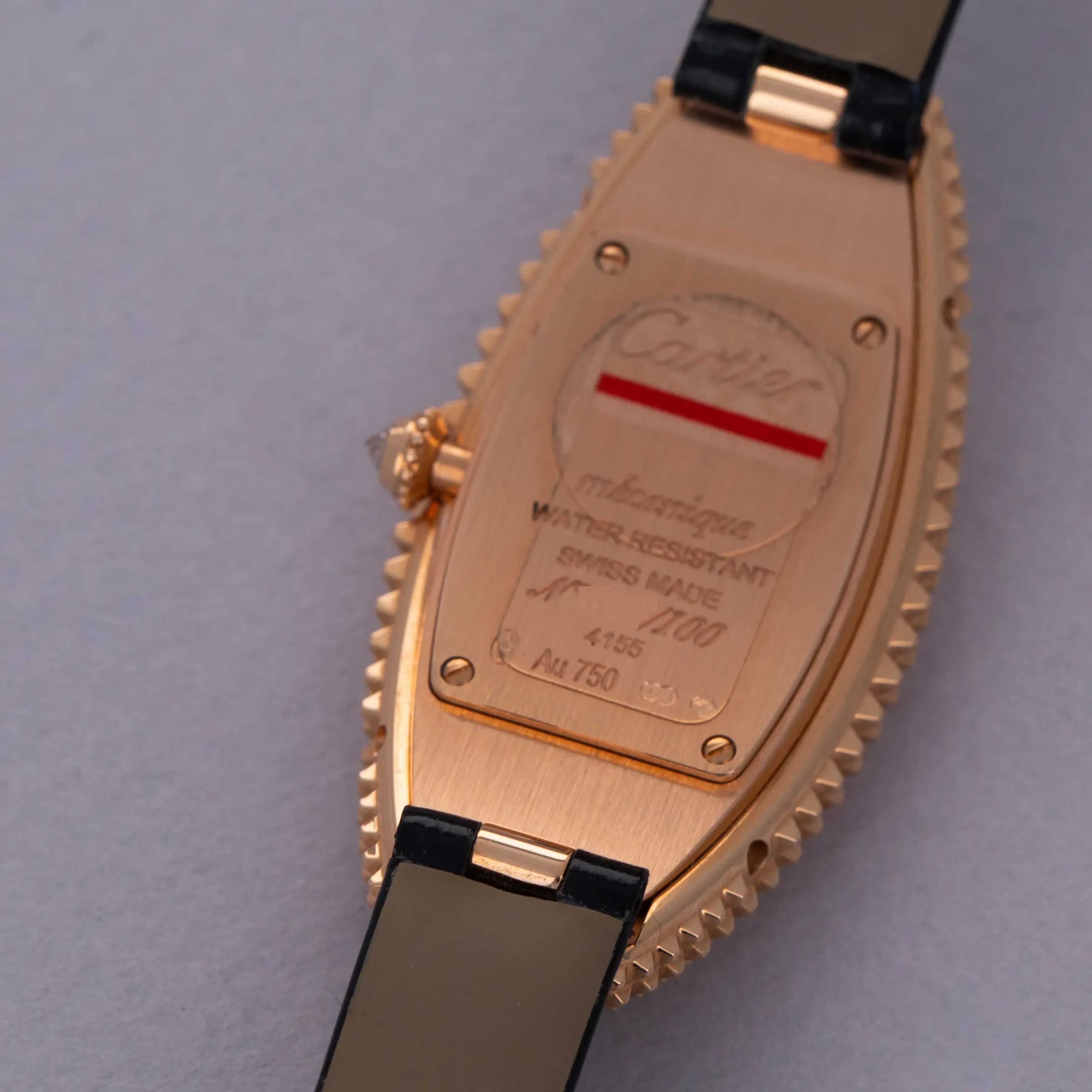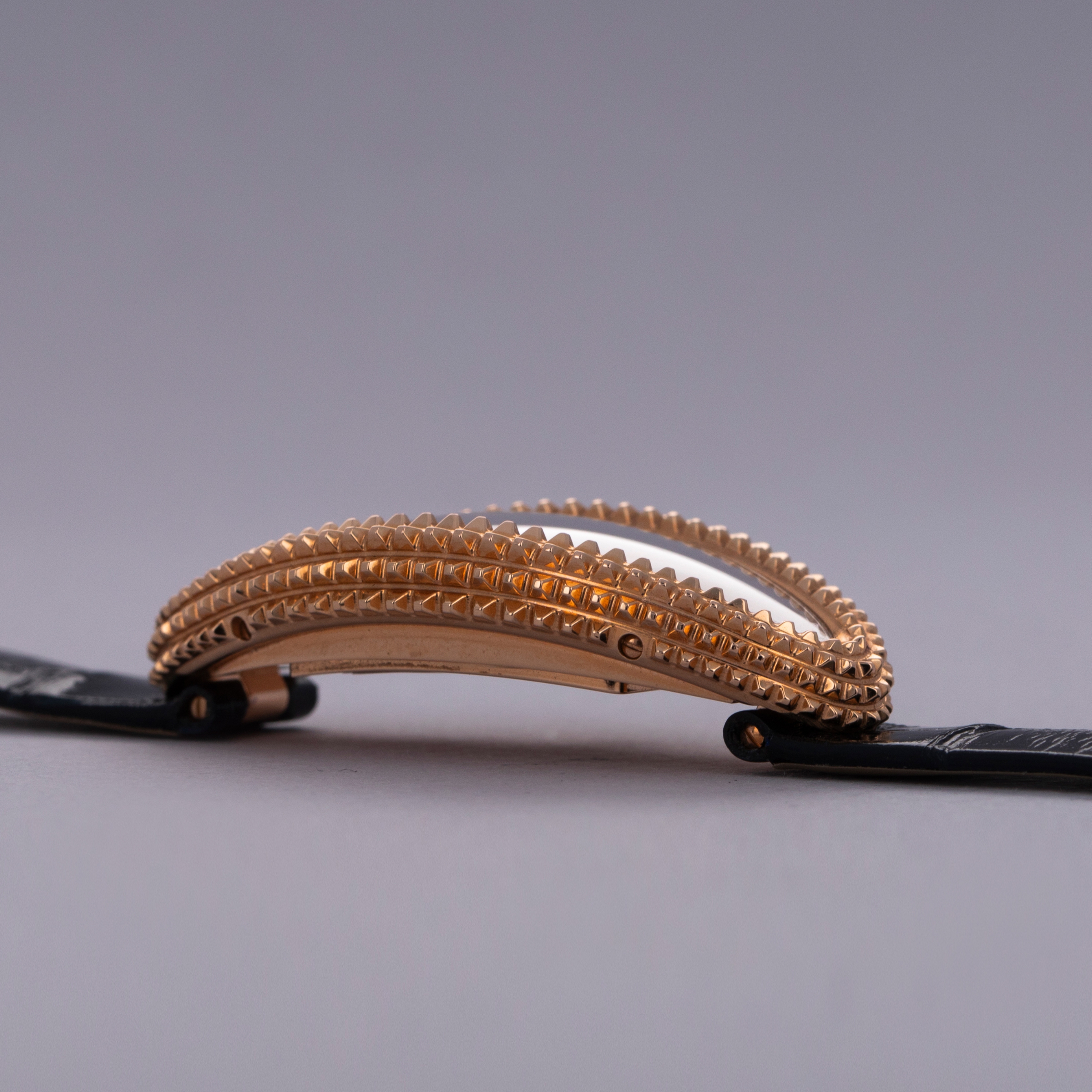 An elongated take on the Baignoire's iconic bathtub-like oval design, the Baignoire Allongee's construction wraps around the wrist elegantly, and with its uniquely textured bezel and mid-case, the example we have here is intensely elegant.