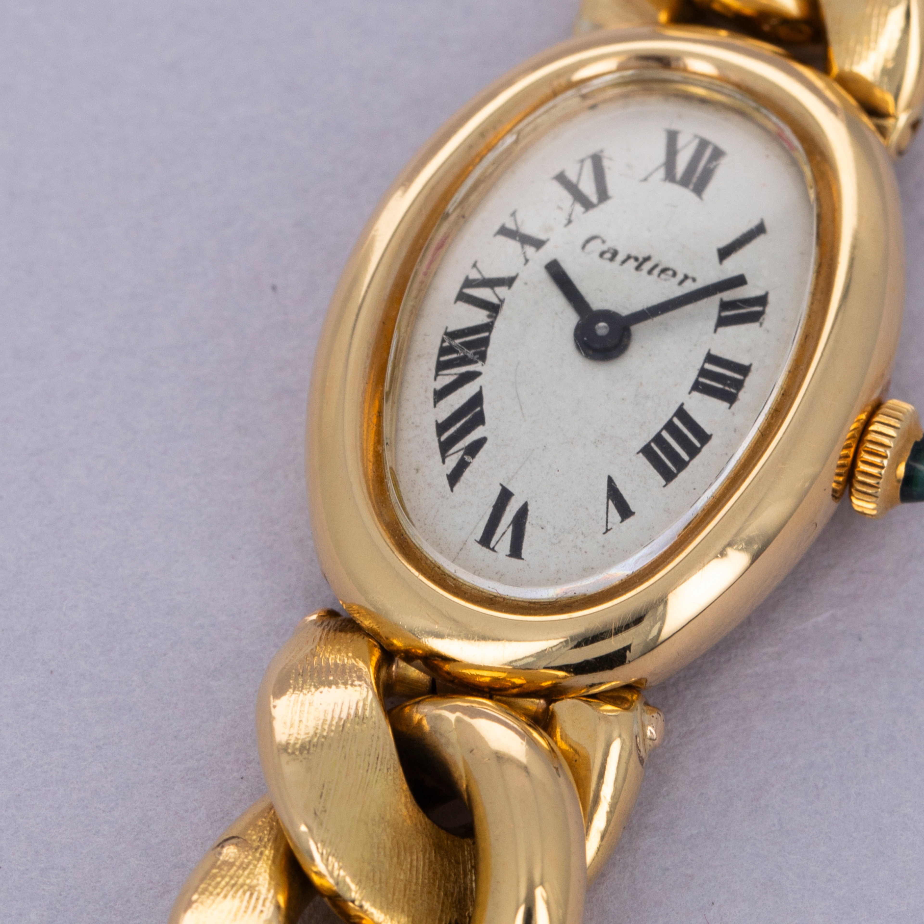 Made for Cartier New York by Bueche Girod, this Baignoire injects new life into the Baignoire collection through its unusual bracelet, an obvious departure from the Baignoire's typically restrained design language.