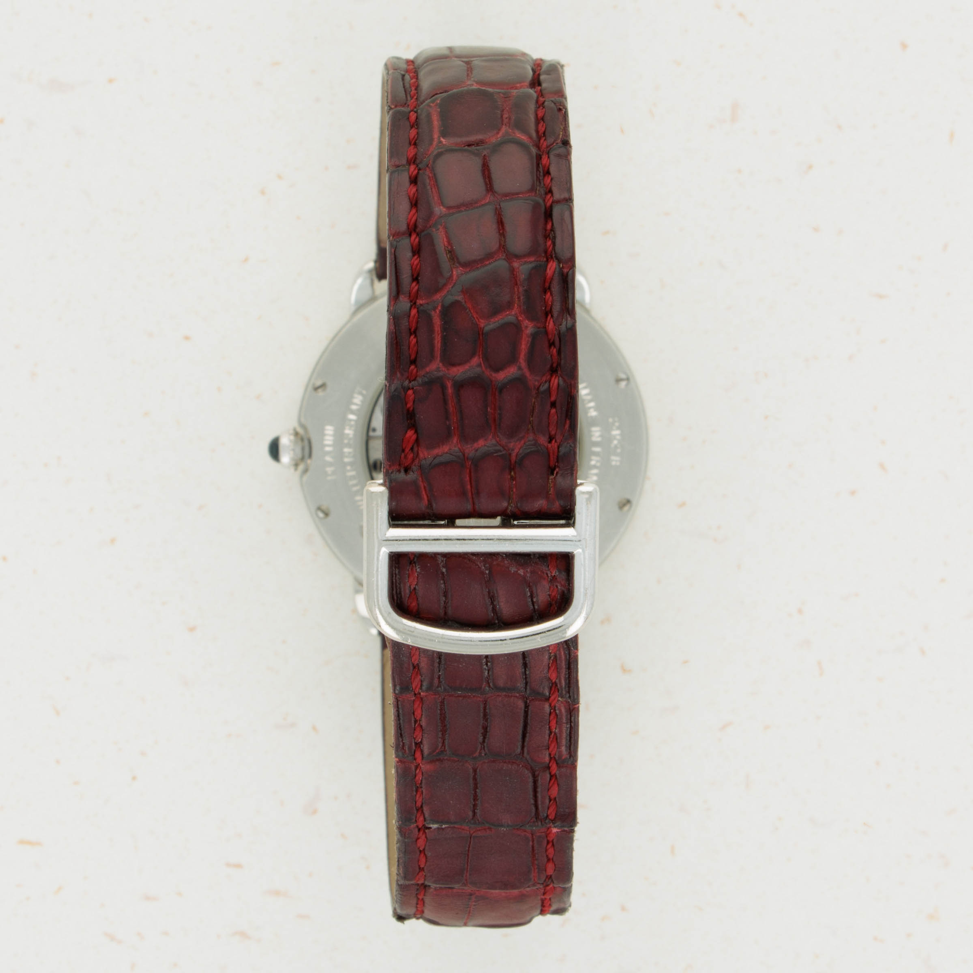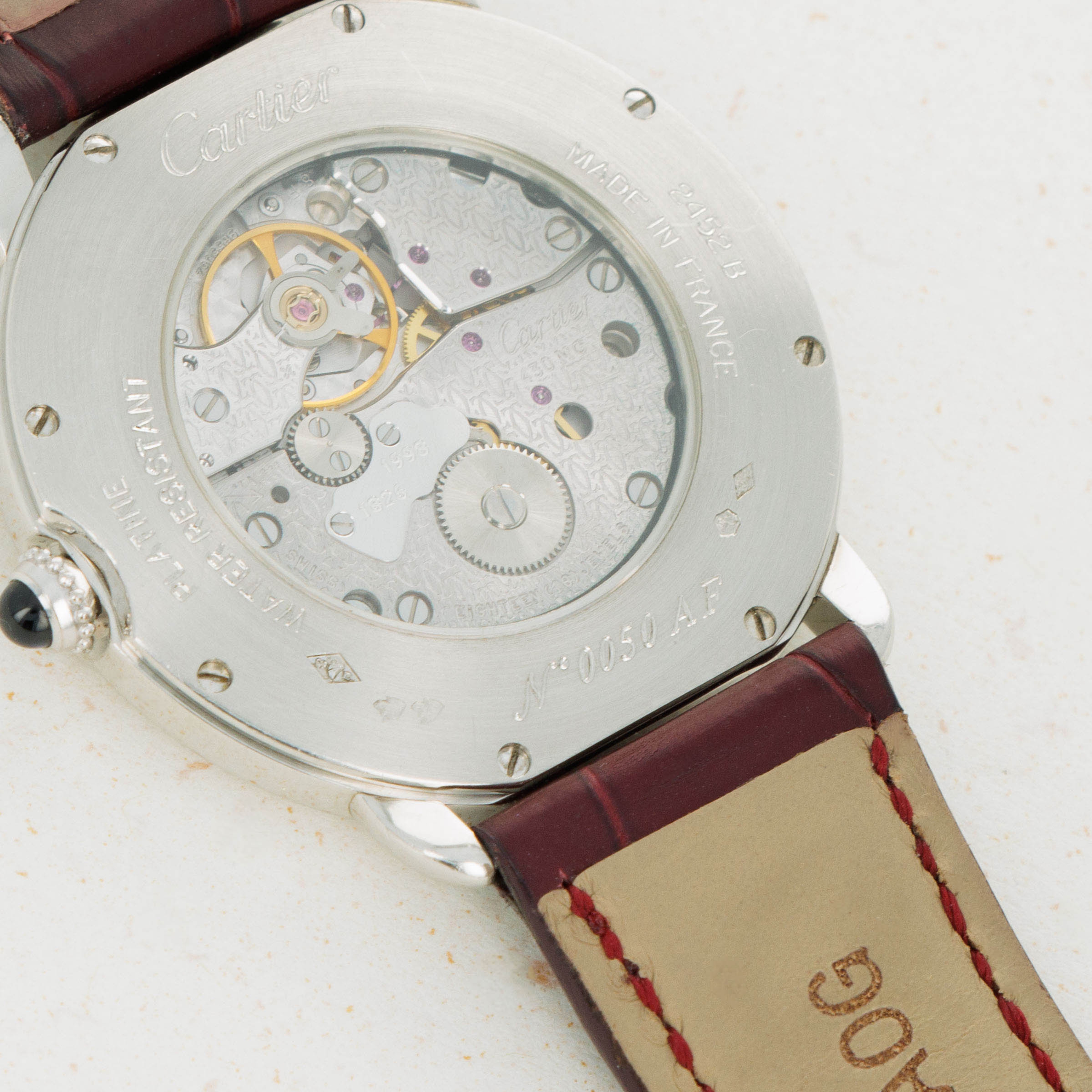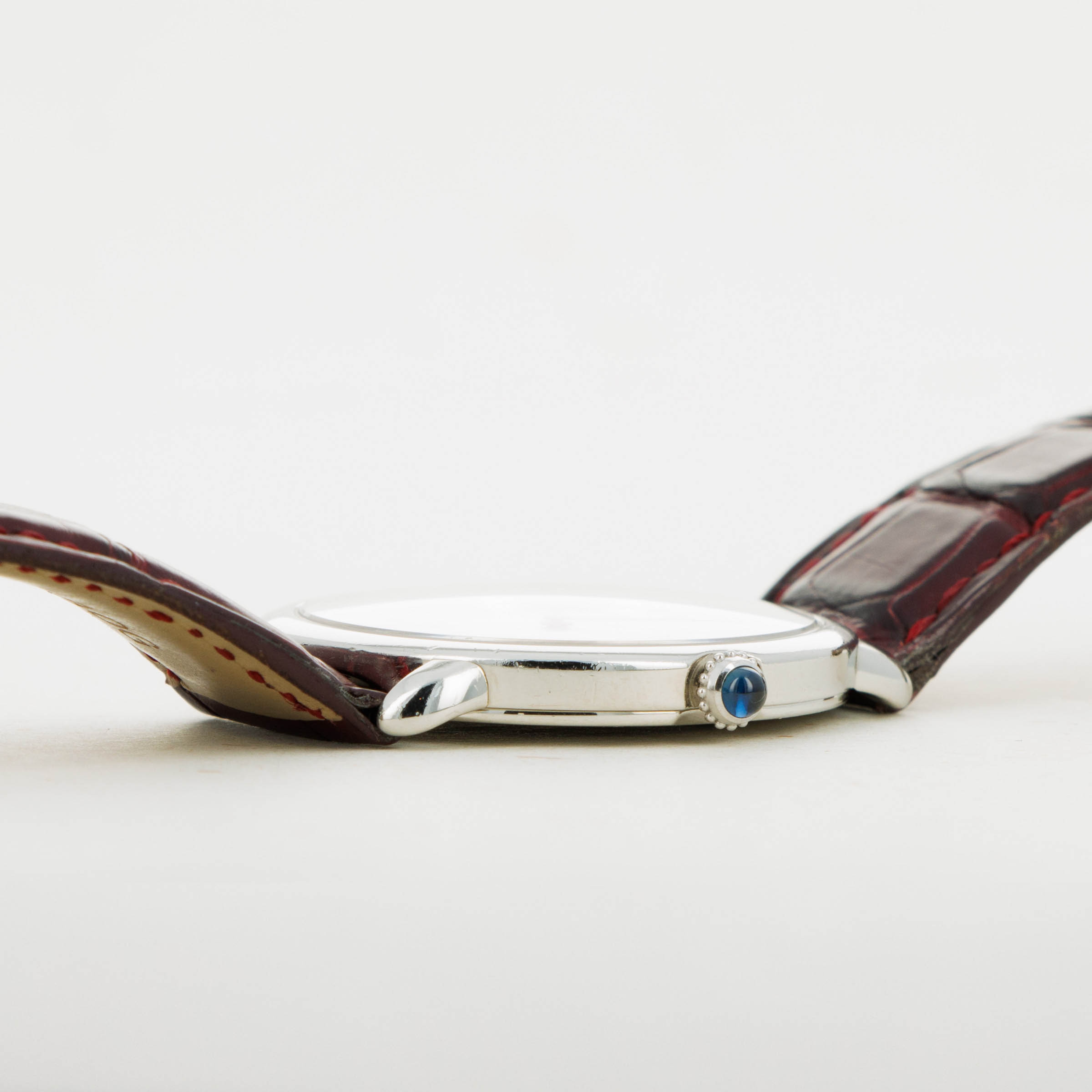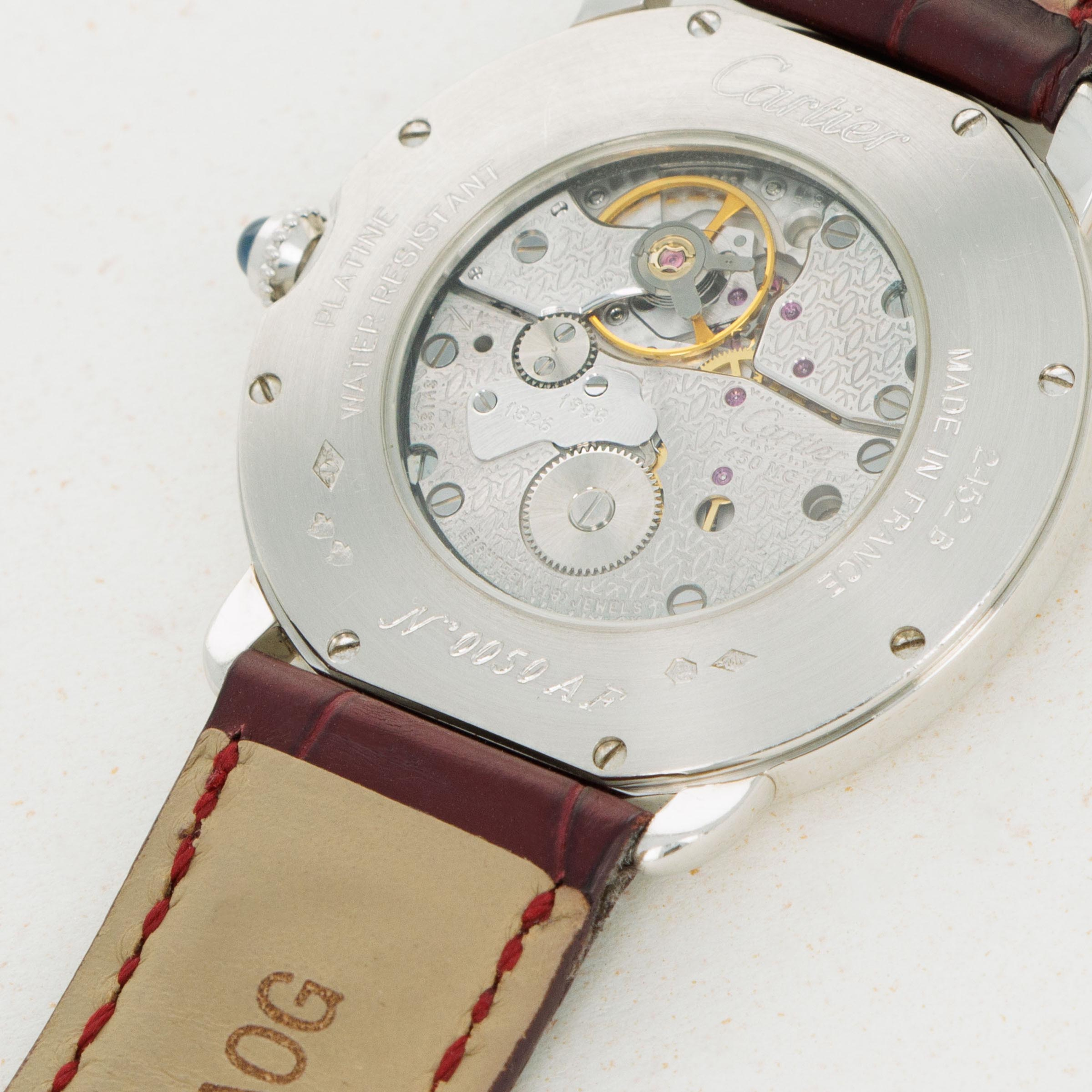 Elegantly reserved like so many of Cartier's iconic designs, the ref. 2452B's 34mm platinum case wears close to the wrist thanks to its thin profile resulting from its manual-wind cal. 430 MC movement. Unlike most of Cartier's creations made in Switzerland, the 2452B was made in a special workshop in France, where the firm's finest creations are born.