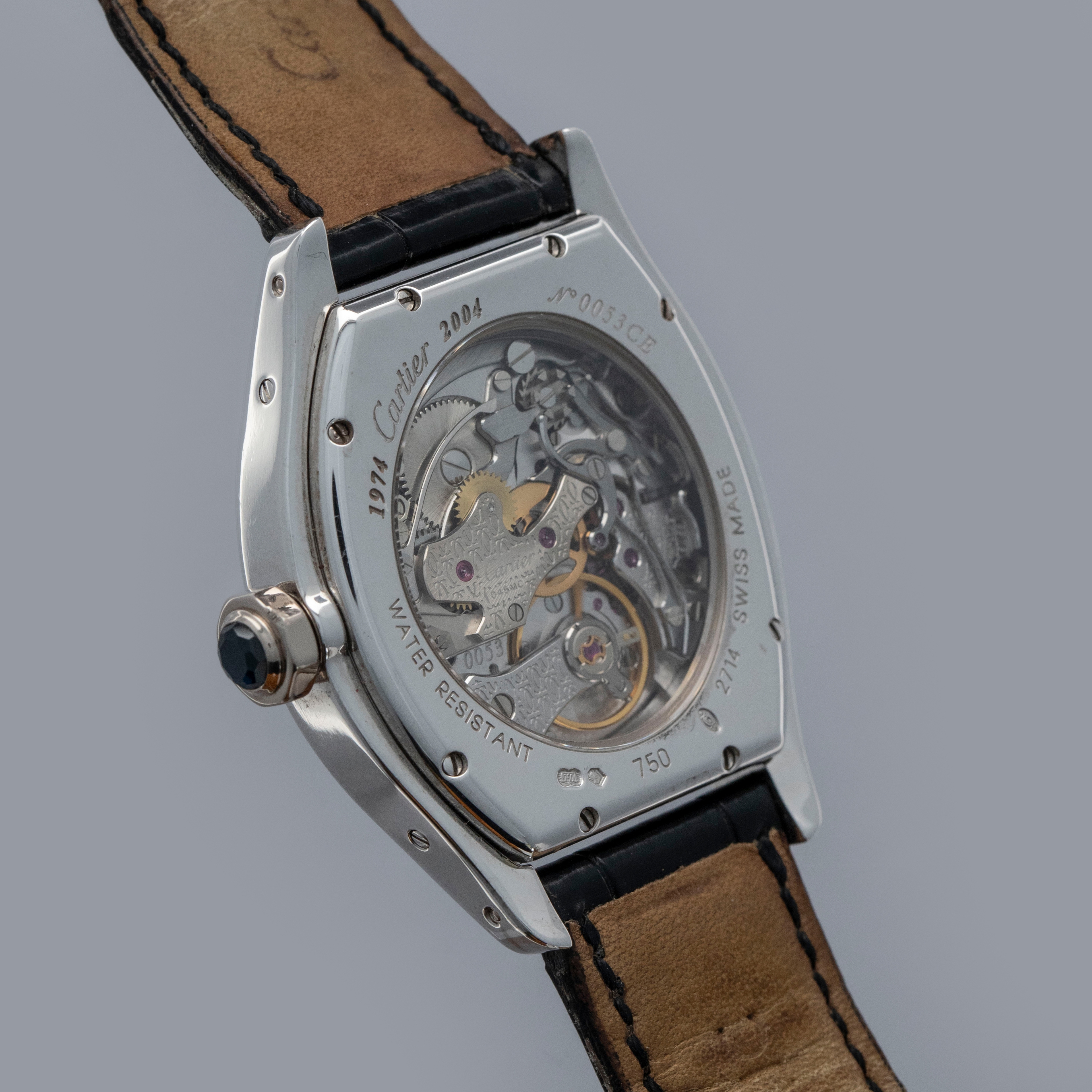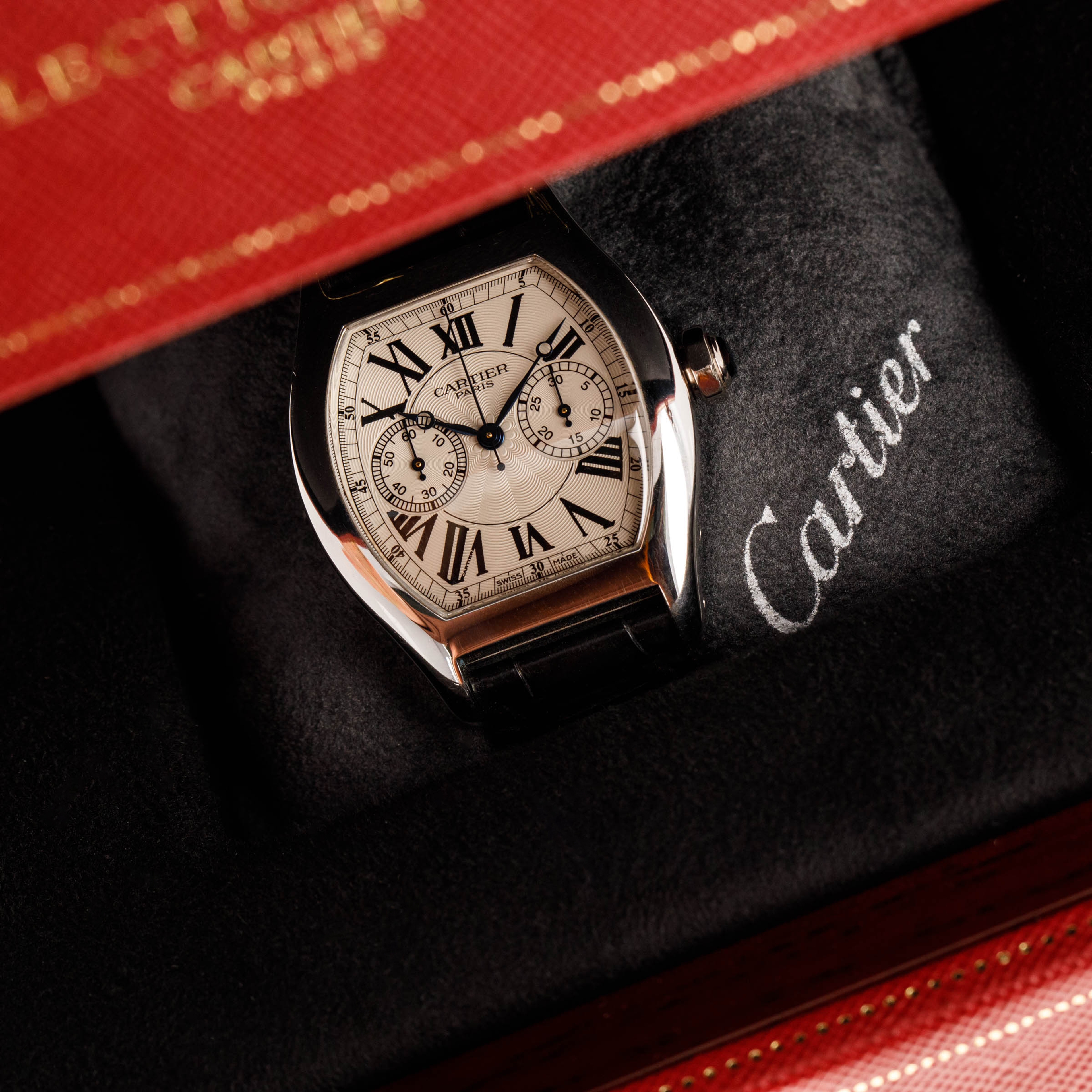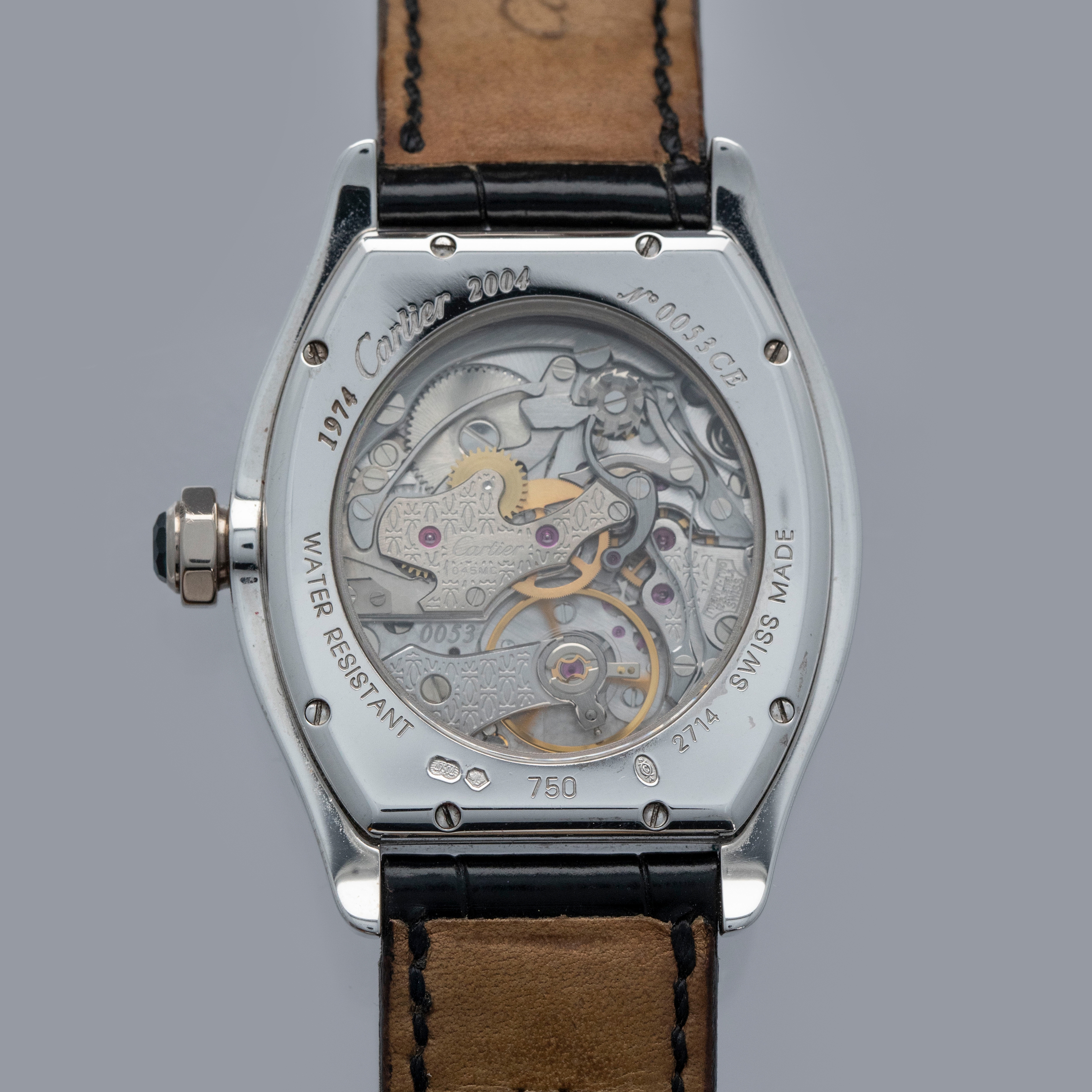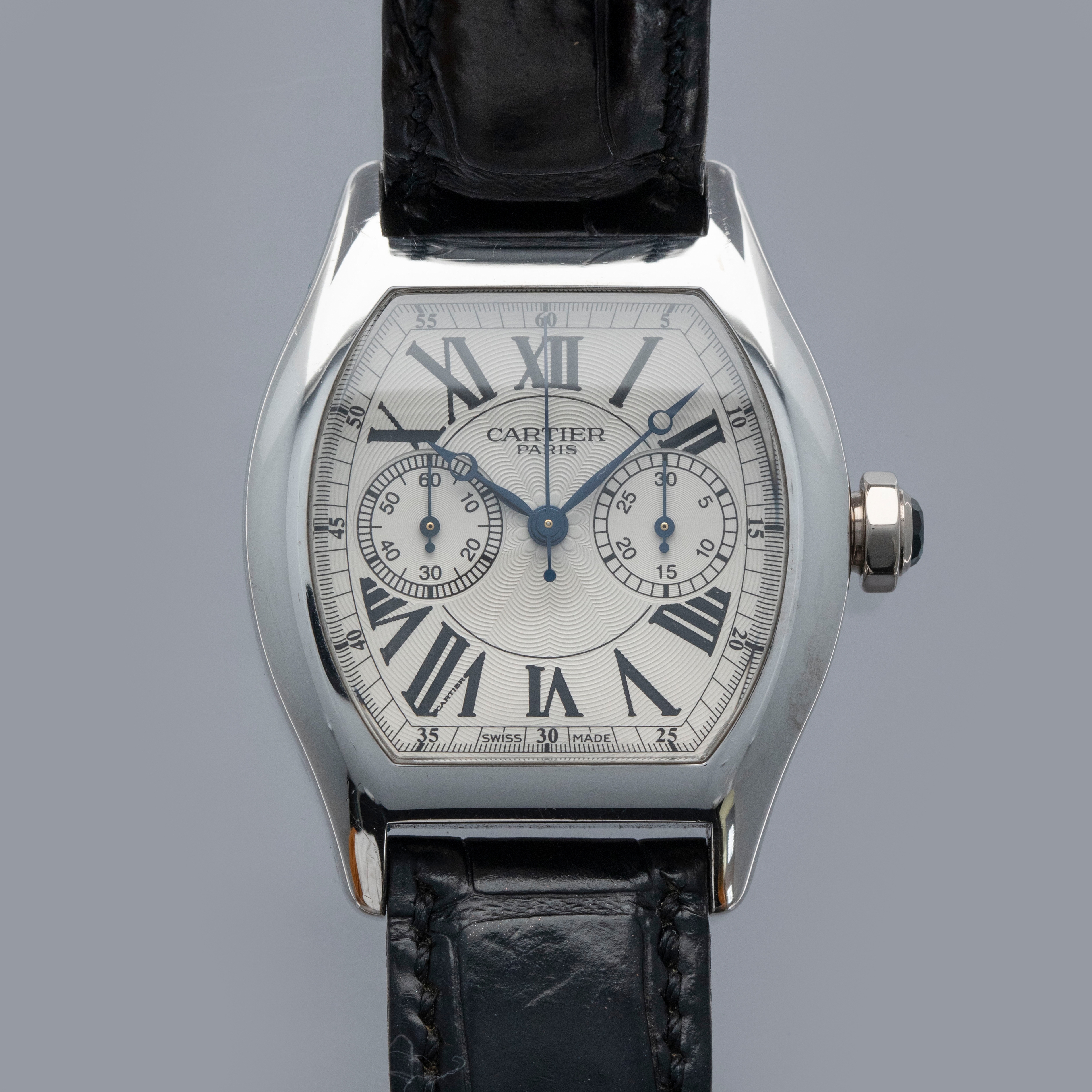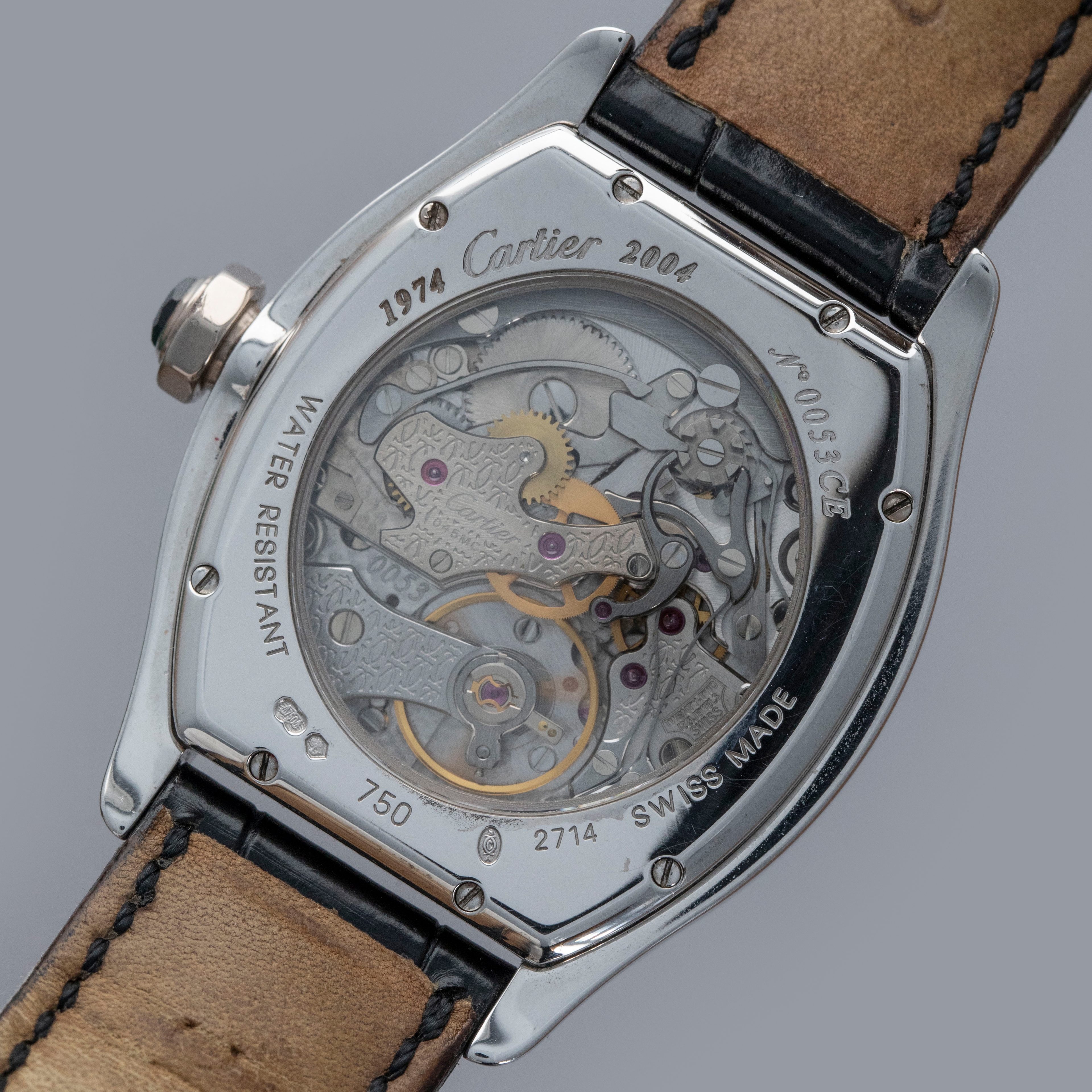 Launched at SIHH (now Watches and Wonders) in 1998, the Collection Privée Cartier Paris (CPCP) was Cartier's attempt to bolster their horological might following their loss of watchmaking prowess after they decided to push quartz-powered timepieces in the Must de Cartier collection. To remedy this, Cartier joined forces with THA Èbauche - a collaborative movement manufacture headed by Vianney Halter, Denis Flageollet, and François-Paul Journe, to create a movement that would stand up to brands like Patek and AP. The resulting cal. 045MC found within the Tortue Monopouissor was the result of that very partnership. In addition to the higher standard of watchmaking that the CPCP brought about, Cartier also decided to revive the use of signing their dials with "Paris" in a bid to speak to collectors who valued the link to the brand's history as a Paris-based watchmaker and jeweler. With this, the CPCP re-established Cartier’s watchmaking credentials and created what are now some of the brand's most sought-after watches on the collector’s market. Ultimately, the CPCP merged Cartier’s revered eye for design with their genuine watchmaking heritage through the use of some of the most influential names in modern horology, just like Cartier’s strategy from the early 1900s when they partnered with Edmond Jaeger, amongst others. Based on Louis Cartier’s 3rd ever design, a watch from 1912, the Cartier Tortue Monopouissor was released as part of the CPCP in 1999, like their other throwback designs to Cartier's earliest days. Powered by the beautifully finished manually wound cal. 045 MC movement, the Cartier Tortue Monopouissor is a technically astute timepiece. With its gorgeous silver dial, it is a modern rendition of the original models that it calls back to. With its elegant curved 18kt white gold case hugging the wrist comfortably and its black Roman numeral-adorned dial’s general aesthetic matching that of the iconic French Maison's designs of old, this piece stands as a monolith of Cartier's engineering prowess, iconic design, and longstanding heritage.