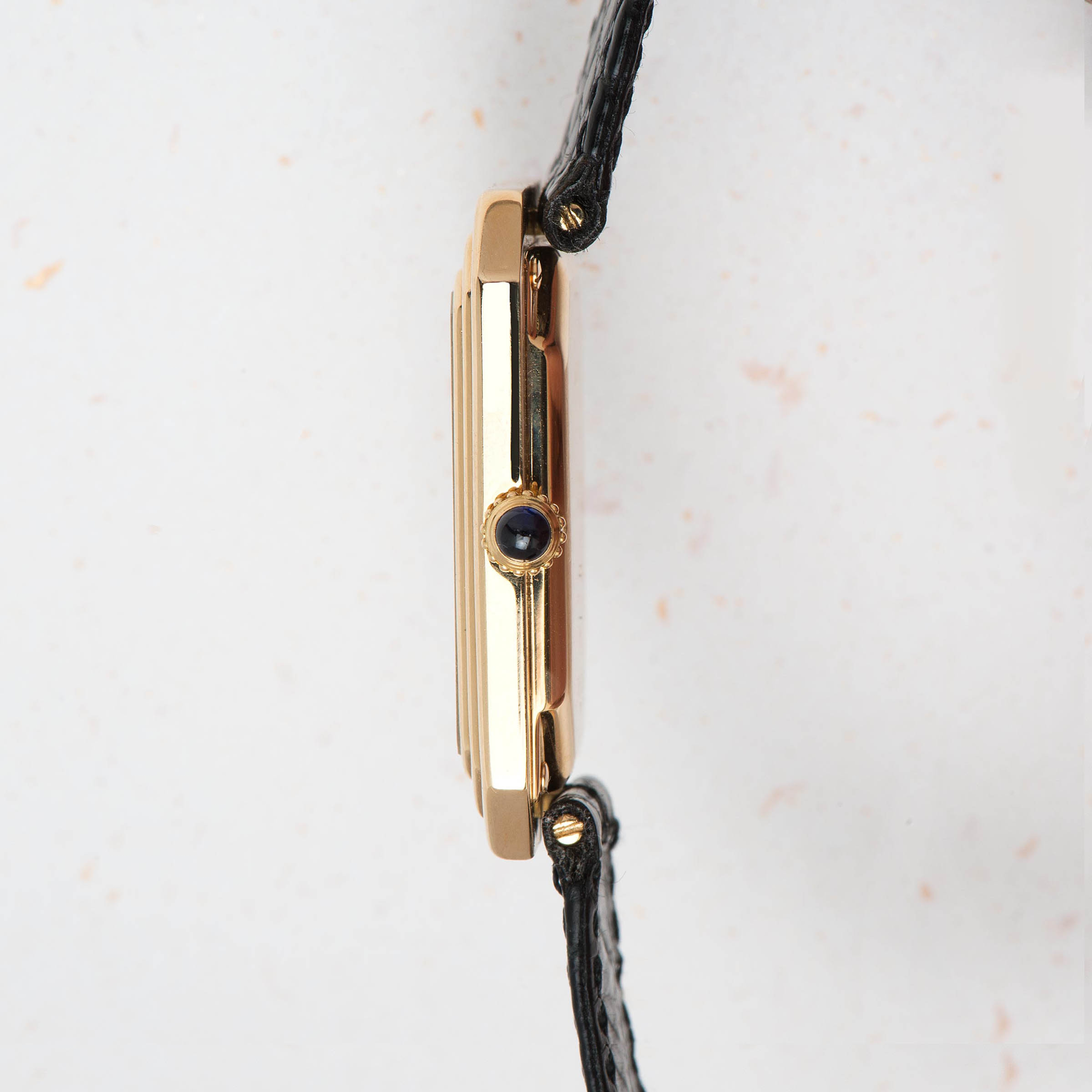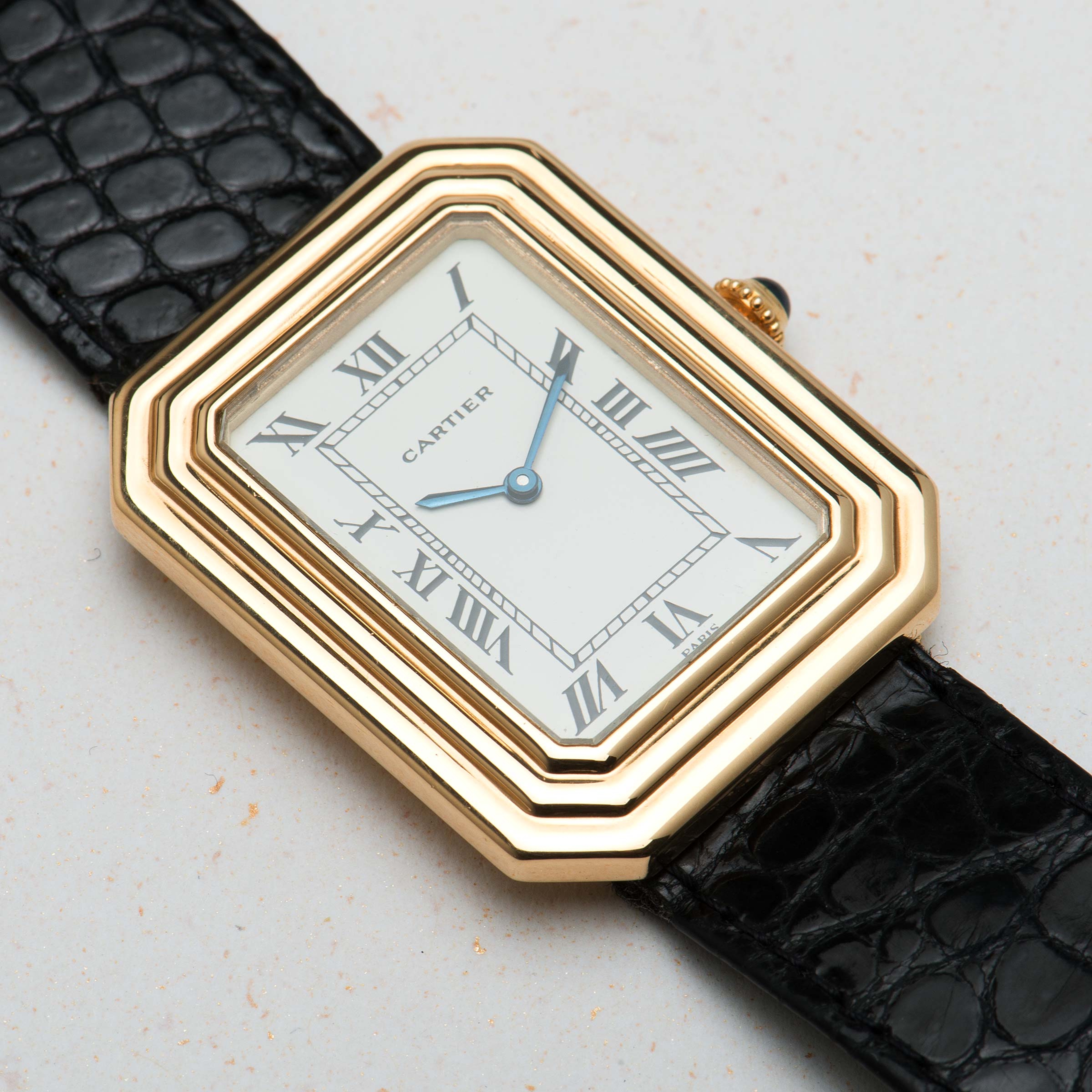 Introduced in the 1970s and remaining in production until the '80s, the Cartier Cristallor is a wonderfully rare watch. With relatively low production quantities, the Cristallor has escaped the hype and hysteria that several of its sibling models have experienced in recent months. With serial numbers for most models within three digits of one another, it is understood that fewer than 1000 Cristallor models were produced, or at least not too many more than that. Featuring an octagonal case with a thick triple-stepped bezel that frames its white Paris-signed dial, the Cristallor stands as a beautiful example of Cartier’s uncanny ability to create some refreshingly unique designs that broke from the traditional norms of the time in which they were born. With hidden lugs and a relatively large 35 x 28 case, the Cristallor sits on the wrist with a contemporary poise that has certainly survived the test of time. Originally retailed from the Parisian Cartier boutique, as denoted by the “Paris” signed dial, this example exudes just about everything that a true Cartier purist would hope to see in a timepiece of the Cristallor’s unique and remarkable importance.