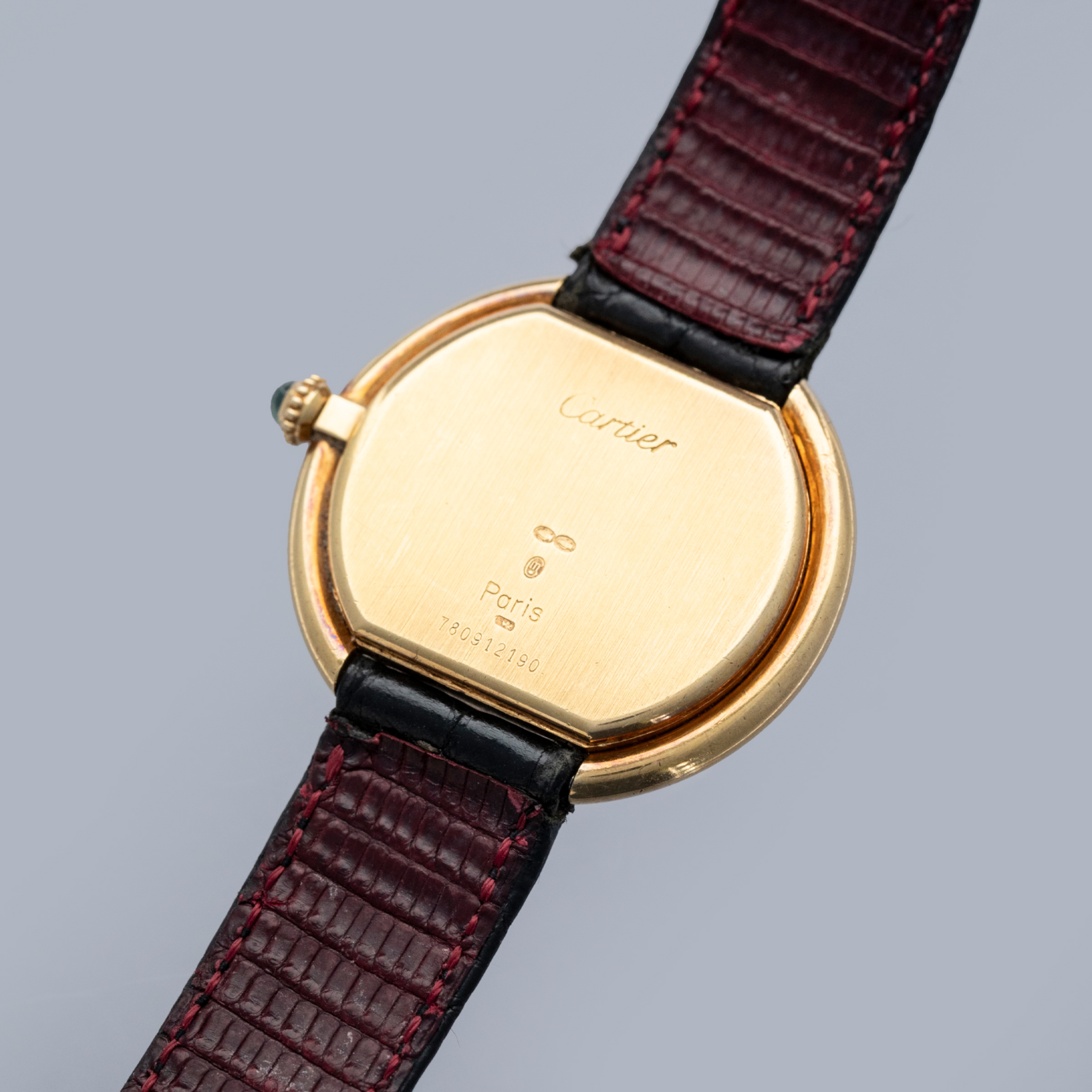 Featuring all of Cartier's core design tenets, the Ellipse boasts the same bright white dial with black Roman numerals, a railroad minute track and blued steel hands that can be found across hundreds of Cartier designs.