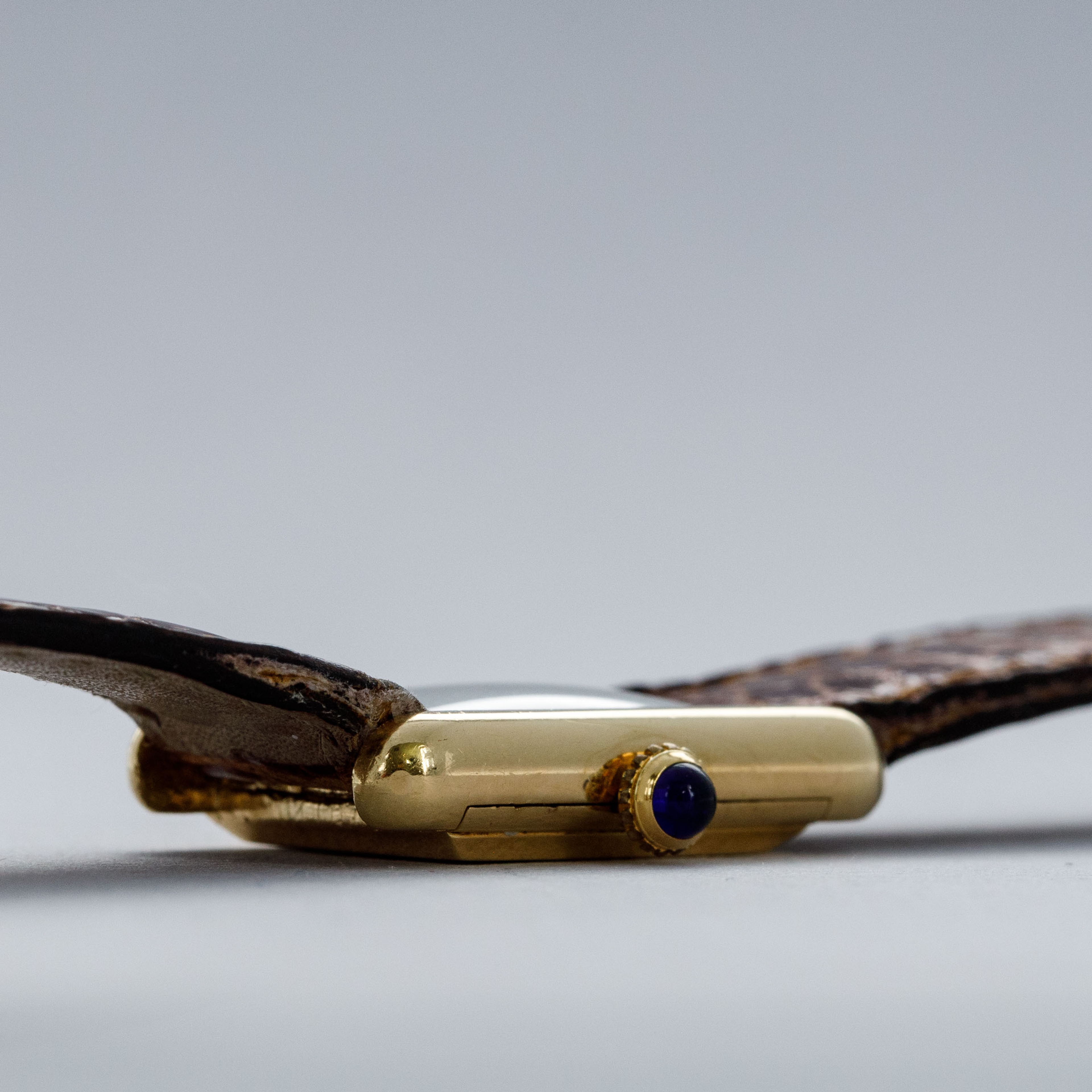 Made of 18kt yellow gold, the Tank Mini Louis' svelte case has stood the test of time to act as a truly timeless piece of horological design over its many decades in production.