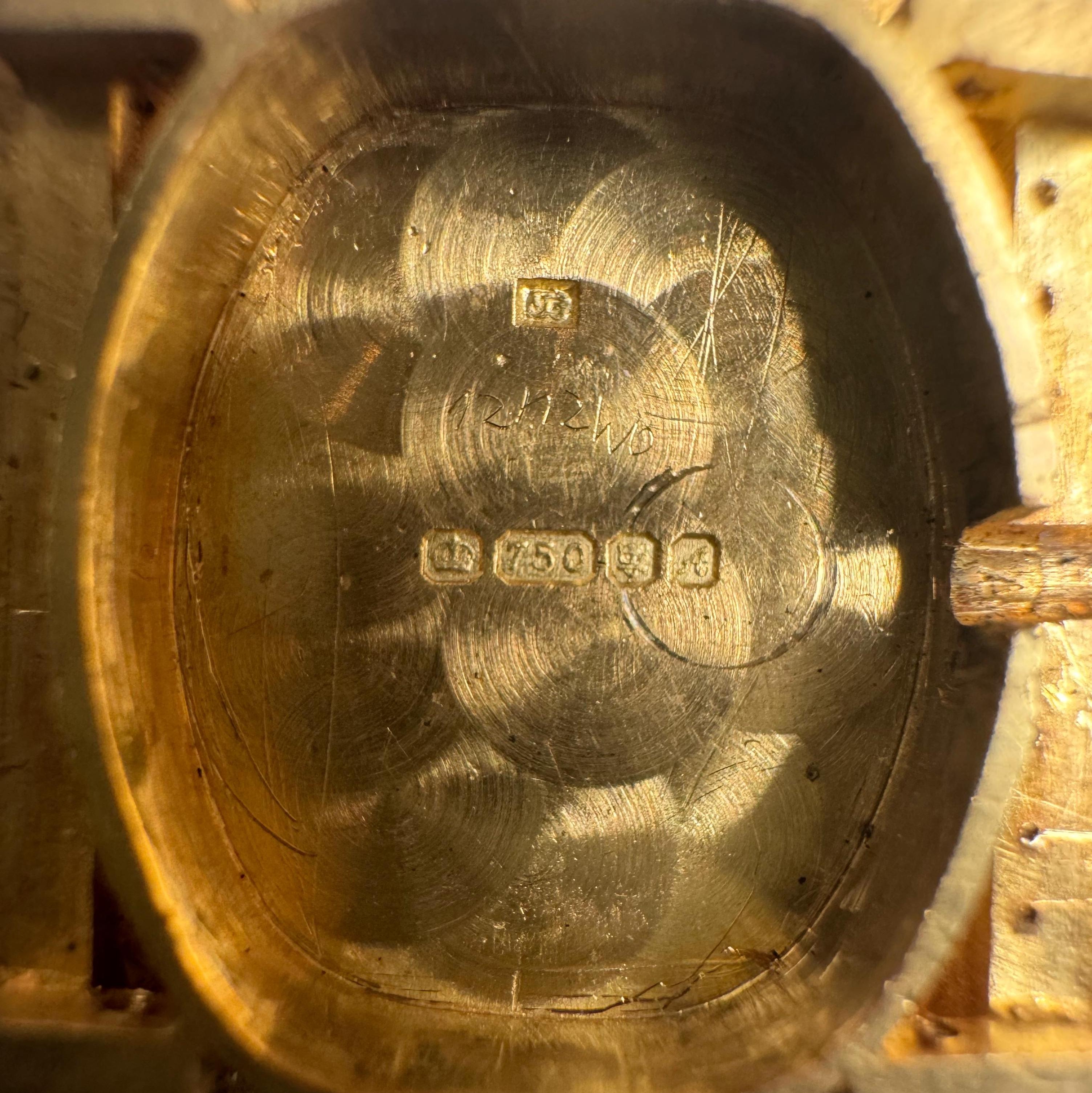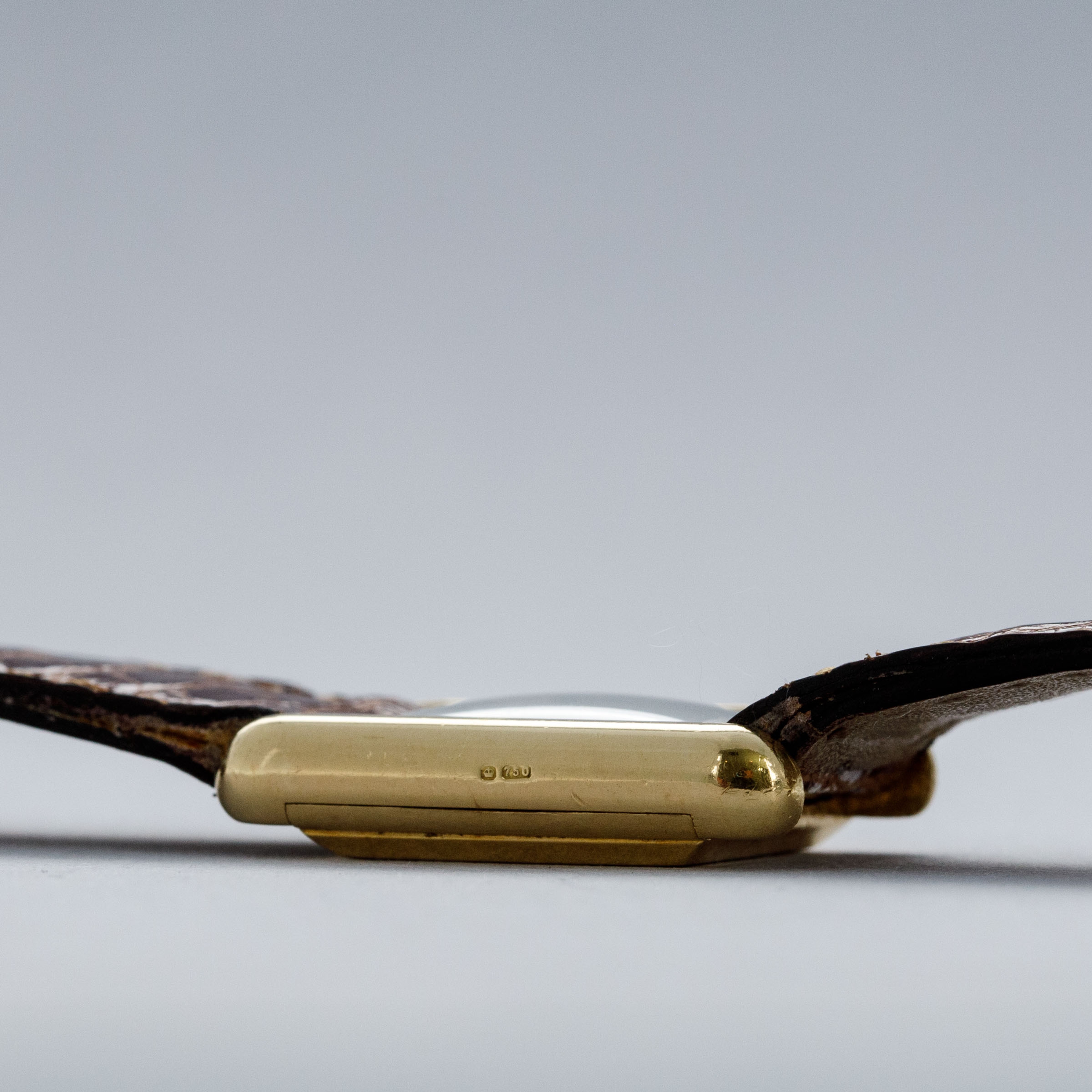 Watch is in very good overall condition. Case shows minor signs of surface wear, with various small marks and scratches. The gold hallmarks on the 9 o'clock case side are crisp and well preserved. The crown has been replaced at some point, and is not original to the watch. Dial in excellent condition showing minor aging on the surface and a small amount of debris trapped under the crystal. The watch comes on a generic strap and generic plated buckle. Please note that while the watch ticks at time of cataloging, the timekeeping is poor and a service is recommended.