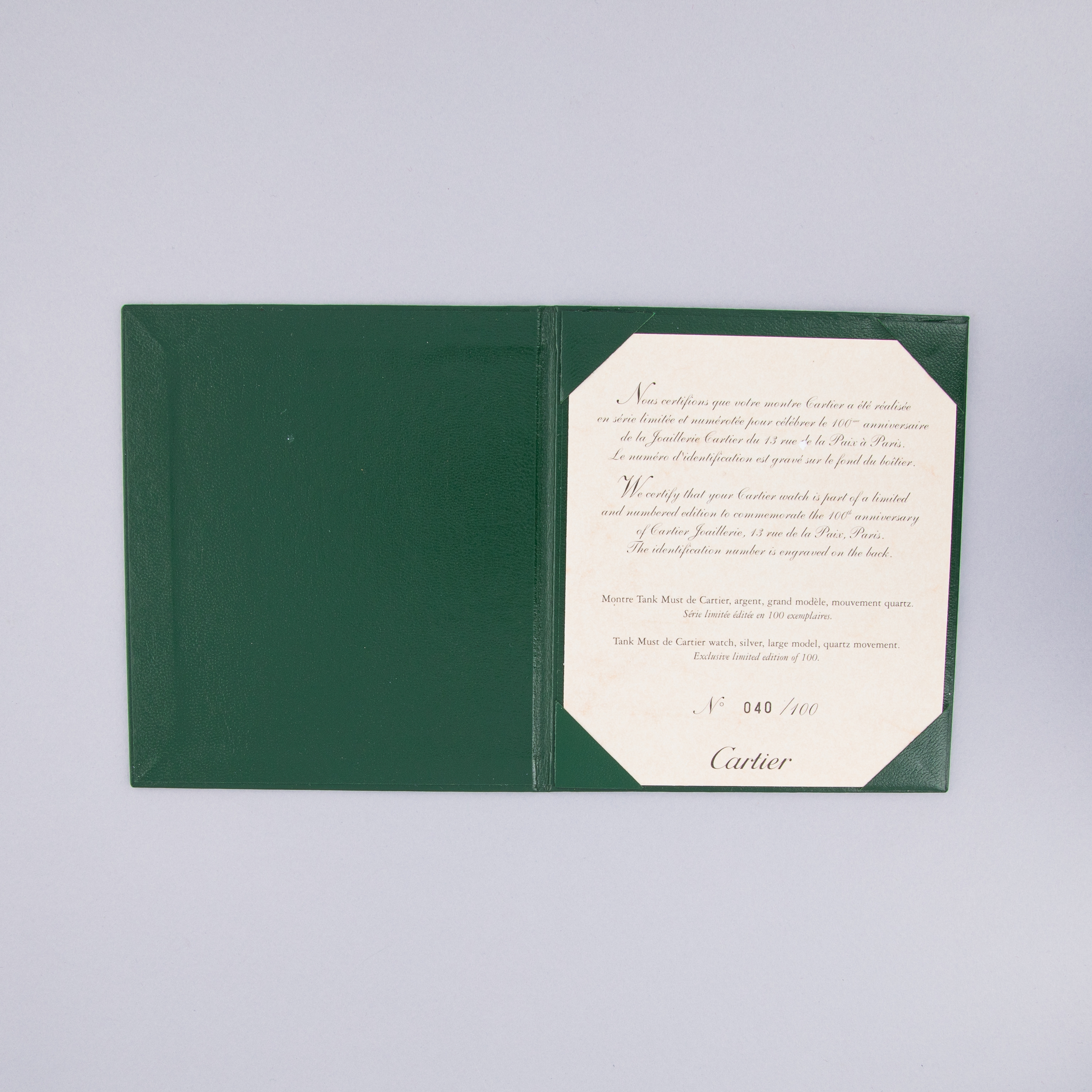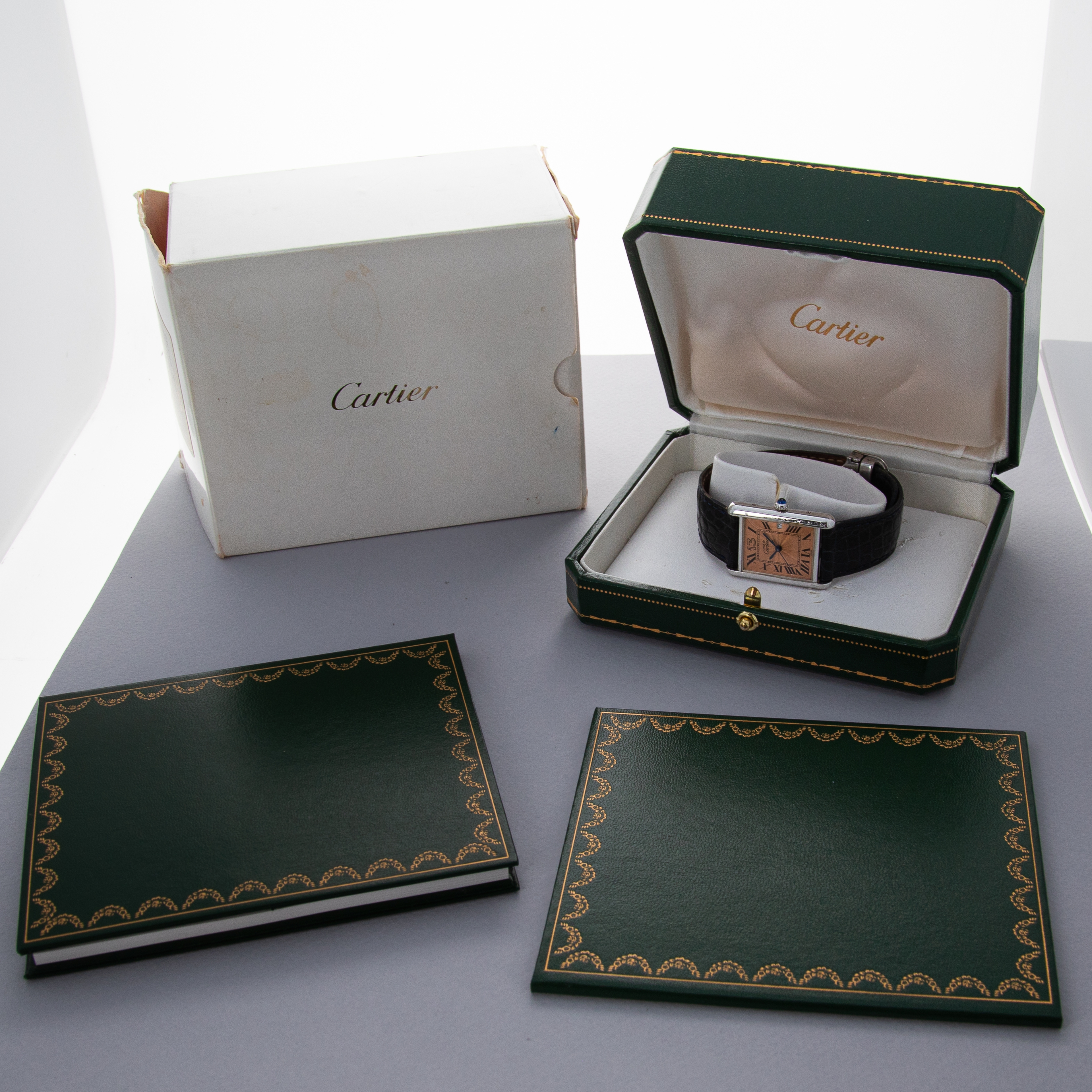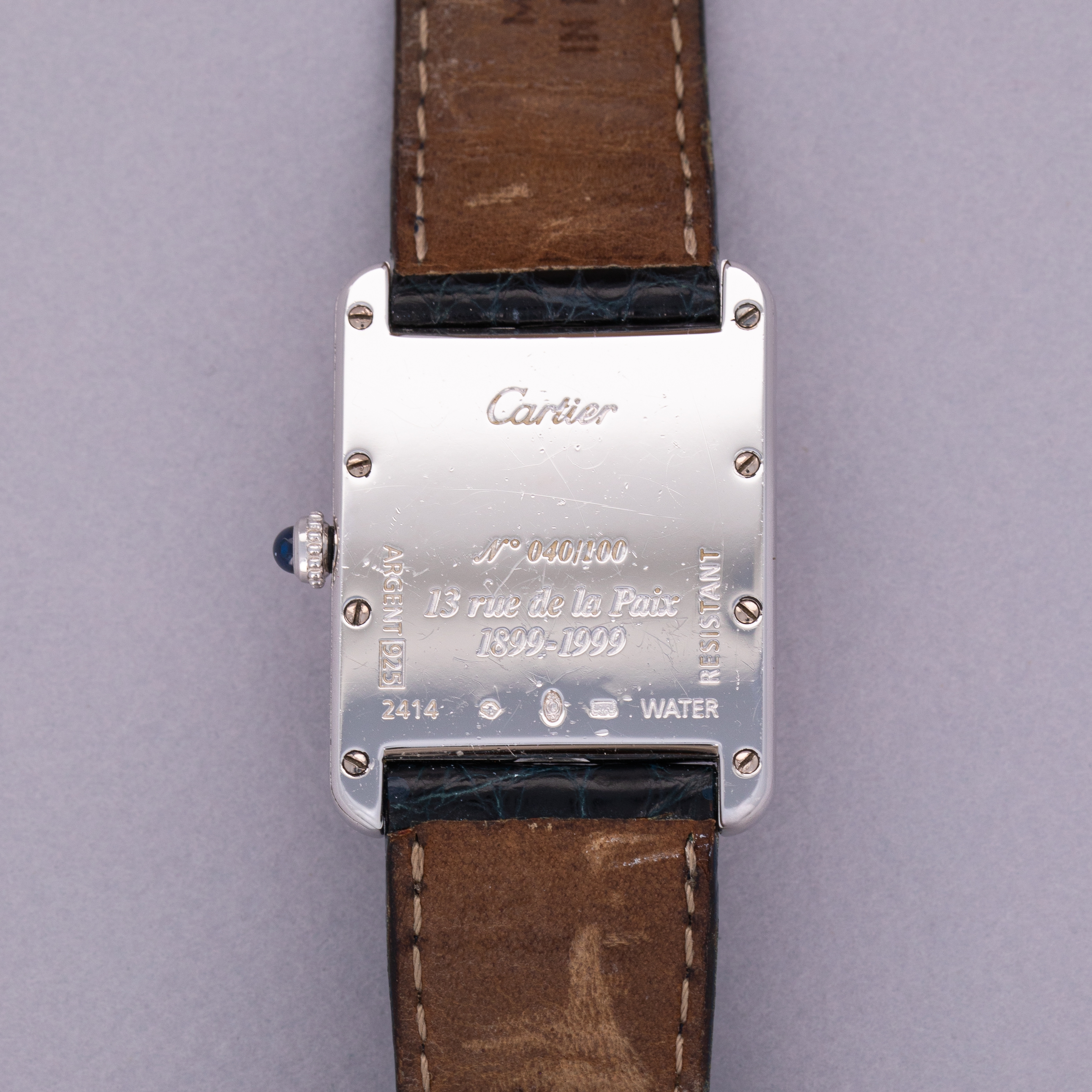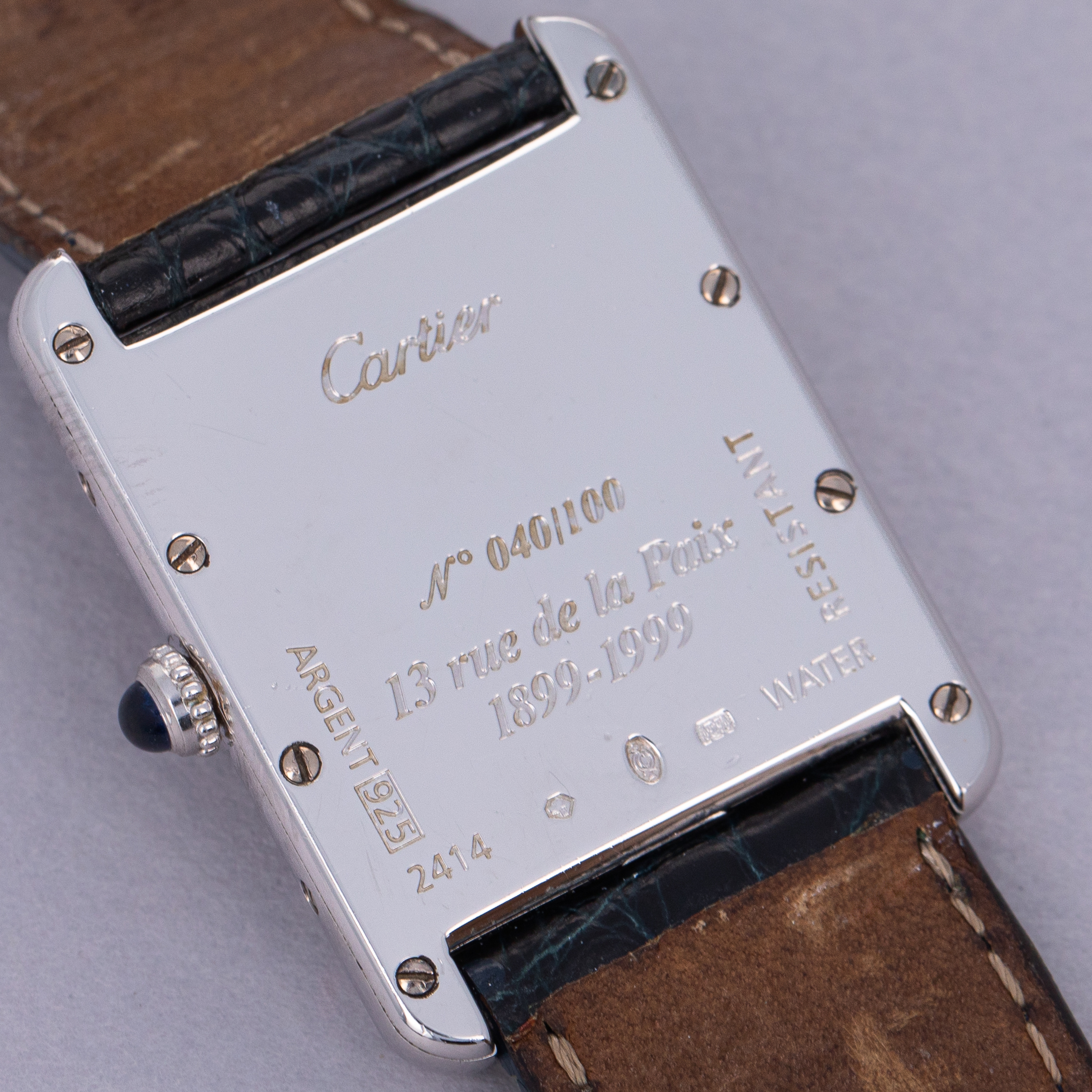 Cartier Must de Cartier Quartz Tank 13 Rue de la Paix Guilloche Salmon Dial Limited Edition Sterling Silver