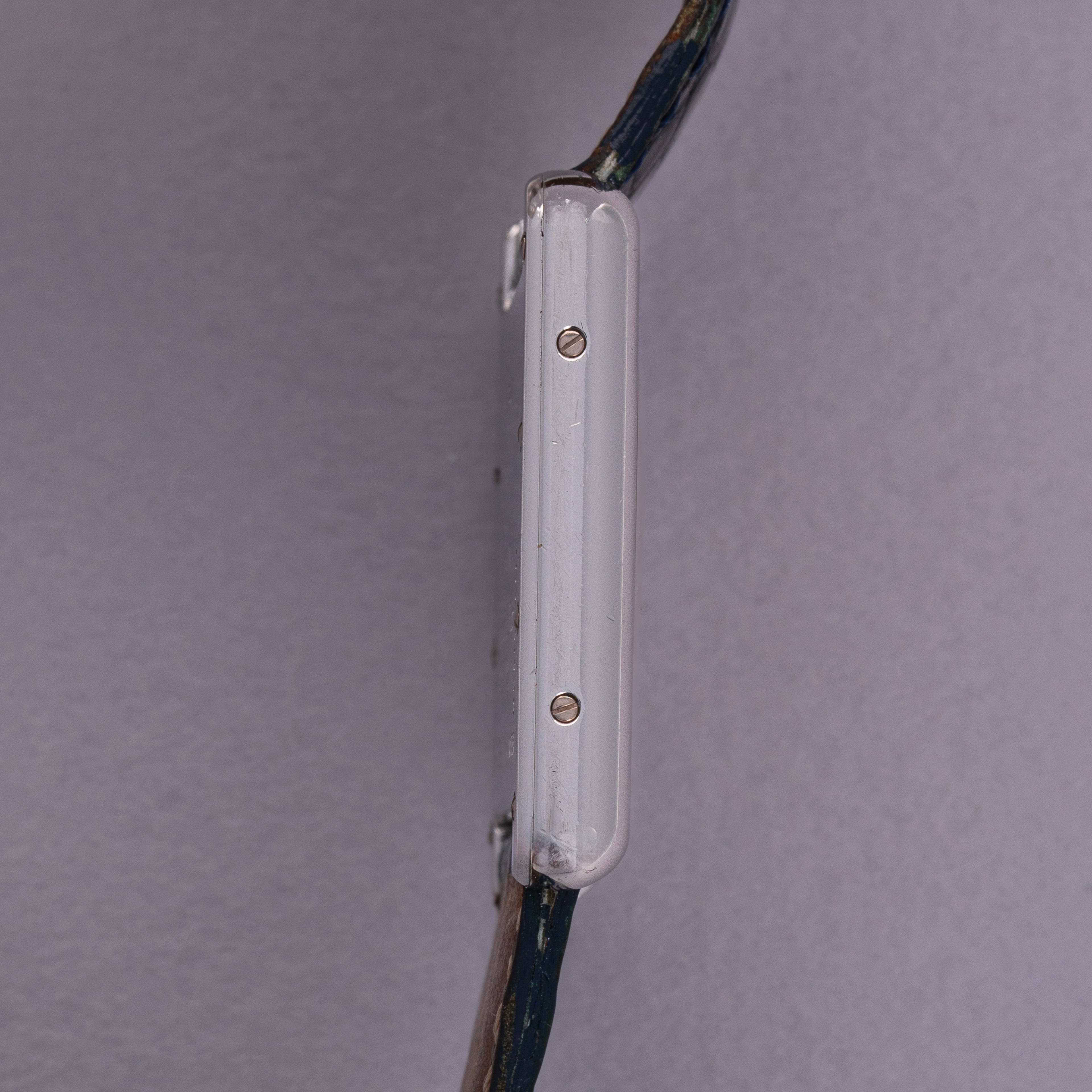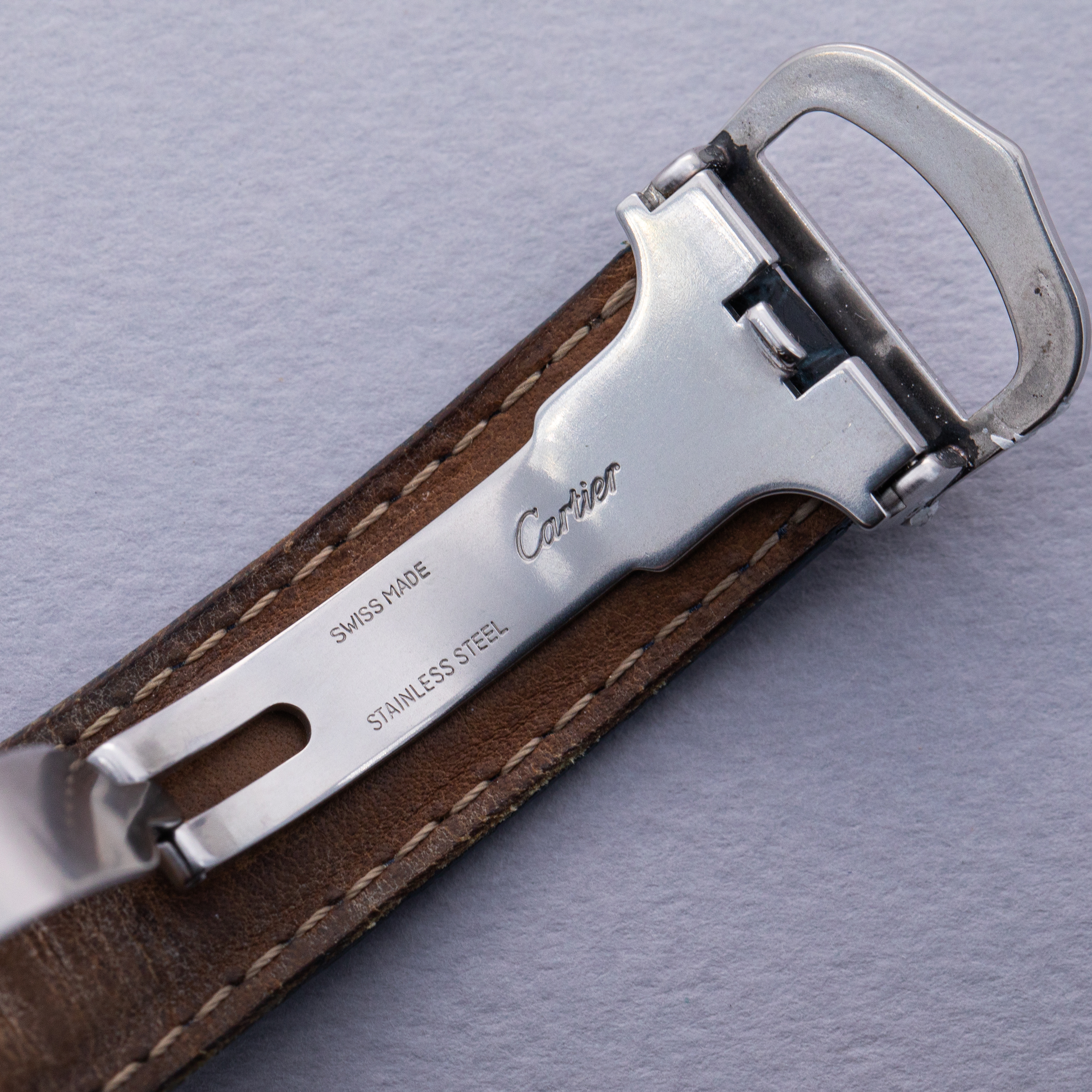 While most variants from the Must de Cartier collection feature yellow gold-plated silver cases, the ref. 2414 bares no electroplating, instead with Cartier opting for exposed sterling silver. A rare material for watchmakers to use.